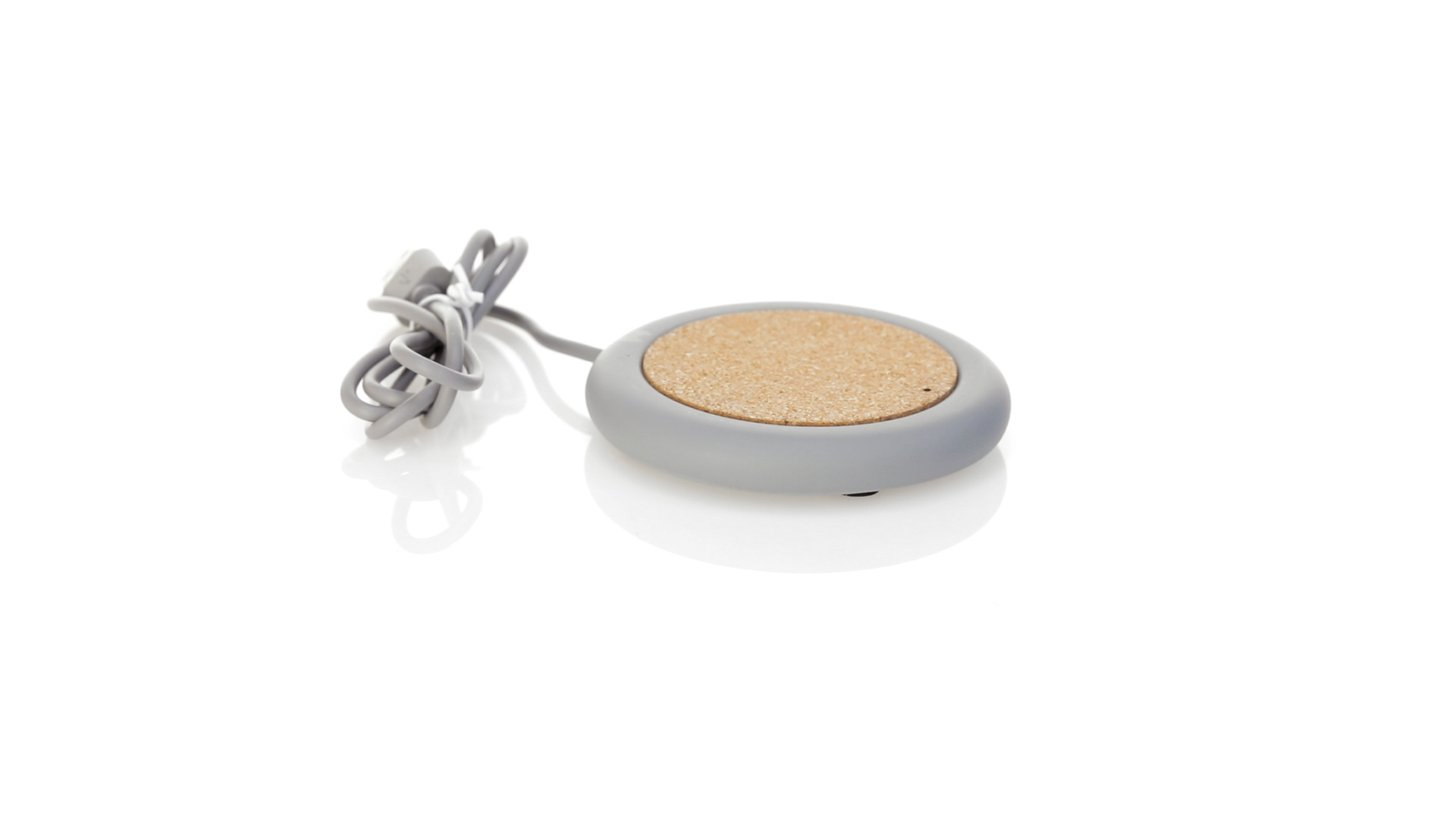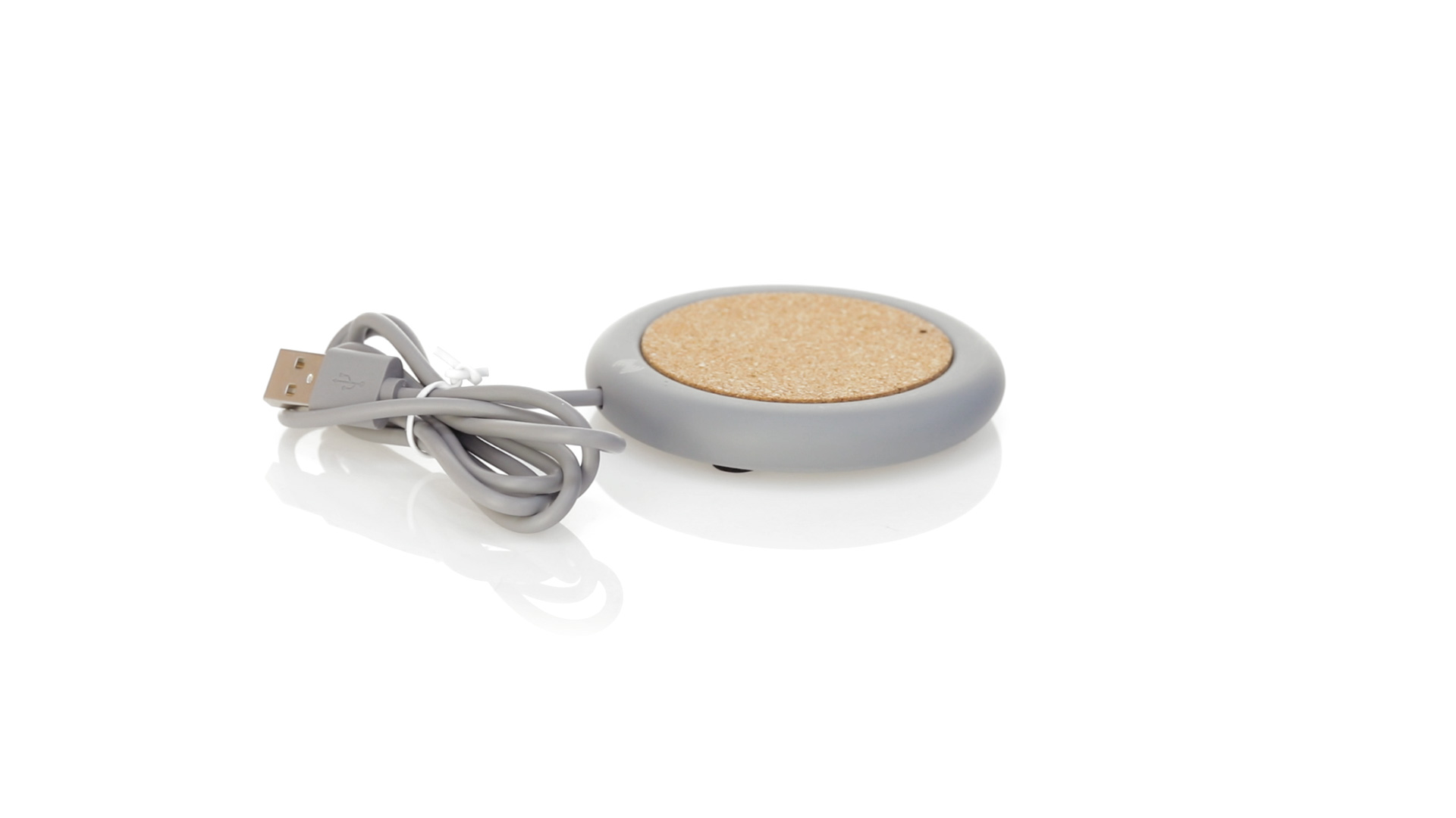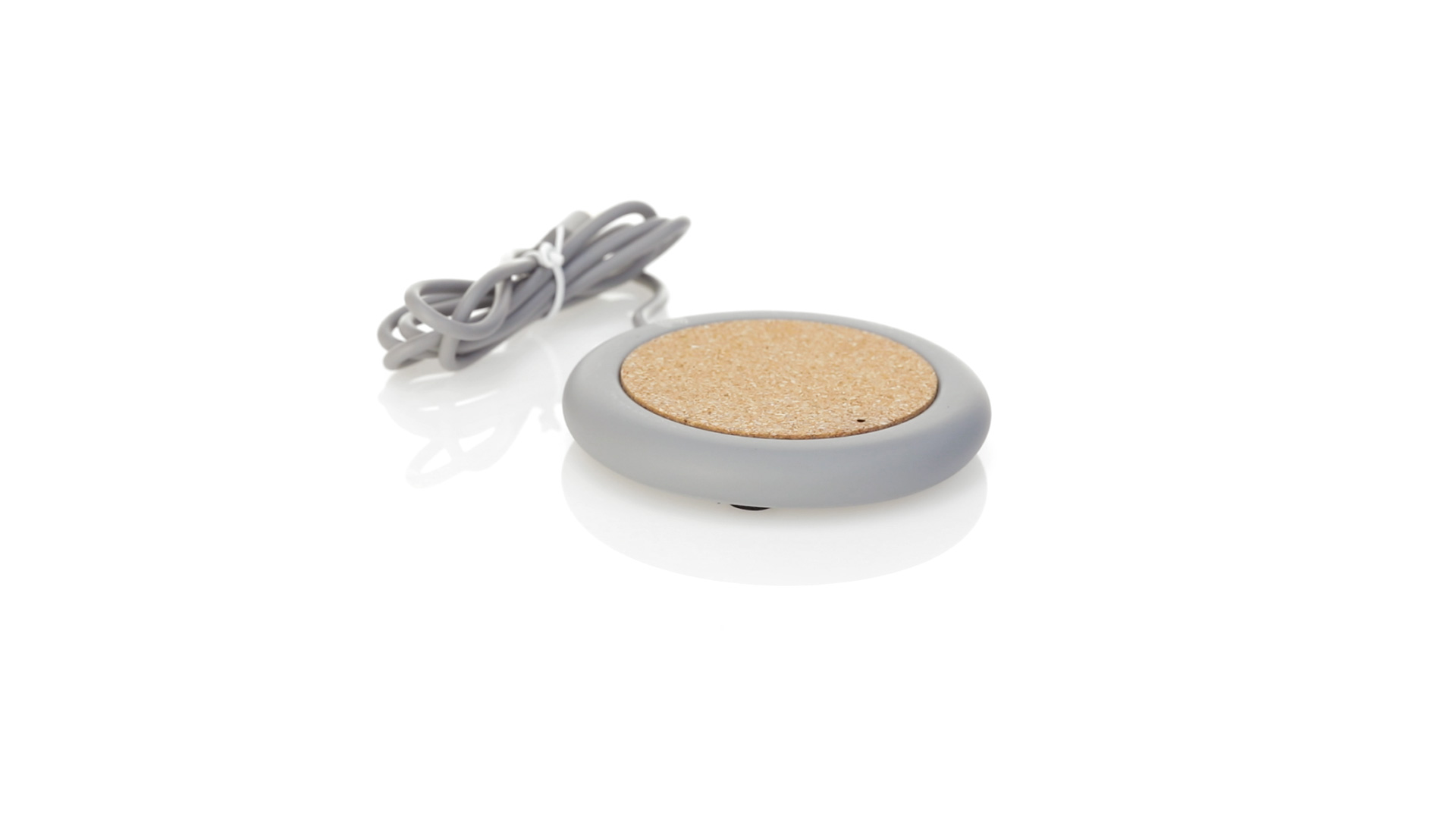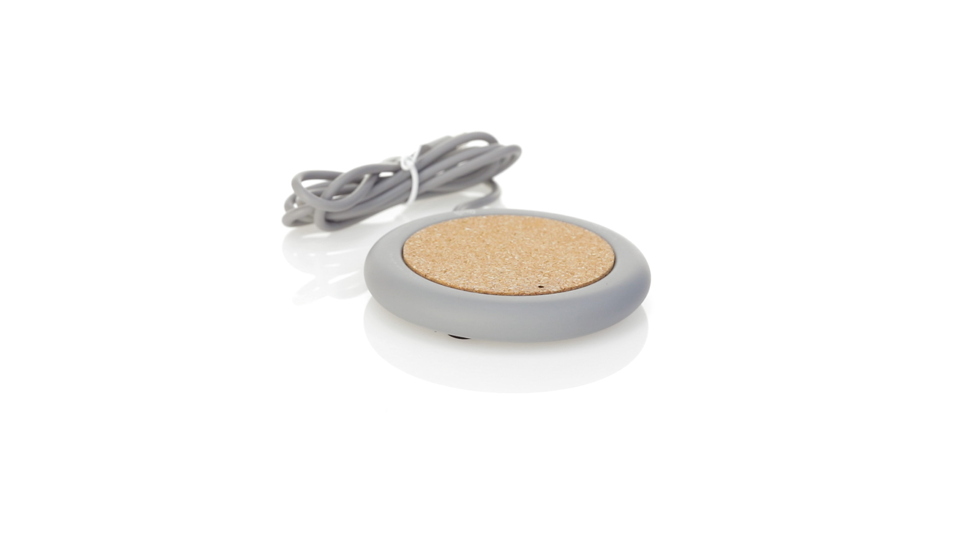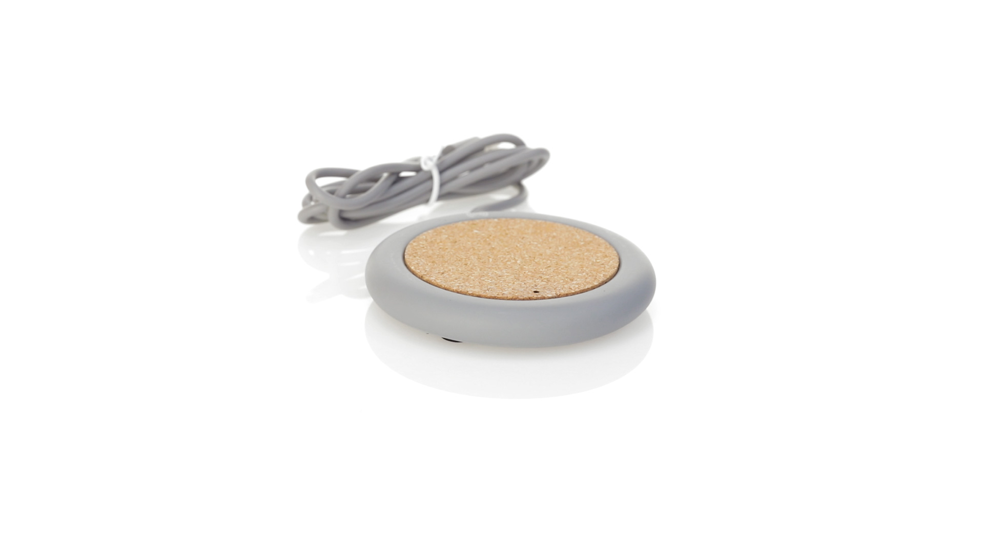 Drahtloses Ladegerät 5W Nature Line im kreisförmigen Design, in Kombination von Naturkork und Kalksteinzement, einem Konglomerat, das durch Mischen von natürlichen Materialien, hauptsächlich gemahlenem Kalkstein und Wasser, gebildet wird, wodurch ein Material von grosser Konsistenz und Haltbarkeit entsteht.LED-Anzeige und passendes 1 m langes USB-Ladekabel. Kompatibel mit Geräten, die mit kabelloser Ladetechnik ausgestattet sind. Sicherheitsschutz zum Schutz vor Überhitzung, Überladung und Kurzschluss. Präsentiert in attraktiver Öko-Design-Box.
