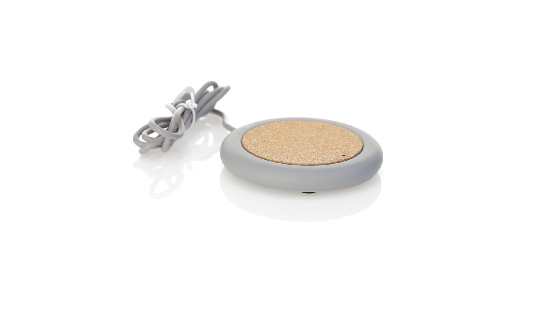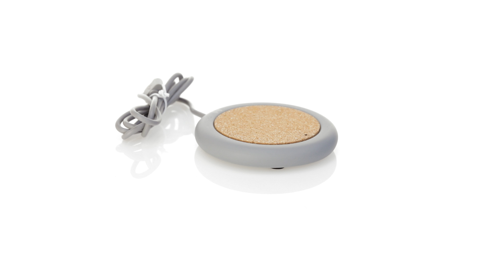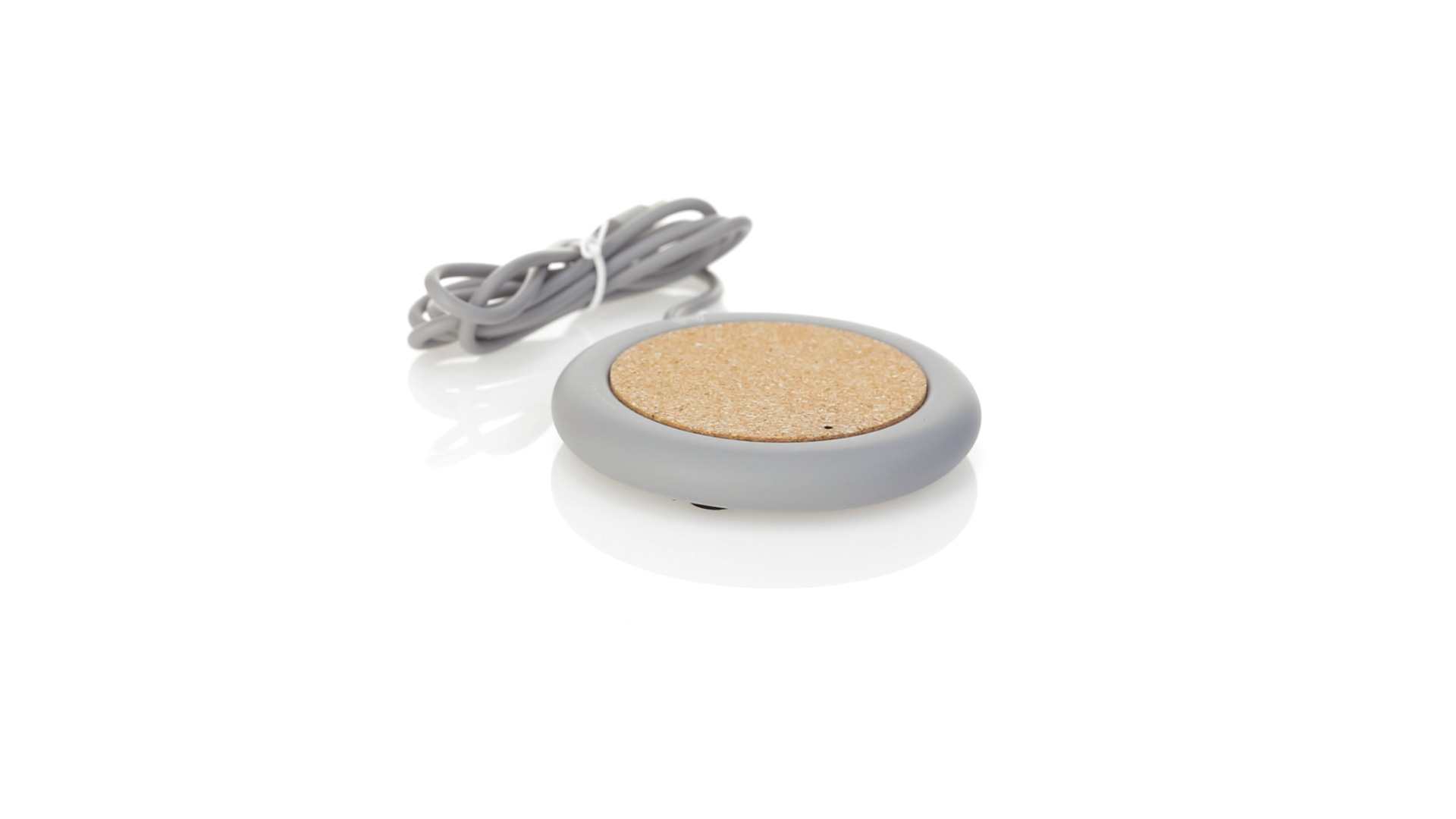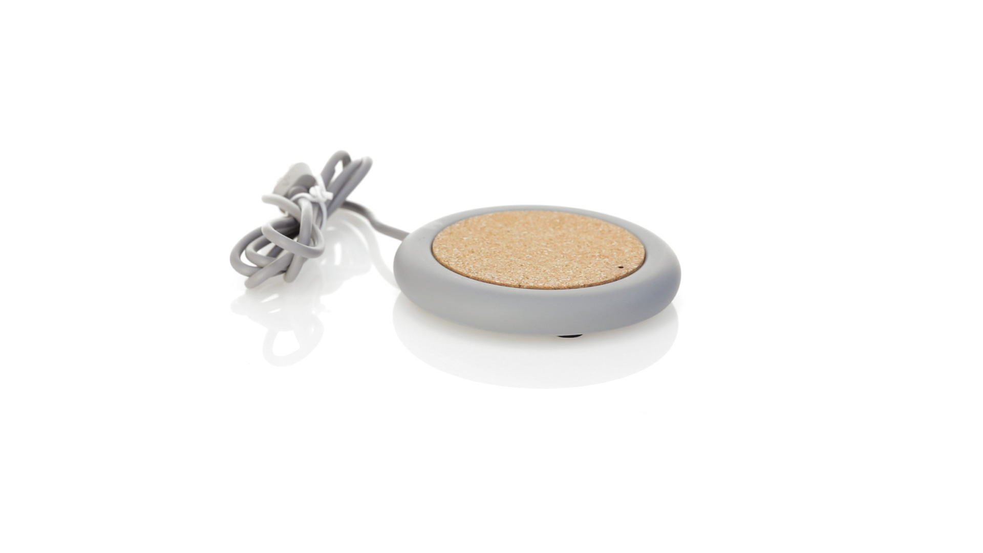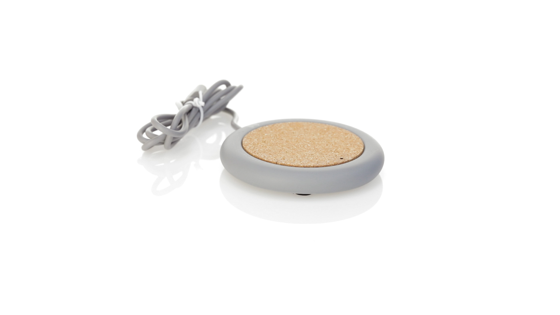 Drahtloses Ladegerät 5W Nature Line im kreisförmigen Design, in Kombination von Naturkork und Kalksteinzement, einem Konglomerat, das durch Mischen von natürlichen Materialien, hauptsächlich gemahlenem Kalkstein und Wasser, gebildet wird, wodurch ein Material von grosser Konsistenz und Haltbarkeit entsteht.LED-Anzeige und passendes 1 m langes USB-Ladekabel. Kompatibel mit Geräten, die mit kabelloser Ladetechnik ausgestattet sind. Sicherheitsschutz zum Schutz vor Überhitzung, Überladung und Kurzschluss. Präsentiert in attraktiver Öko-Design-Box.