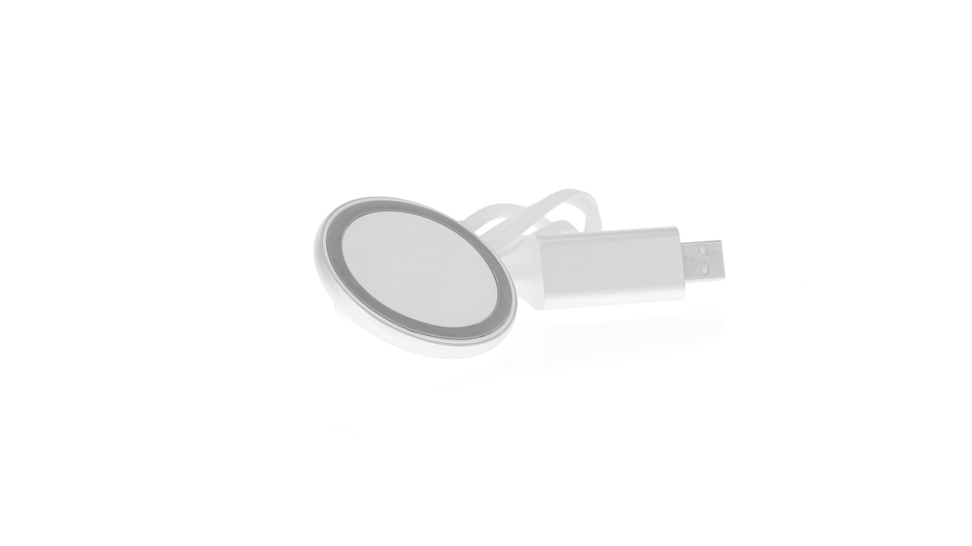 Kabelloses magnetisches Ladegerät 10 W. Gehäuse aus stabilem Aluminium mit silberner Oberfläche. Mit Ladestatusanzeige und 1 m USB-Kabel mit Aluminiumstecker. Inklusive Zubehör aus Metall mit 3M-Kleber, extra stark und rückstandsfrei vom Gerät lösbar, ermöglicht die Nutzung der Magnetfunktion des Ladegeräts an jedem mobilen Gerät. Kompatibel mit Endgeräten, die mit kabelloser Ladetechnik ausgestattet sind. Grosse Beschriftungsfläche und präsentiert in einer attraktiven Designbox. Verfügbare Betriebsanleitung in Englisch und Spanisch.