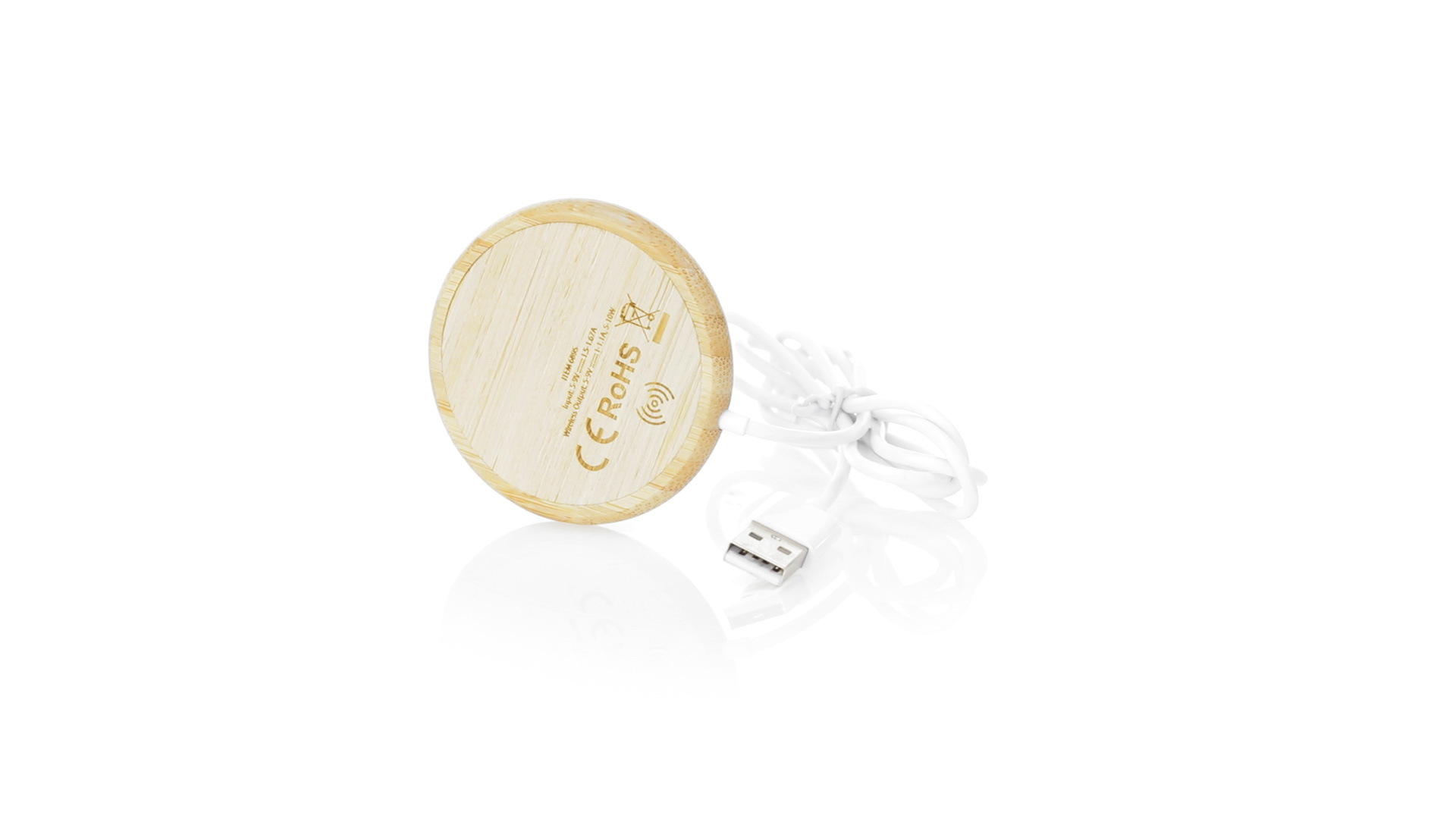 Drahtloses magnetisches Ladegerät 10W aus der Nature Line, mit Gehäuse aus stabilem Bambus. Mit Ladestatusanzeige und 1m USB-Kabel. Inklusive Zubehör aus Metall mit 3M-Kleber, extra stark und rückstandsfrei vom Gerät lösbar, ermöglicht die Nutzung der Magnetfunktion des Ladegeräts an jedem mobilen Gerät. Kompatibel mit Endgeräten, die mit kabelloser Ladetechnik ausgestattet sind. Grosse Beschriftungsfläche und präsentiert in einer attraktiven Öko-Design-Box. Verfügbare Betriebsanleitung in Englisch und Spanisch.