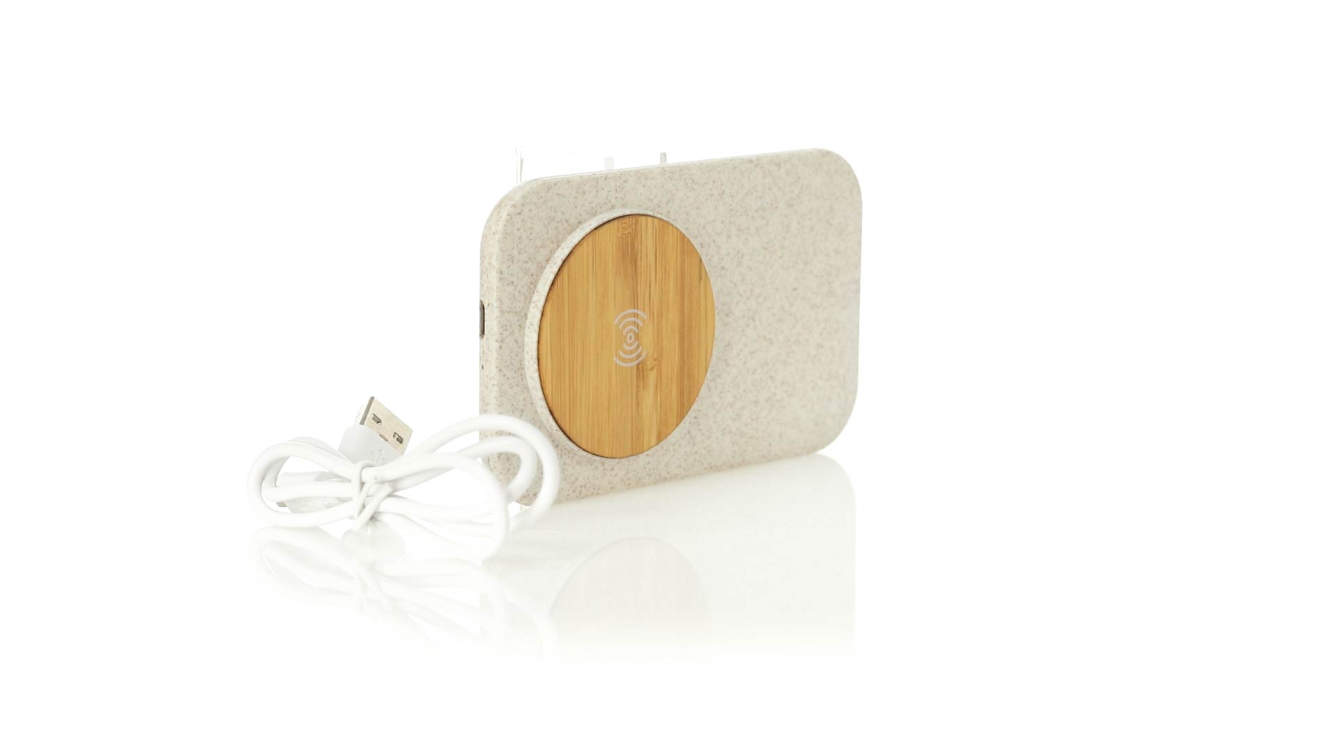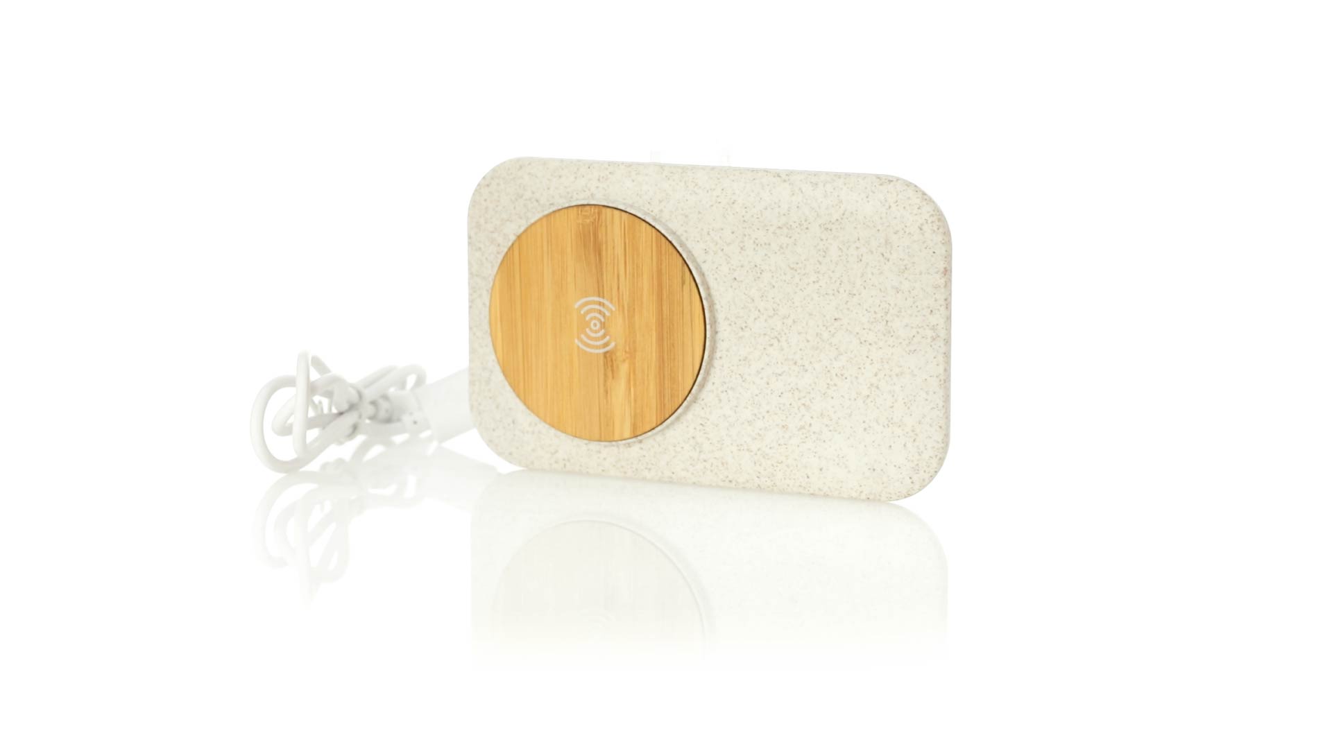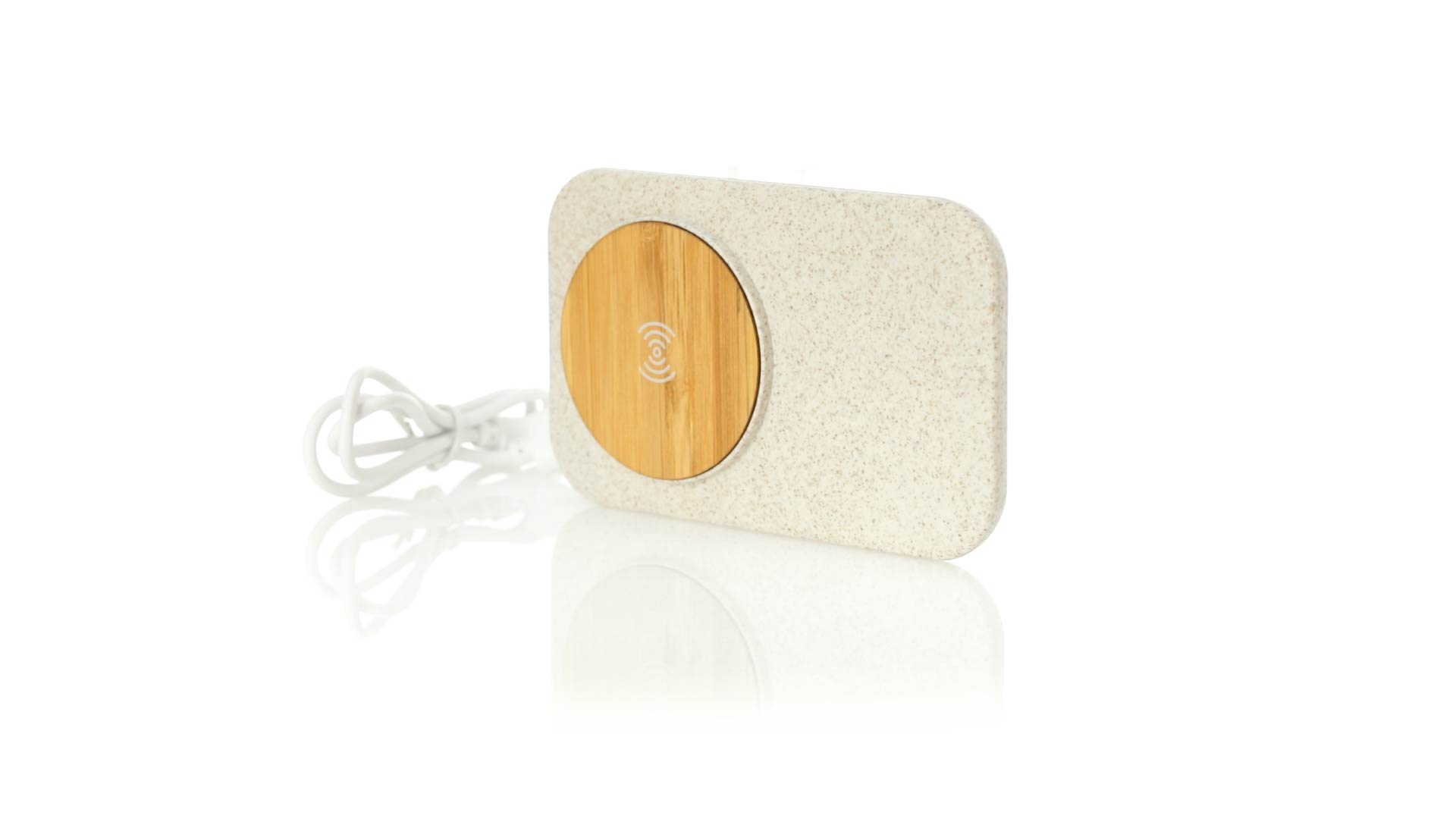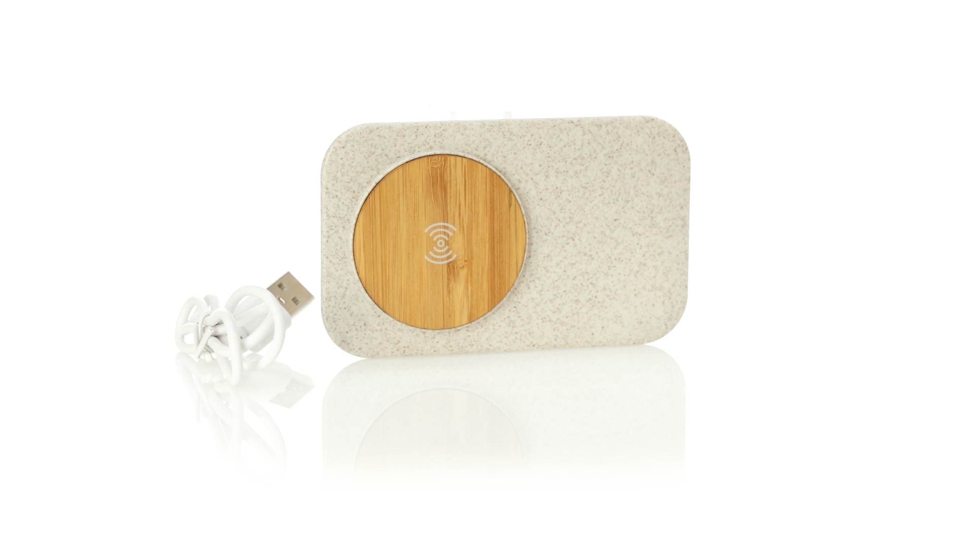 Kabelloses Ladegerät aus der Naturlinie. Bambusschale in Kombination mit Weizenstroh, um die Verwendung von natürlichen Rohstoffen zu fördern und Schadstoffemissionen zu reduzieren. Ladeanzeige und kompatibel mit Geräten, die mit drahtloser Ladetechnologie ausgestattet sind. Grosser Druckbereich und präsentiert in einer attraktiven, individuellen Öko-Design-Box. Inklusive Kabel