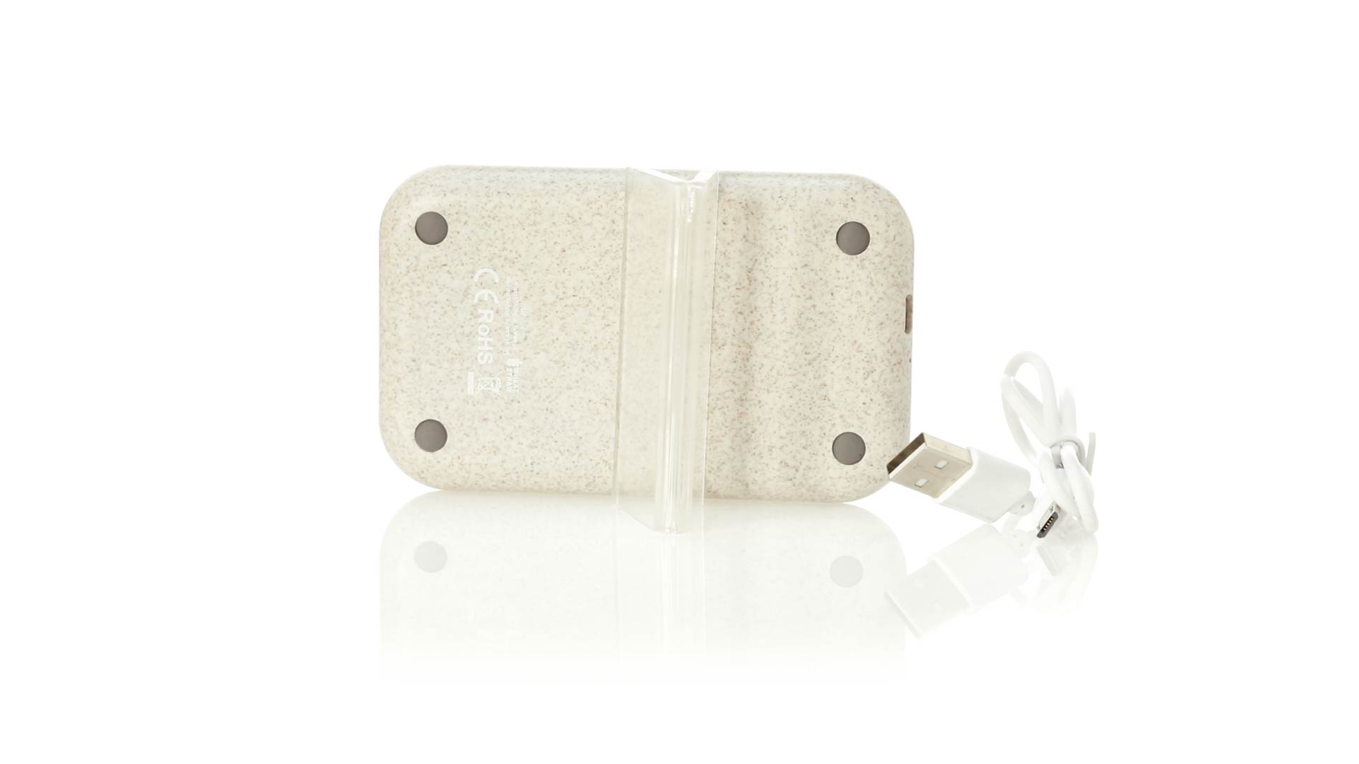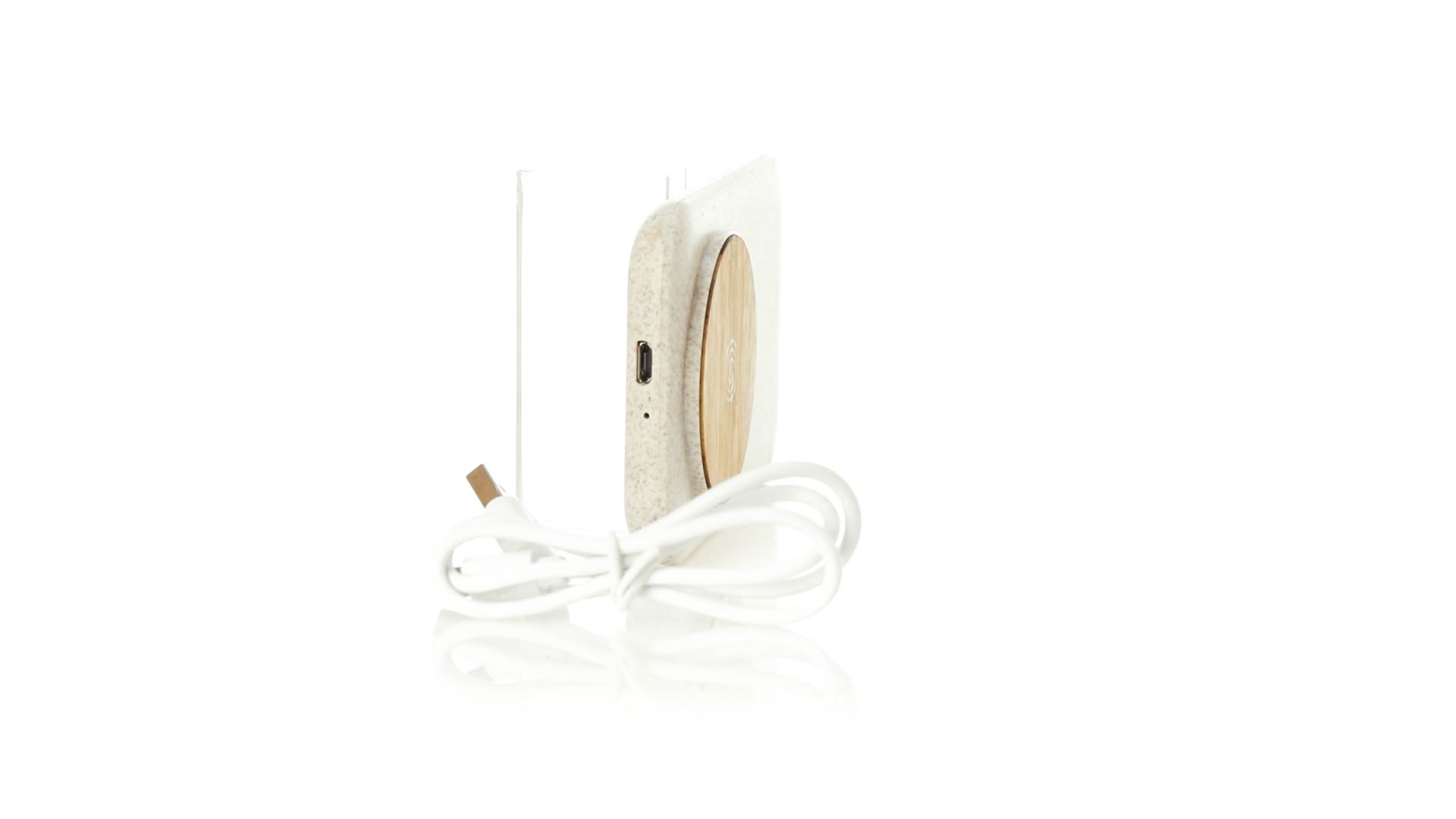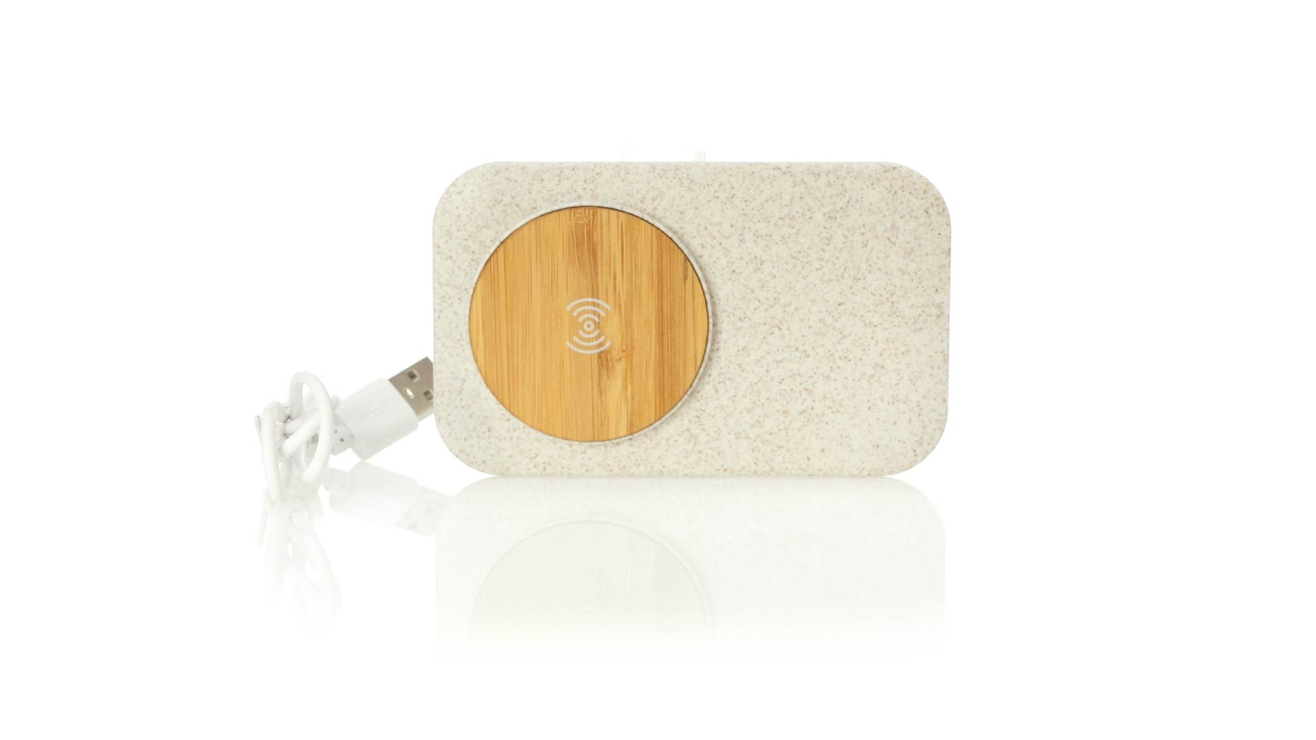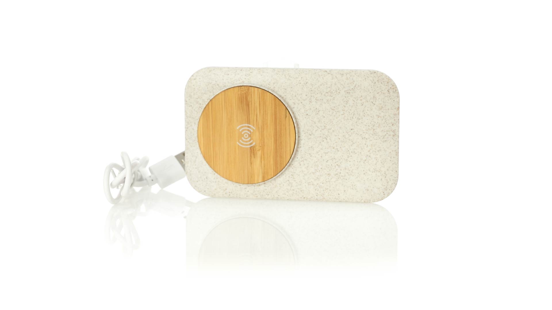 Kabelloses Ladegerät aus der Naturlinie. Bambusschale in Kombination mit Weizenstroh, um die Verwendung von natürlichen Rohstoffen zu fördern und Schadstoffemissionen zu reduzieren. Ladeanzeige und kompatibel mit Geräten, die mit drahtloser Ladetechnologie ausgestattet sind. Grosser Druckbereich und präsentiert in einer attraktiven, individuellen Öko-Design-Box. Inklusive Kabel