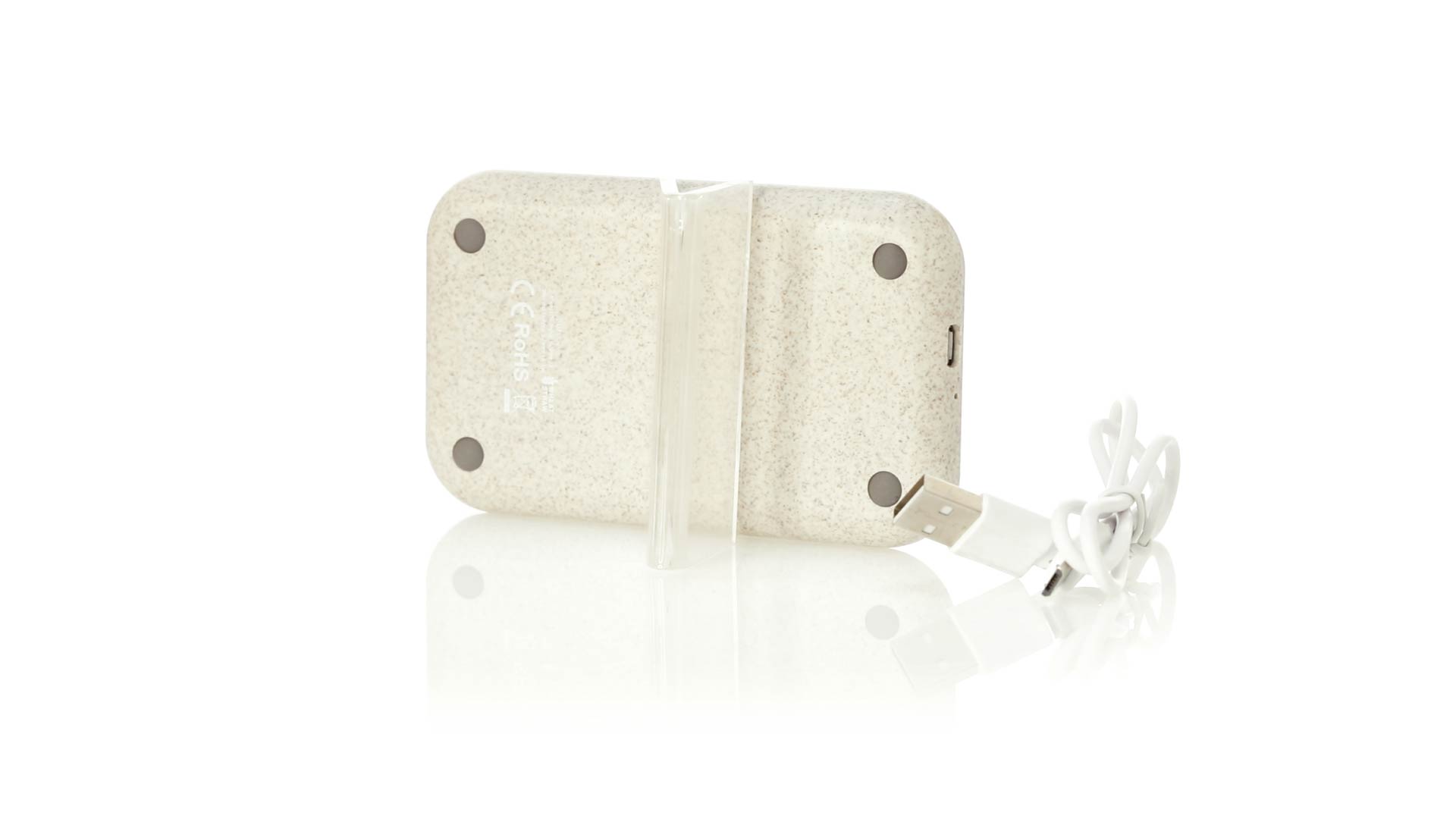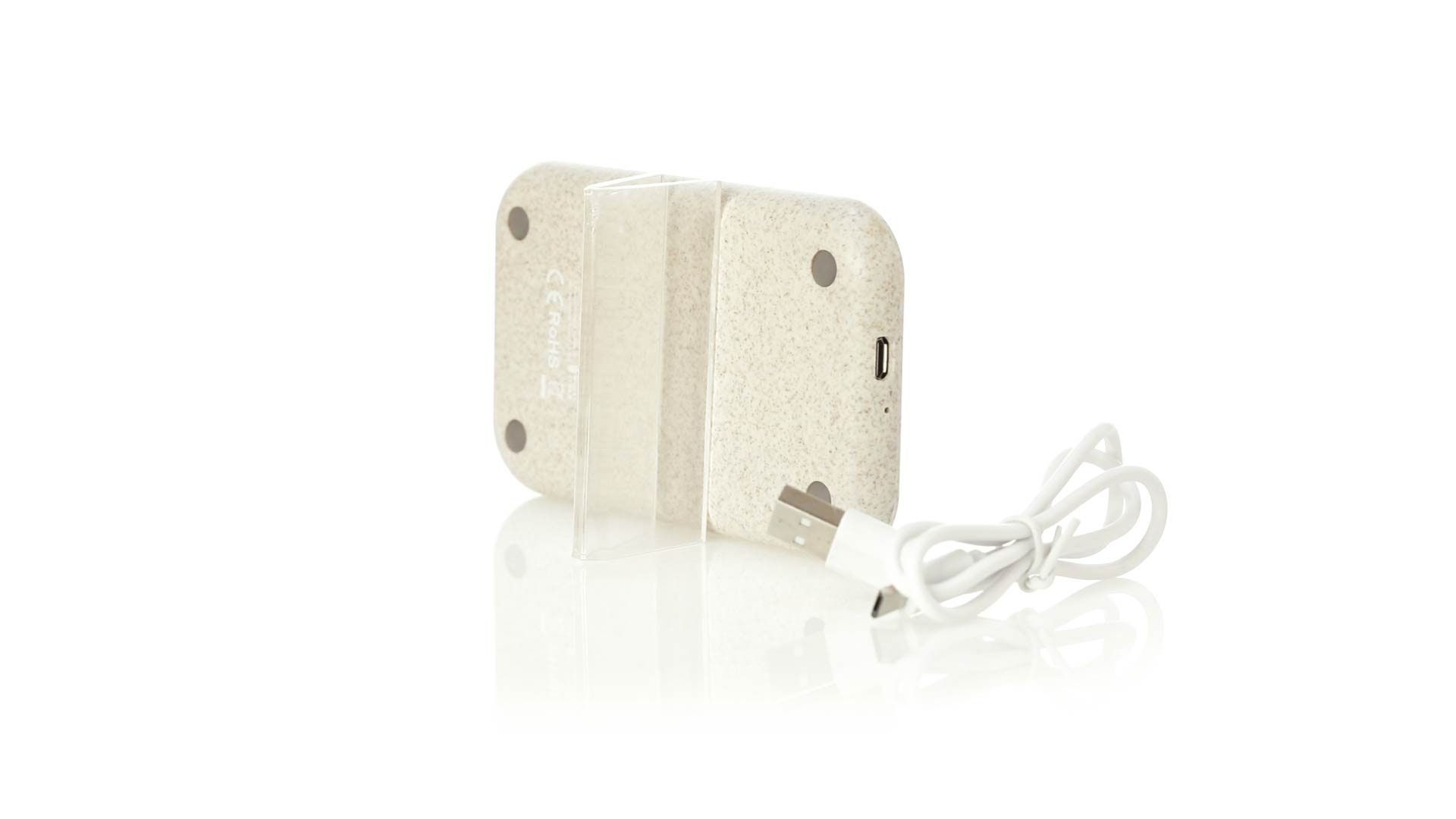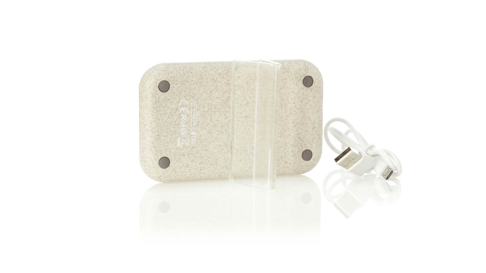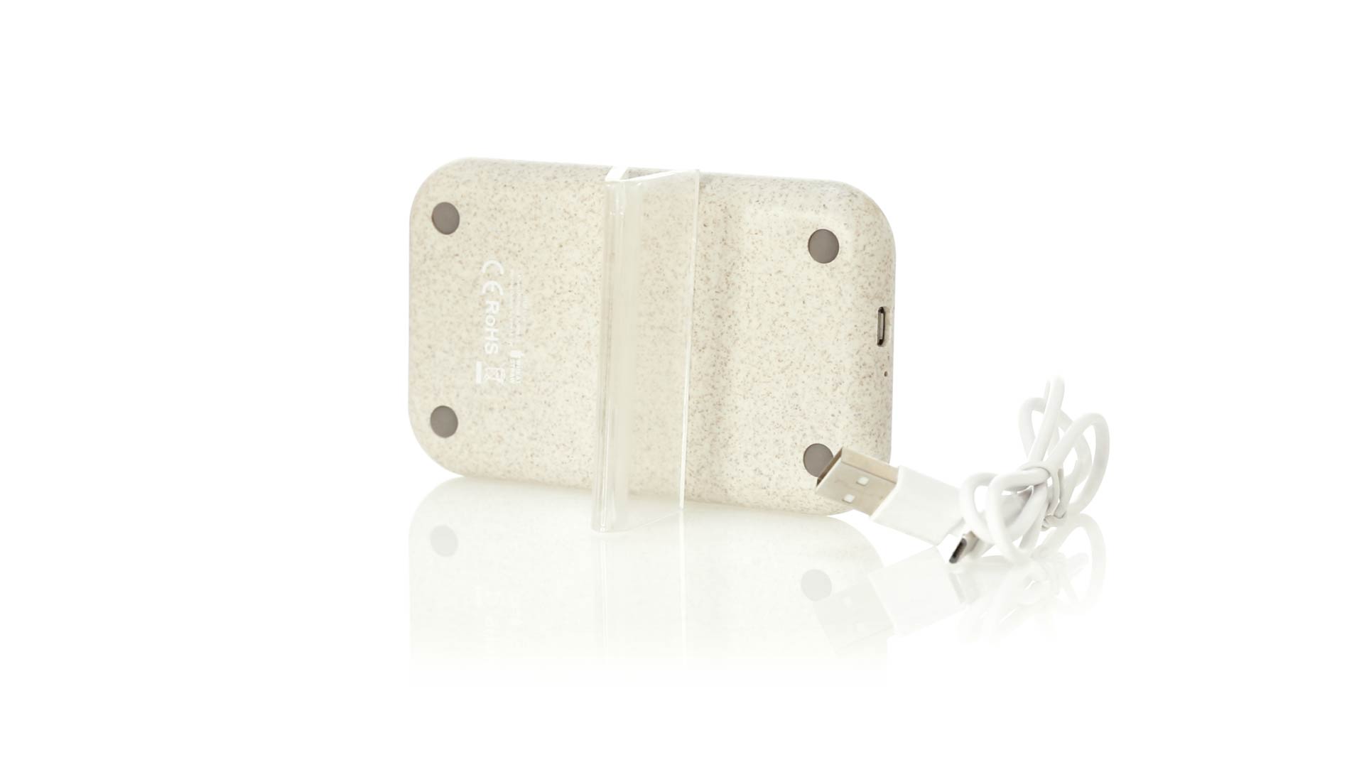 Kabelloses Ladegerät aus der Naturlinie. Bambusschale in Kombination mit Weizenstroh, um die Verwendung von natürlichen Rohstoffen zu fördern und Schadstoffemissionen zu reduzieren. Ladeanzeige und kompatibel mit Geräten, die mit drahtloser Ladetechnologie ausgestattet sind. Grosser Druckbereich und präsentiert in einer attraktiven, individuellen Öko-Design-Box. Inklusive Kabel