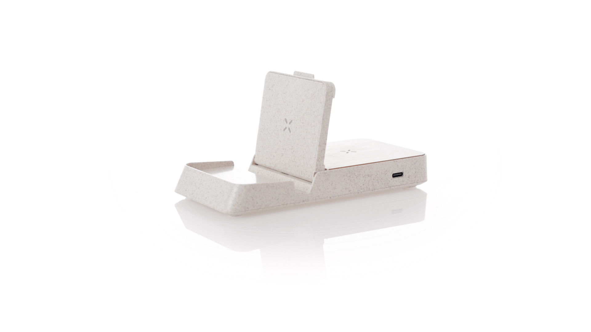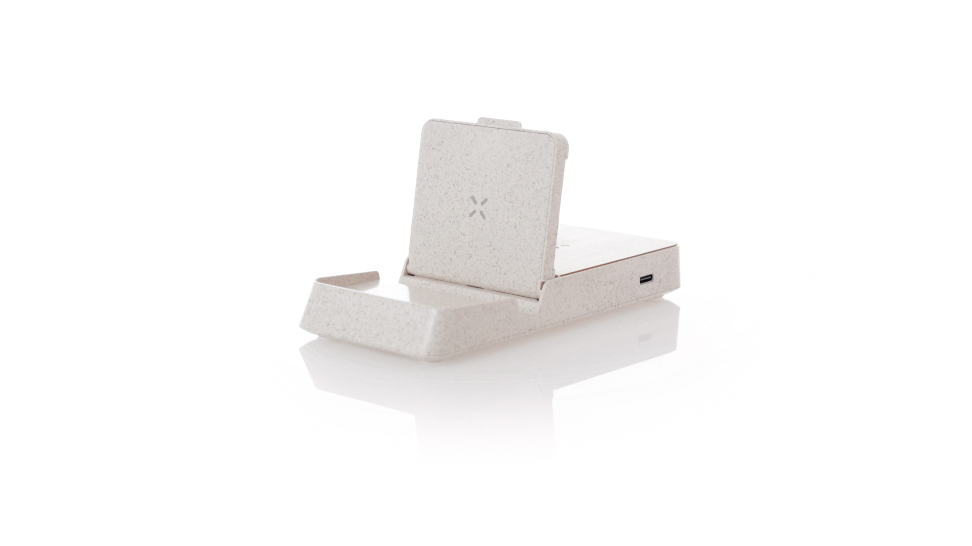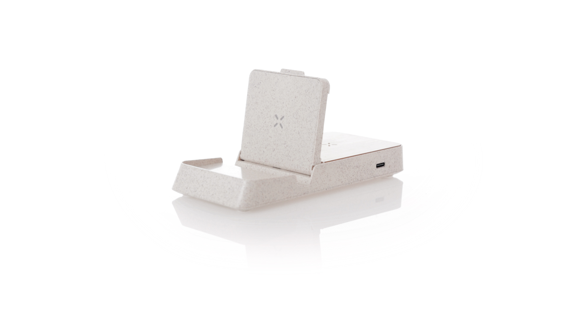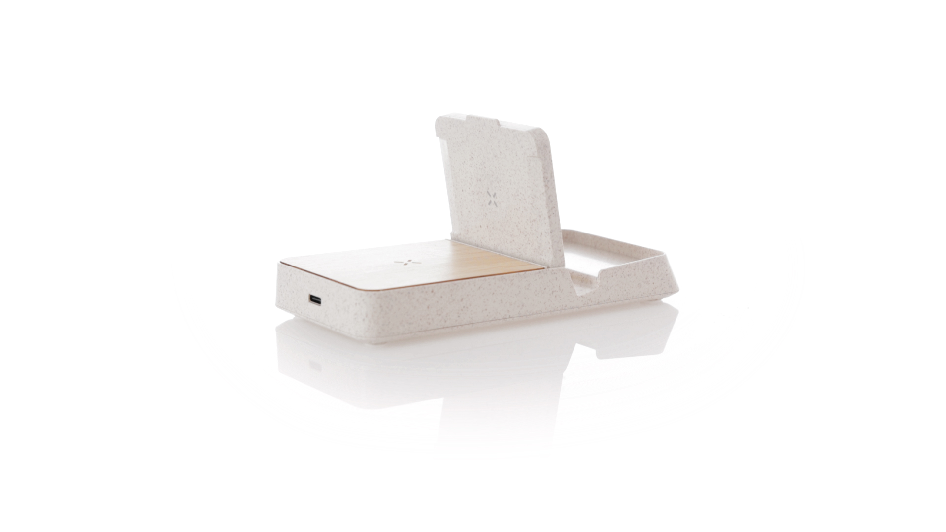Komplettes kabelloses 15-W-Ladegerät mit Halterung, hergestellt aus einer Kombination von Bambus und Weizenstroh. Entwickelt für das gleichzeitige Aufladen von Smartphone, Smartwatch und Kopfhörern, sowohl kabellos als auch über den Typ-C-Anschluss. Eine vielseitige All-in-One-Ladestation mit Smartphone- oder Tablet-Halterung. Präsentiert in einer attraktiven individuellen Kraftbox und mit Bedienungsanleitung in Englisch und Spanisch erhältlich.Weizenstroh fördert die Verwendung von natürlichen Rohstoffen und reduziert so den Schadstoffausstoss.Materialien wie Bambus fördern die Verwendung natürlicher Rohstoffe und verringern so den Schadstoffausstoss. Bambus ist eine sehr widerstandsfähige und vielseitige Pflanze, die schnell wächst und sich regeneriert, was sie zu einer hervorragenden Alternative zu herkömmlichem Holz macht.Hergestellt gemäss den RoHS-Normen und unter Einhaltung der folgenden Sicherheitsanforderungen:Überhitzungsschutzsystem.Überladungsschutzsystem.Blockiersystem zur Vermeidung von Kurzschlüssen.
