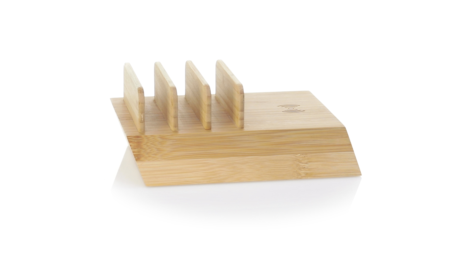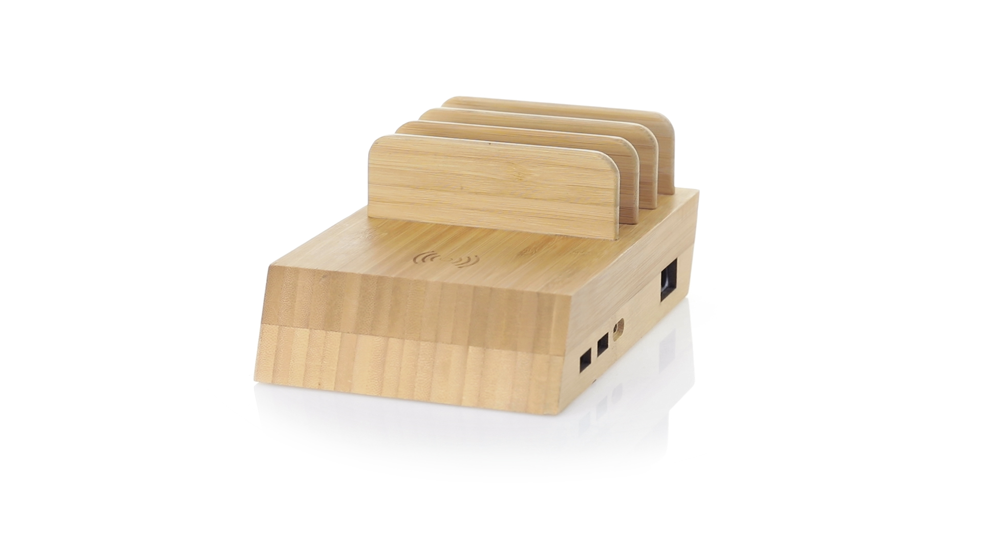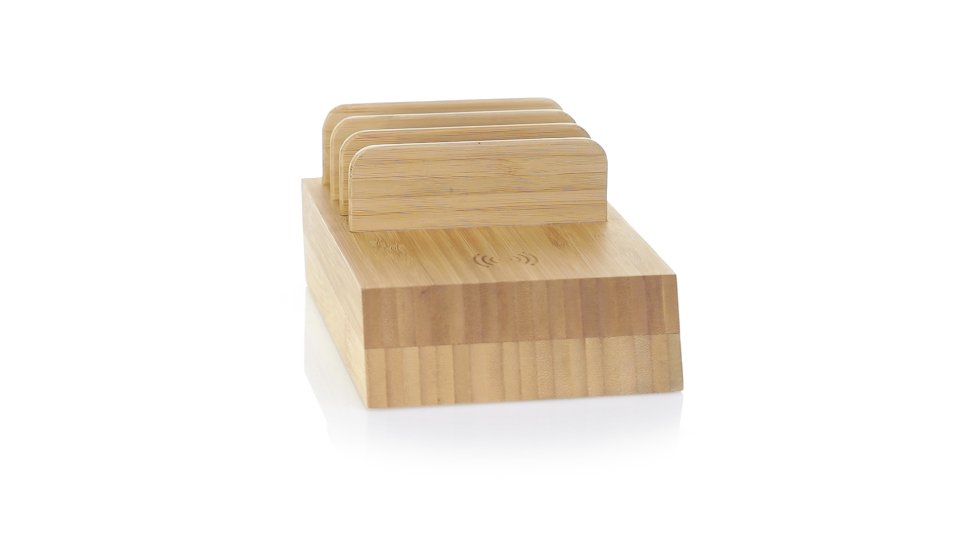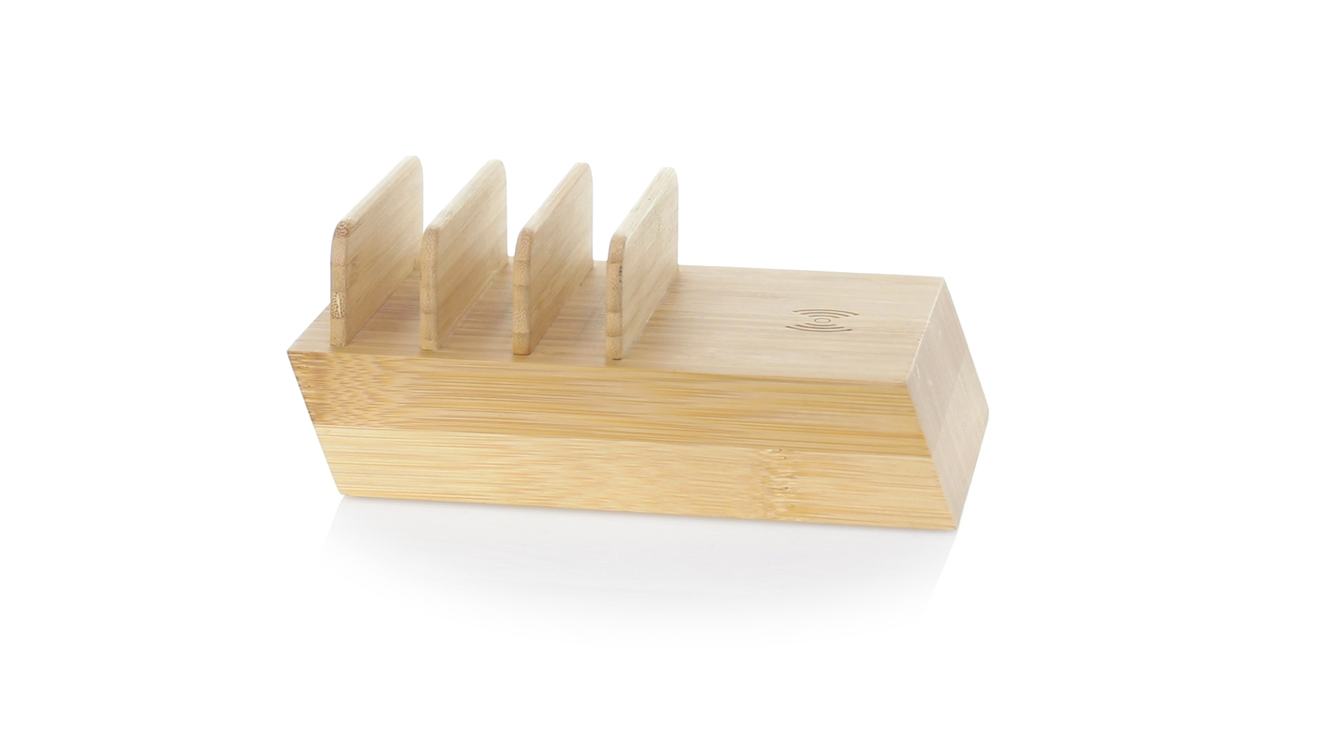 Linie "Natur" drahtlose Ladestation, Multi-Gerät und 10W-Ladung, kann bis zu 4 Geräte gleichzeitig aufladen. Hergestellt aus Bambus und mit 2 USB- und 1 Typ-C-Ausgang. Kompatibel mit Geräten, die mit kabelloser Ladetechnik ausgestattet sind. 150 cm langes Anschlusskabel, mit einem europäischen Stecker und breiter Druckfläche. Präsentiert in einer attraktiven Box im Öko-Design, mit Bedienungsanleitung in Englisch und Spanisch. Entspricht den Sicherheitsanforderungen: Überhitzungsschutzsystem, Schutzsystem gegen Überladung, Blockiersystem zur Vermeidung von Kurzschlüssen.