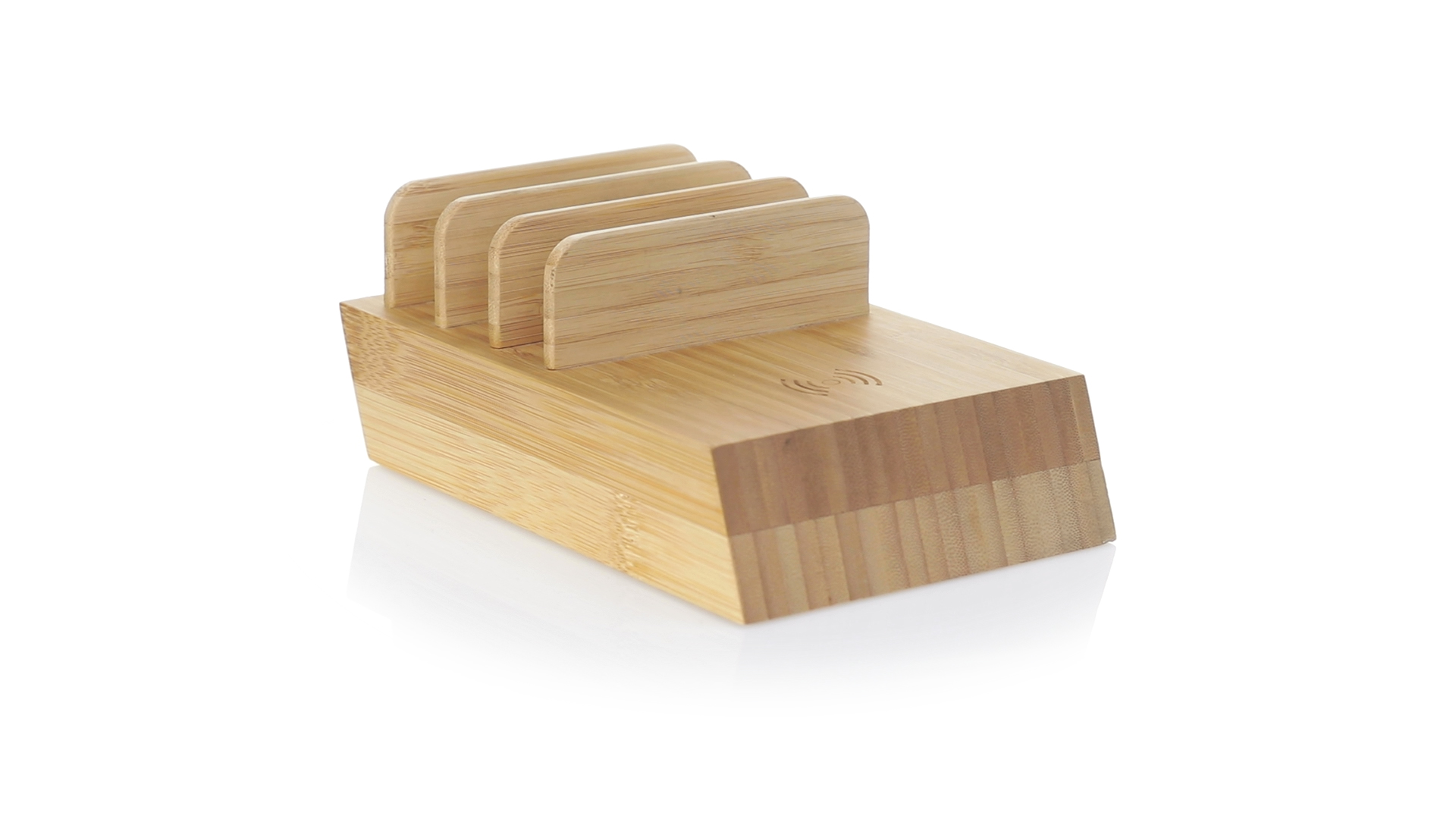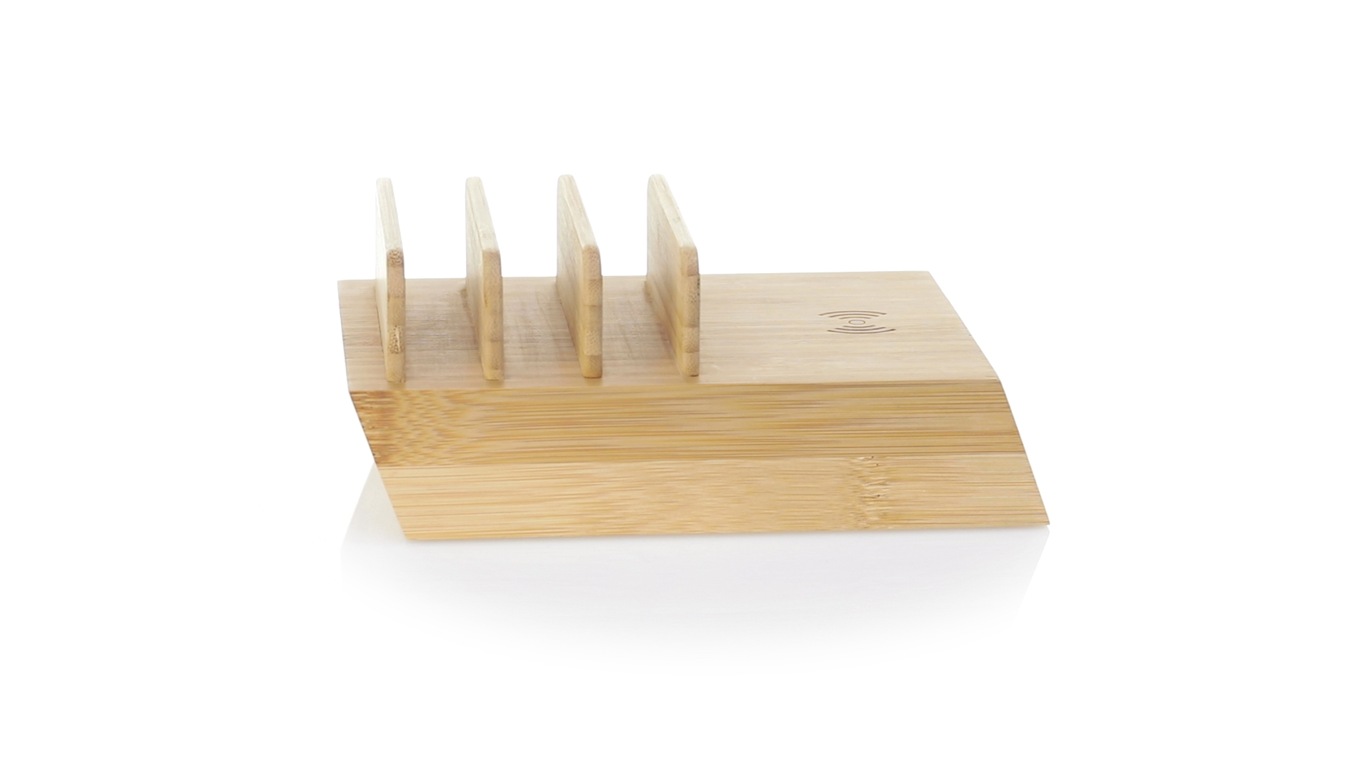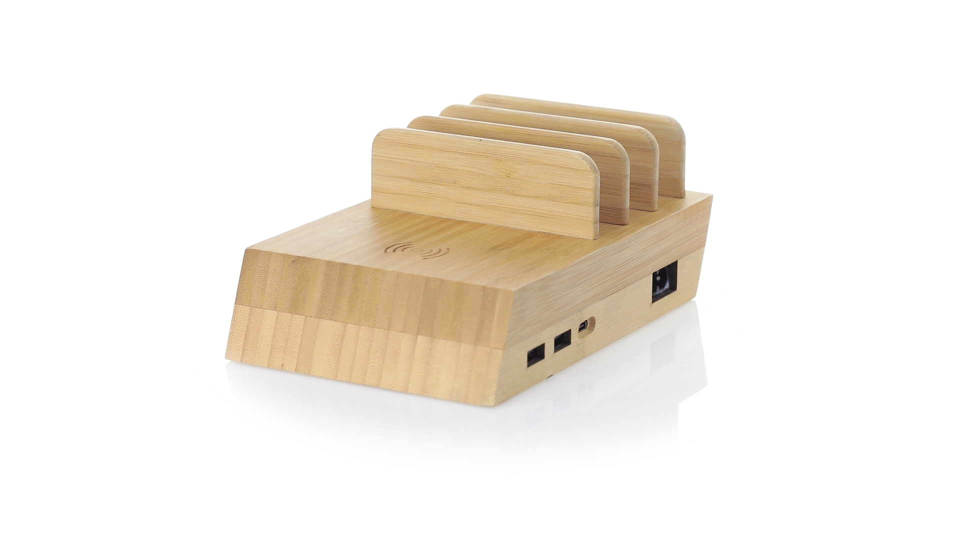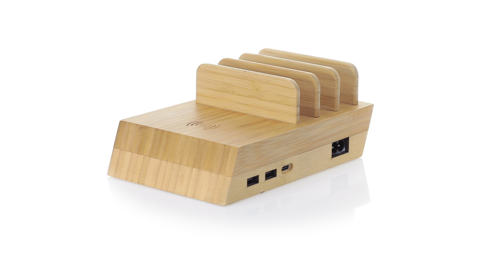 Linie "Natur" drahtlose Ladestation, Multi-Gerät und 10W-Ladung, kann bis zu 4 Geräte gleichzeitig aufladen. Hergestellt aus Bambus und mit 2 USB- und 1 Typ-C-Ausgang. Kompatibel mit Geräten, die mit kabelloser Ladetechnik ausgestattet sind. 150 cm langes Anschlusskabel, mit einem europäischen Stecker und breiter Druckfläche. Präsentiert in einer attraktiven Box im Öko-Design, mit Bedienungsanleitung in Englisch und Spanisch. Entspricht den Sicherheitsanforderungen: Überhitzungsschutzsystem, Schutzsystem gegen Überladung, Blockiersystem zur Vermeidung von Kurzschlüssen.