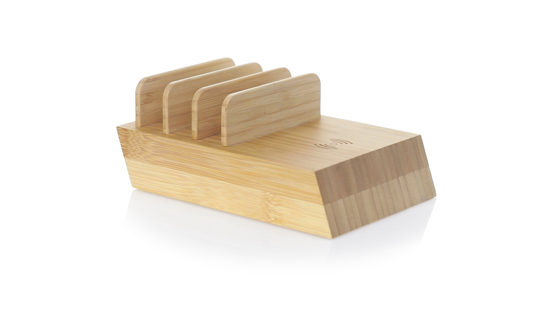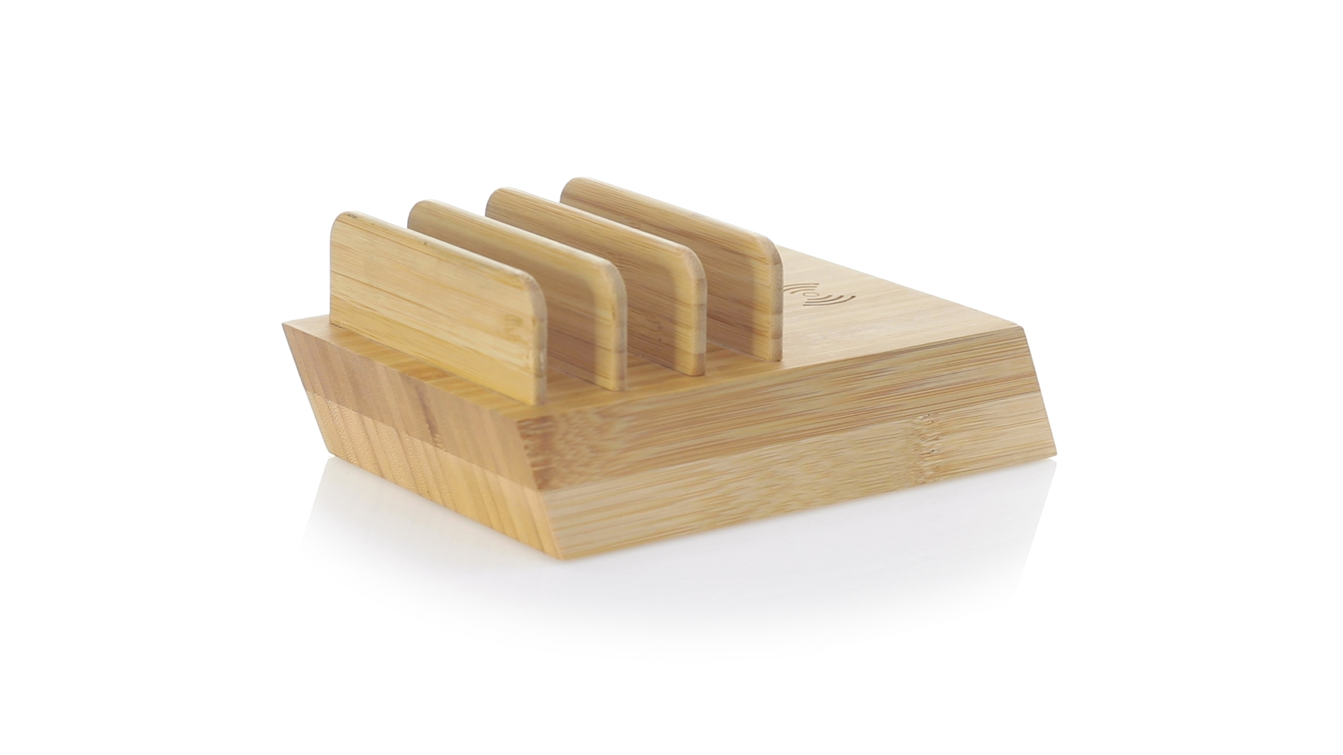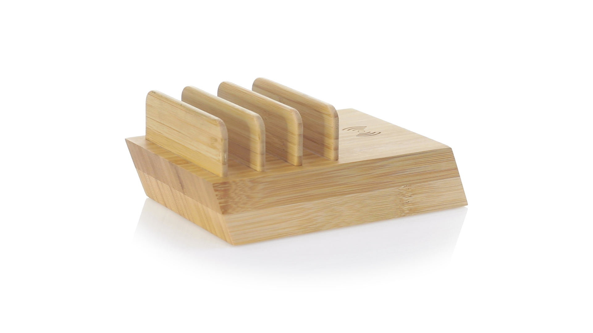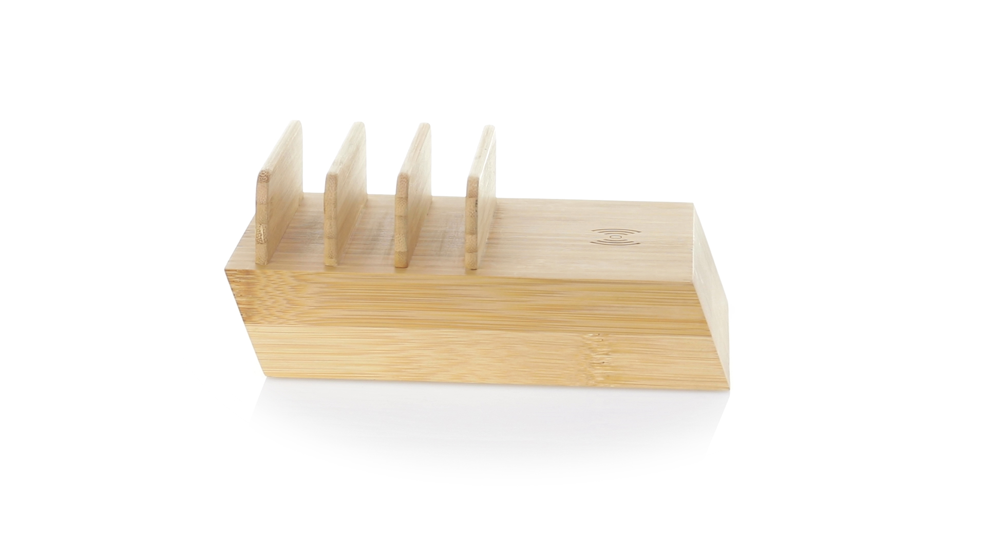 Linie "Natur" drahtlose Ladestation, Multi-Gerät und 10W-Ladung, kann bis zu 4 Geräte gleichzeitig aufladen. Hergestellt aus Bambus und mit 2 USB- und 1 Typ-C-Ausgang. Kompatibel mit Geräten, die mit kabelloser Ladetechnik ausgestattet sind. 150 cm langes Anschlusskabel, mit einem europäischen Stecker und breiter Druckfläche. Präsentiert in einer attraktiven Box im Öko-Design, mit Bedienungsanleitung in Englisch und Spanisch. Entspricht den Sicherheitsanforderungen: Überhitzungsschutzsystem, Schutzsystem gegen Überladung, Blockiersystem zur Vermeidung von Kurzschlüssen.