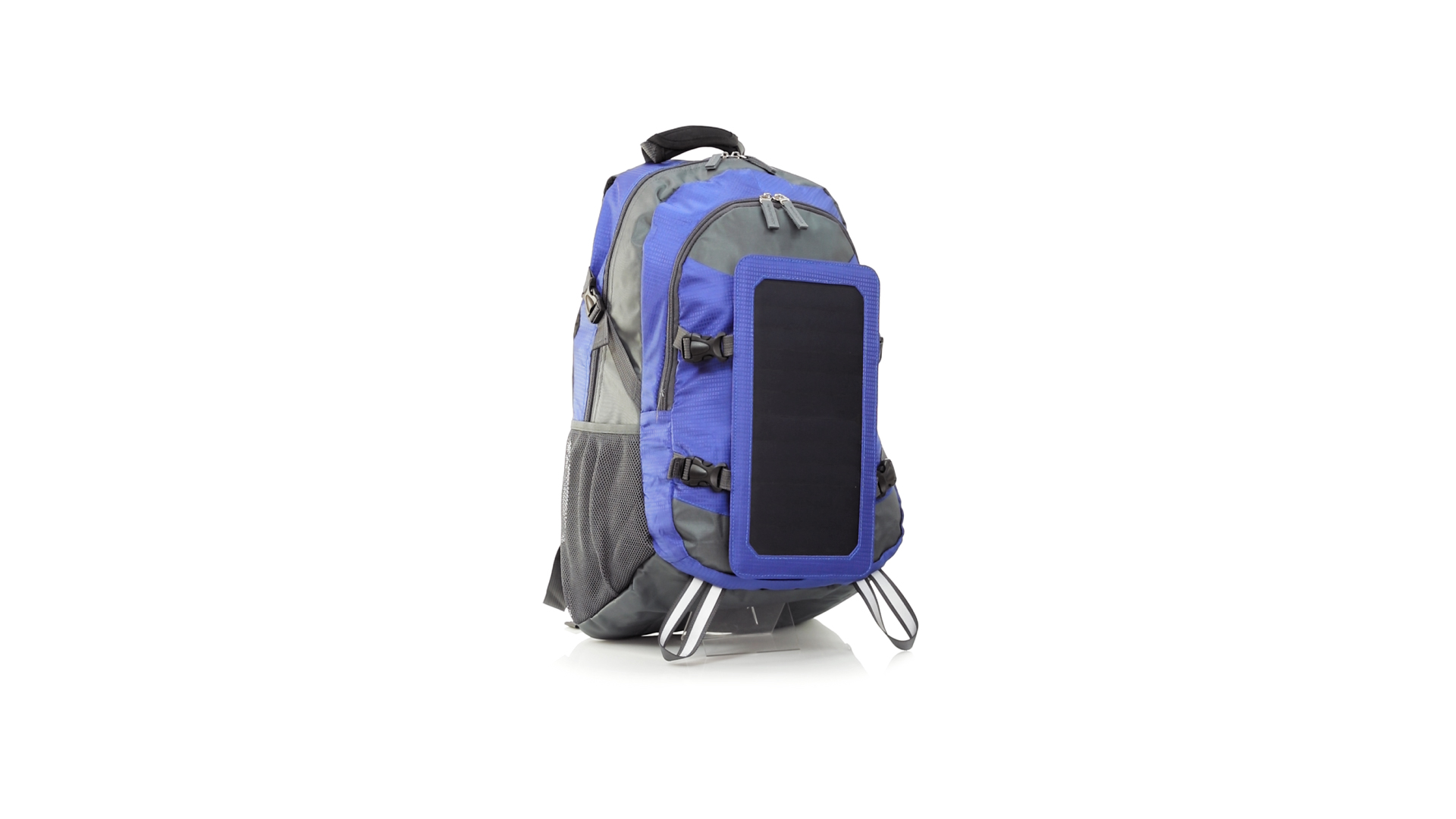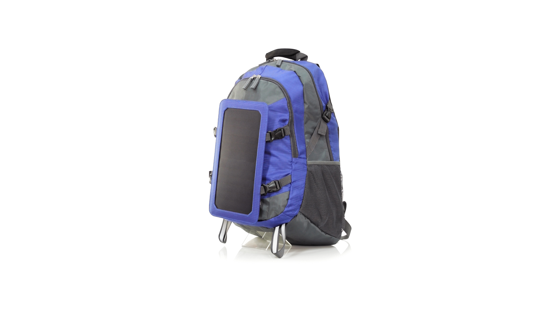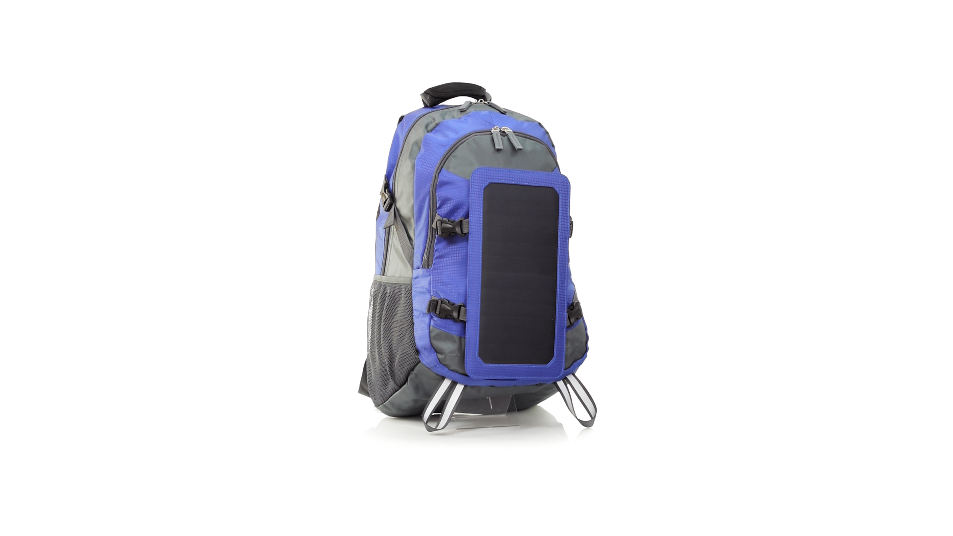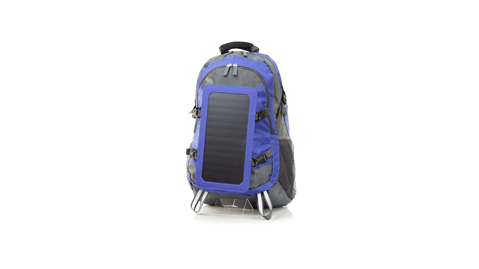 Completa mochila cargadora con panel solar de 6.5W, capaz de suministrar un ciclo de carga completo a la mayoría de los nuevos modelos de smartphones y tablets. Fabricada en resistente material ripstop. Salida de auriculares, con bolsillo interior acolchado para portátil de hasta 15 pulgadas y salida USB para carga de dispositivos (cable incluido). Con multitud de bolsillos, espalda con acolchado ergonómico y cintas de hombros ajustables y acolchadas. Cinta de ajuste para el pecho y prácticas cintas reflectantes.