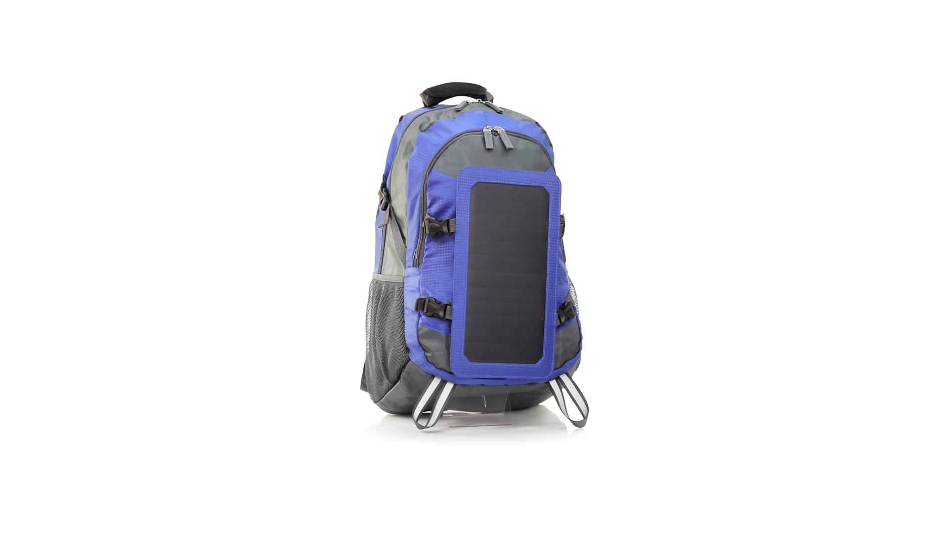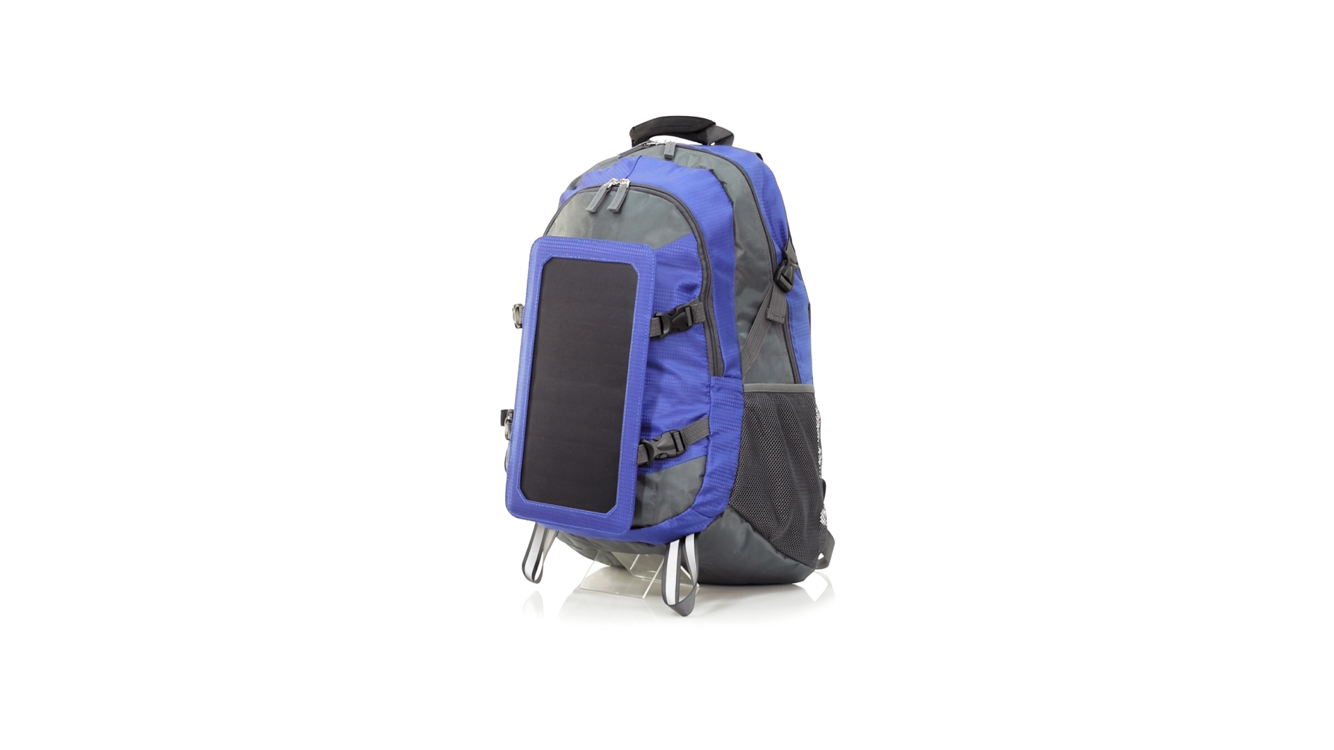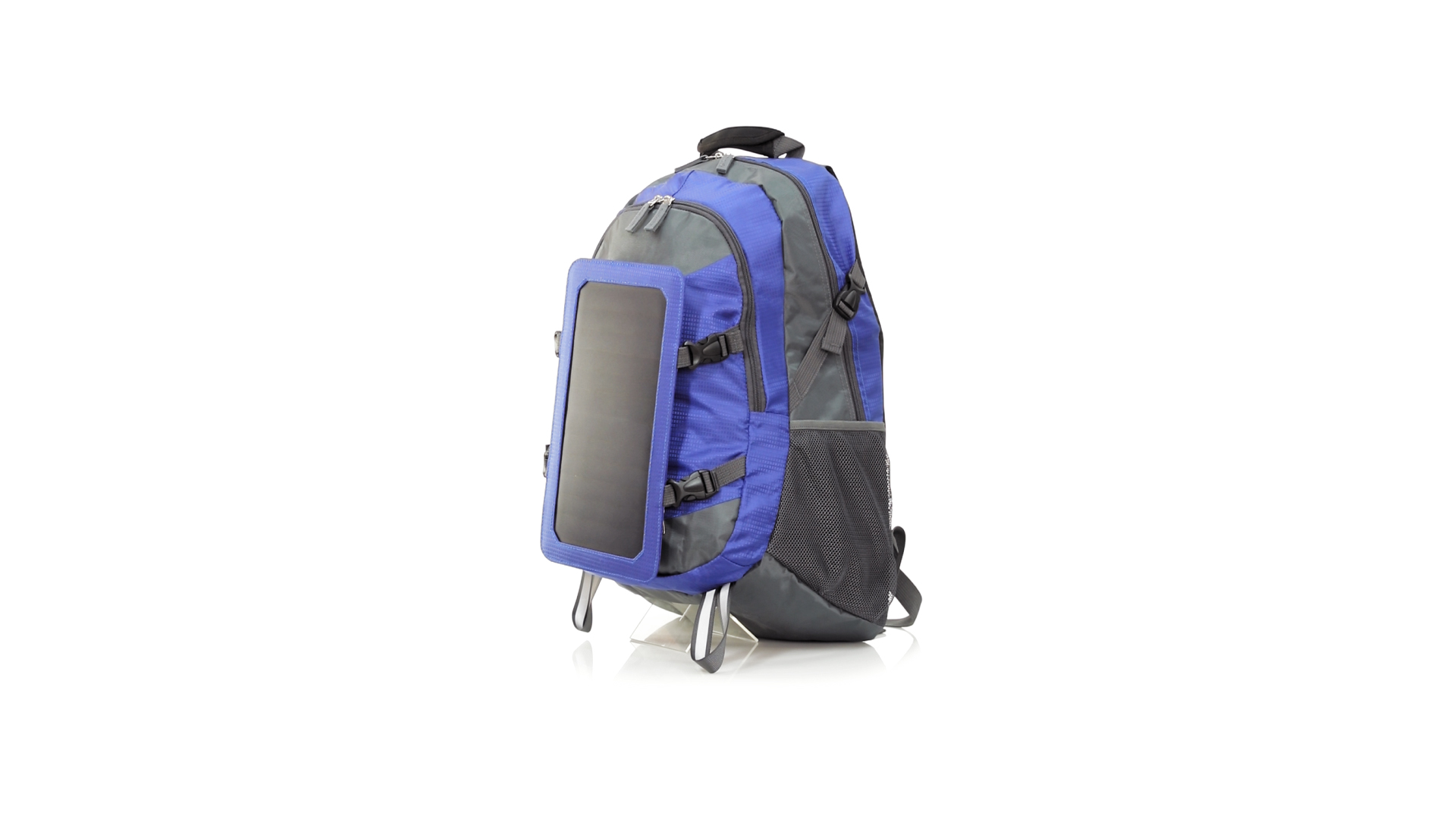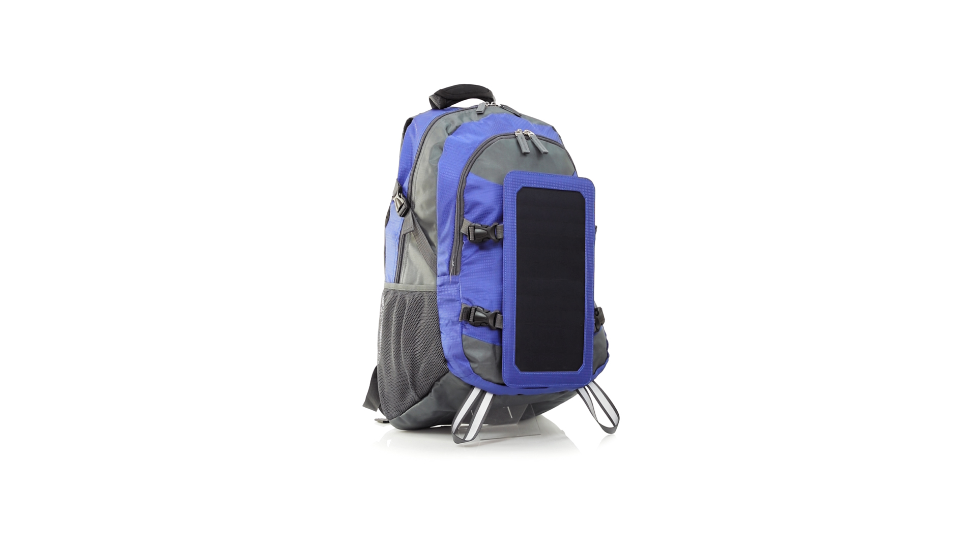 Completa mochila cargadora con panel solar de 6.5W, capaz de suministrar un ciclo de carga completo a la mayoría de los nuevos modelos de smartphones y tablets. Fabricada en resistente material ripstop. Salida de auriculares, con bolsillo interior acolchado para portátil de hasta 15 pulgadas y salida USB para carga de dispositivos (cable incluido). Con multitud de bolsillos, espalda con acolchado ergonómico y cintas de hombros ajustables y acolchadas. Cinta de ajuste para el pecho y prácticas cintas reflectantes.