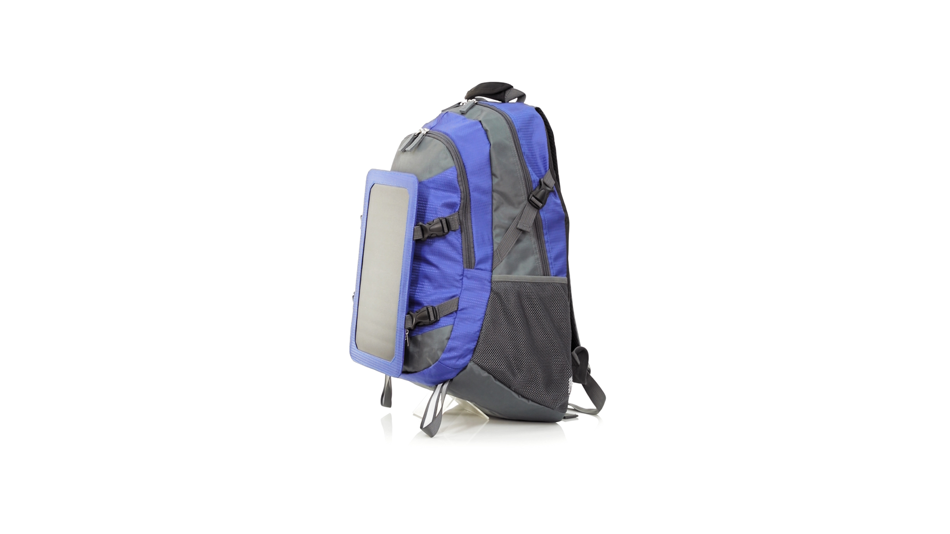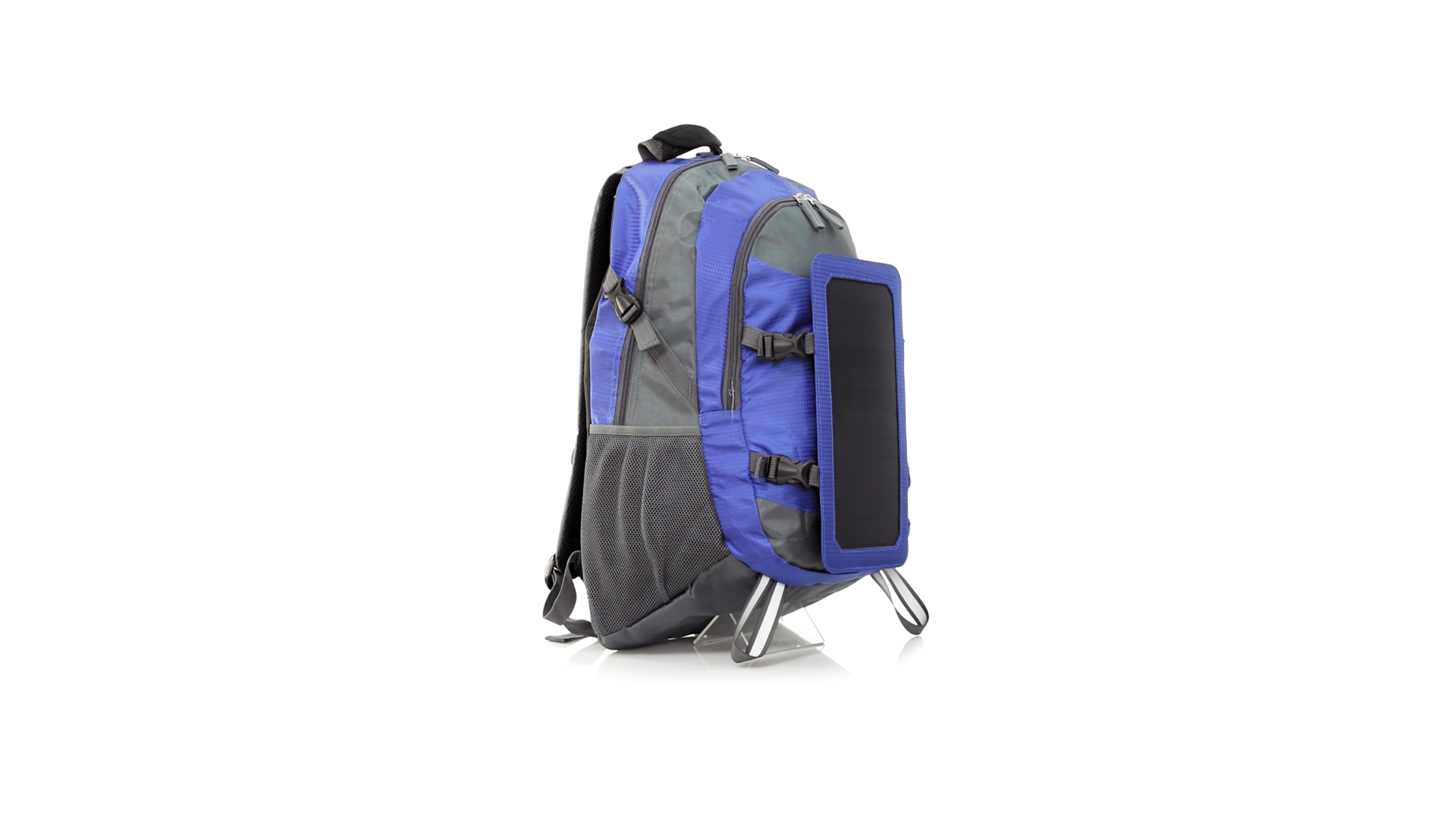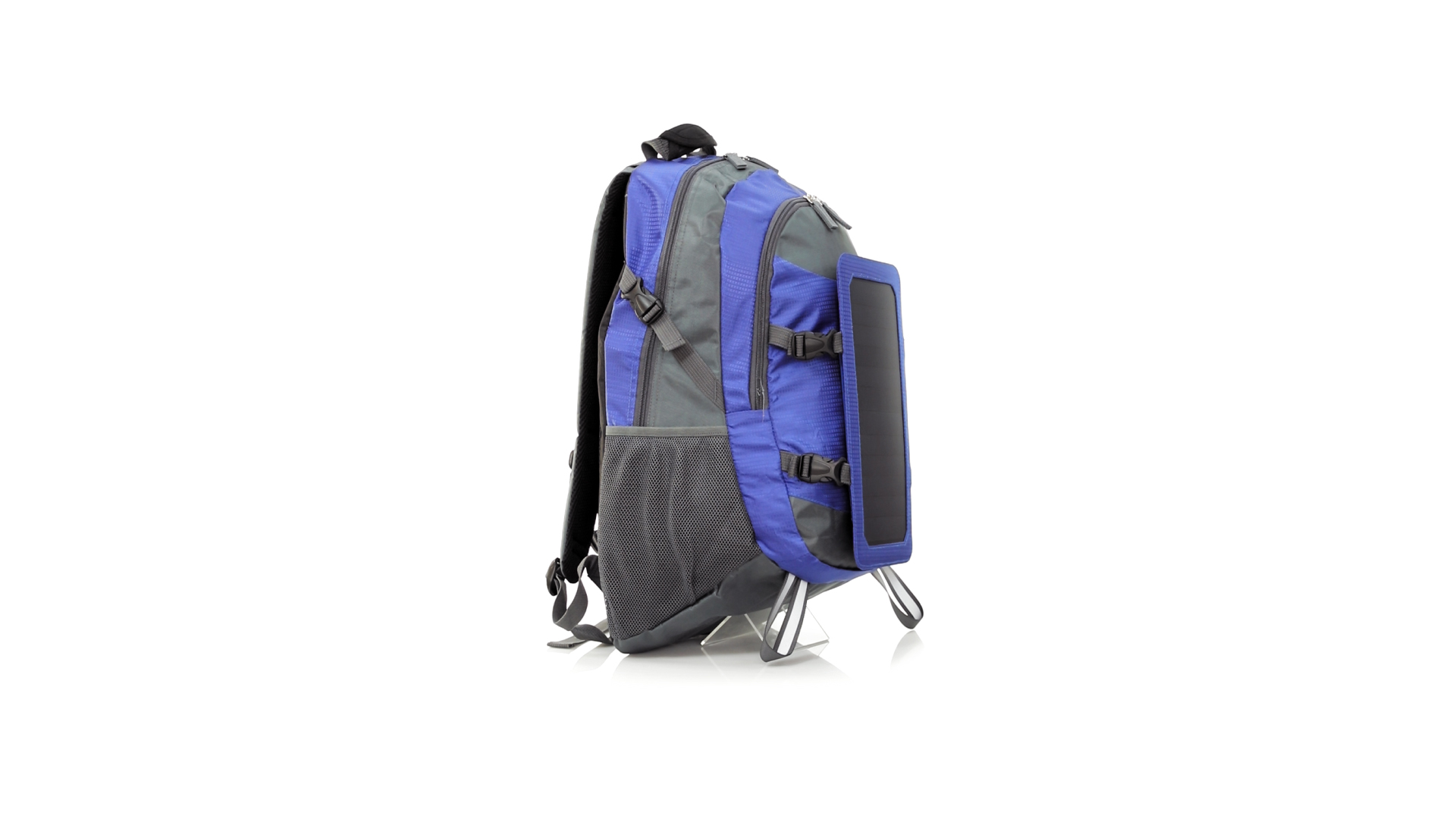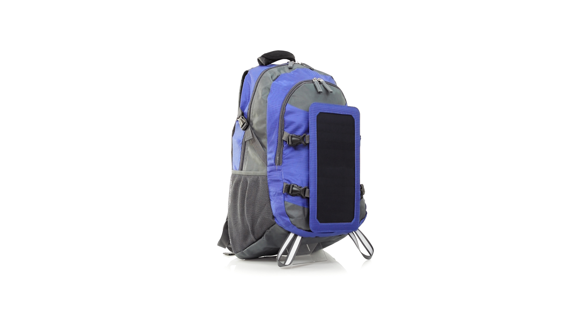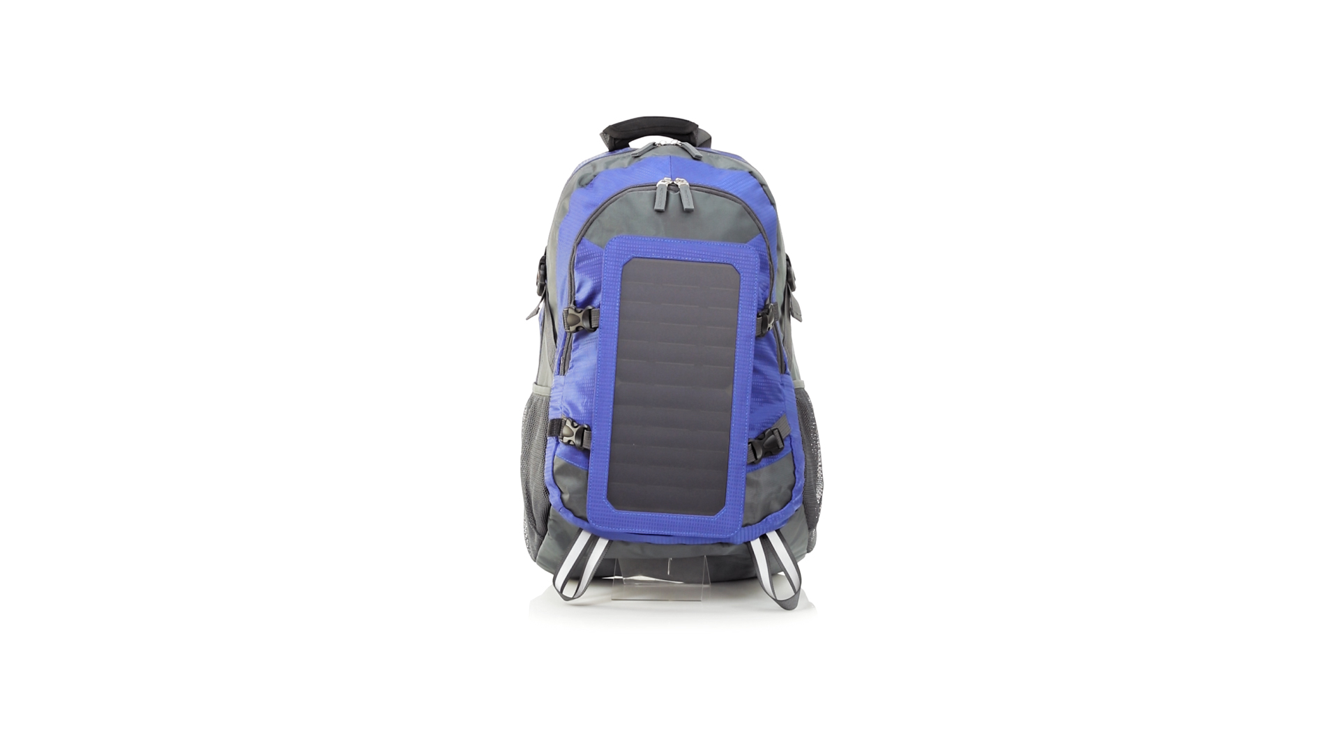 Completa mochila cargadora con panel solar de 6.5W, capaz de suministrar un ciclo de carga completo a la mayoría de los nuevos modelos de smartphones y tablets. Fabricada en resistente material ripstop. Salida de auriculares, con bolsillo interior acolchado para portátil de hasta 15 pulgadas y salida USB para carga de dispositivos (cable incluido). Con multitud de bolsillos, espalda con acolchado ergonómico y cintas de hombros ajustables y acolchadas. Cinta de ajuste para el pecho y prácticas cintas reflectantes.