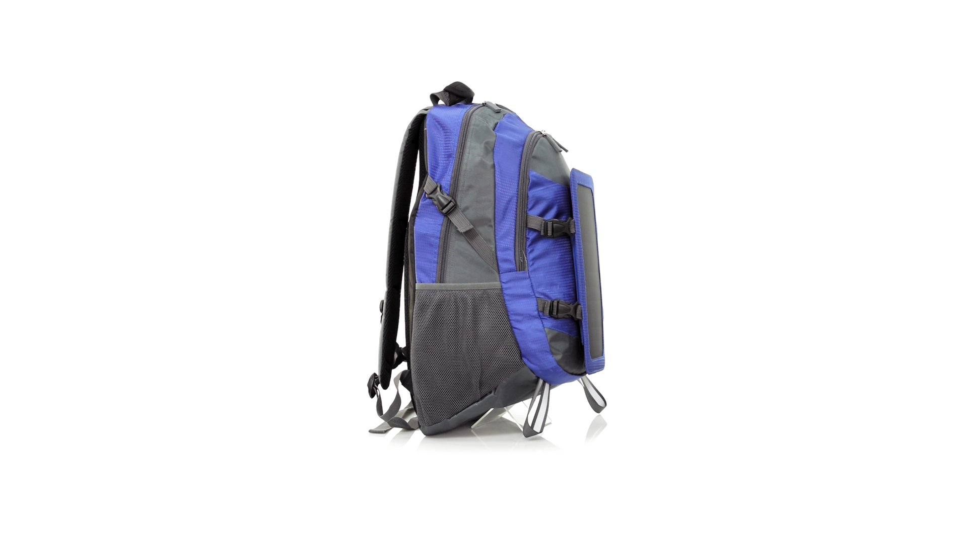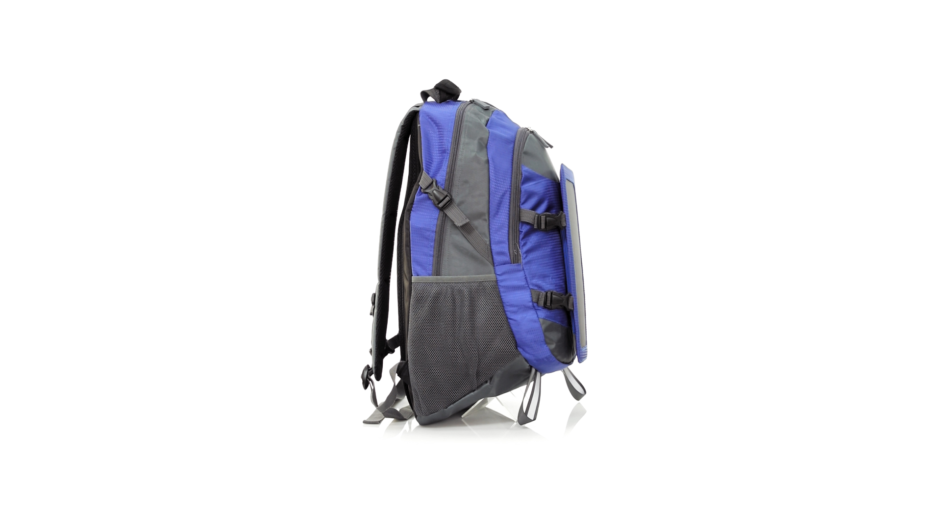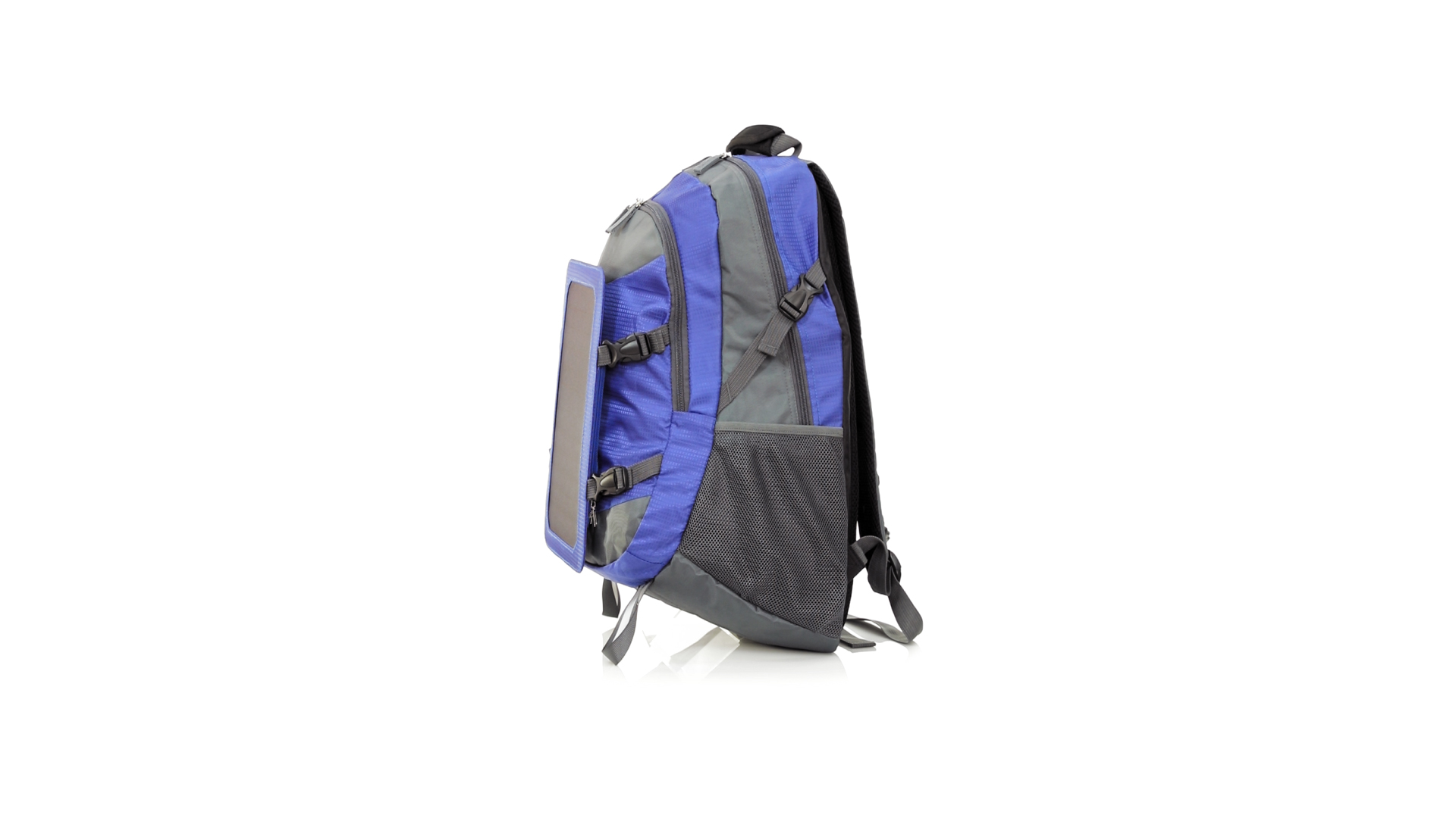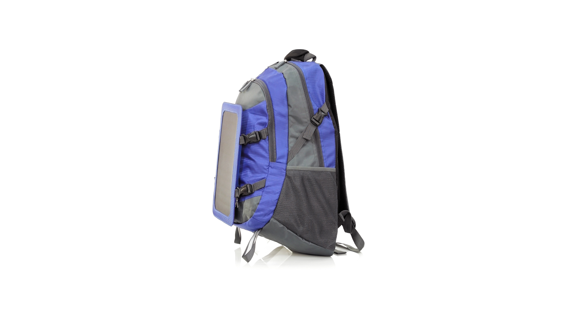 Completa mochila cargadora con panel solar de 6.5W, capaz de suministrar un ciclo de carga completo a la mayoría de los nuevos modelos de smartphones y tablets. Fabricada en resistente material ripstop. Salida de auriculares, con bolsillo interior acolchado para portátil de hasta 15 pulgadas y salida USB para carga de dispositivos (cable incluido). Con multitud de bolsillos, espalda con acolchado ergonómico y cintas de hombros ajustables y acolchadas. Cinta de ajuste para el pecho y prácticas cintas reflectantes.