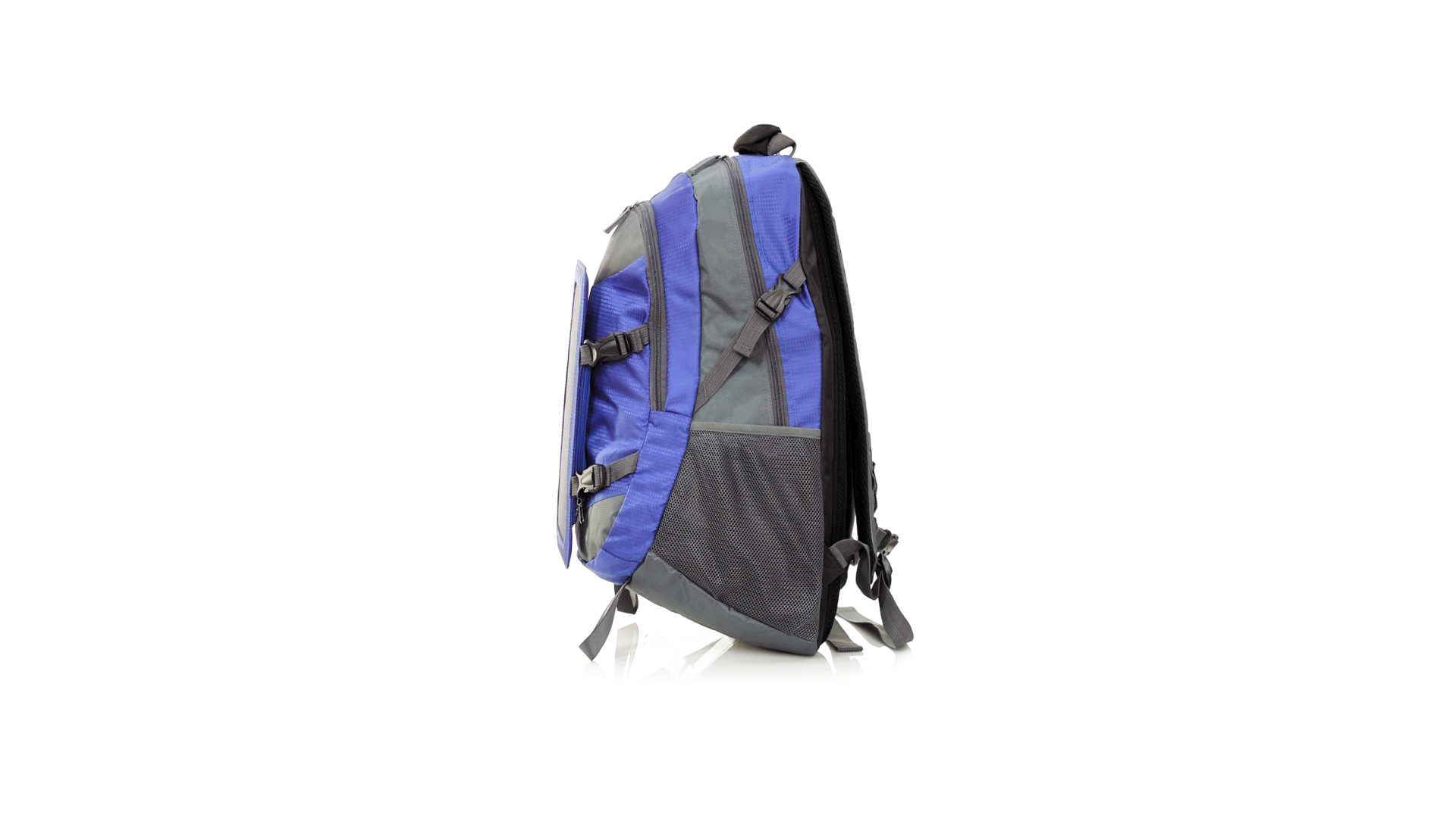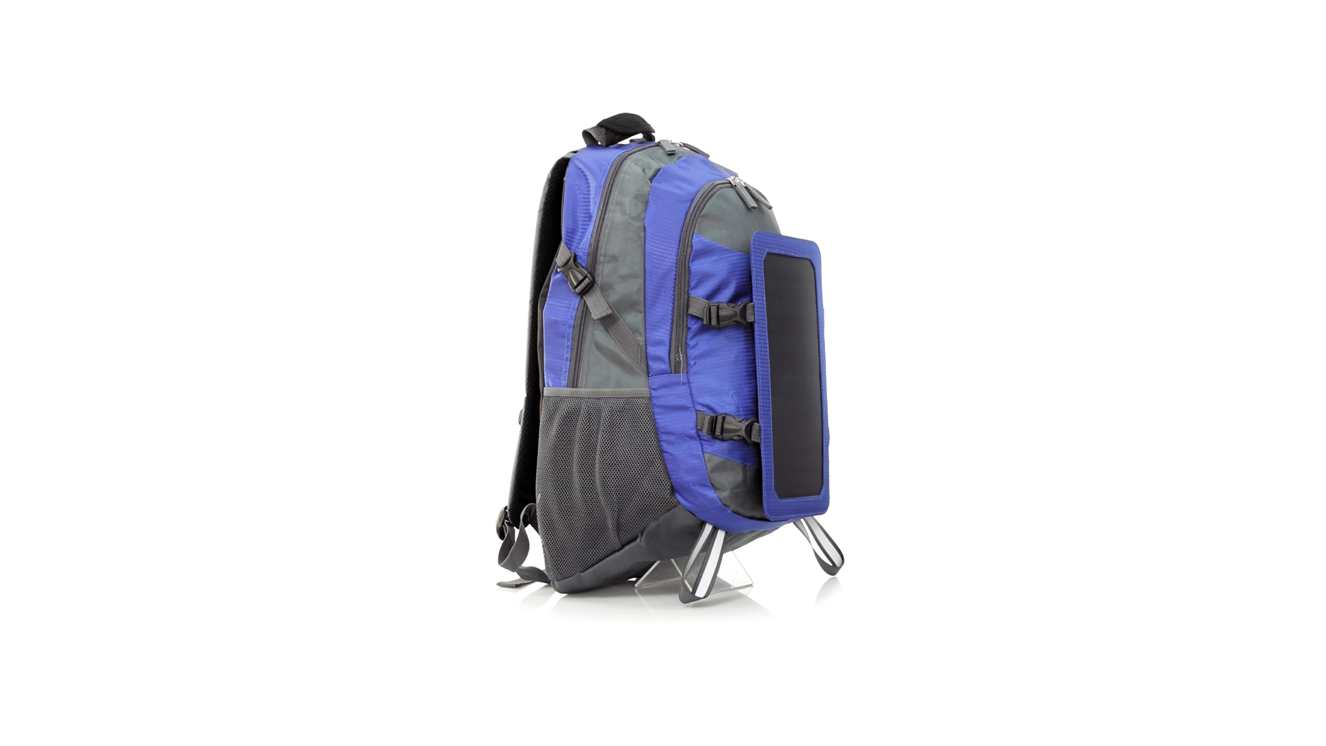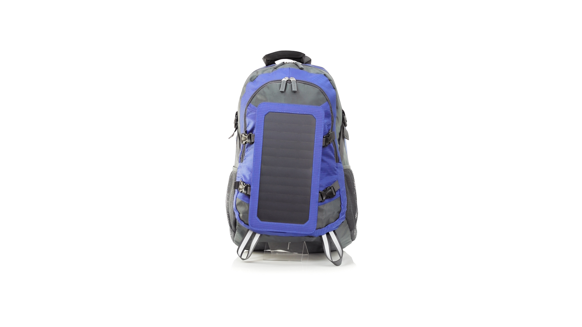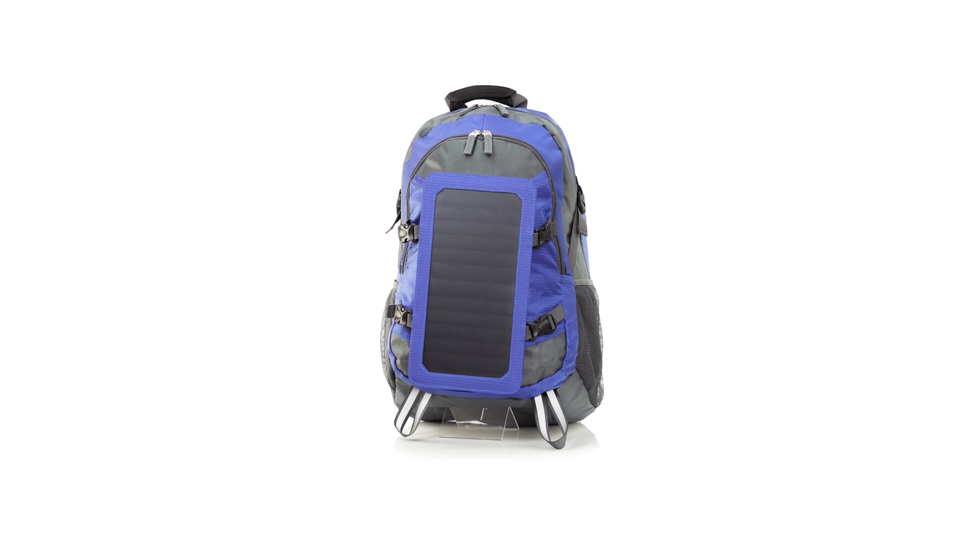 Completa mochila cargadora con panel solar de 6.5W, capaz de suministrar un ciclo de carga completo a la mayoría de los nuevos modelos de smartphones y tablets. Fabricada en resistente material ripstop. Salida de auriculares, con bolsillo interior acolchado para portátil de hasta 15 pulgadas y salida USB para carga de dispositivos (cable incluido). Con multitud de bolsillos, espalda con acolchado ergonómico y cintas de hombros ajustables y acolchadas. Cinta de ajuste para el pecho y prácticas cintas reflectantes.