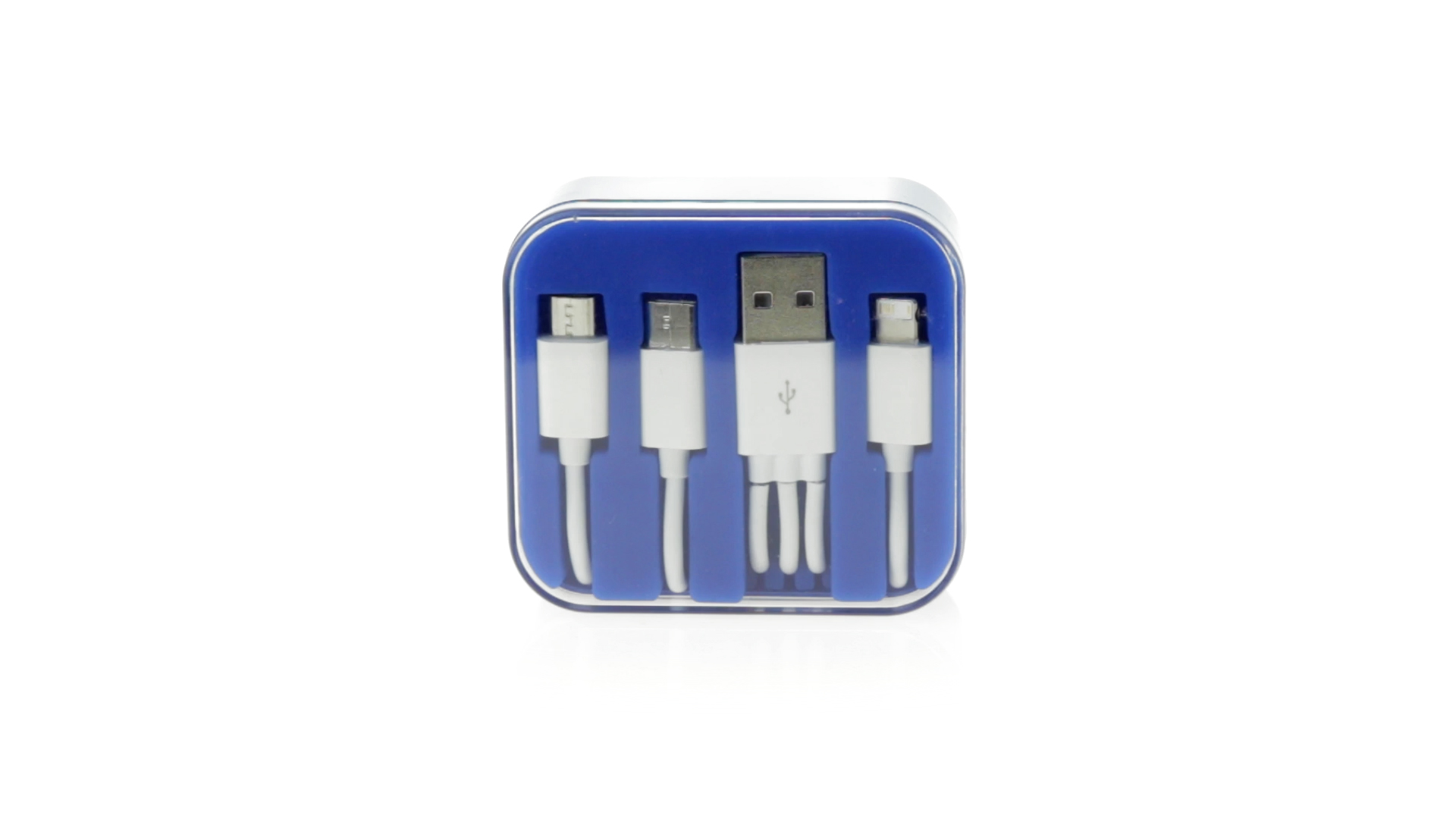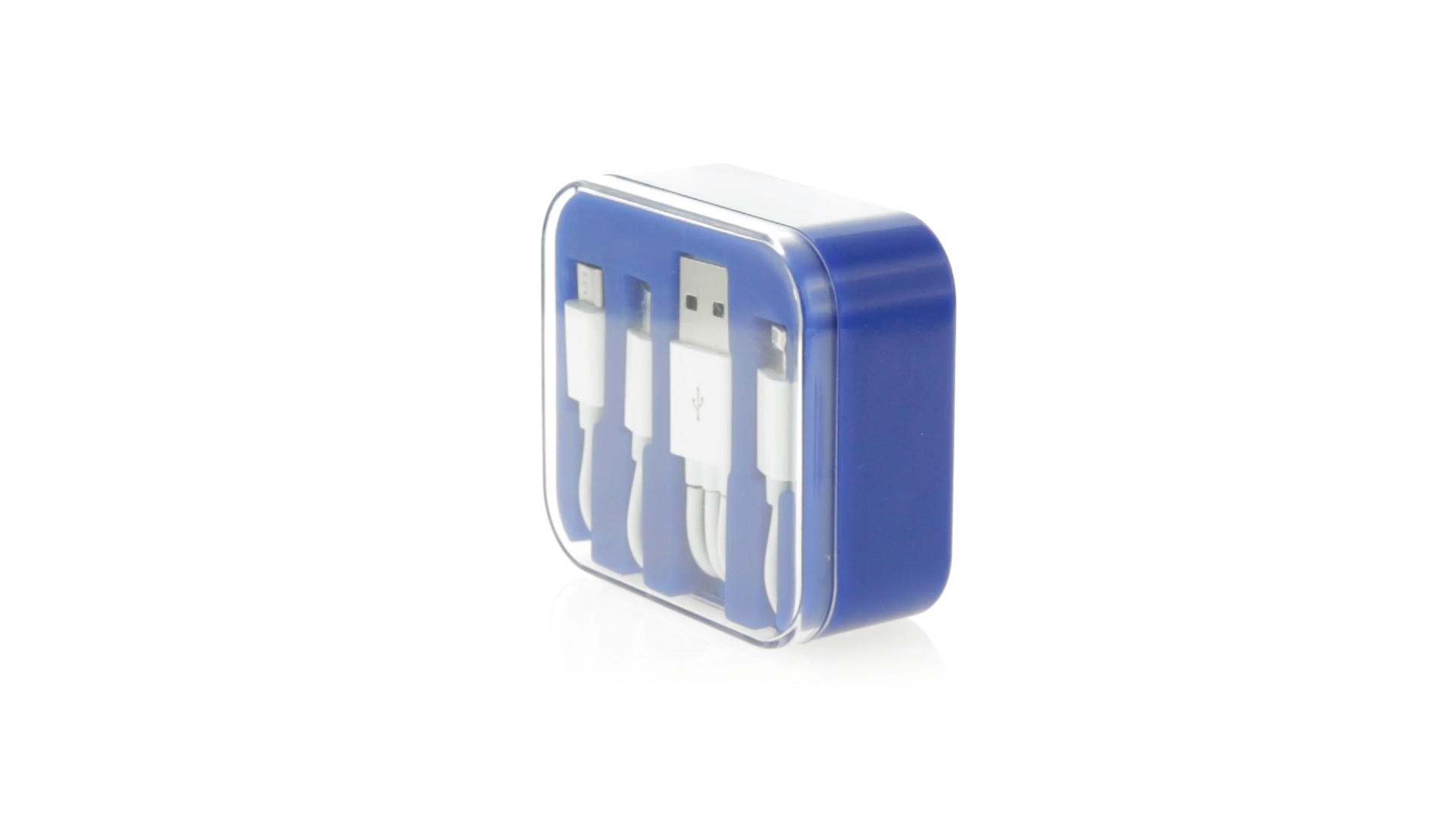 Ladebox in einer Vielzahl von Farben. Mit USB-C-, Micro-USB- und Lightning-Anschluss. Mit transparentem Deckel und Details aus Silikon.