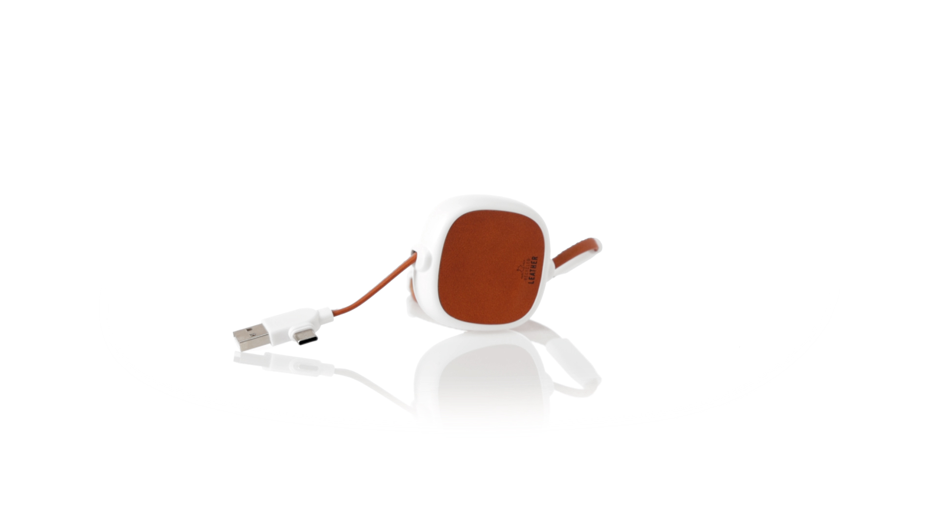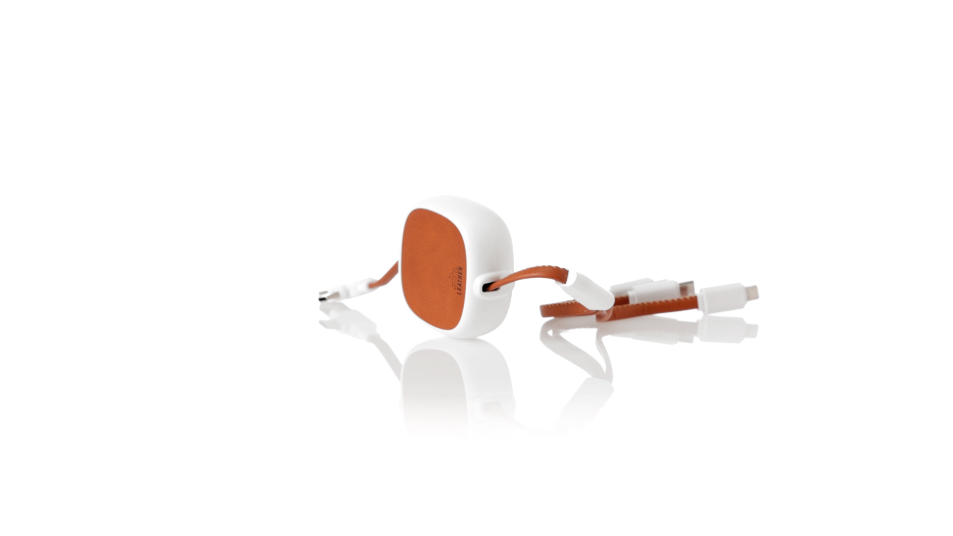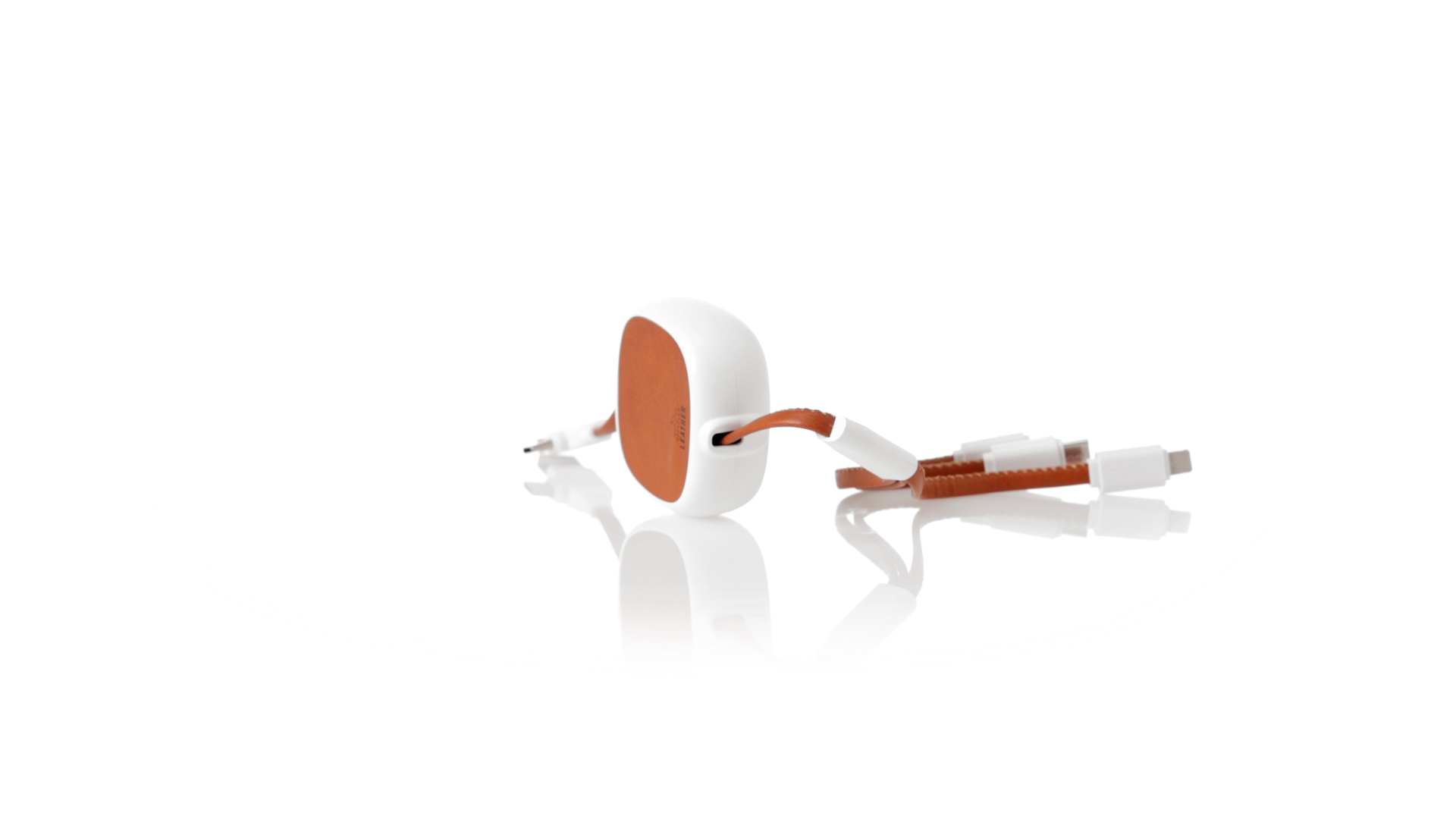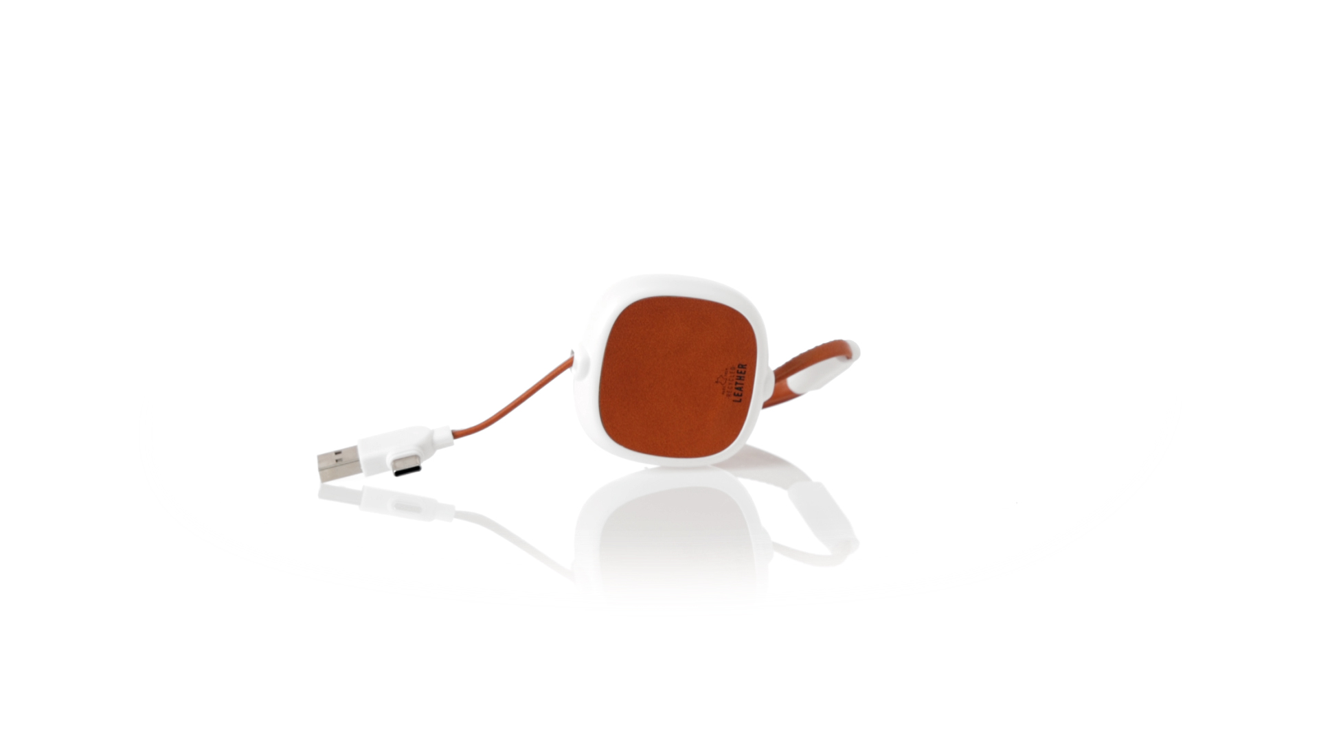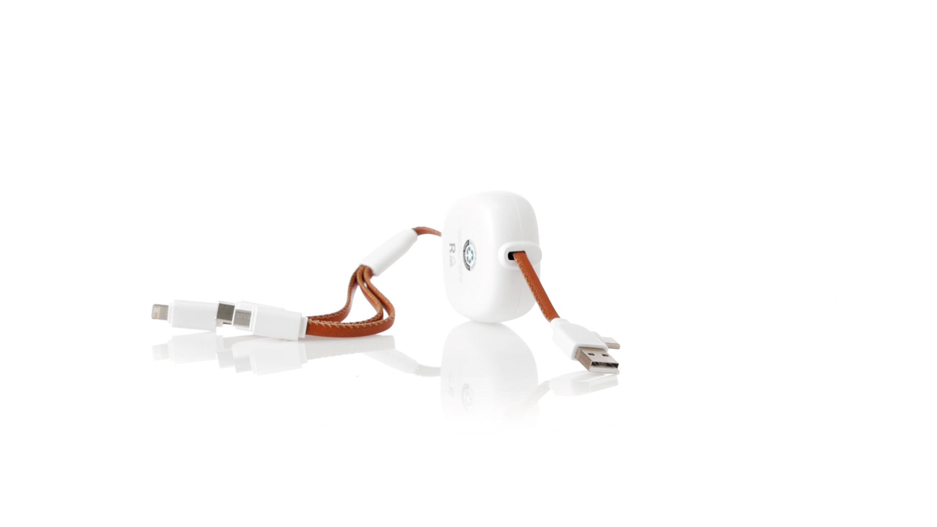 m langes, ausziehbares Ladekabel, hergestellt aus RABS und in elegantem Weiss, mit Kabeln und Details aus recyceltem Leder. Mittelteil mit recyceltem Lederbezug und internem Mechanismus zur Verlängerung des Kabels. Mit Typ-C- und USB-Eingangsanschlüssen sowie Typ-C-, Lightning- und Micro-USB-Ausgängen. 5 V DC 2,4 A RABS oder recyceltes ABS-Material und recyceltes Leder stammen aus dem Recycling von Artikeln am Ende ihrer Lebensdauer. Die verwendeten recycelten Materialien verfügen über eine RCS-Zertifizierung, die ihre recycelte Herkunft garantiert.