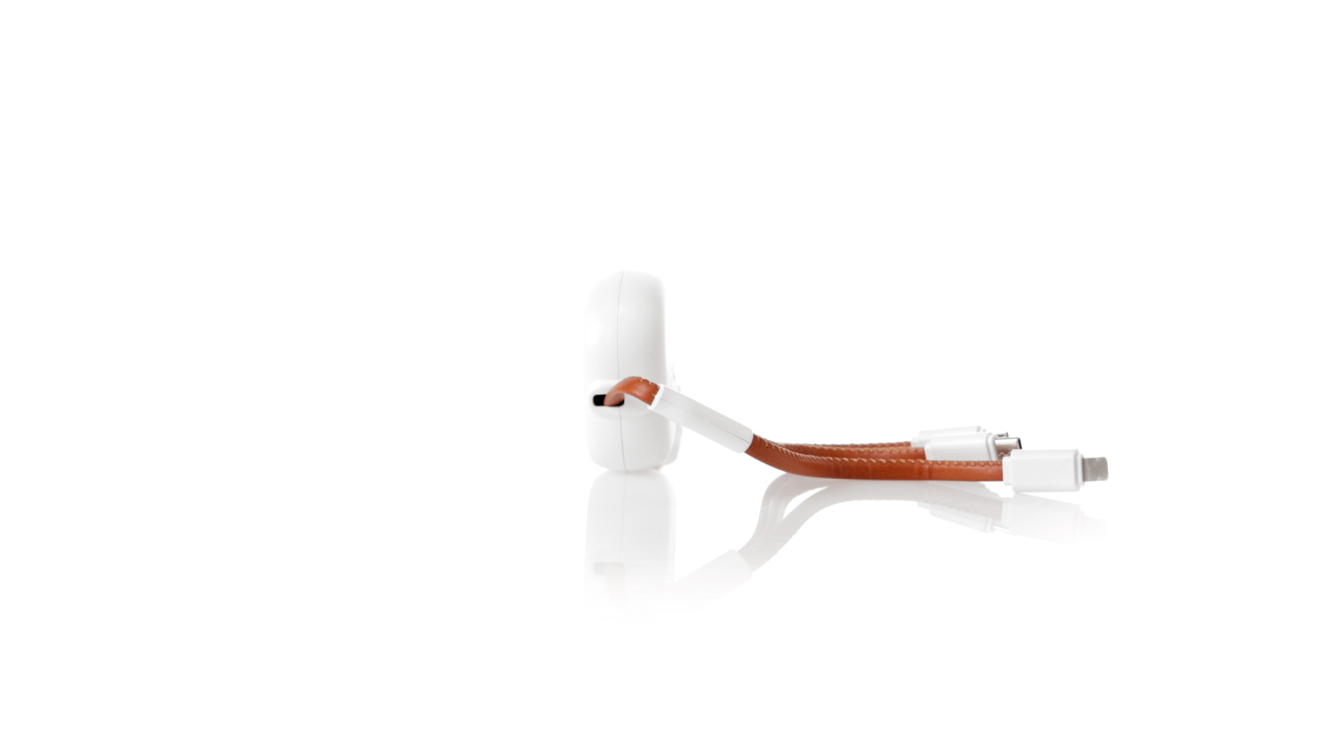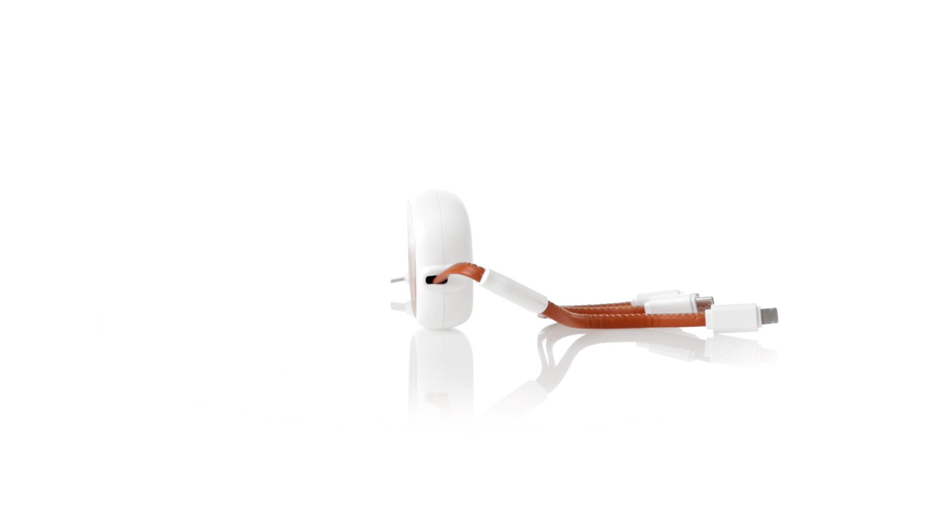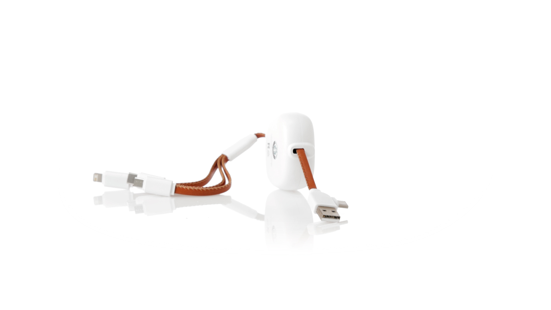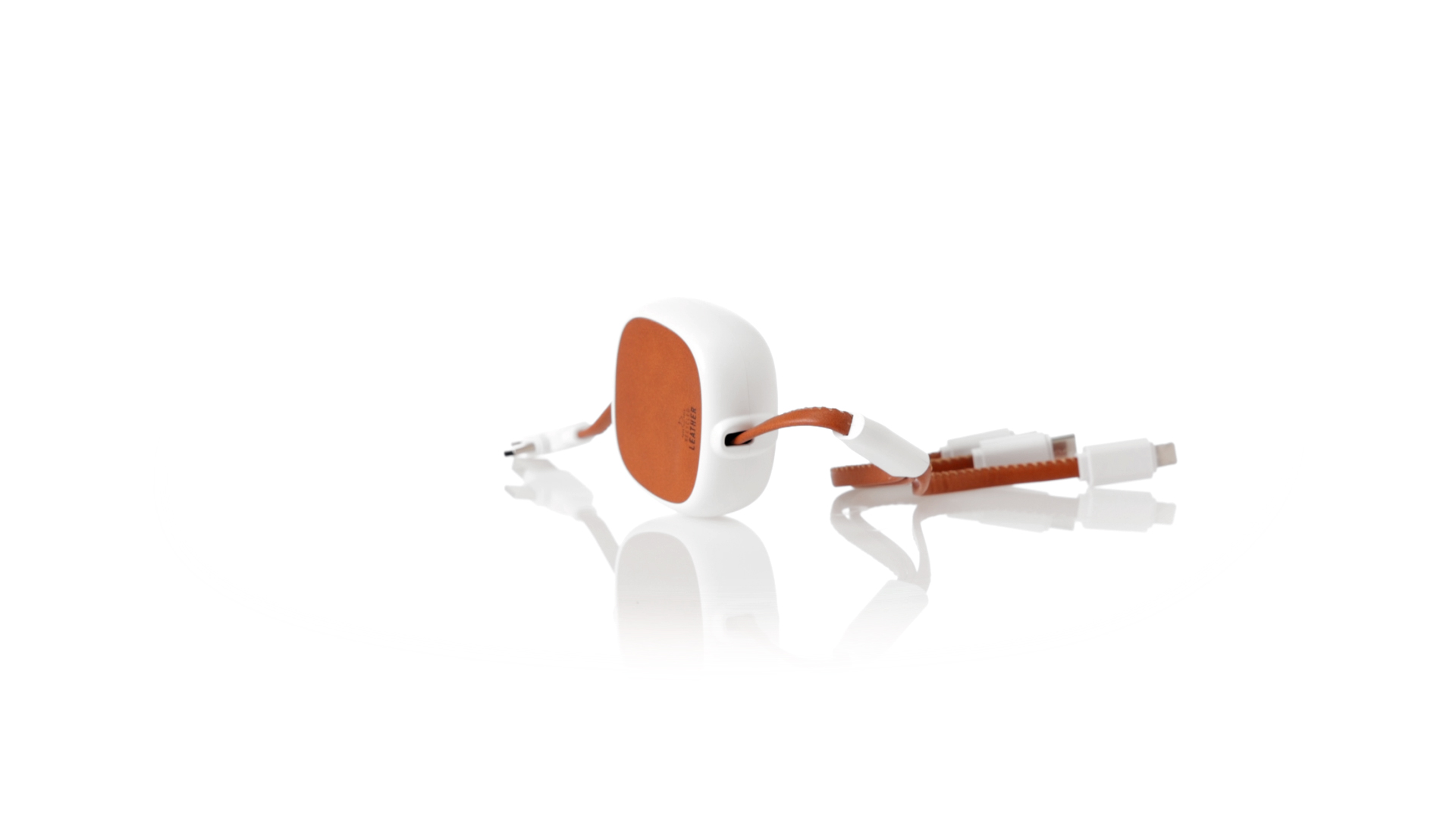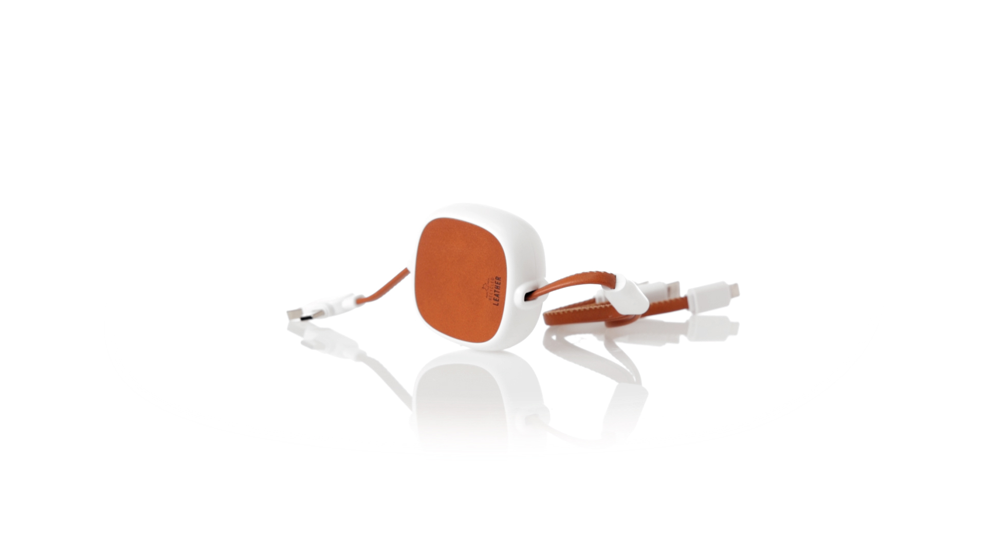 m langes, ausziehbares Ladekabel, hergestellt aus RABS und in elegantem Weiss, mit Kabeln und Details aus recyceltem Leder. Mittelteil mit recyceltem Lederbezug und internem Mechanismus zur Verlängerung des Kabels. Mit Typ-C- und USB-Eingangsanschlüssen sowie Typ-C-, Lightning- und Micro-USB-Ausgängen. 5 V DC 2,4 A RABS oder recyceltes ABS-Material und recyceltes Leder stammen aus dem Recycling von Artikeln am Ende ihrer Lebensdauer. Die verwendeten recycelten Materialien verfügen über eine RCS-Zertifizierung, die ihre recycelte Herkunft garantiert.