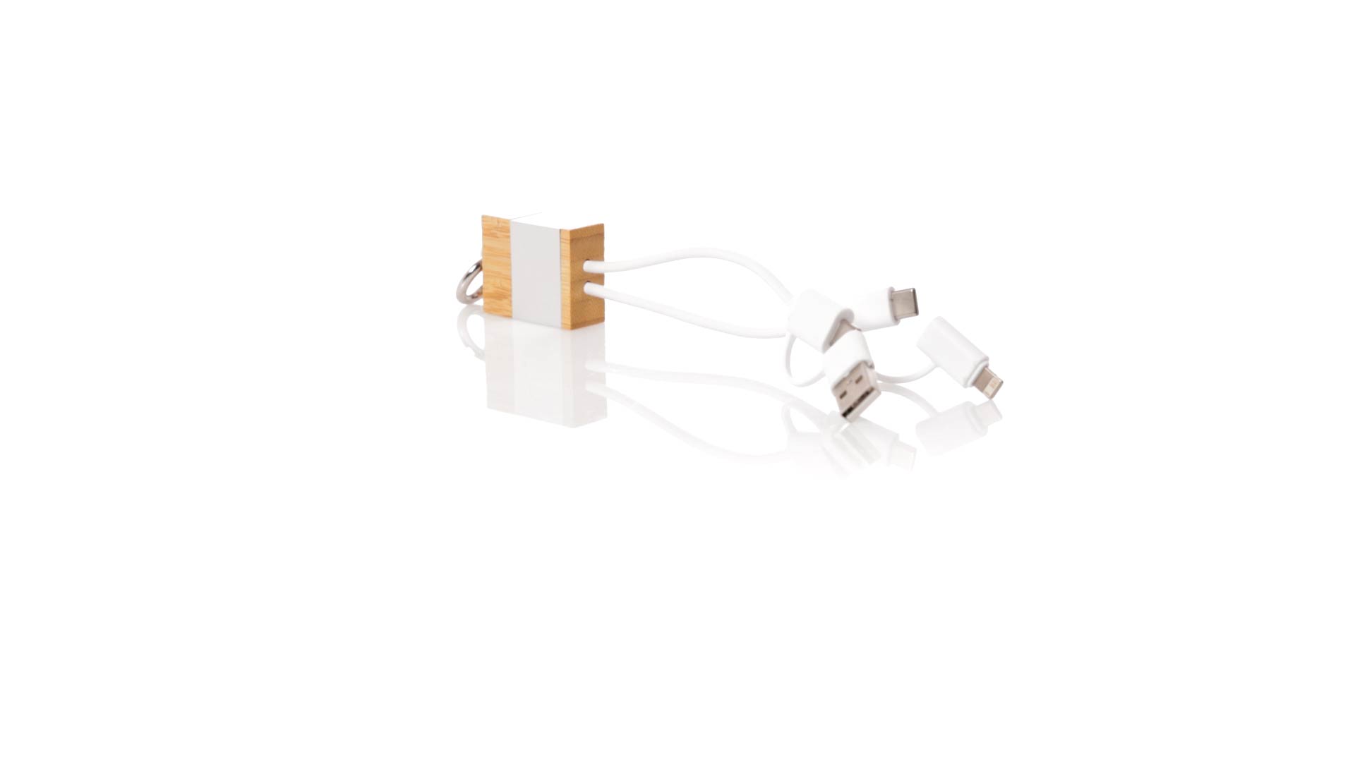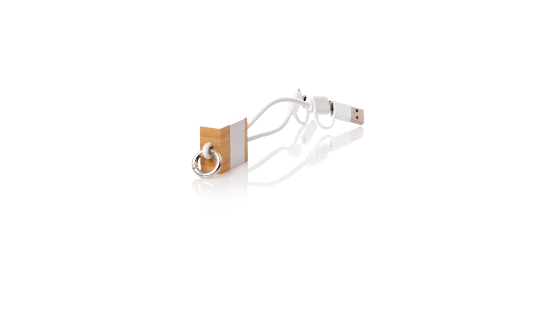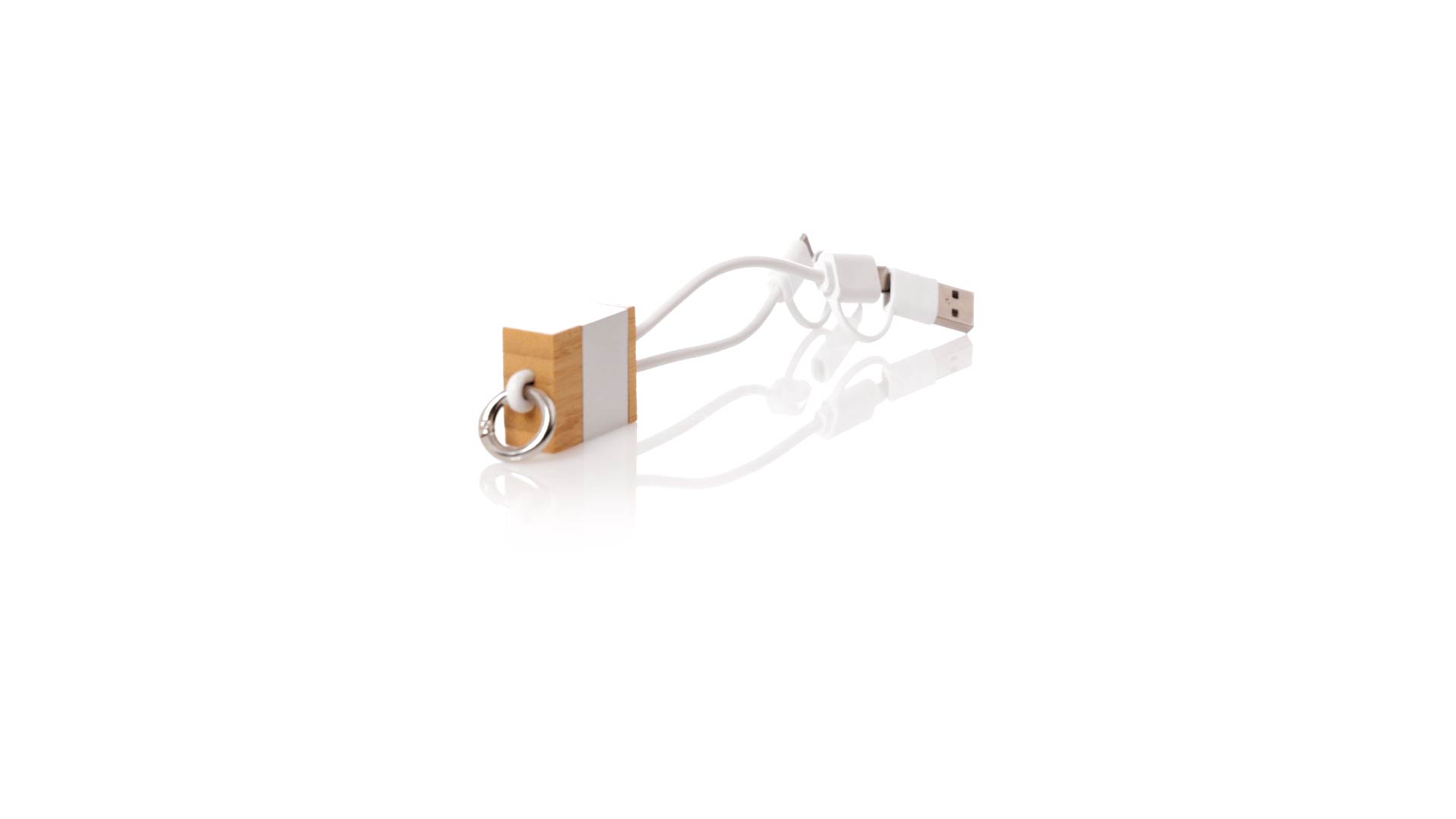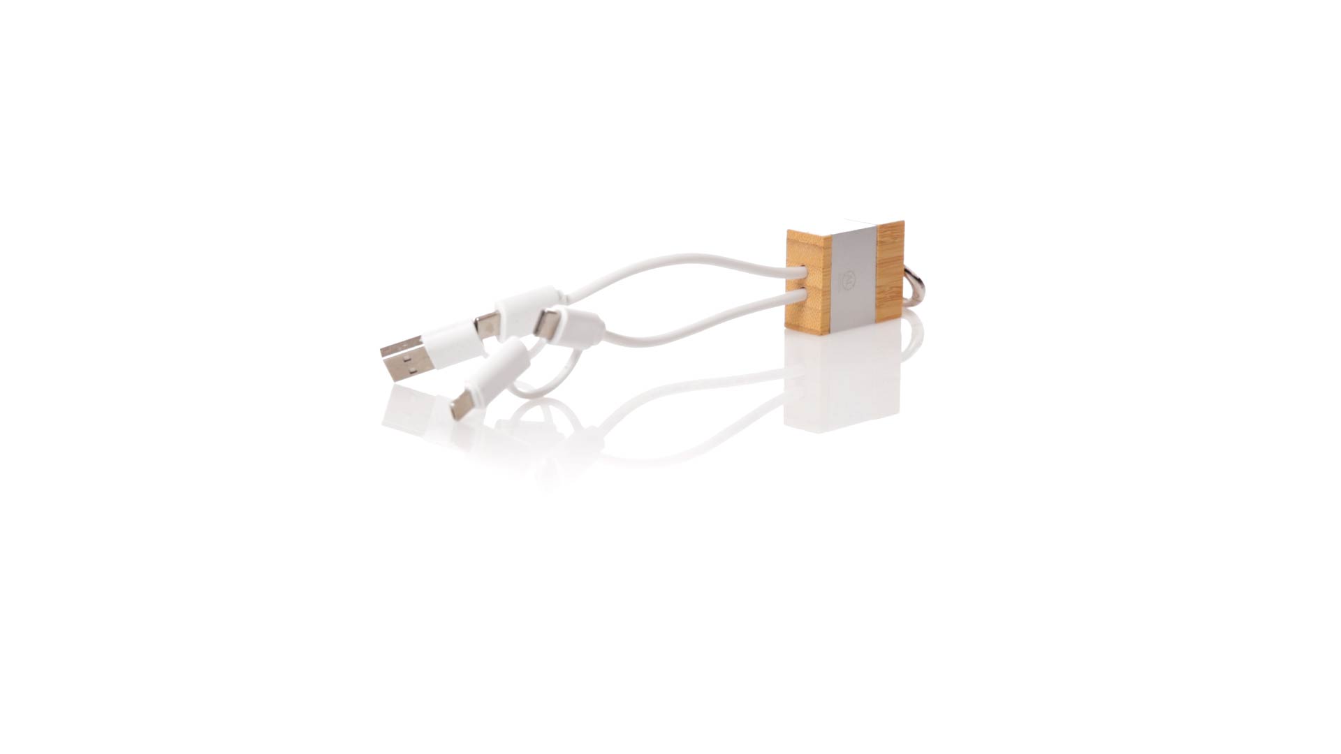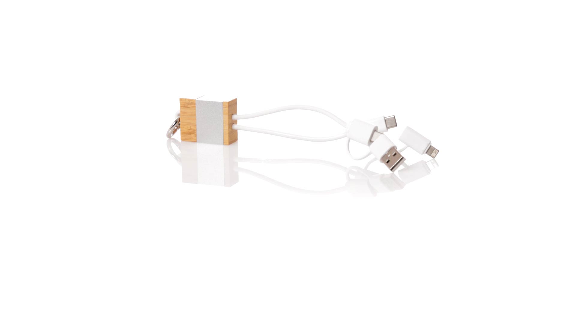 Ladekabel aus Bambus und recyceltem Aluminium. Kompakt in der Grösse und mit einem originellen Ring für den Transport. Typ C und USB-Eingangsanschlüsse + Typ C, Lightning und Micro USB-Ausgänge. 5V DC 2.4A. Mit Recycled Aluminium Logo und präsentiert in einer individuellen Kraft-Design-Box.Materialien wie Bambus fördern die Verwendung natürlicher Rohstoffe und reduzieren die Schadstoffemissionen. Es stammt von einer sehr widerstandsfähigen und vielseitigen Pflanze mit schnellem Wachstum und Regeneration, was es zu einer ausgezeichneten Alternative zu traditionellem Holz macht.Recyceltes Aluminium ist ein Material mit nahezu unbegrenzten Recyclingmöglichkeiten, das seine ursprünglichen Eigenschaften behält und bei diesem Prozess weniger Energie verbraucht.GRS-Zertifizierung (Global Recycled Standard), die den recycelten Ursprung des zur Herstellung des Produkts verwendeten Materials garantiert.