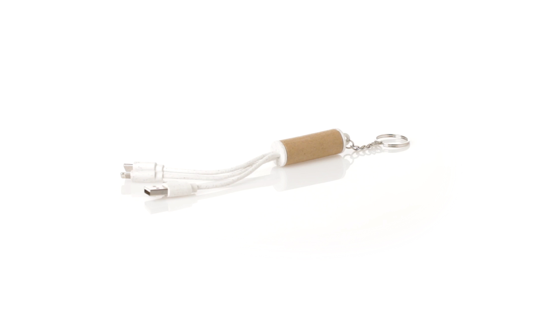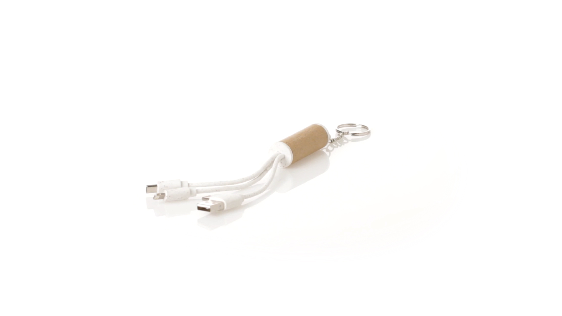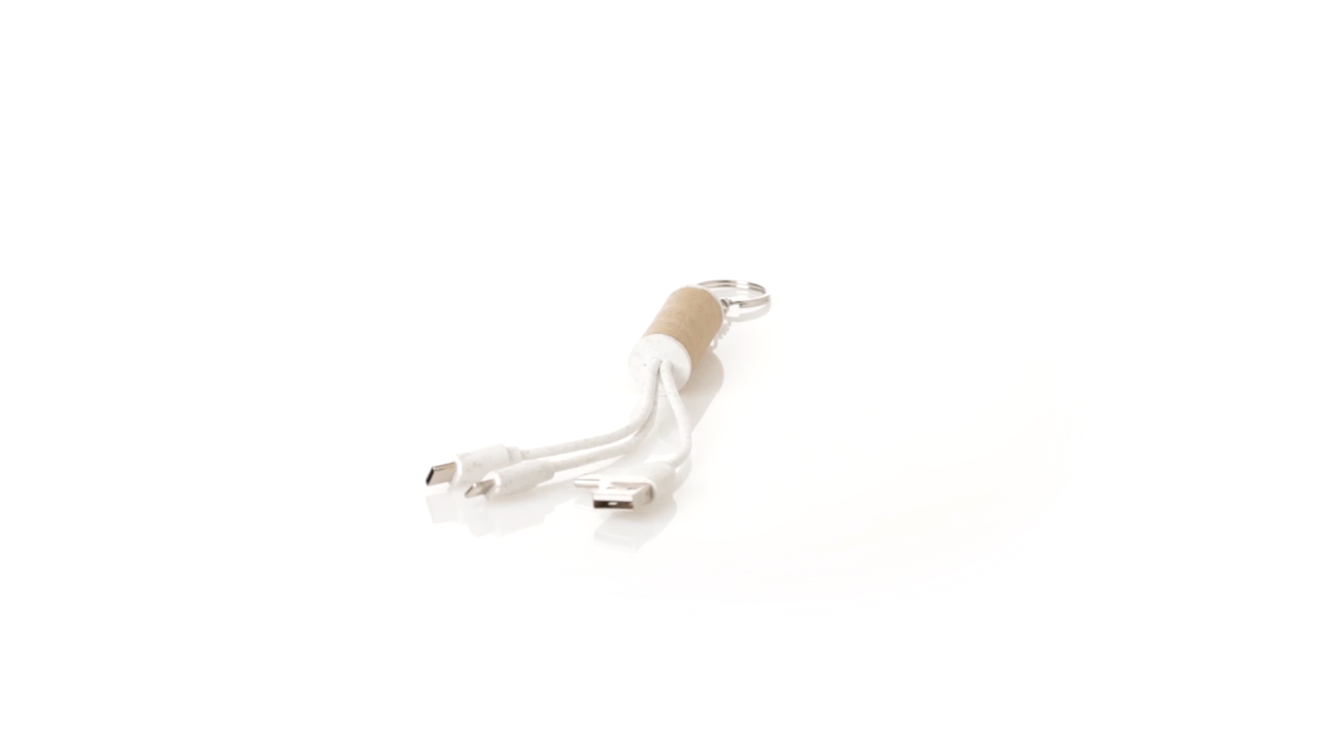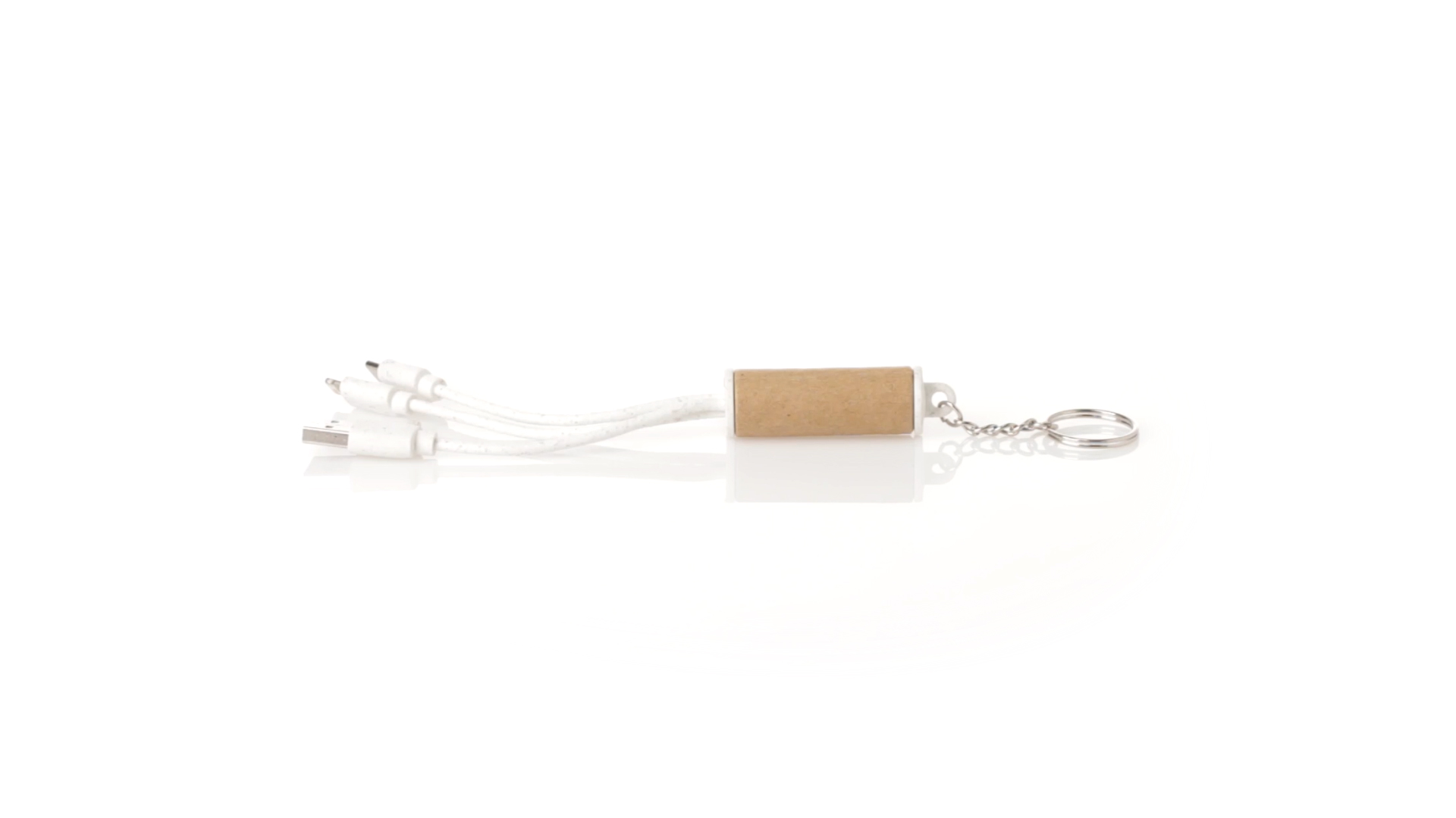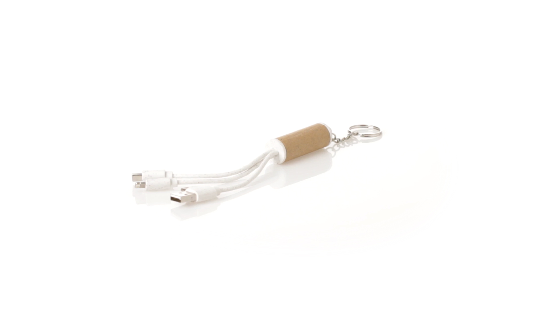 USB-Ladekabel der Linie Natur hergestellt aus einer Kombination von recyceltem Karton und Weizenstroh, um die Verwendung von natürlichen Rohstoffen zu fördern und Schadstoffemissionen zu reduzieren. Mit USB-, Typ-C- und zwei Micro-USB-Lightning-Anschlüssen. Inklusive Ring/Schlüsselring für die Portabilität und einer flachen Fläche für das Branding. Präsentiert in einer individuellen Tasche mit Kraft-Finish und Öko-Design.