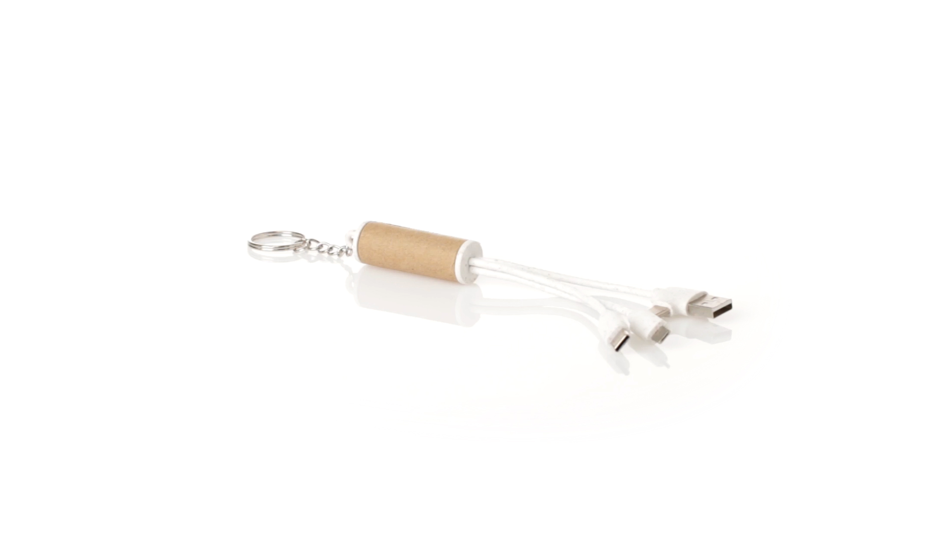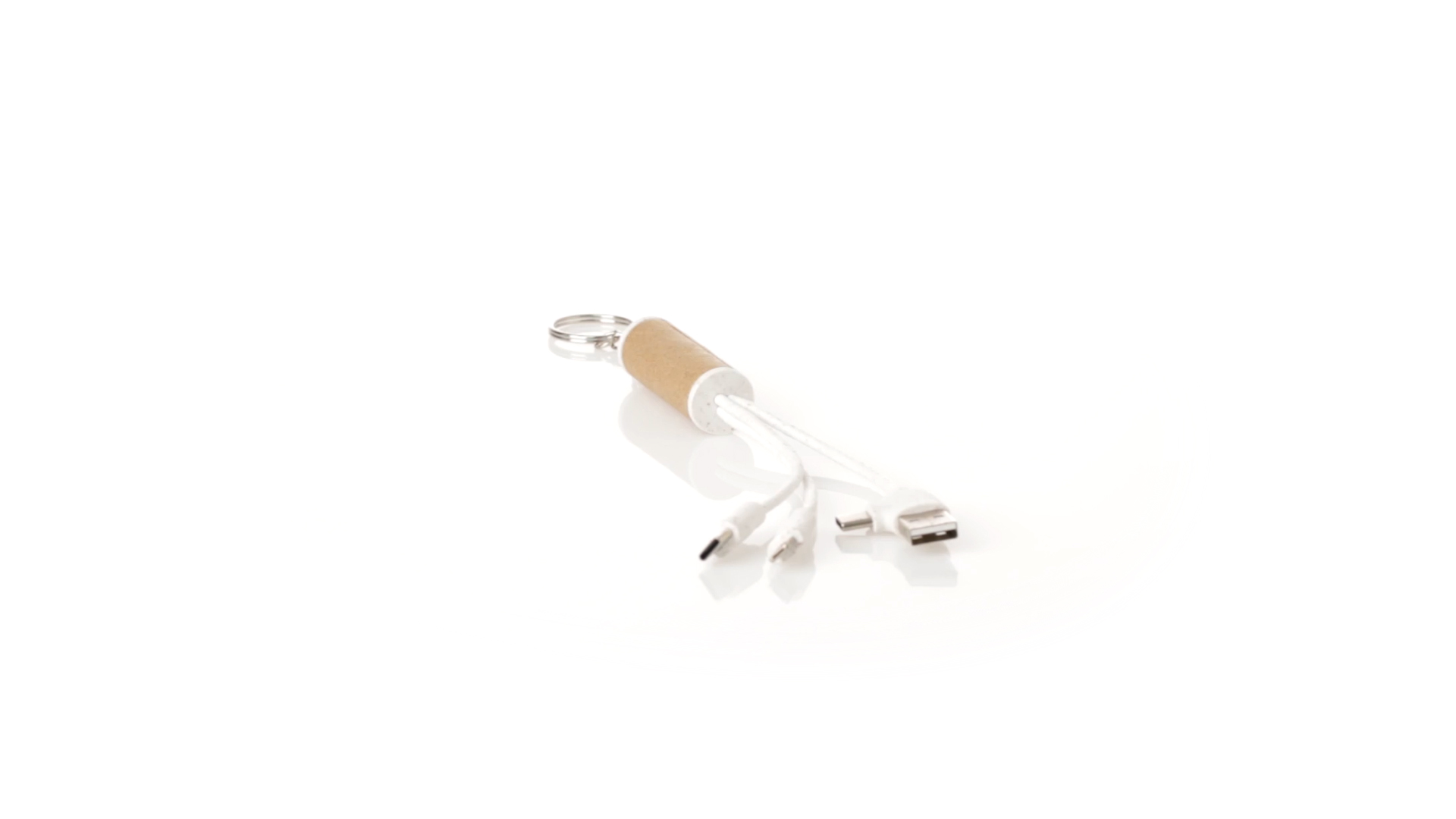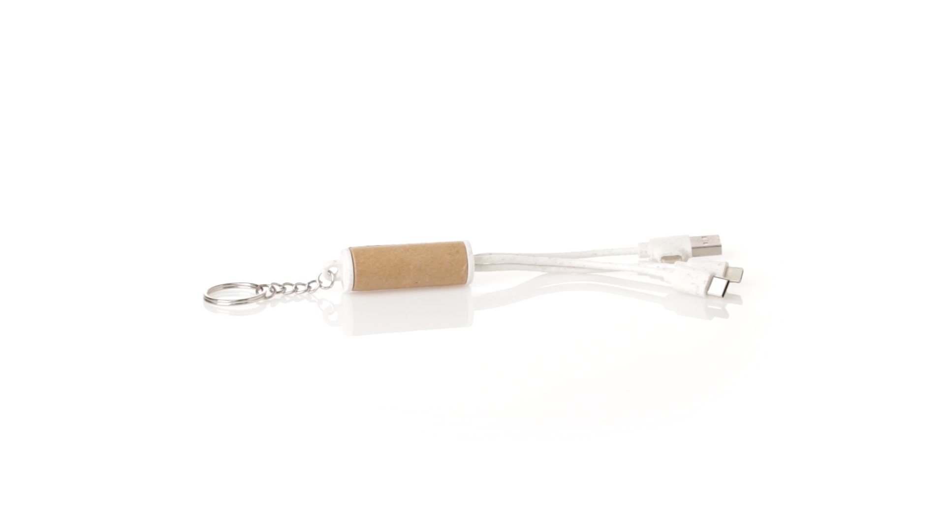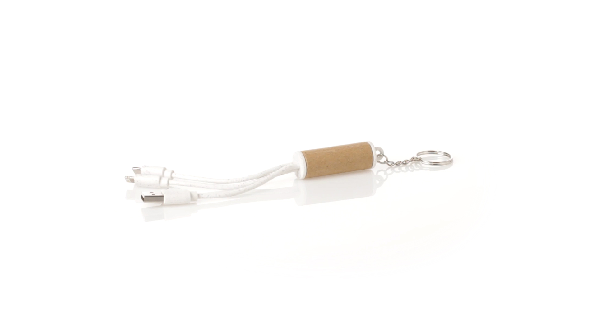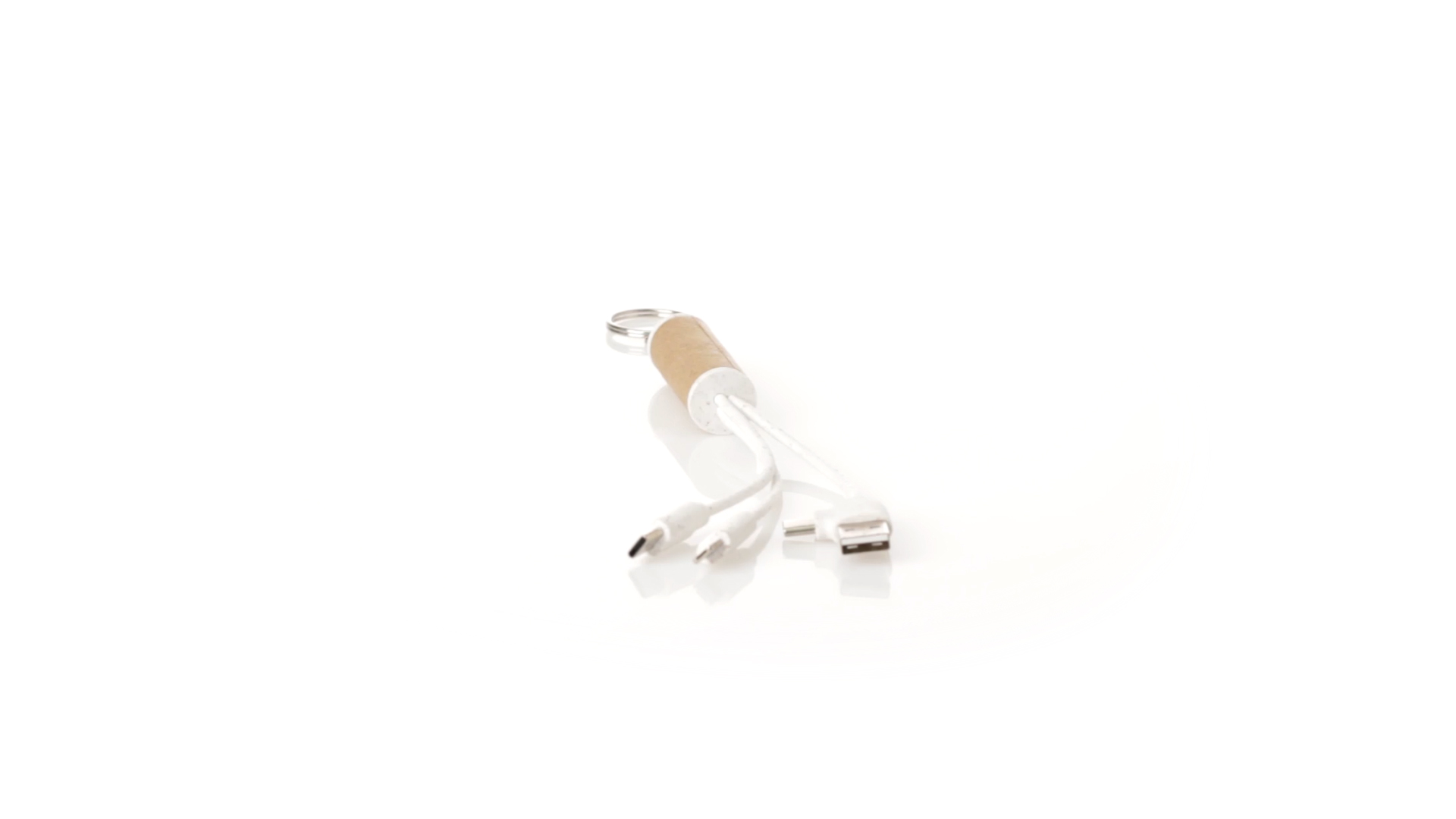 USB-Ladekabel der Linie Natur hergestellt aus einer Kombination von recyceltem Karton und Weizenstroh, um die Verwendung von natürlichen Rohstoffen zu fördern und Schadstoffemissionen zu reduzieren. Mit USB-, Typ-C- und zwei Micro-USB-Lightning-Anschlüssen. Inklusive Ring/Schlüsselring für die Portabilität und einer flachen Fläche für das Branding. Präsentiert in einer individuellen Tasche mit Kraft-Finish und Öko-Design.