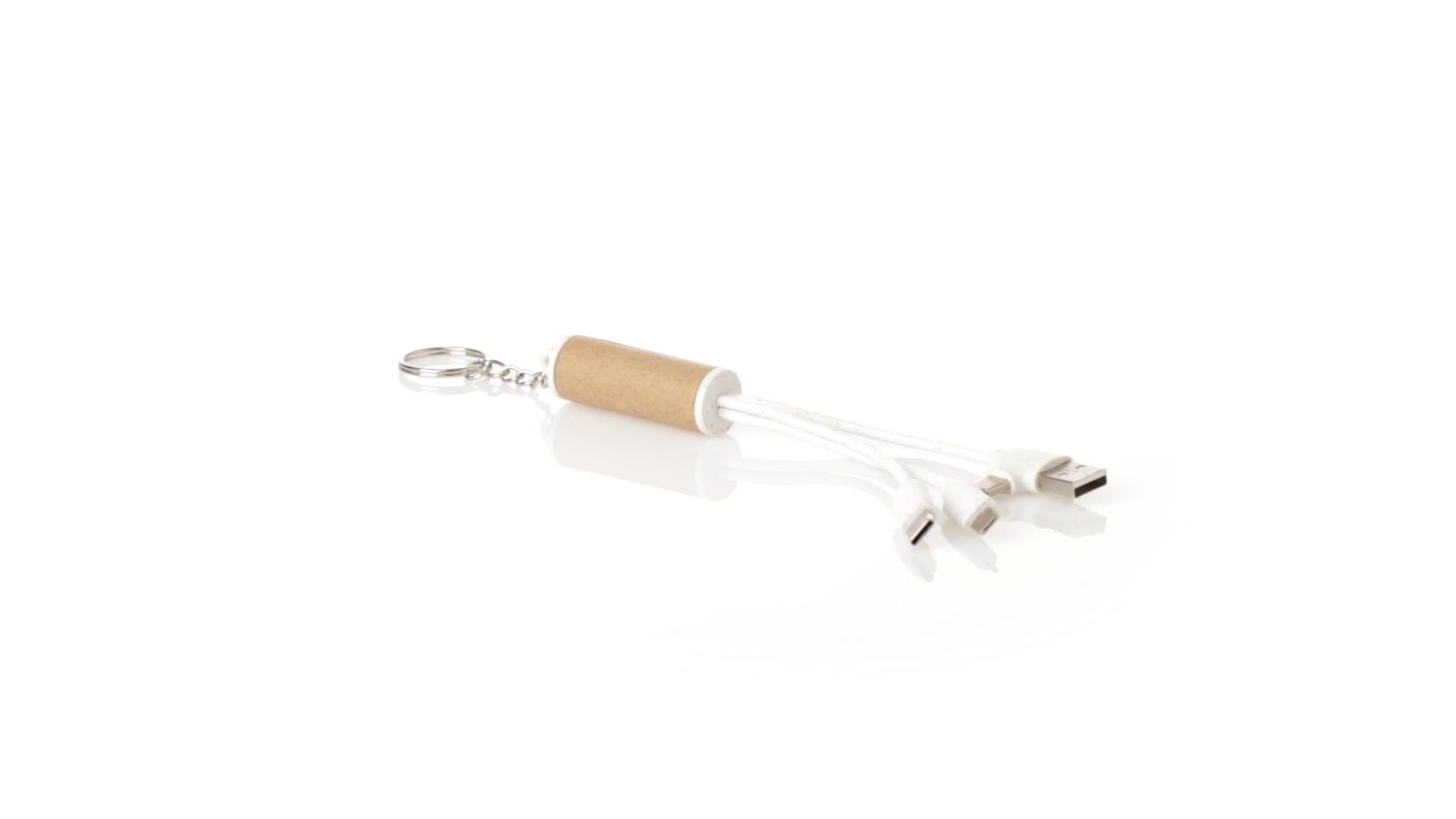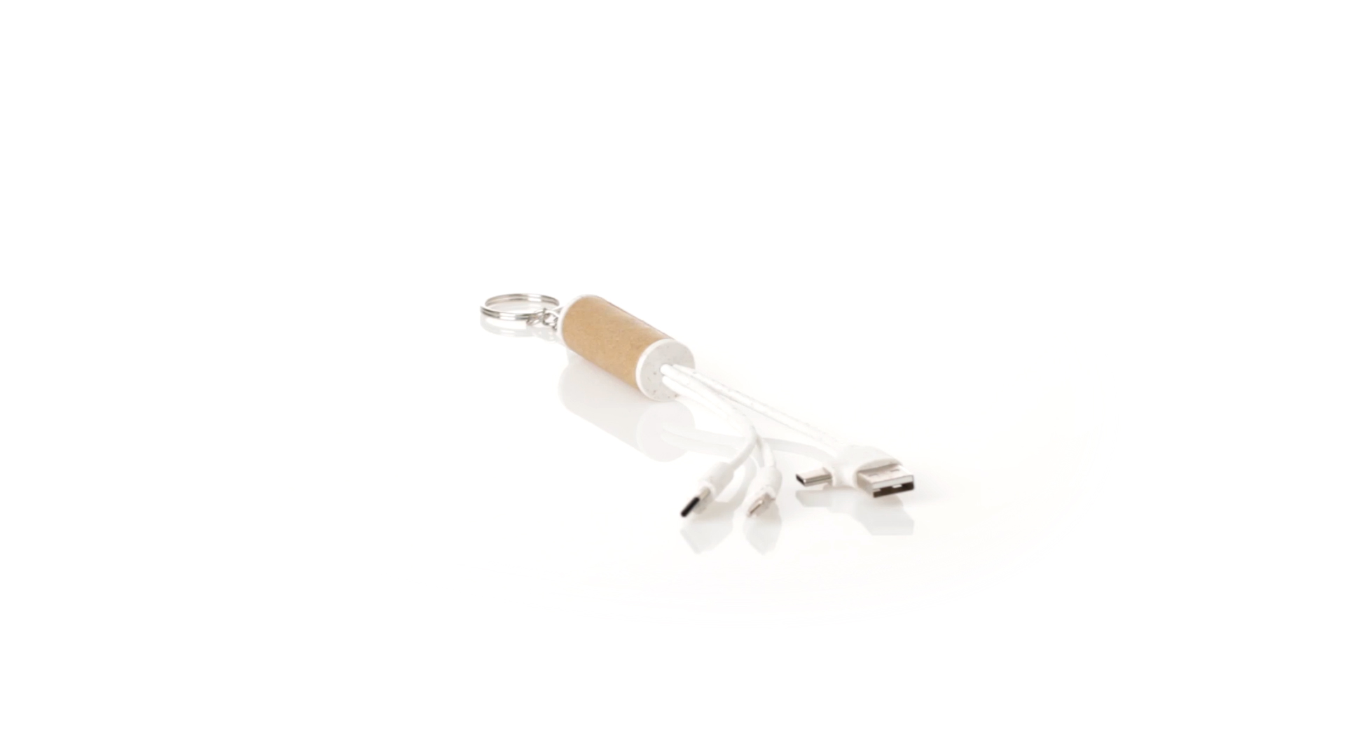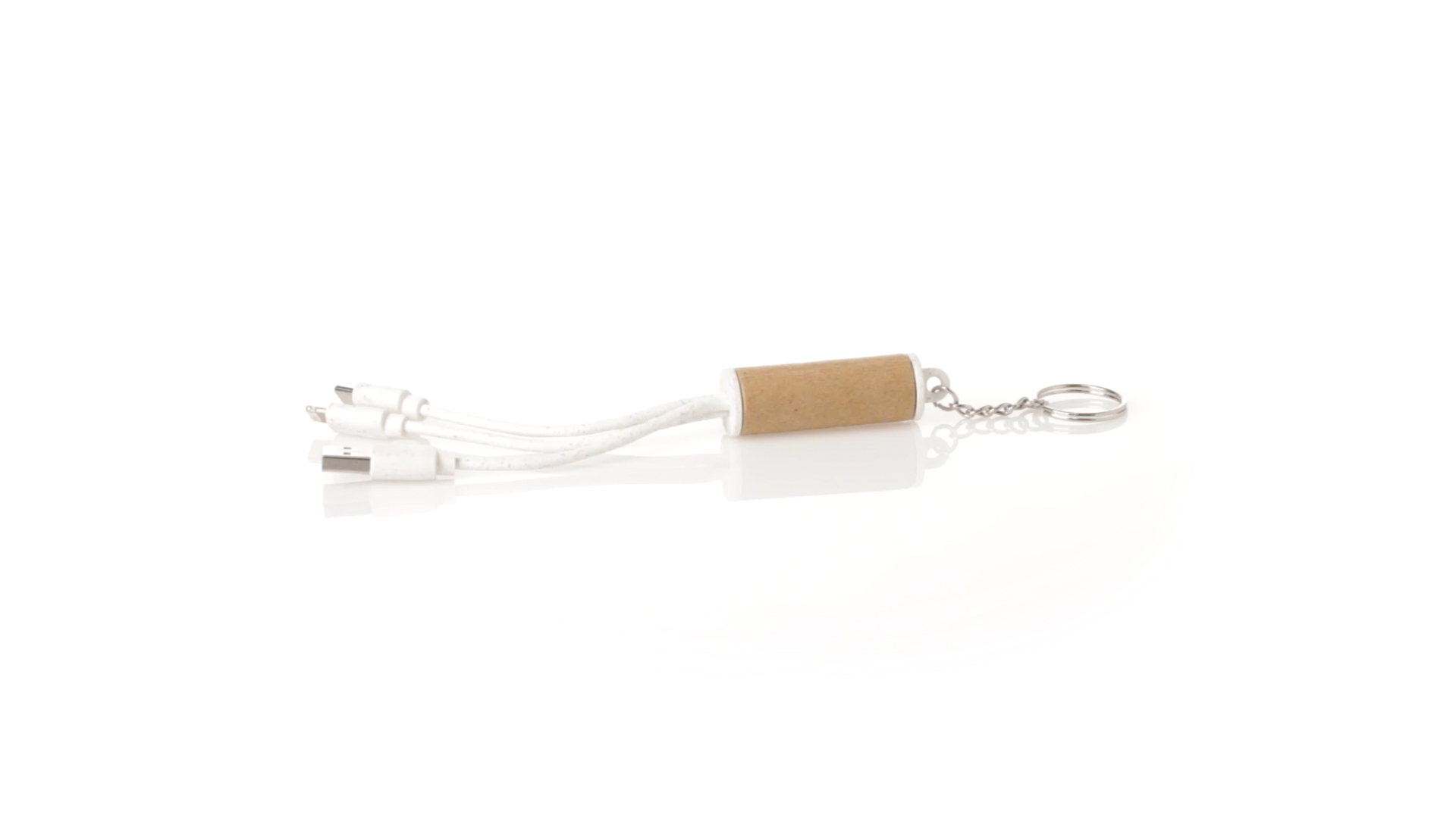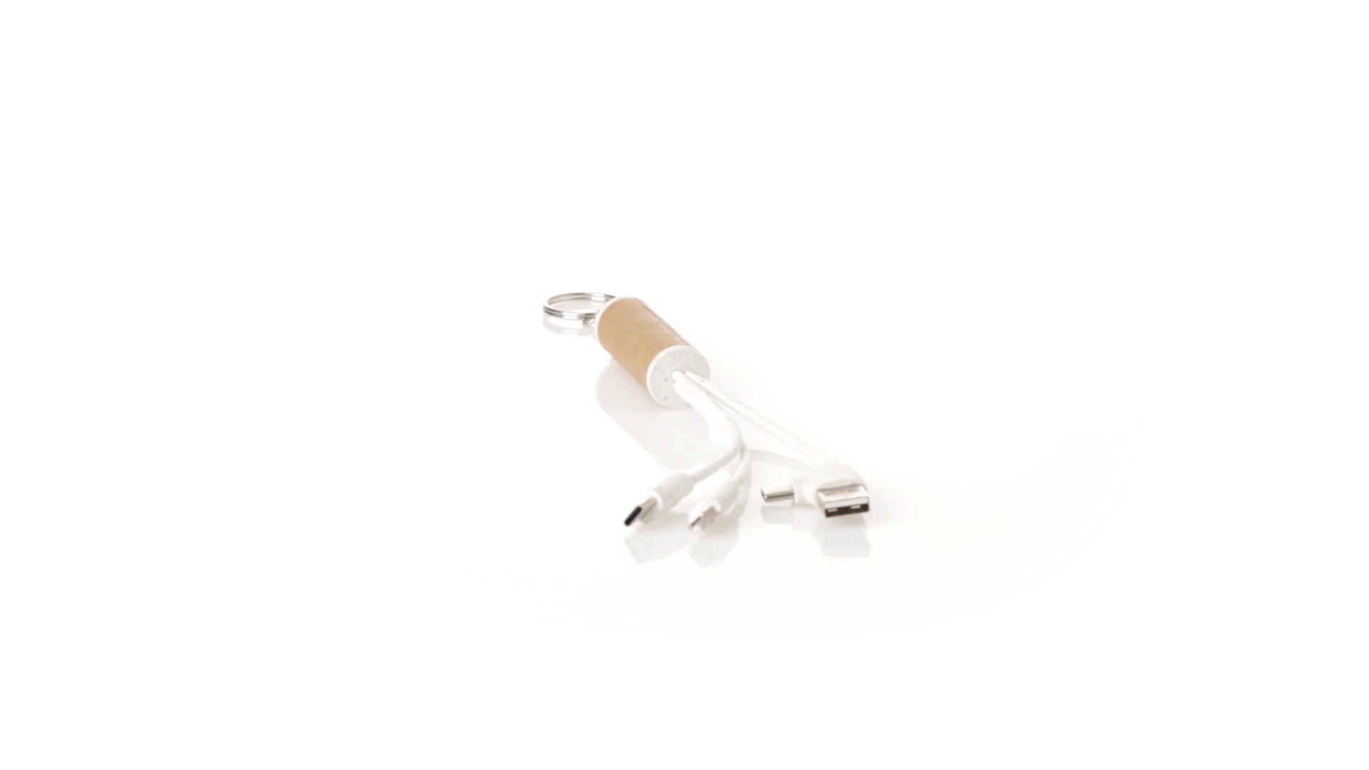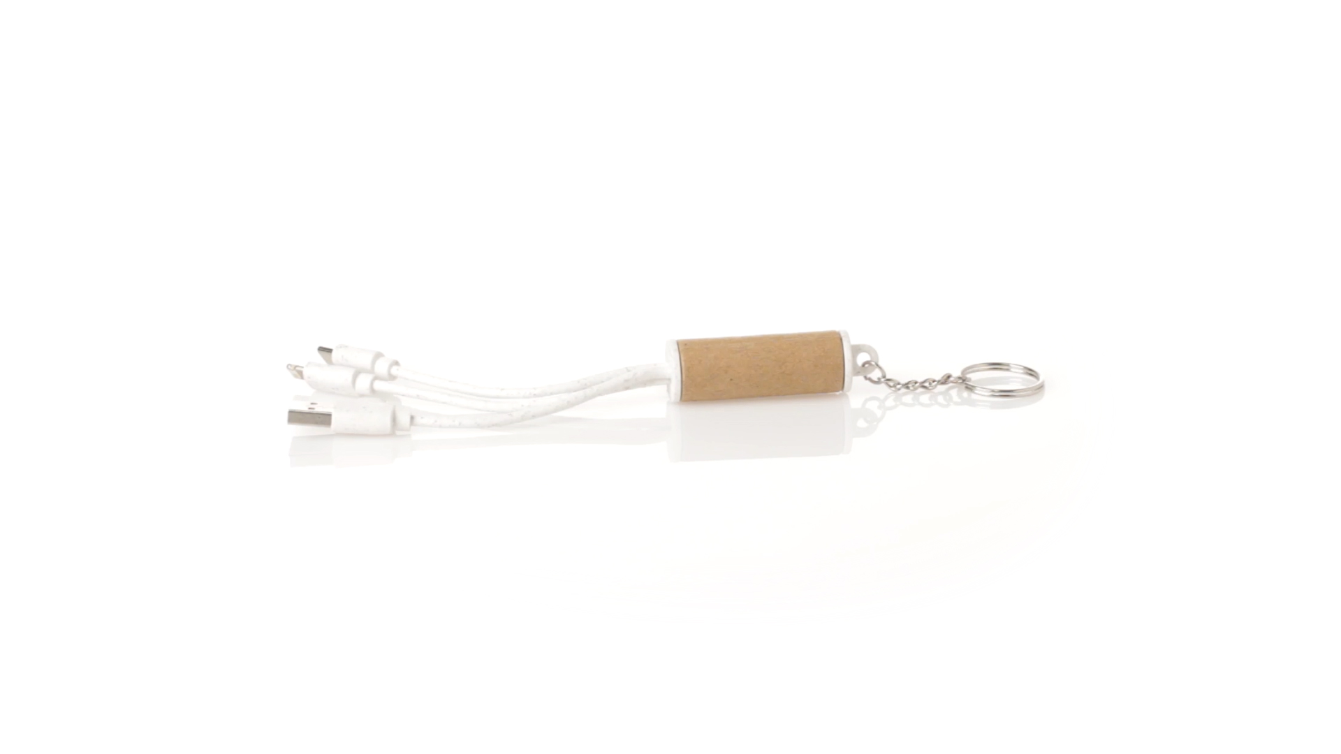 USB-Ladekabel der Linie Natur hergestellt aus einer Kombination von recyceltem Karton und Weizenstroh, um die Verwendung von natürlichen Rohstoffen zu fördern und Schadstoffemissionen zu reduzieren. Mit USB-, Typ-C- und zwei Micro-USB-Lightning-Anschlüssen. Inklusive Ring/Schlüsselring für die Portabilität und einer flachen Fläche für das Branding. Präsentiert in einer individuellen Tasche mit Kraft-Finish und Öko-Design.