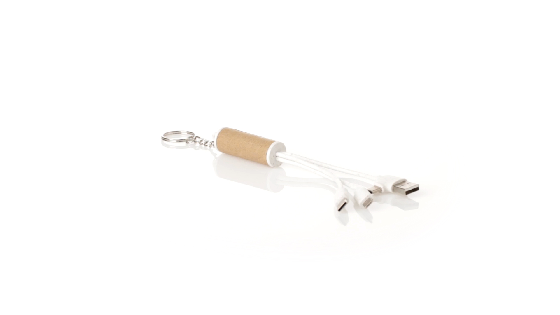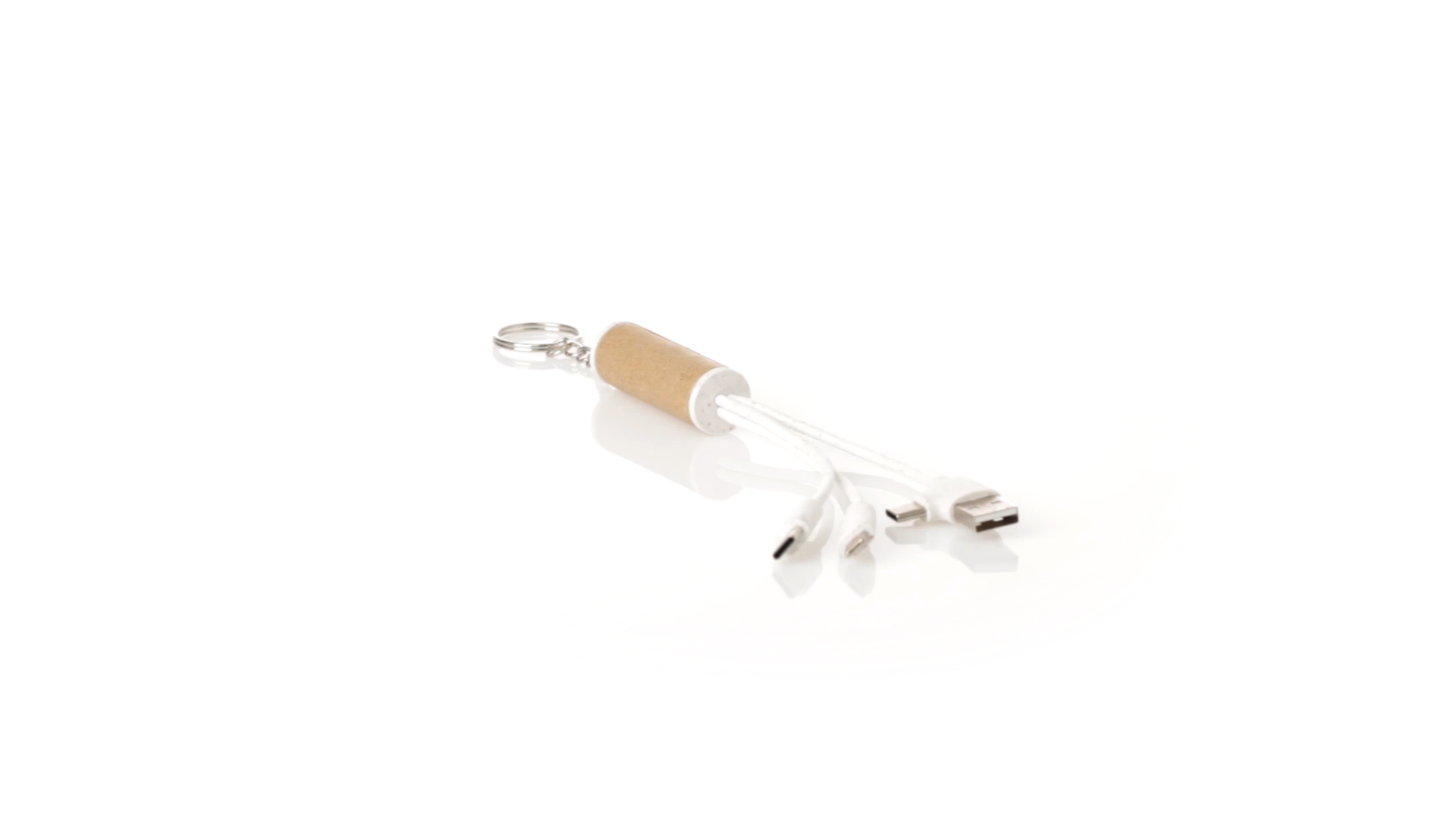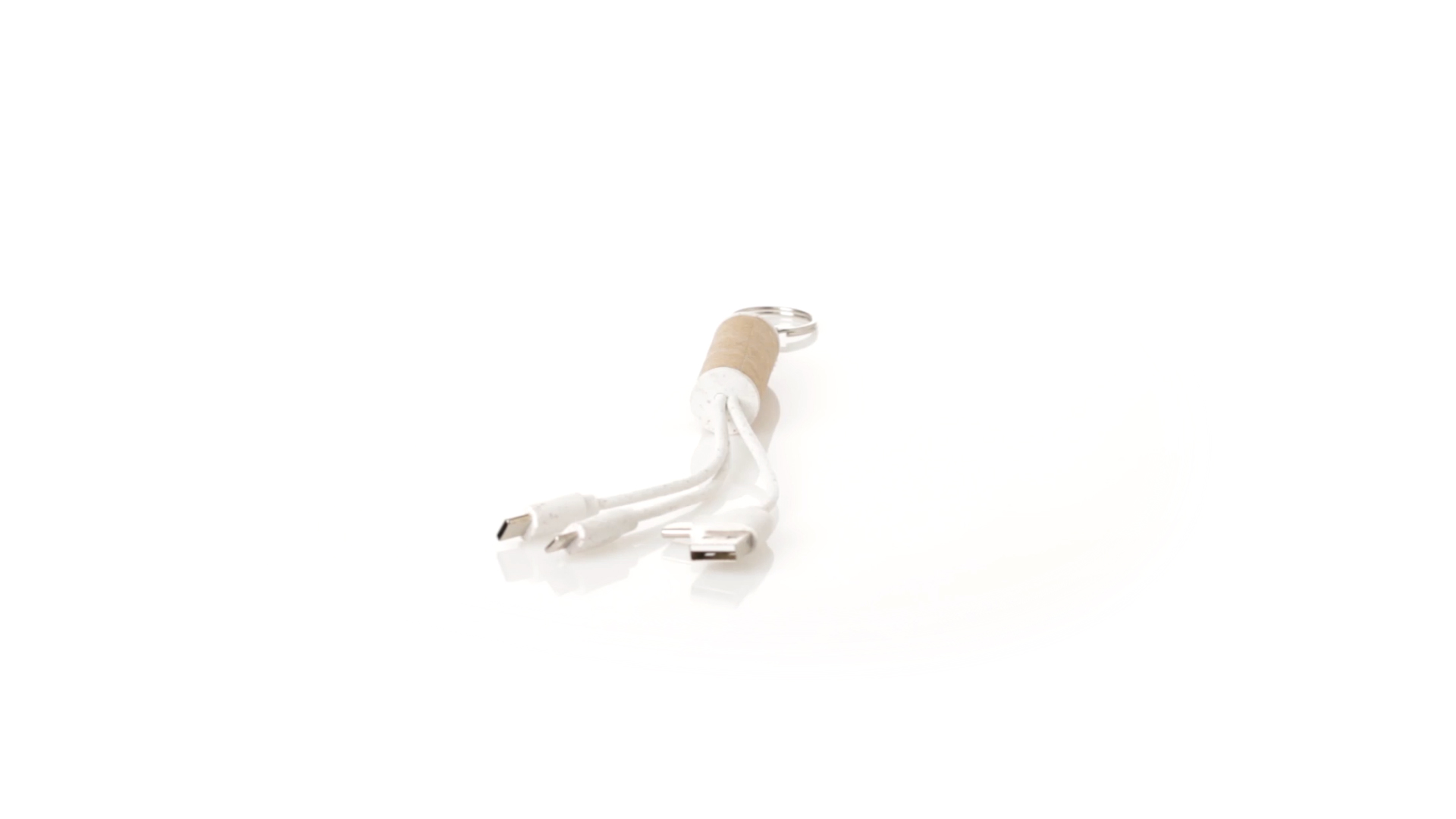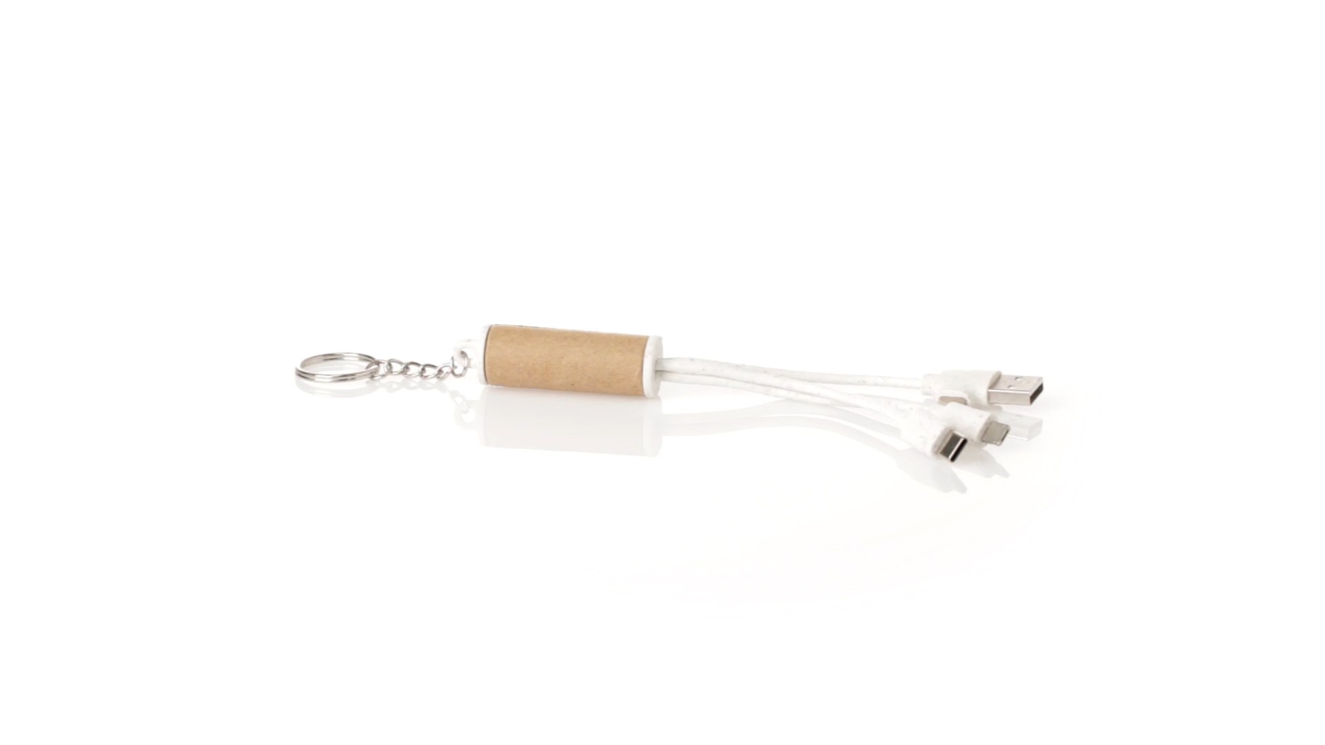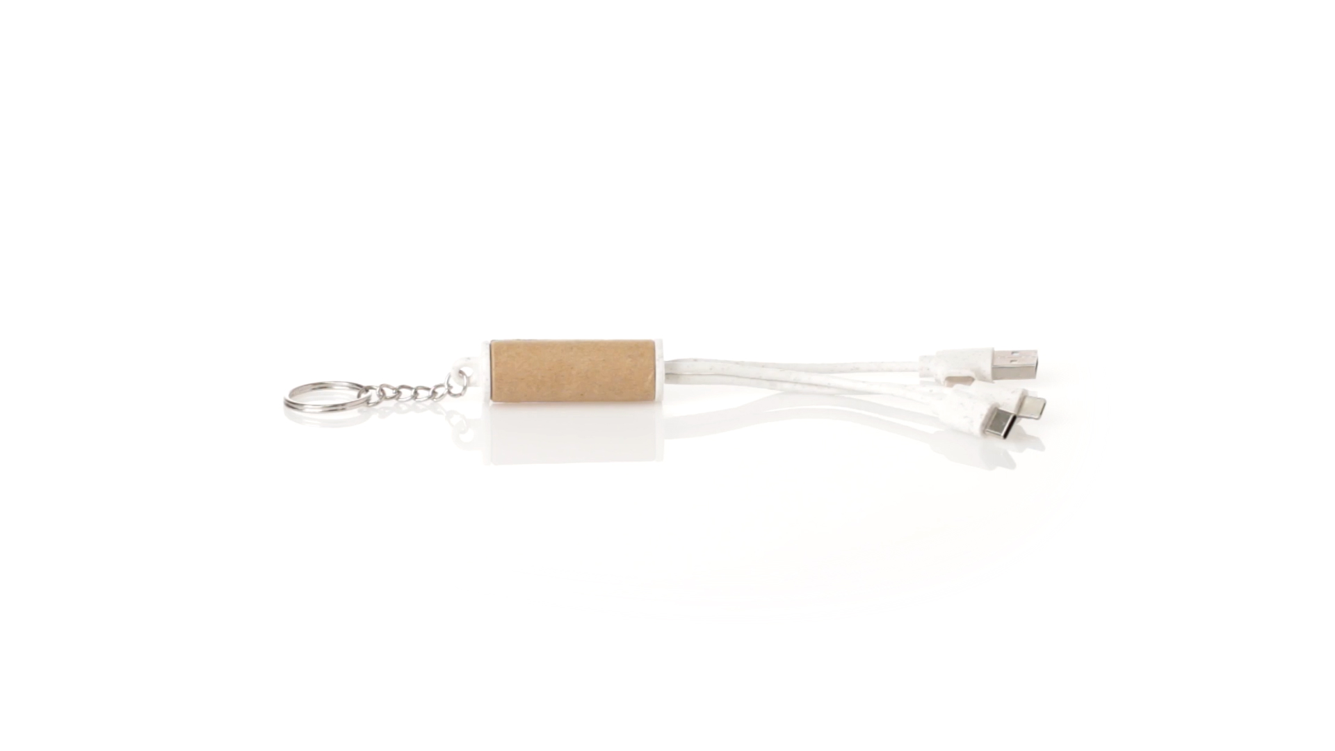 USB-Ladekabel der Linie Natur hergestellt aus einer Kombination von recyceltem Karton und Weizenstroh, um die Verwendung von natürlichen Rohstoffen zu fördern und Schadstoffemissionen zu reduzieren. Mit USB-, Typ-C- und zwei Micro-USB-Lightning-Anschlüssen. Inklusive Ring/Schlüsselring für die Portabilität und einer flachen Fläche für das Branding. Präsentiert in einer individuellen Tasche mit Kraft-Finish und Öko-Design.