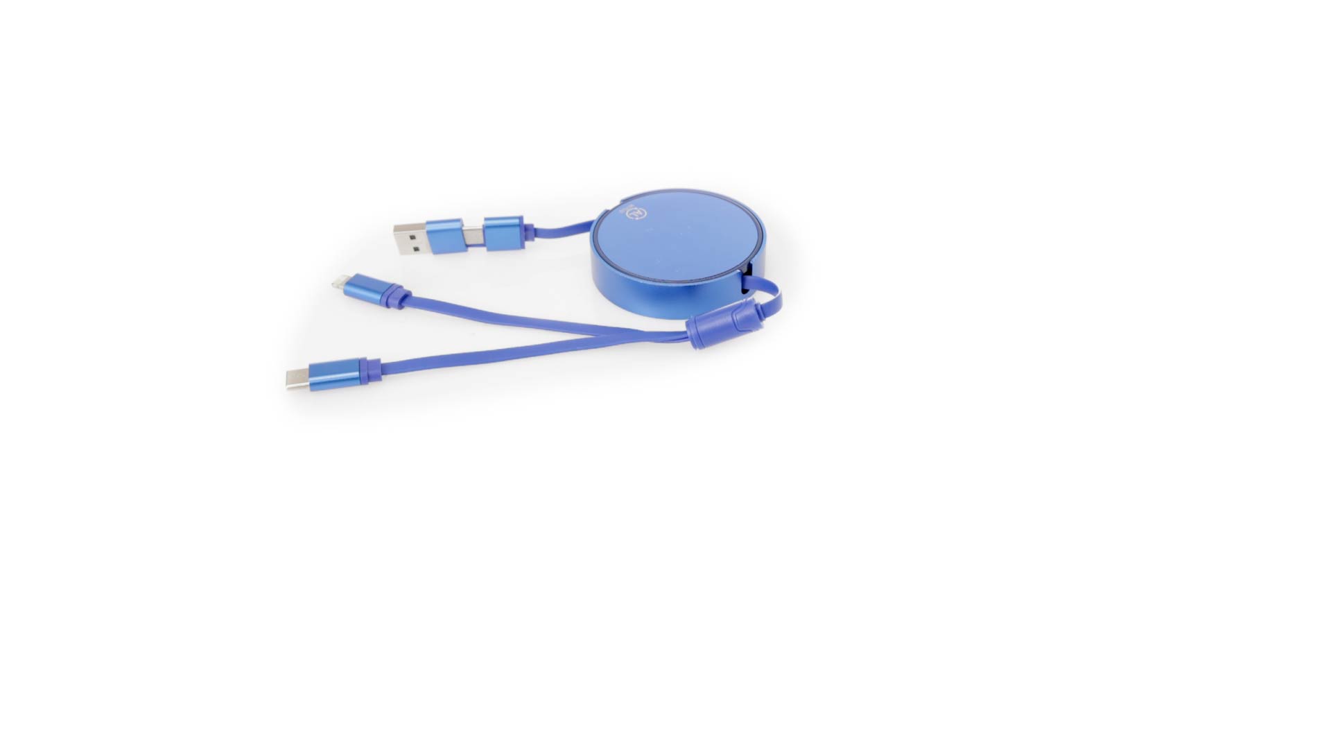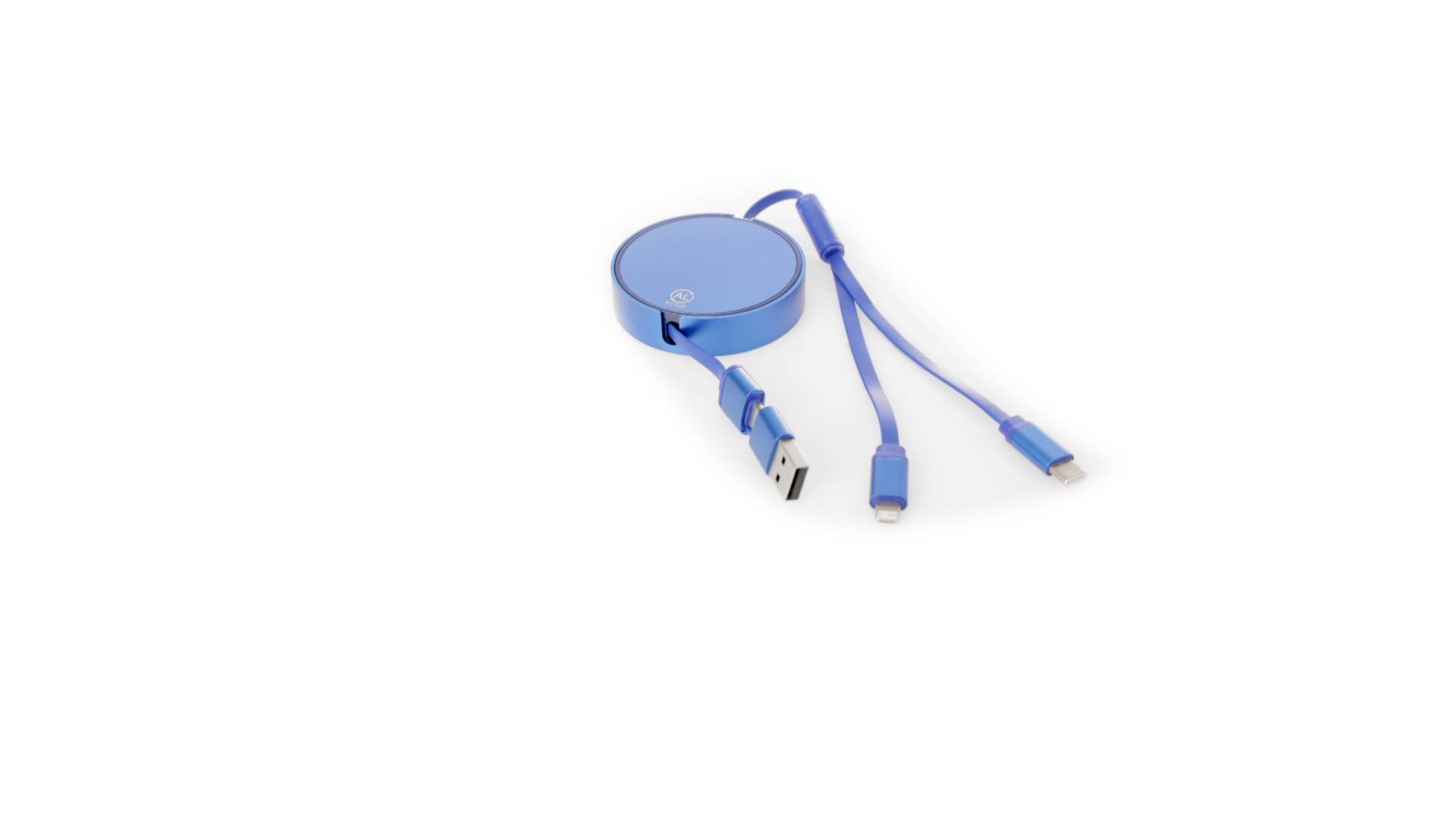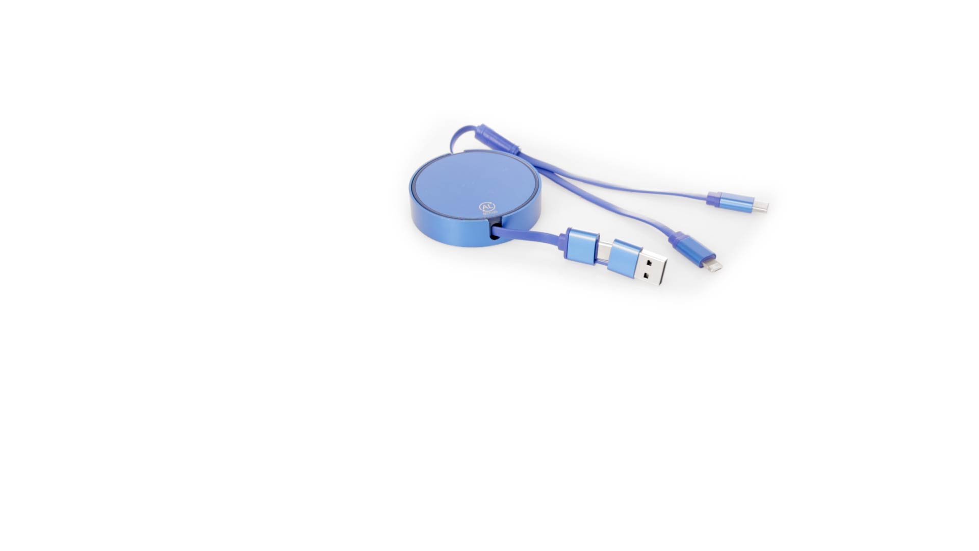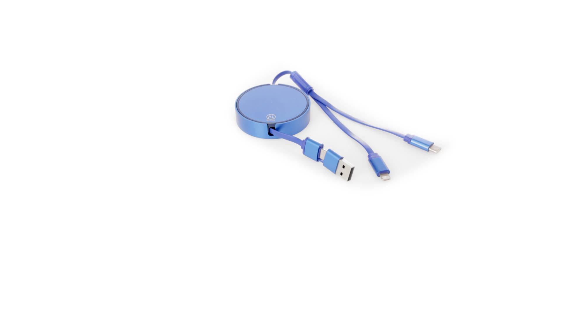 Verlängerbares Lade- aus recyceltem Aluminium mit metallischer Oberfläche. Zentrales Gehäuse mit grosser Brandingfläche, speziell für die Lasergravur entwickelt. Erhältlich in einer breiten Palette von Farben, mit passenden Kabeln. Typ-C- und USB-Eingangsanschlüsse, mit Lightning-, Micro-USB- und Typ-C-Ausgängen. 5V DC 2,4A. Verpackt in einer individuellen Kraft-Design-Tasche.