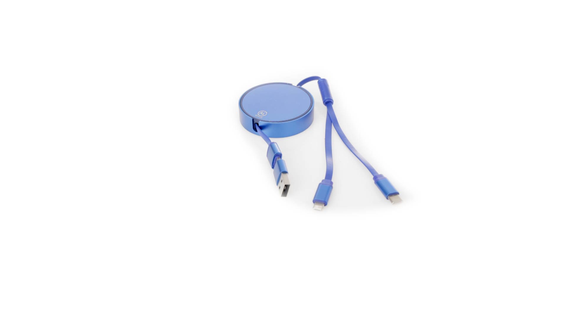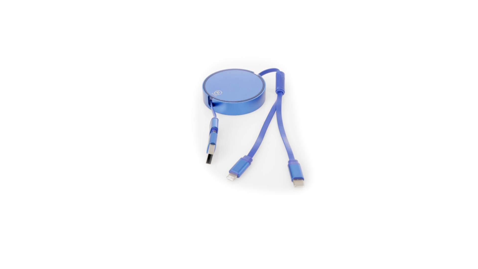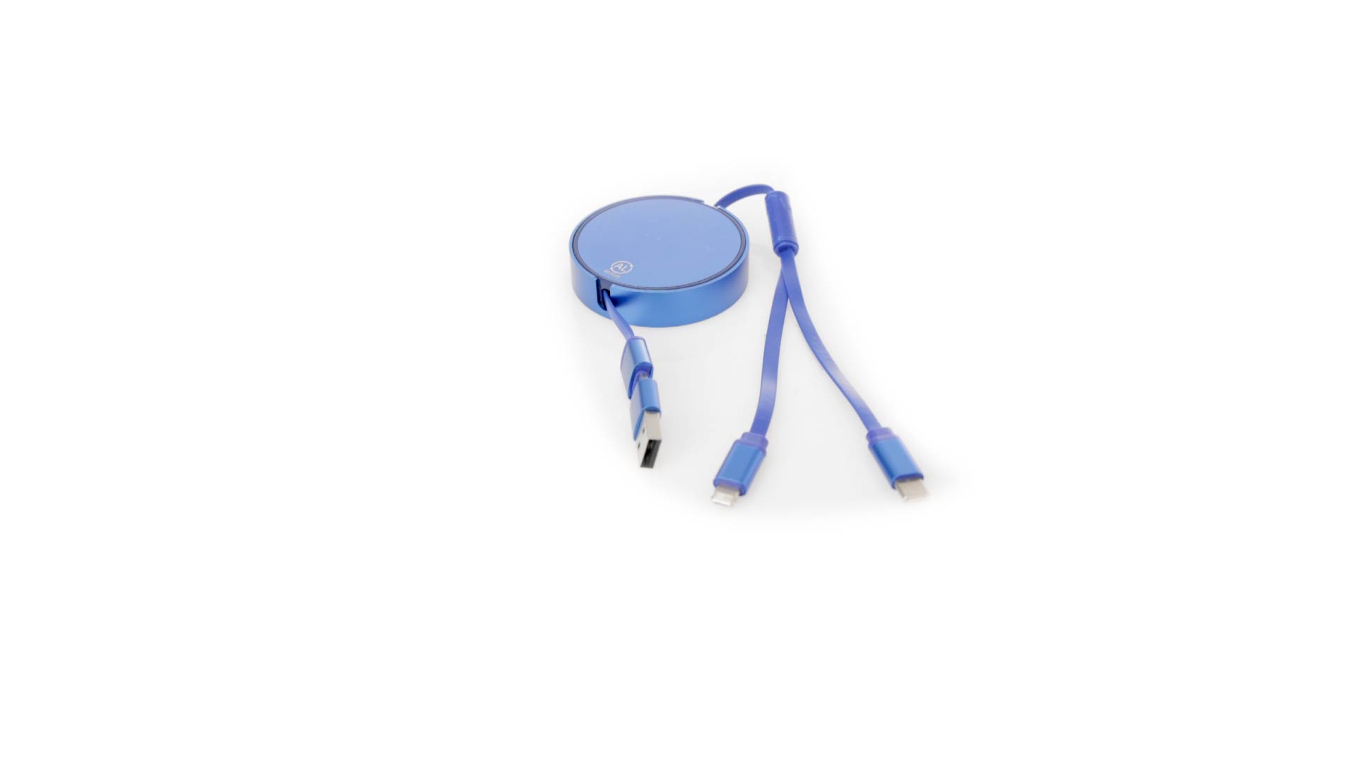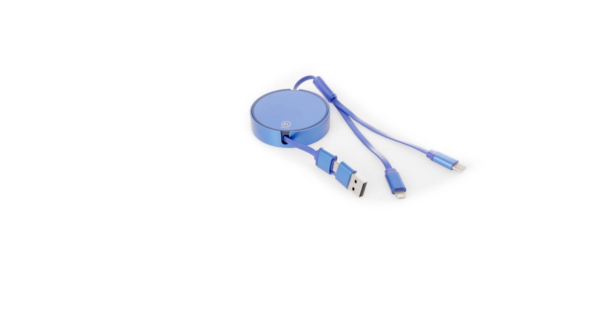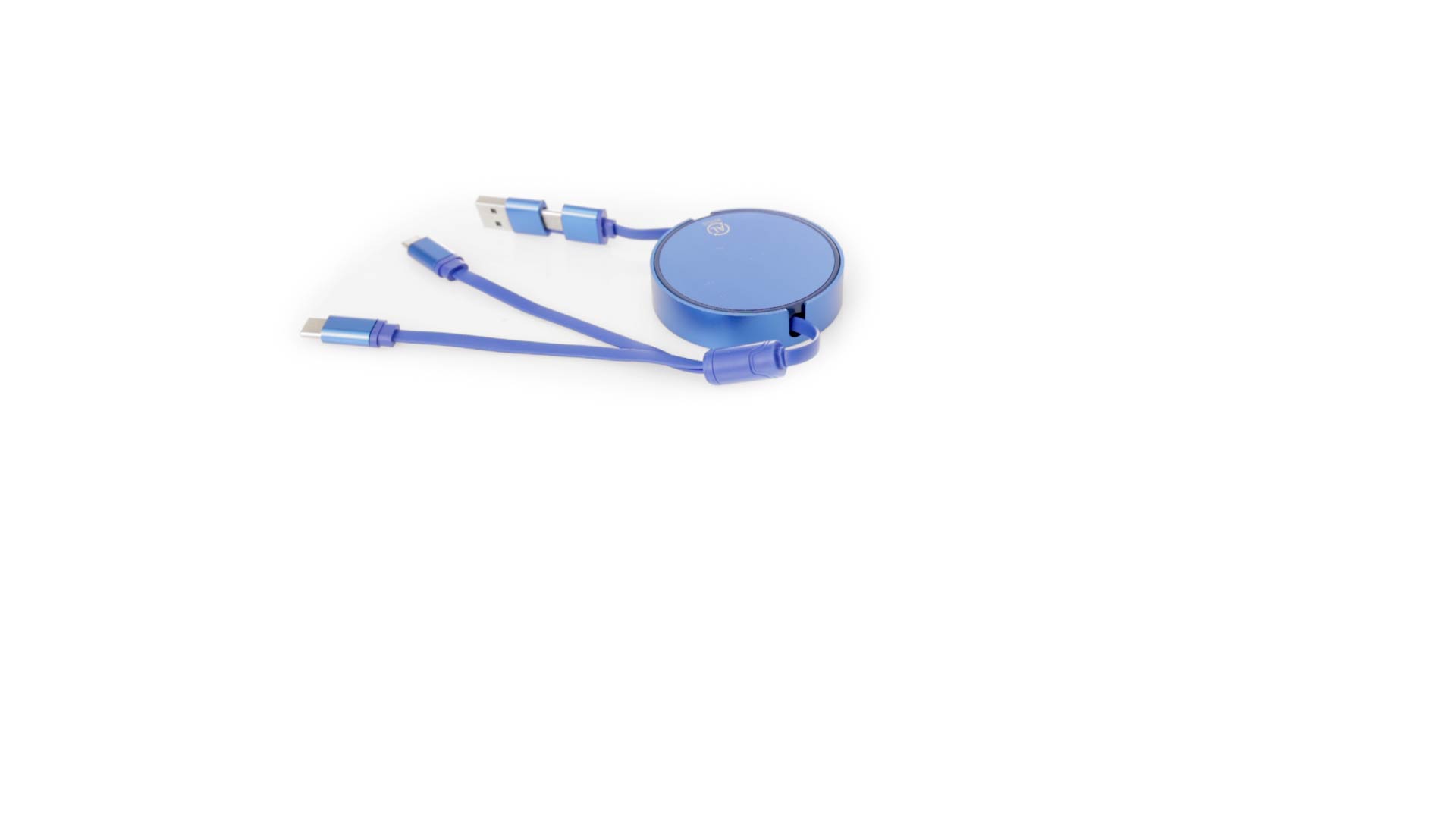 Verlängerbares Lade- aus recyceltem Aluminium mit metallischer Oberfläche. Zentrales Gehäuse mit grosser Brandingfläche, speziell für die Lasergravur entwickelt. Erhältlich in einer breiten Palette von Farben, mit passenden Kabeln. Typ-C- und USB-Eingangsanschlüsse, mit Lightning-, Micro-USB- und Typ-C-Ausgängen. 5V DC 2,4A. Verpackt in einer individuellen Kraft-Design-Tasche.