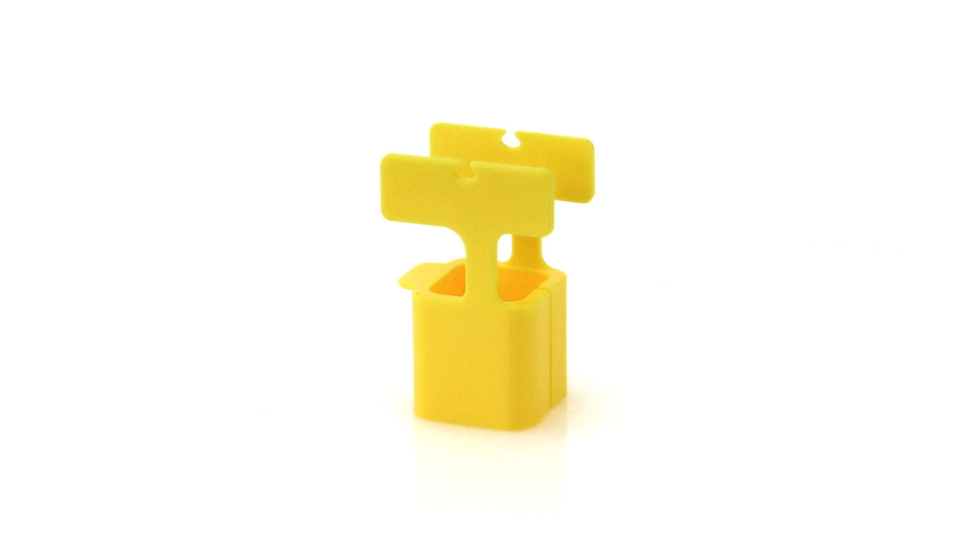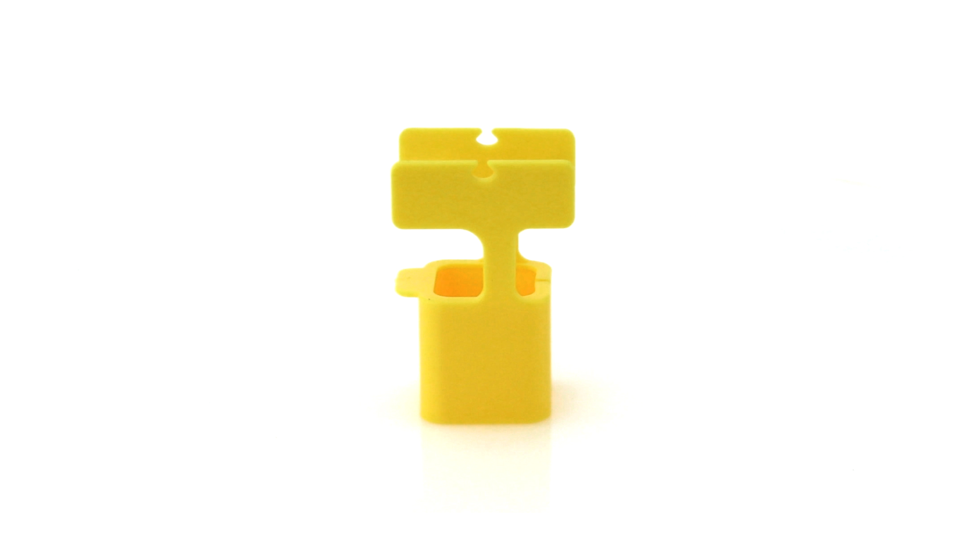 Origineller Smartphone-Halter für die Befestigung an der Wandsteckdose. Mit Kabelhalter. Körper in glänzender Ausführung - speziell entwickelt für den Tampondruck.