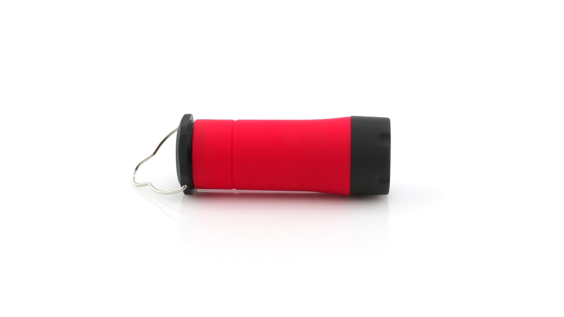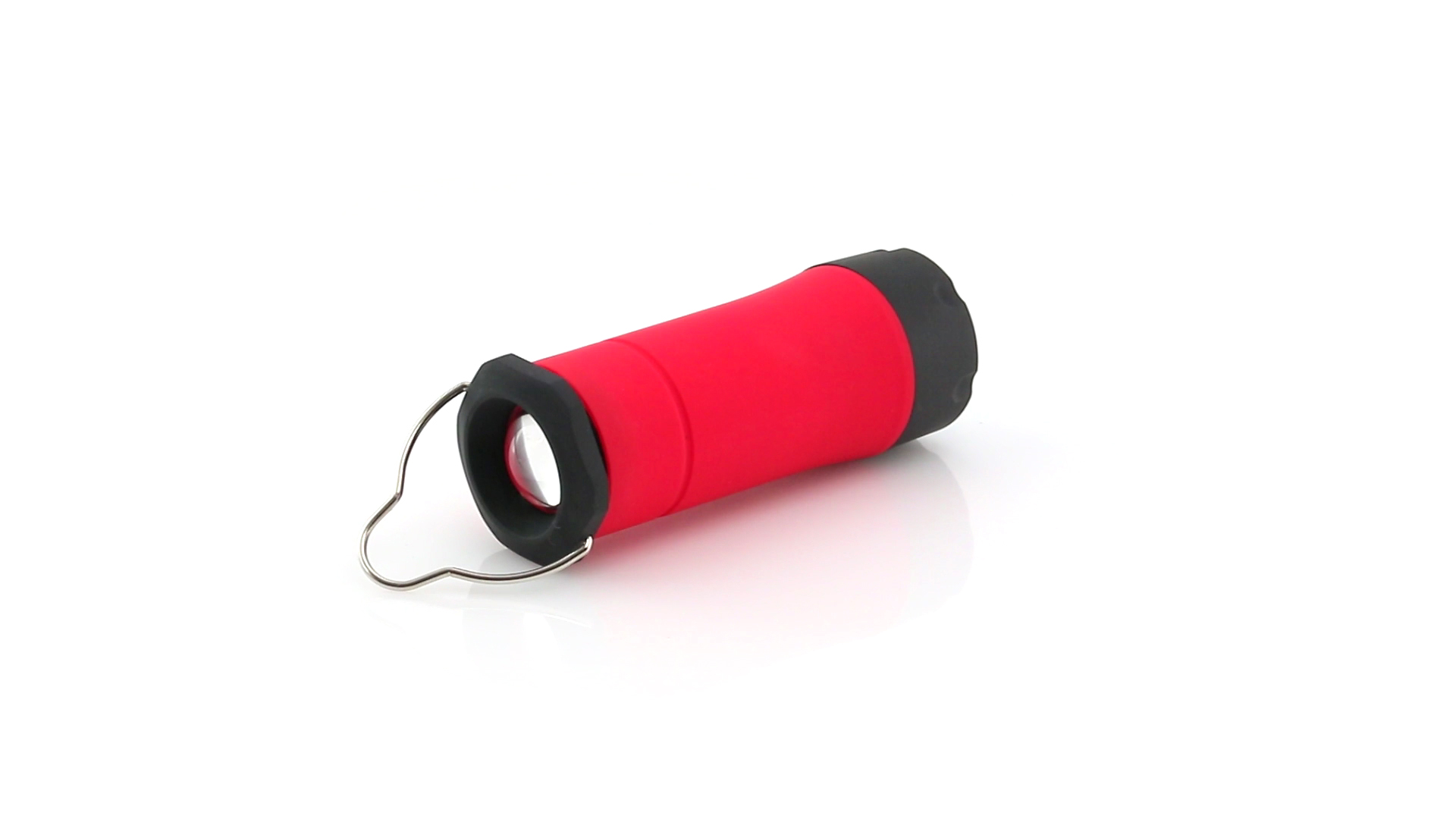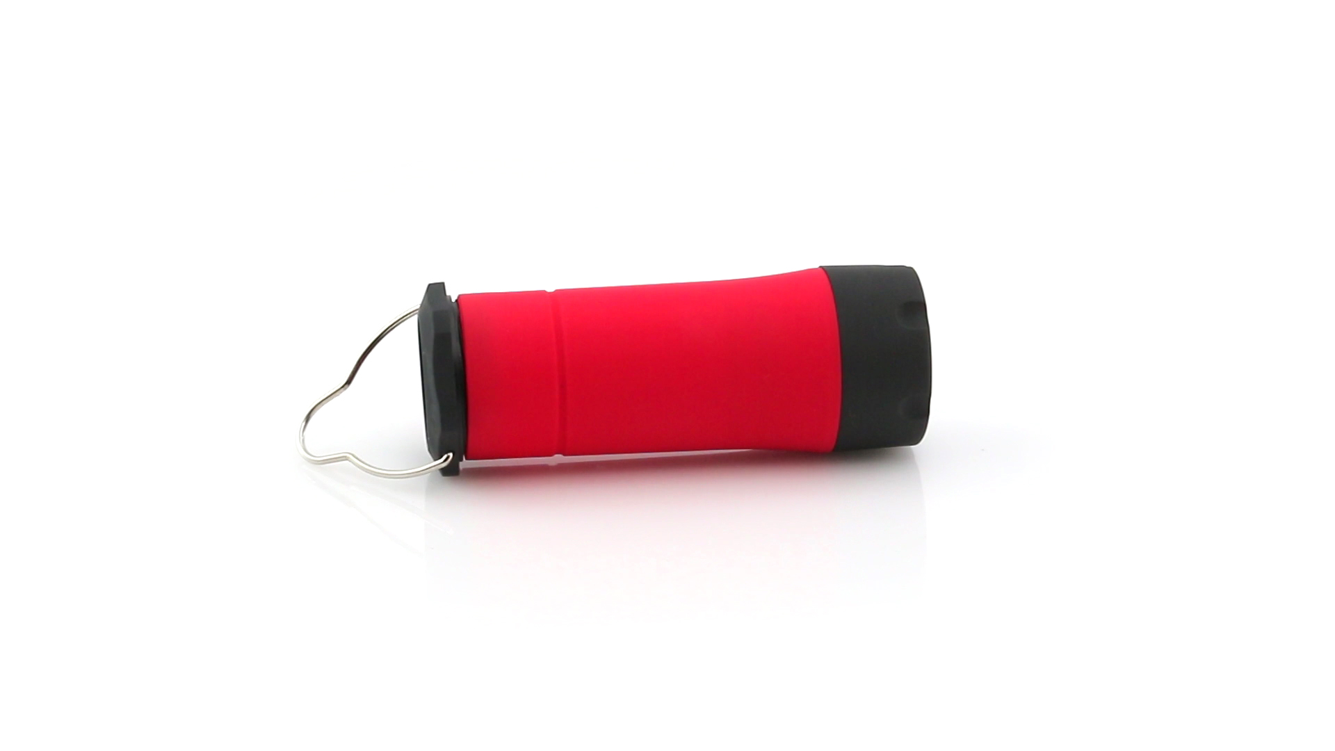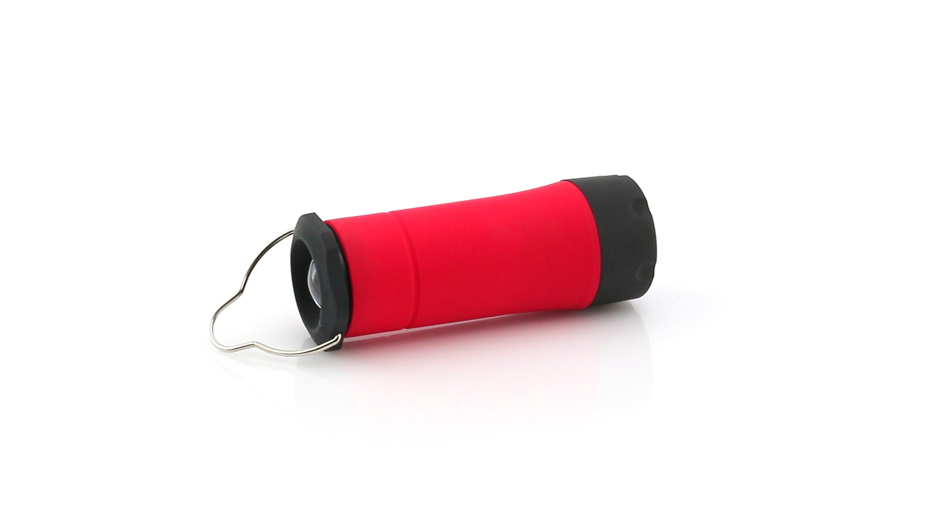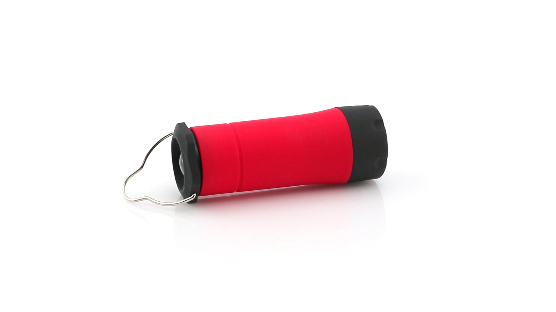 Camping-Laterne mit schönem, zweifarbigem Design in kräftigen Farben. Mit LED-Licht und Metallgriff zum Aufhängen. Batteriebetrieben - 3 x AAA nicht inklusive. Präsentiert in einer silbernen Box mit Luftpolsterfolie.