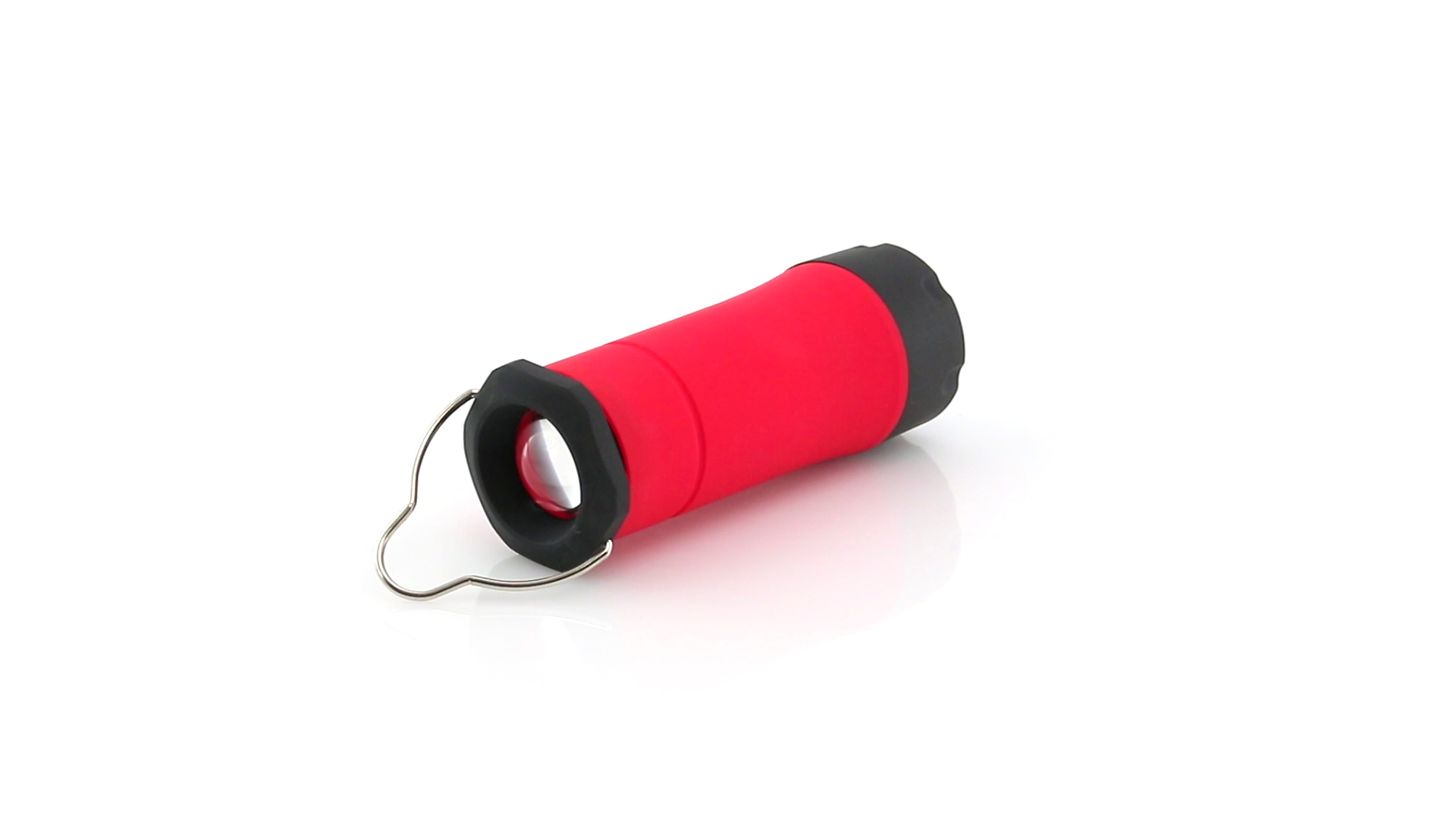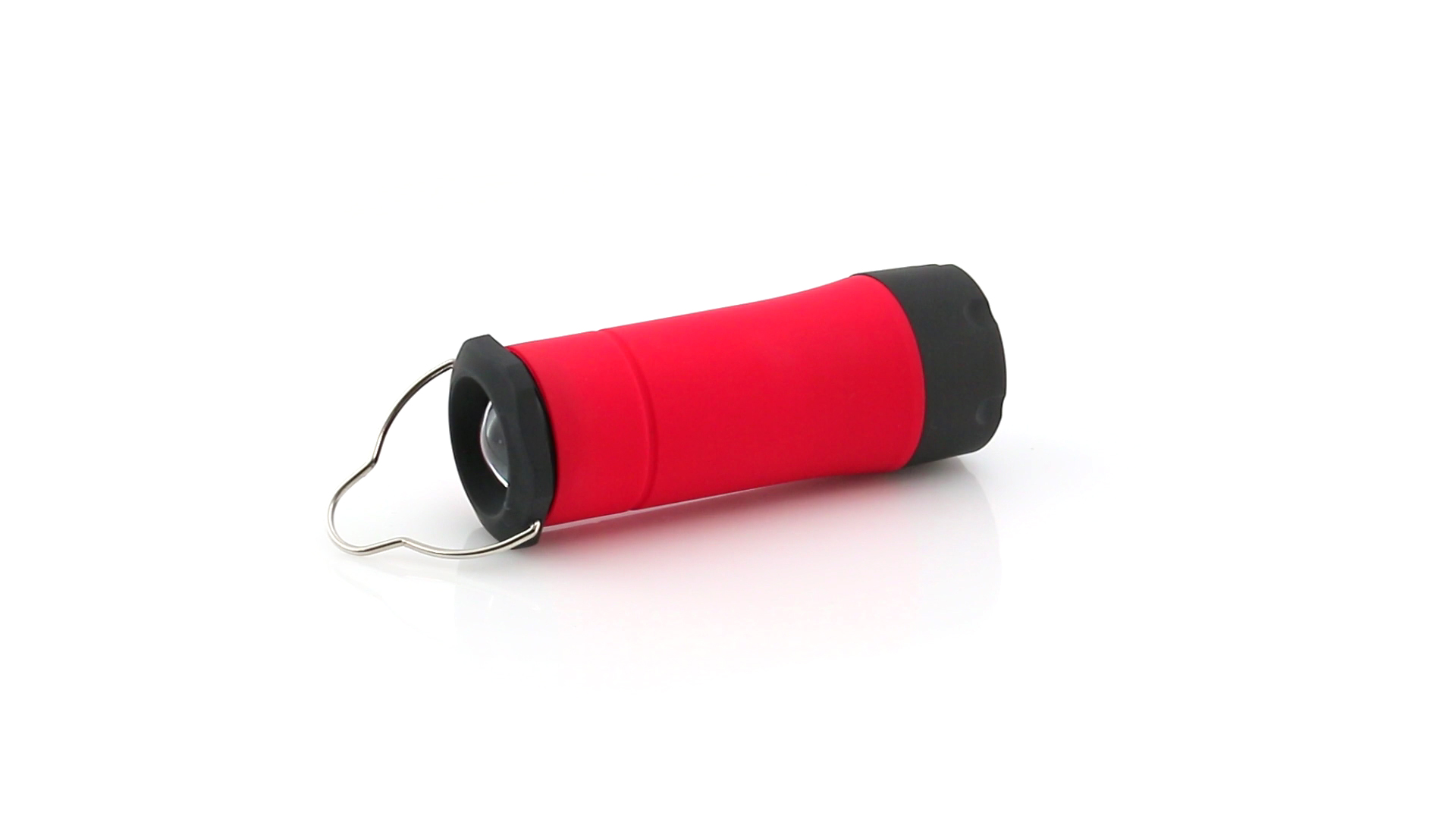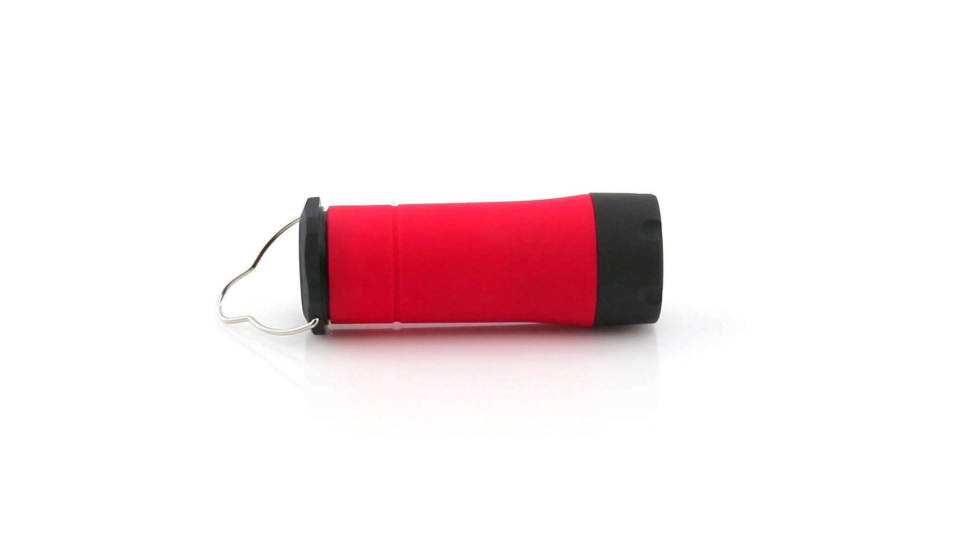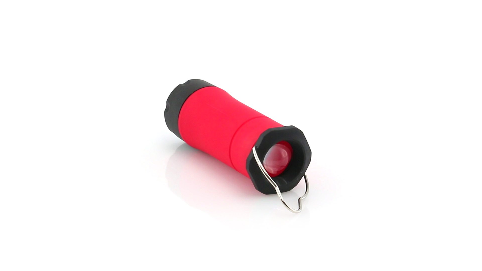 Camping-Laterne mit schönem, zweifarbigem Design in kräftigen Farben. Mit LED-Licht und Metallgriff zum Aufhängen. Batteriebetrieben - 3 x AAA nicht inklusive. Präsentiert in einer silbernen Box mit Luftpolsterfolie.