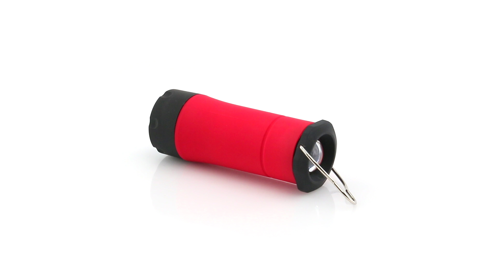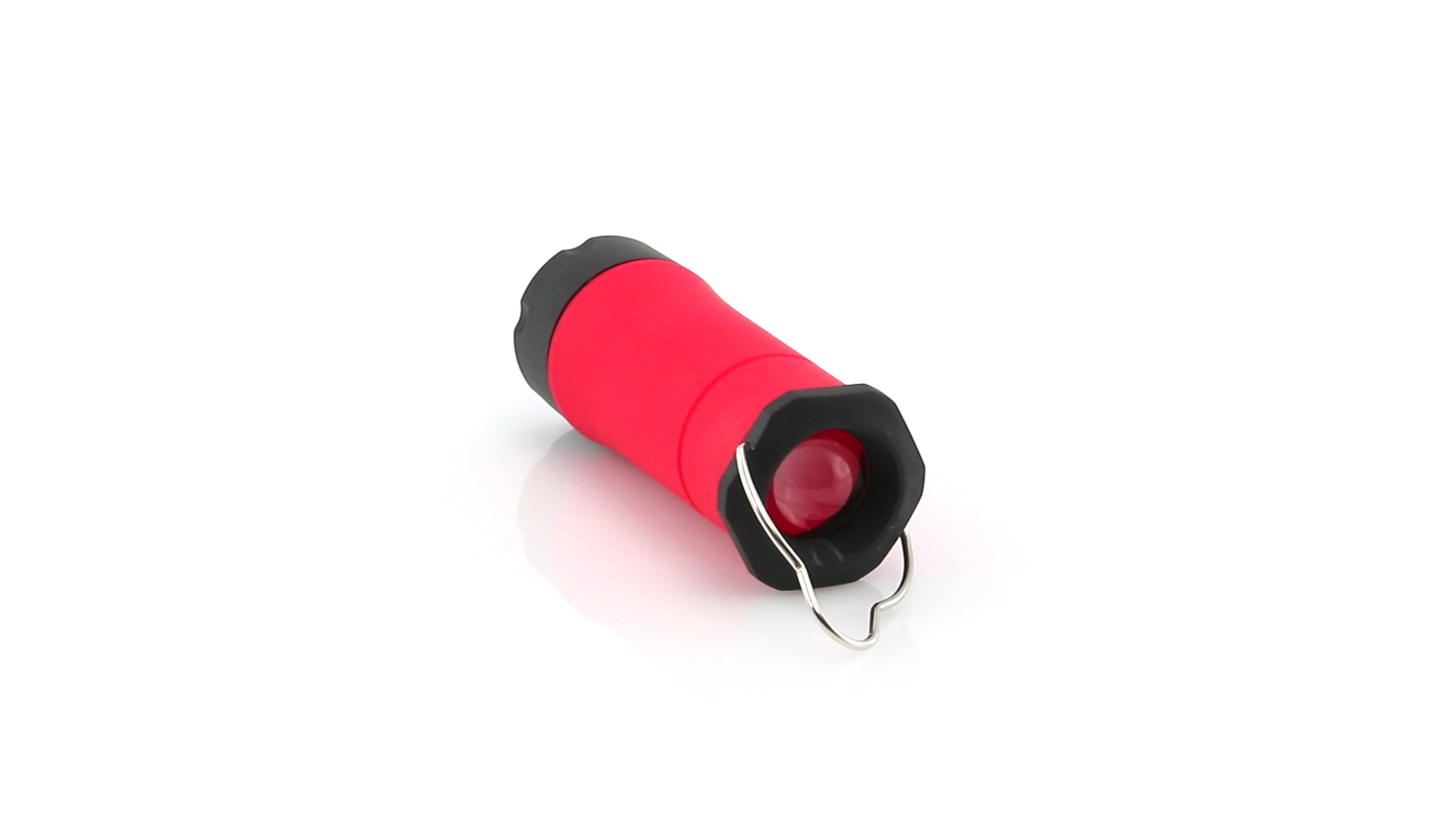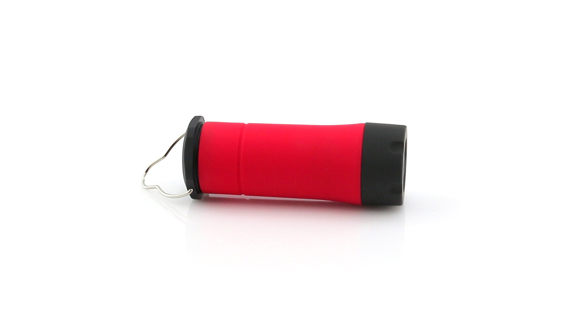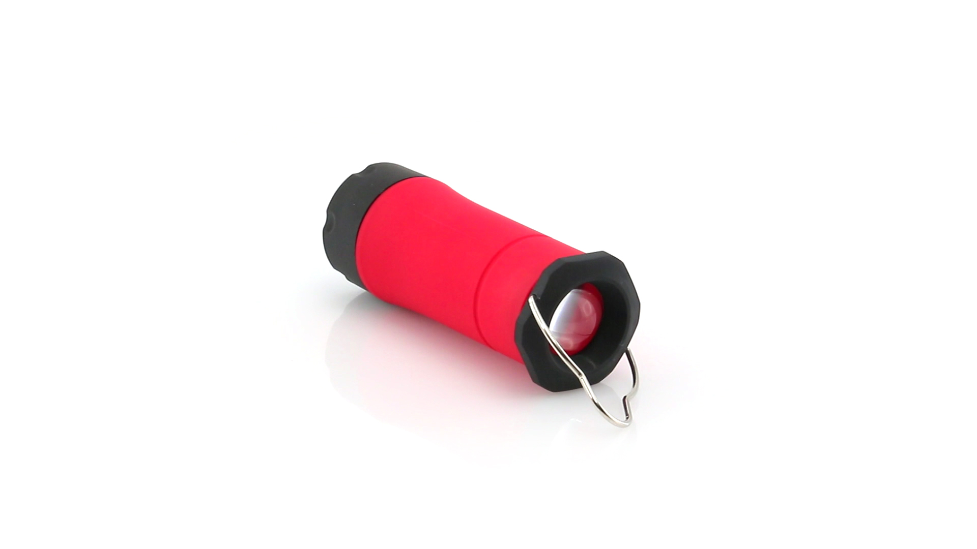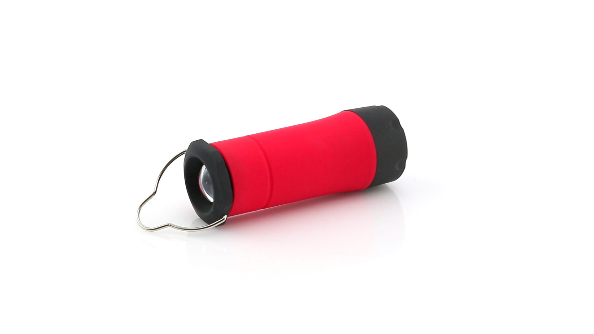 Camping-Laterne mit schönem, zweifarbigem Design in kräftigen Farben. Mit LED-Licht und Metallgriff zum Aufhängen. Batteriebetrieben - 3 x AAA nicht inklusive. Präsentiert in einer silbernen Box mit Luftpolsterfolie.