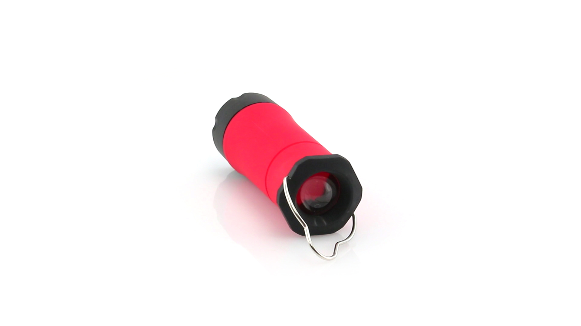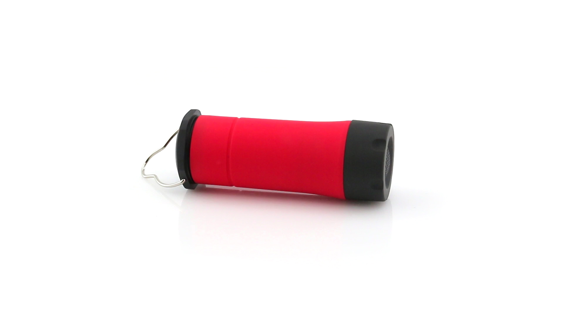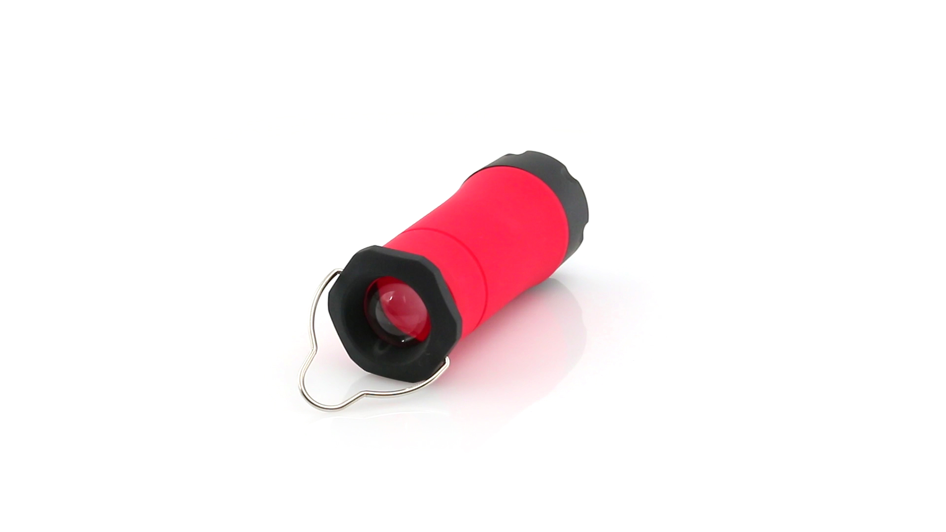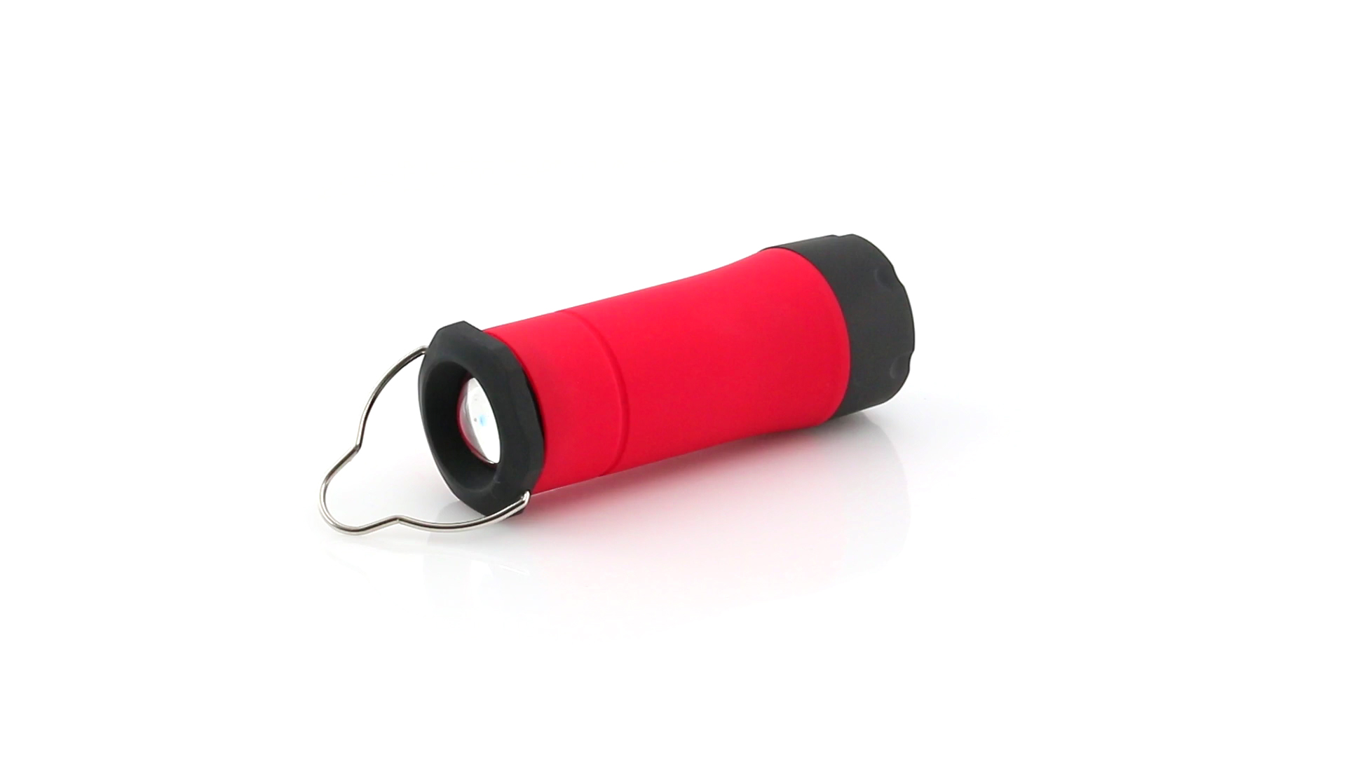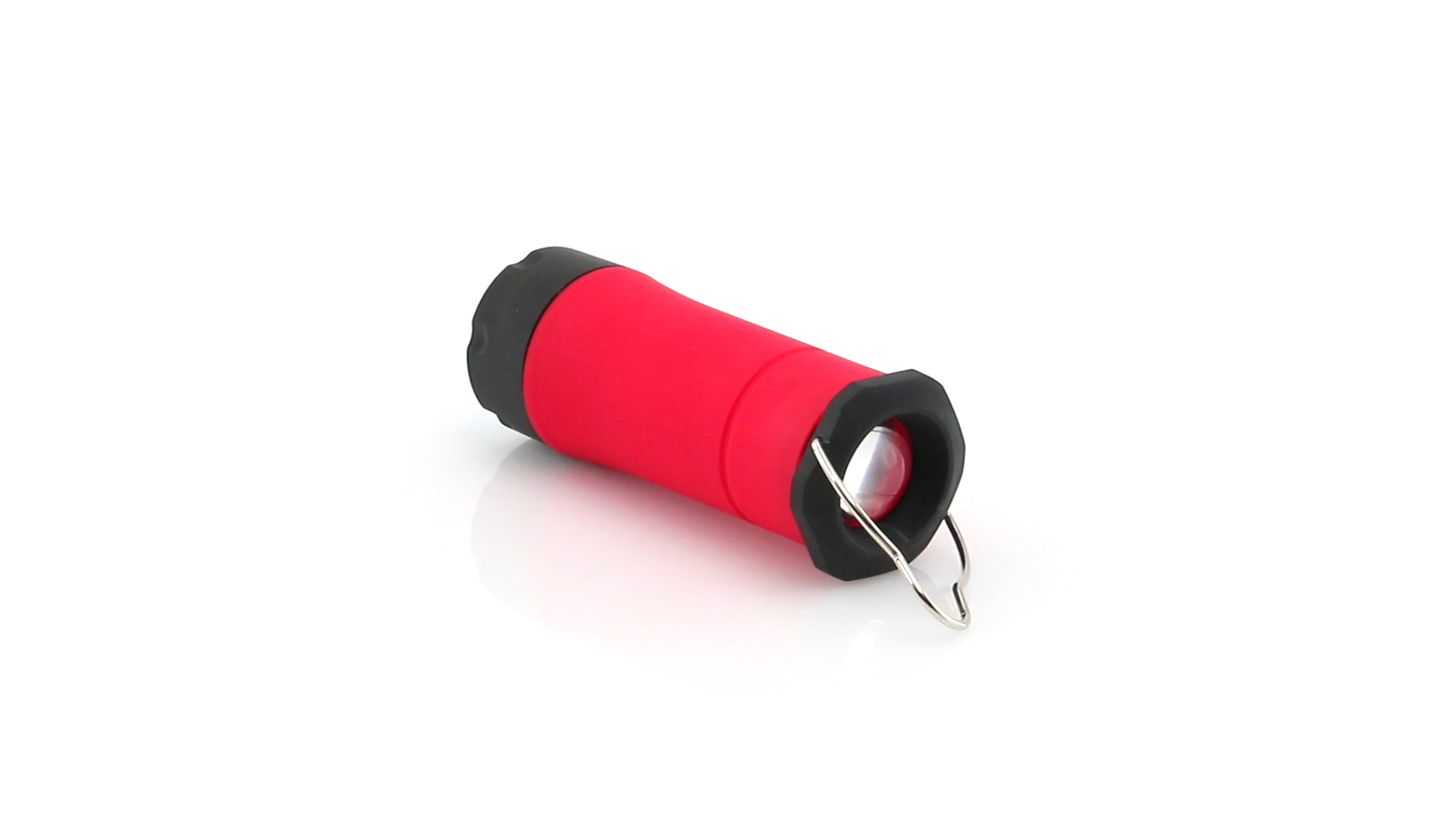 Camping-Laterne mit schönem, zweifarbigem Design in kräftigen Farben. Mit LED-Licht und Metallgriff zum Aufhängen. Batteriebetrieben - 3 x AAA nicht inklusive. Präsentiert in einer silbernen Box mit Luftpolsterfolie.