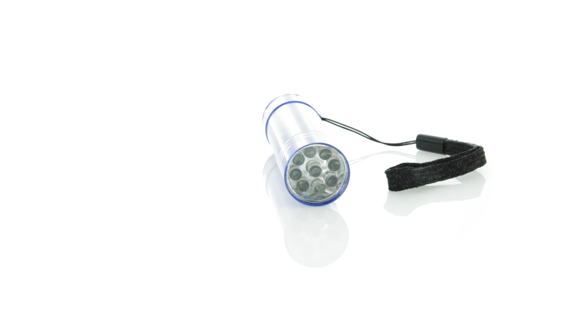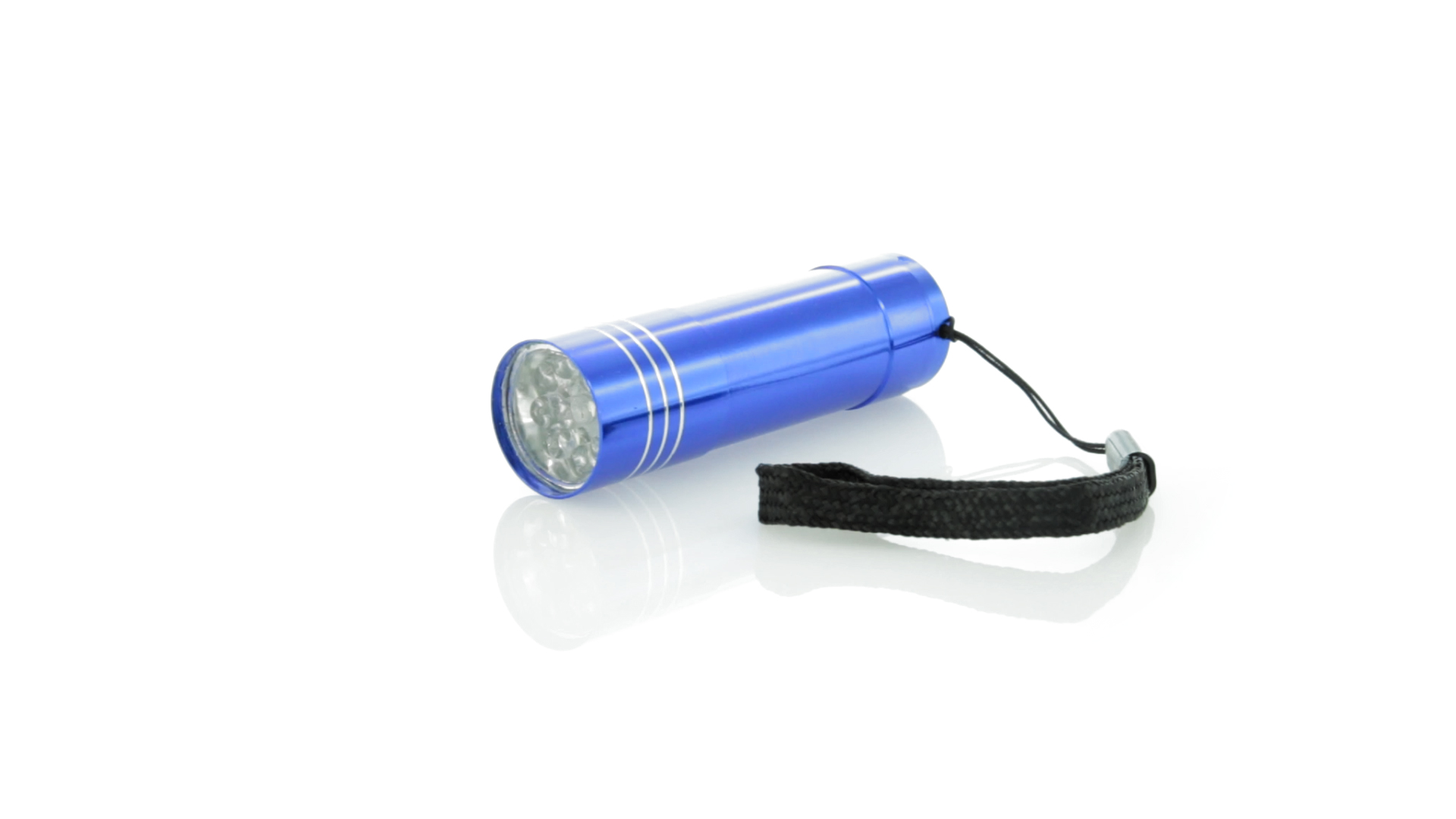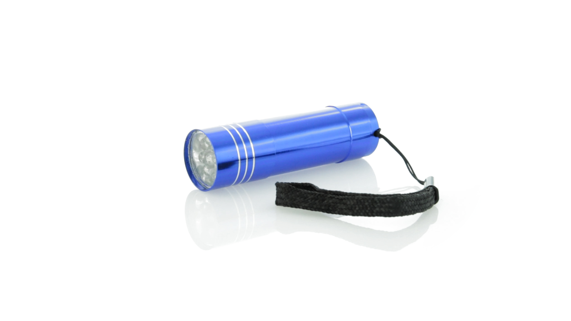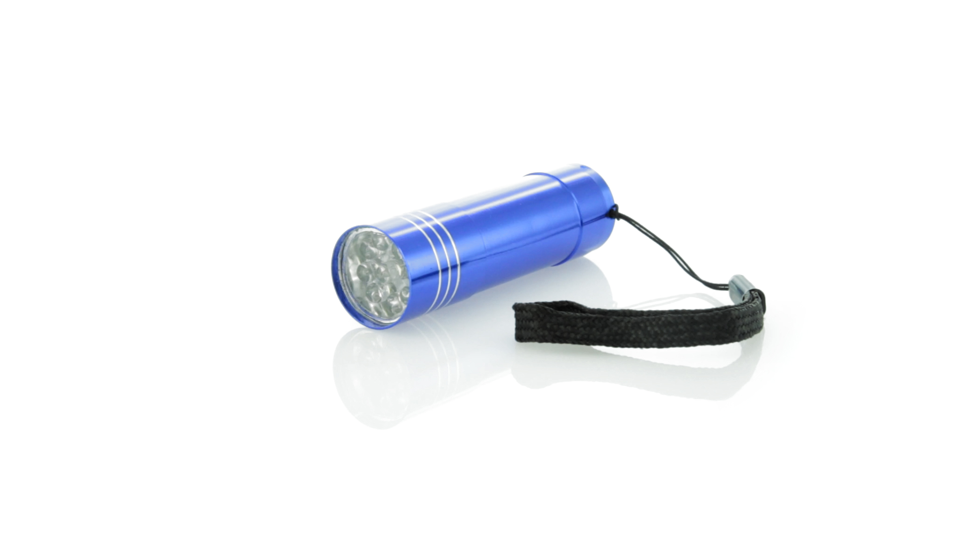 9-LED-Taschenlampe mit hoher Leuchtkraft aus resistentem Aluminium. Mit Trageschlaufe und Druckknopf mit robuster Gummibeschichtung. Batteriebetrieben - 3 x AAA nicht inklusive. Präsentiert in einer individuellen Box.