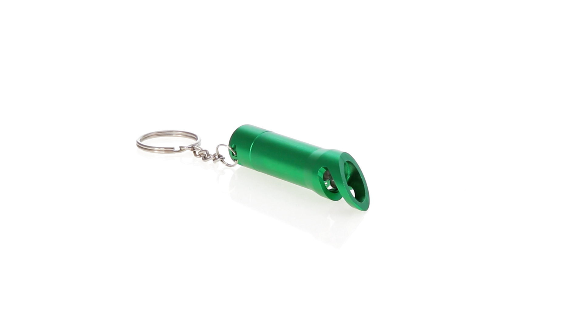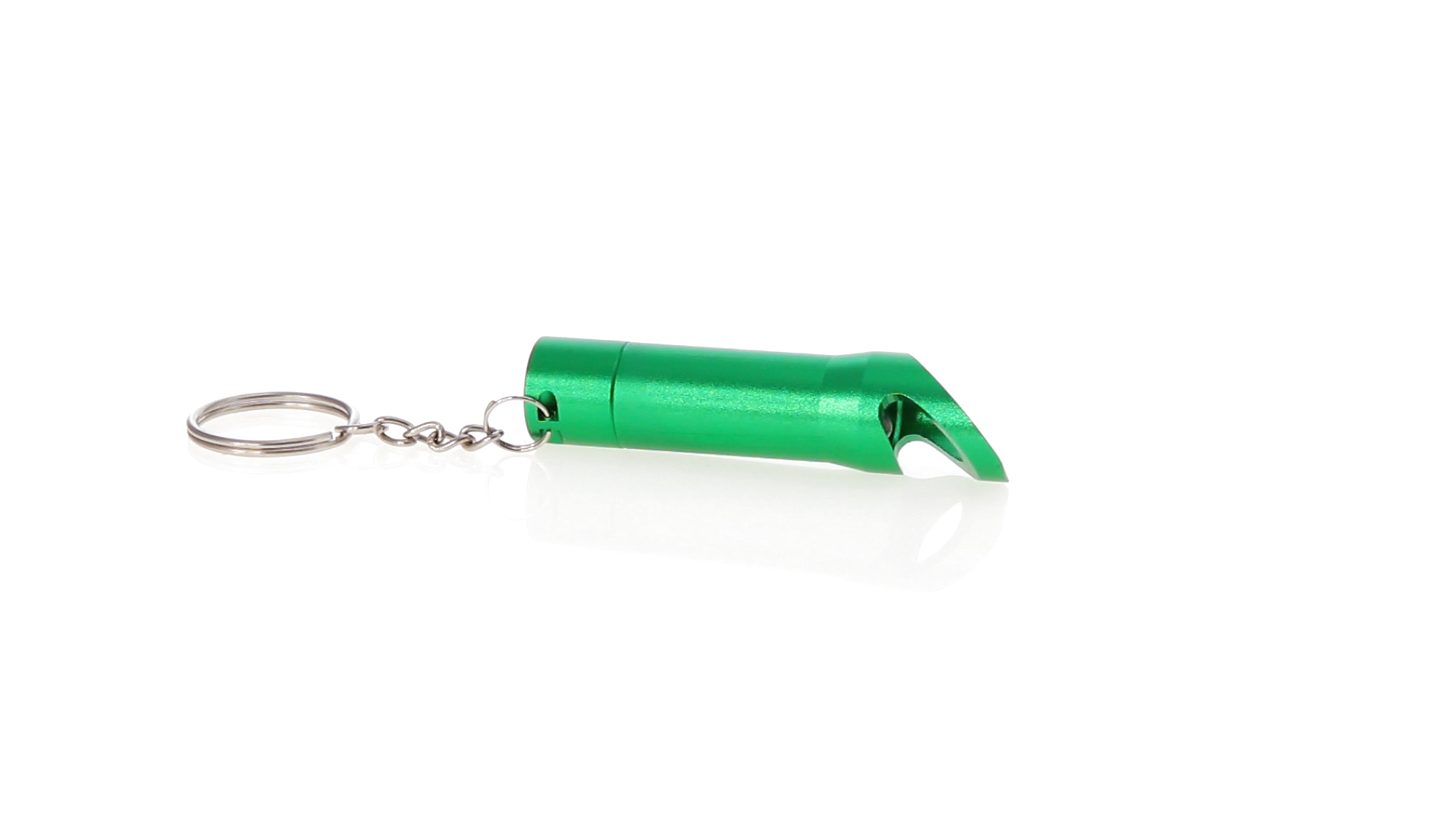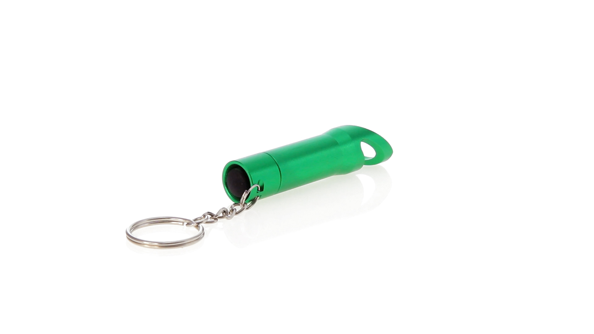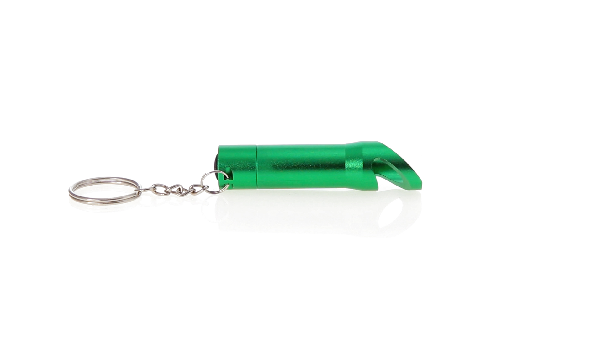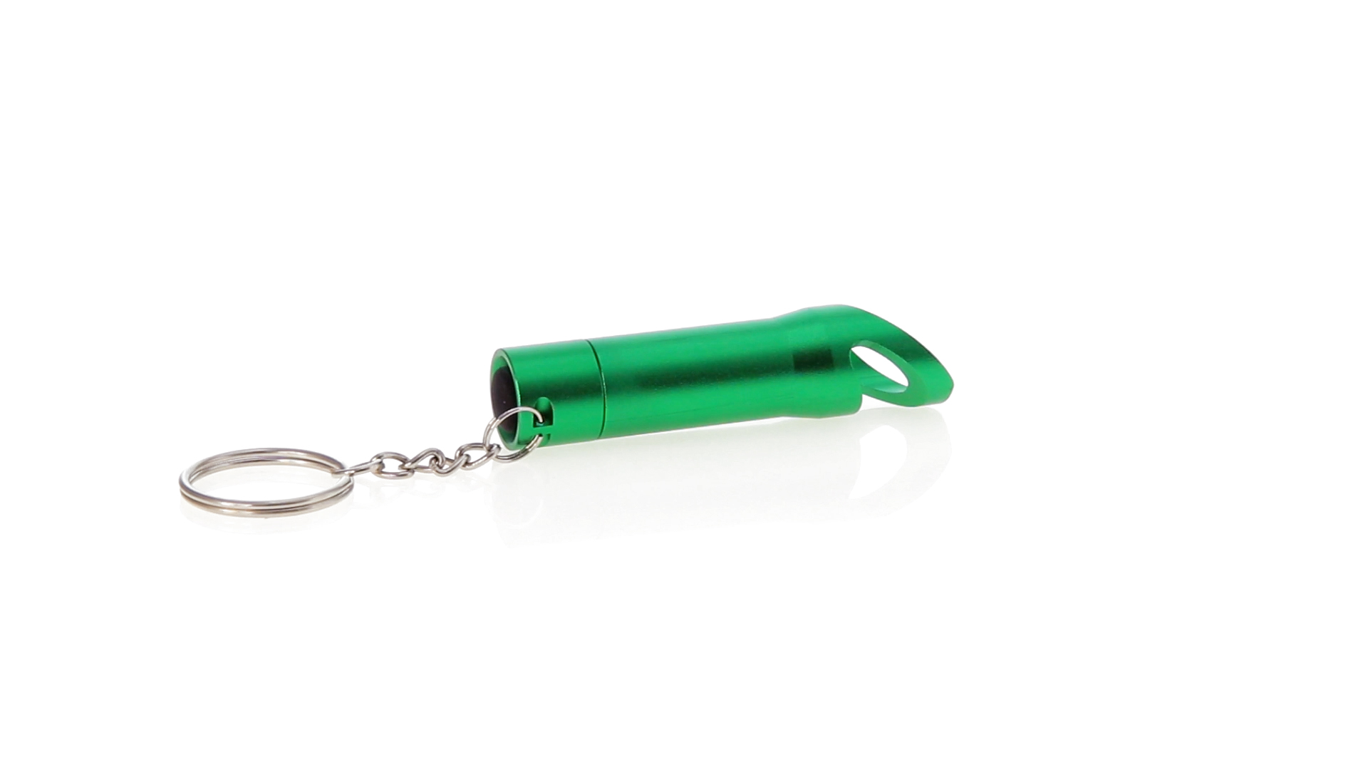 3-LED-Taschenlampe von hoher Leuchtkraft und Schlüsselring sowie integriertem Flaschenöffner. Mit robustem Aluminiumgehäuse in verschiedenen lebendigen Farben und Druckknopf mit resistenter Gummibeschichtung. Knopfzellen mit Schutzfolie inklusive.