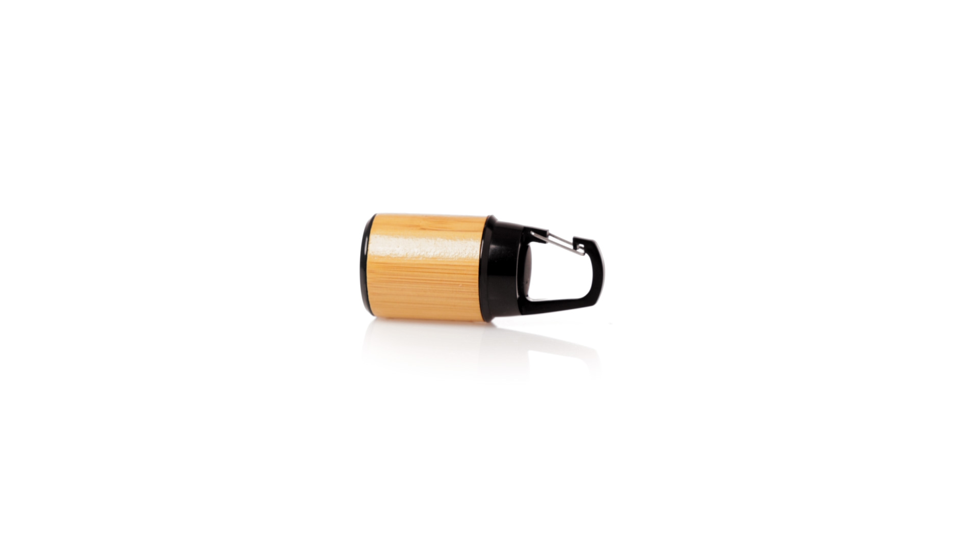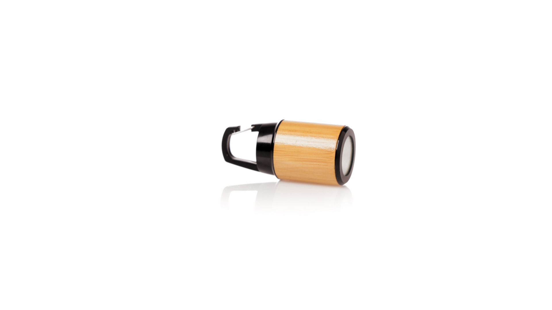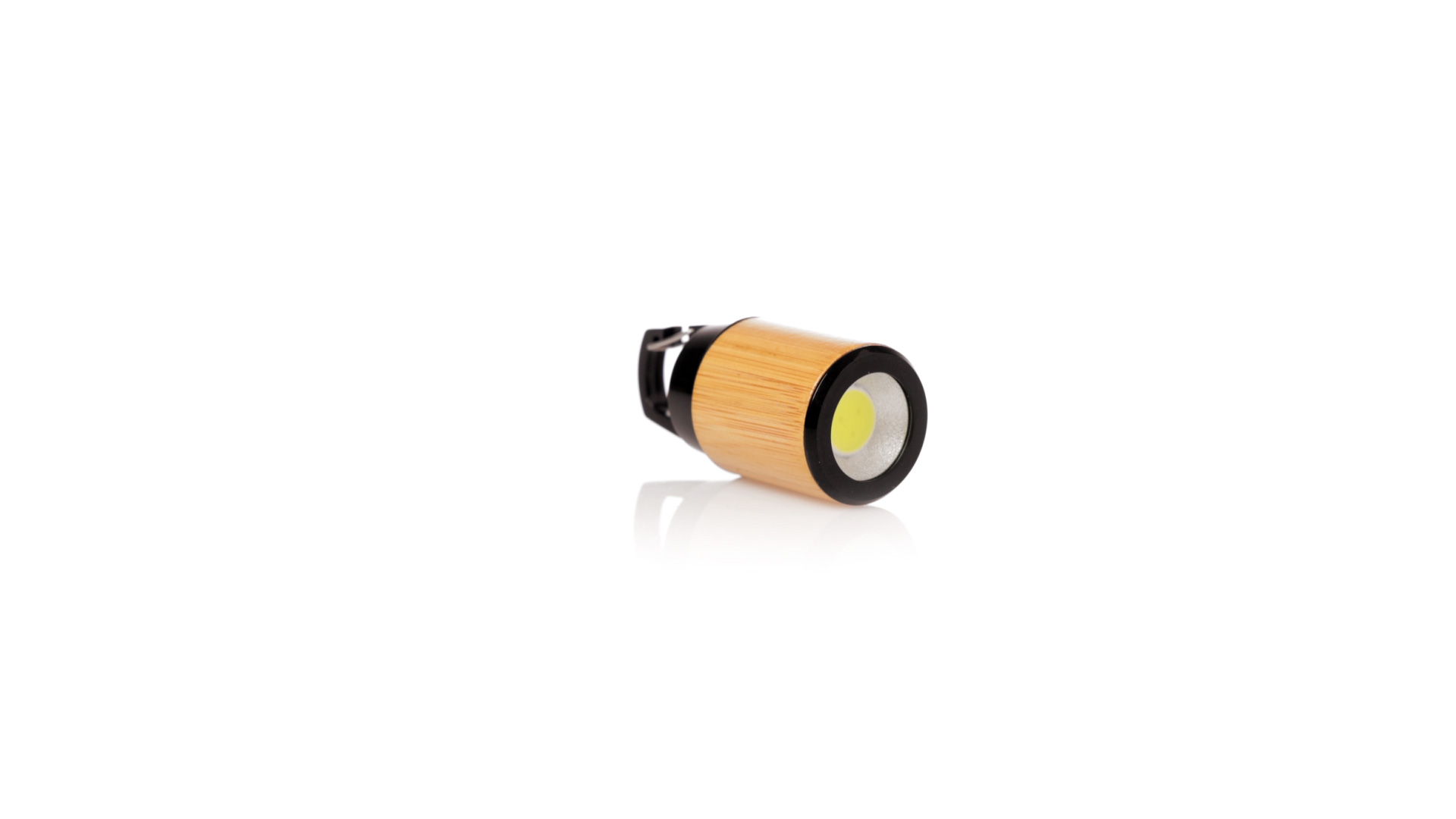 Taschenlampe aus Bambus mit Karabiner aus haltbarem schwarzem ABS. 3 LEDs, Druckknopf-Zündsystem und Batteriebetrieb (Knopfbatterien enthalten). Präsentiert in individueller Kraft-Design-Box.Materialien wie Bambus fördern die Verwendung von natürlichen Rohstoffen und reduzieren die Schadstoffemissionen. Darüber hinaus ist Bambus eine sehr widerstandsfähige und vielseitige Pflanze, die schnell wächst und sich regeneriert, was sie zu einer ausgezeichneten Alternative zur Verwendung von traditionellem Holz macht.