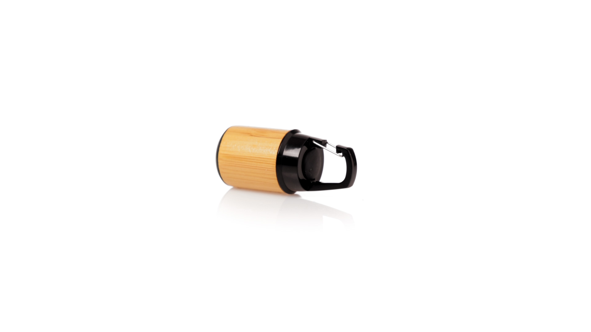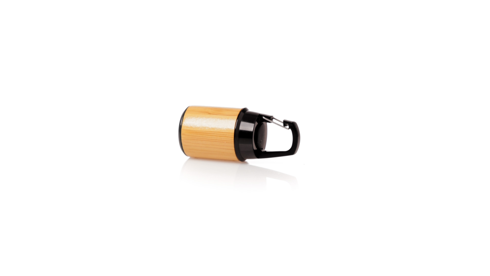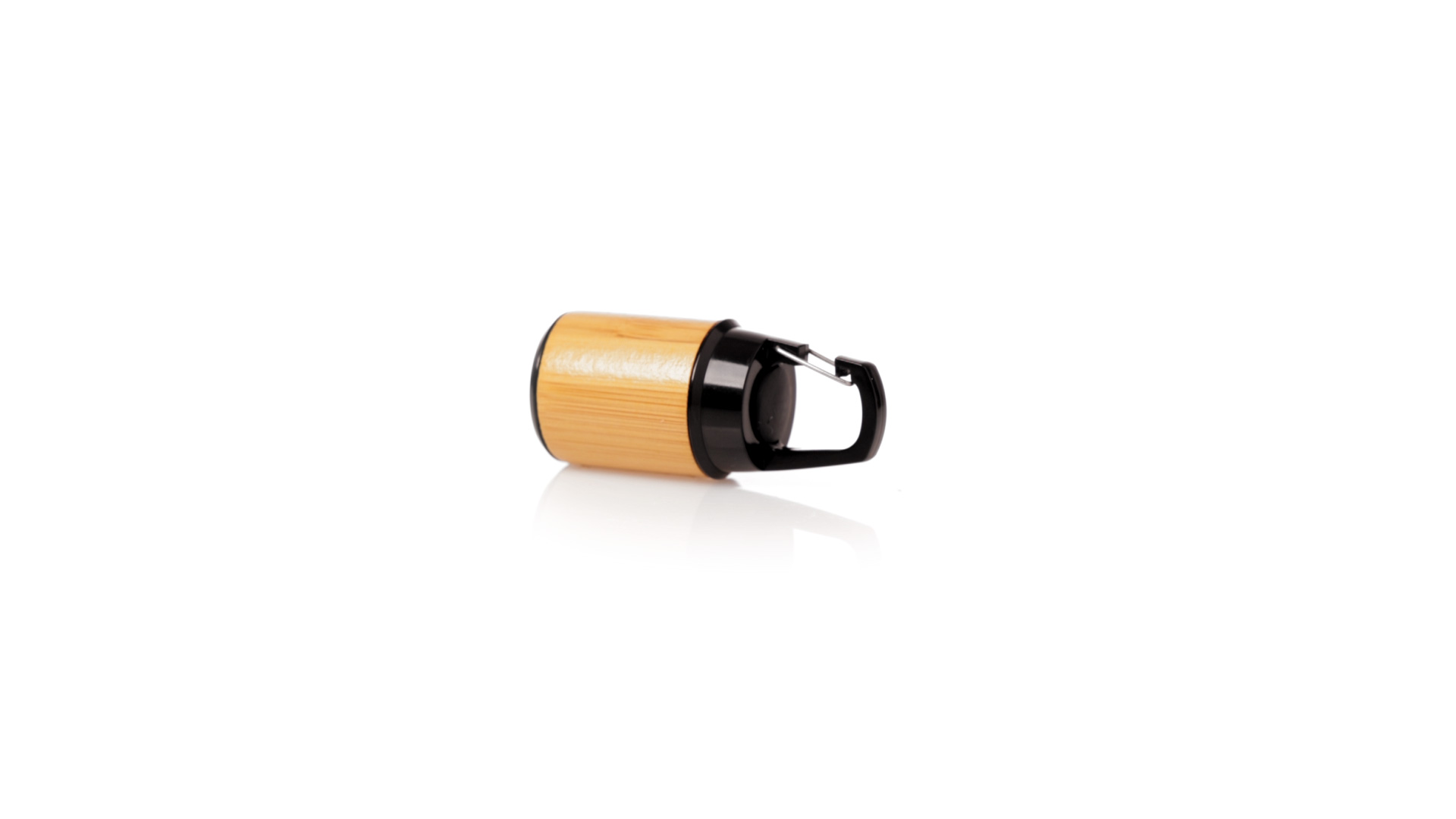 Taschenlampe aus Bambus mit Karabiner aus haltbarem schwarzem ABS. 3 LEDs, Druckknopf-Zündsystem und Batteriebetrieb (Knopfbatterien enthalten). Präsentiert in individueller Kraft-Design-Box.Materialien wie Bambus fördern die Verwendung von natürlichen Rohstoffen und reduzieren die Schadstoffemissionen. Darüber hinaus ist Bambus eine sehr widerstandsfähige und vielseitige Pflanze, die schnell wächst und sich regeneriert, was sie zu einer ausgezeichneten Alternative zur Verwendung von traditionellem Holz macht.