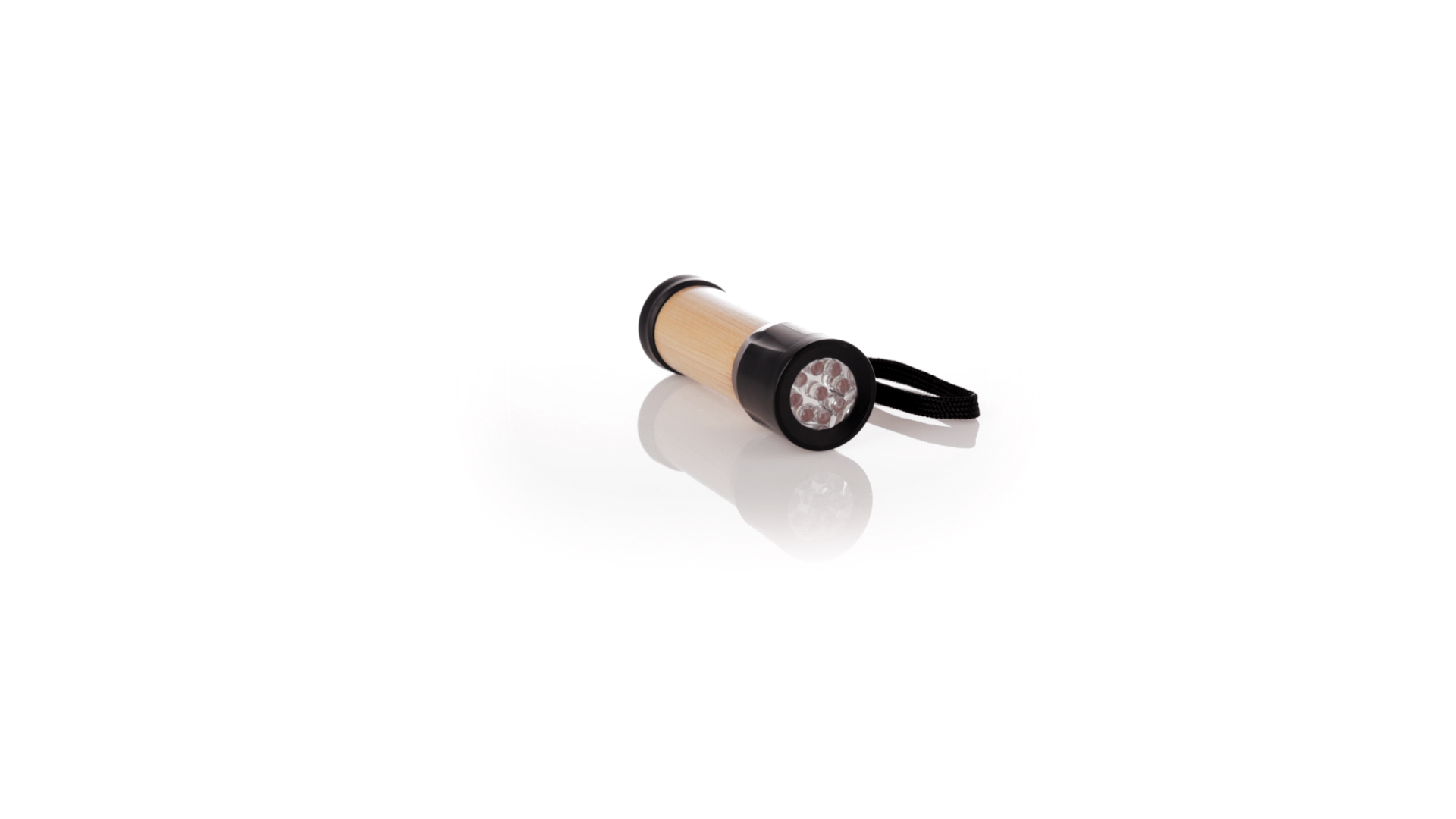 Taschenlampe aus Bambus und robustem schwarzem ABS. Mit 9 LEDs, Befestigungsband und Batterieversorgung (3xAAA nicht enthalten). Präsentiert in einer individuellen Kraft-Design-Box.Materialien wie Bambus fördern die Verwendung von natürlichen Rohstoffen und reduzieren die Schadstoffemissionen. Darüber hinaus ist Bambus eine sehr widerstandsfähige und vielseitige Pflanze, die schnell wächst und sich regeneriert, was sie zu einer ausgezeichneten Alternative zur Verwendung von traditionellem Holz macht.