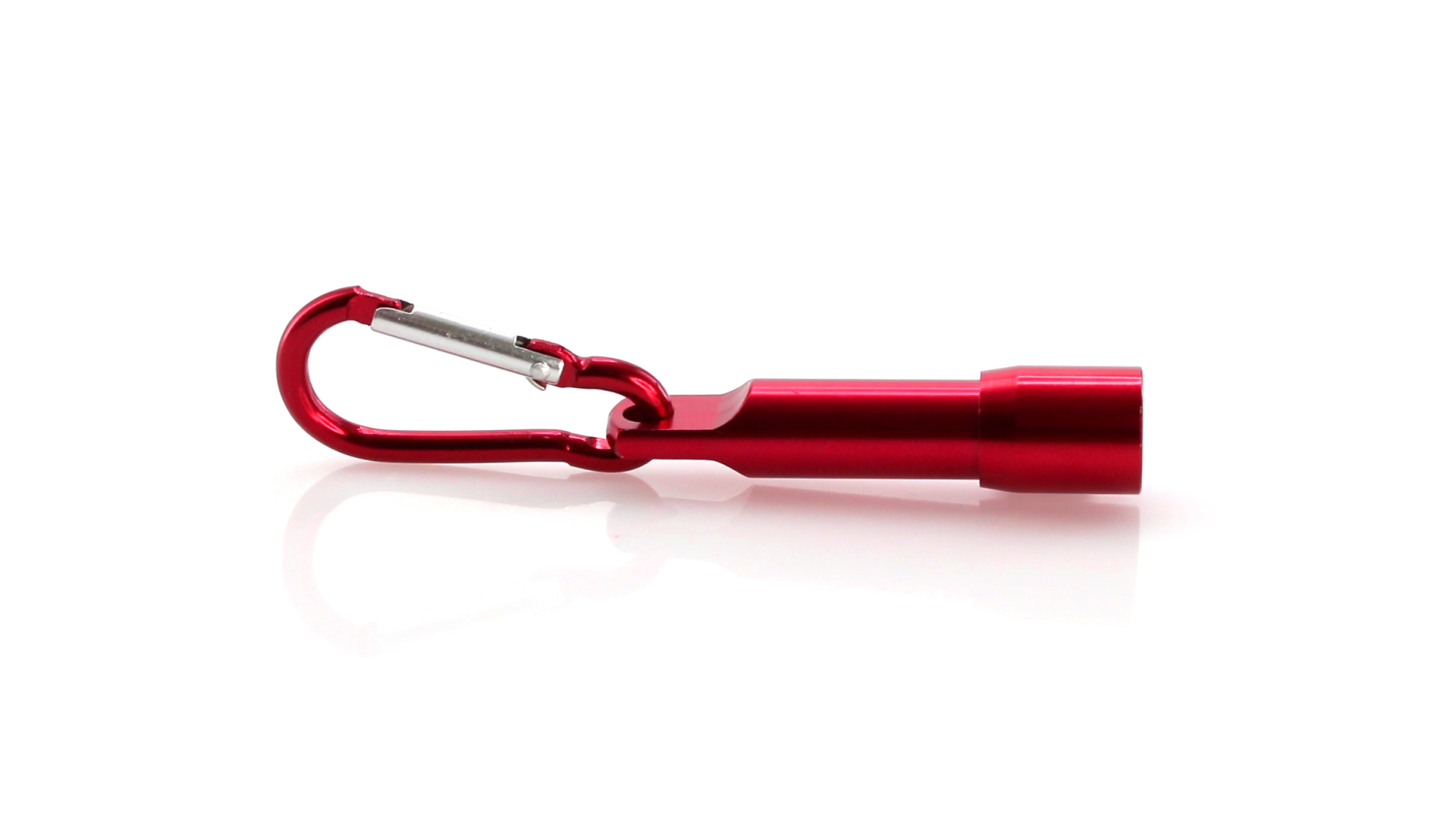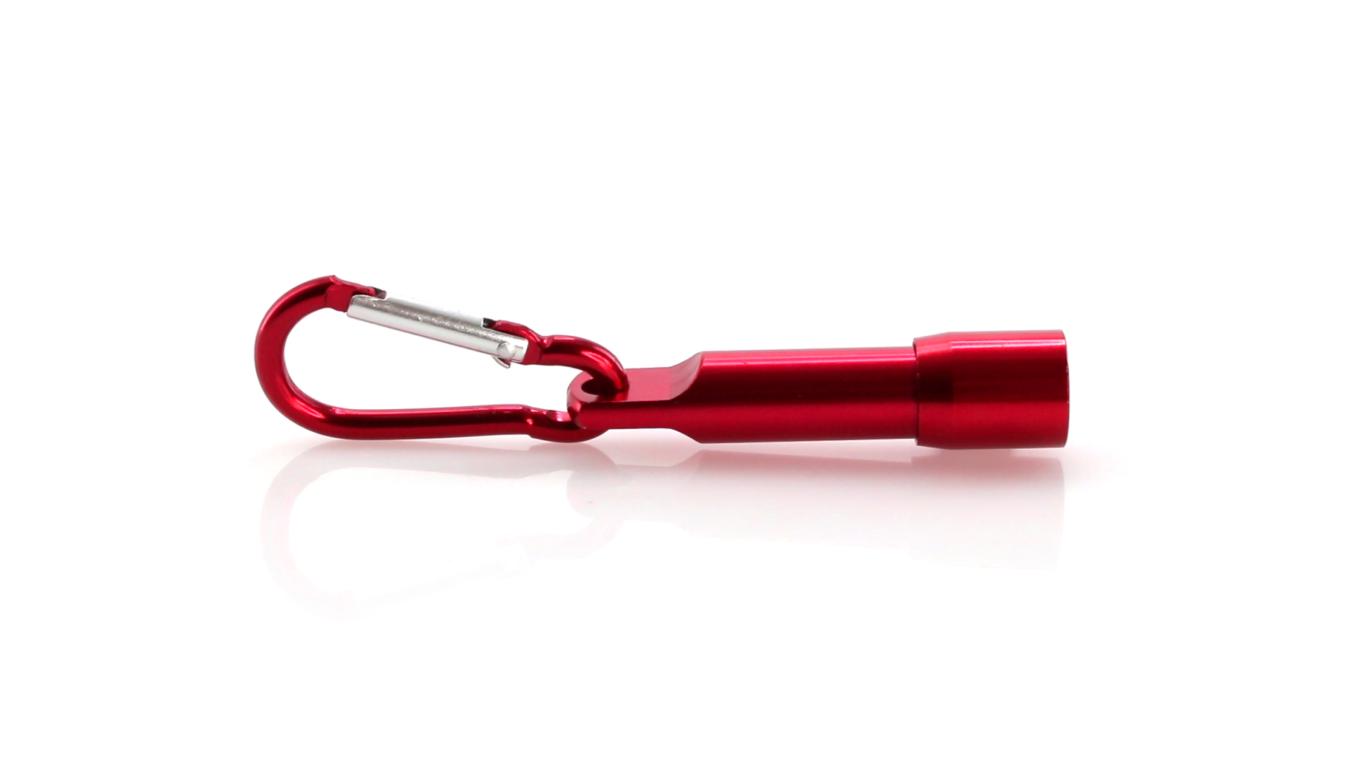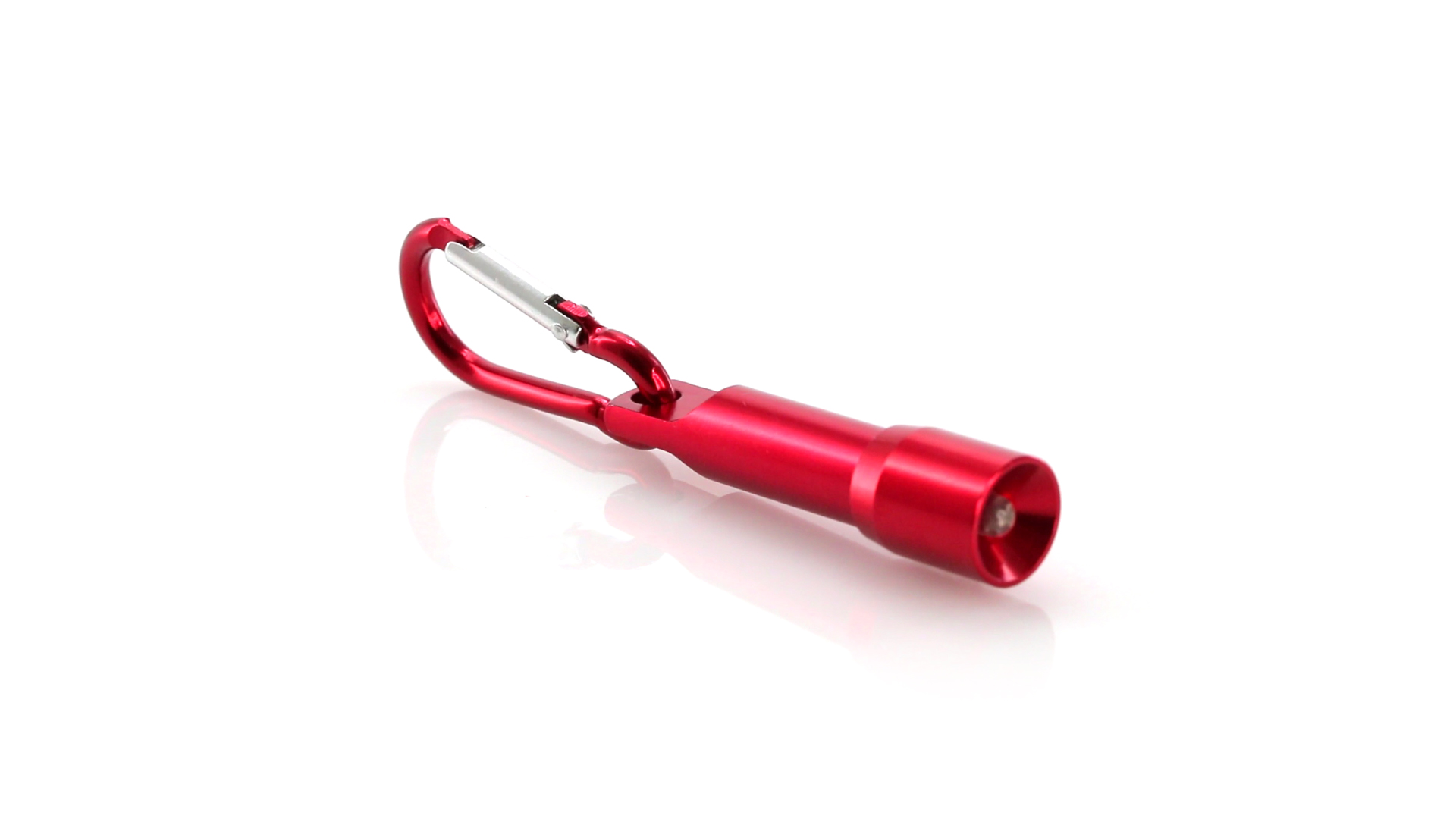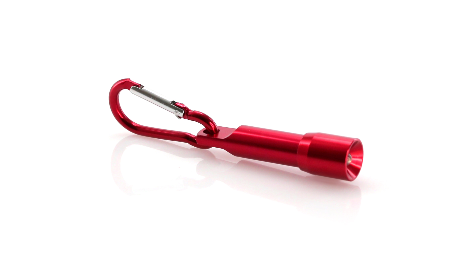 LED-Taschenlampe mit robustem Aluminiumgehäuse in verschiedenen Farben. Mit farblich passendem Karabiner und Knopfzellen mit Schutzfolie inklusive.