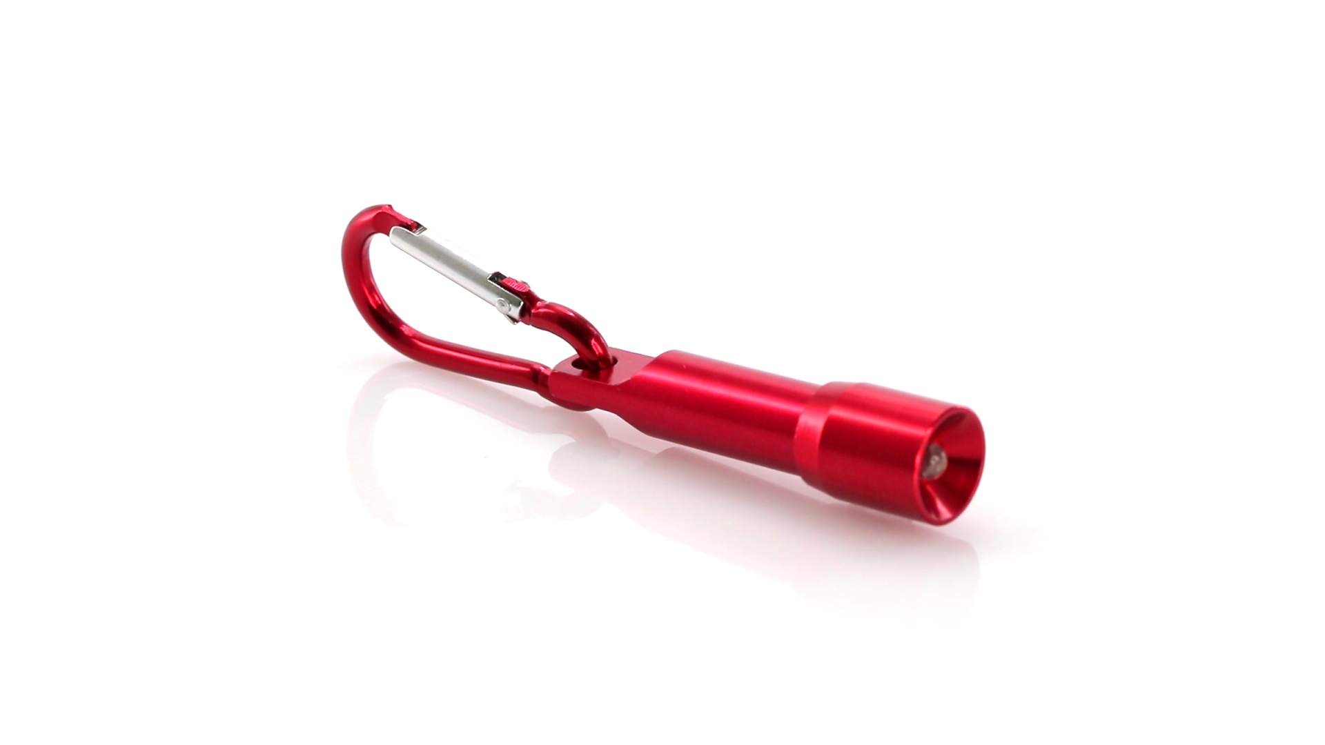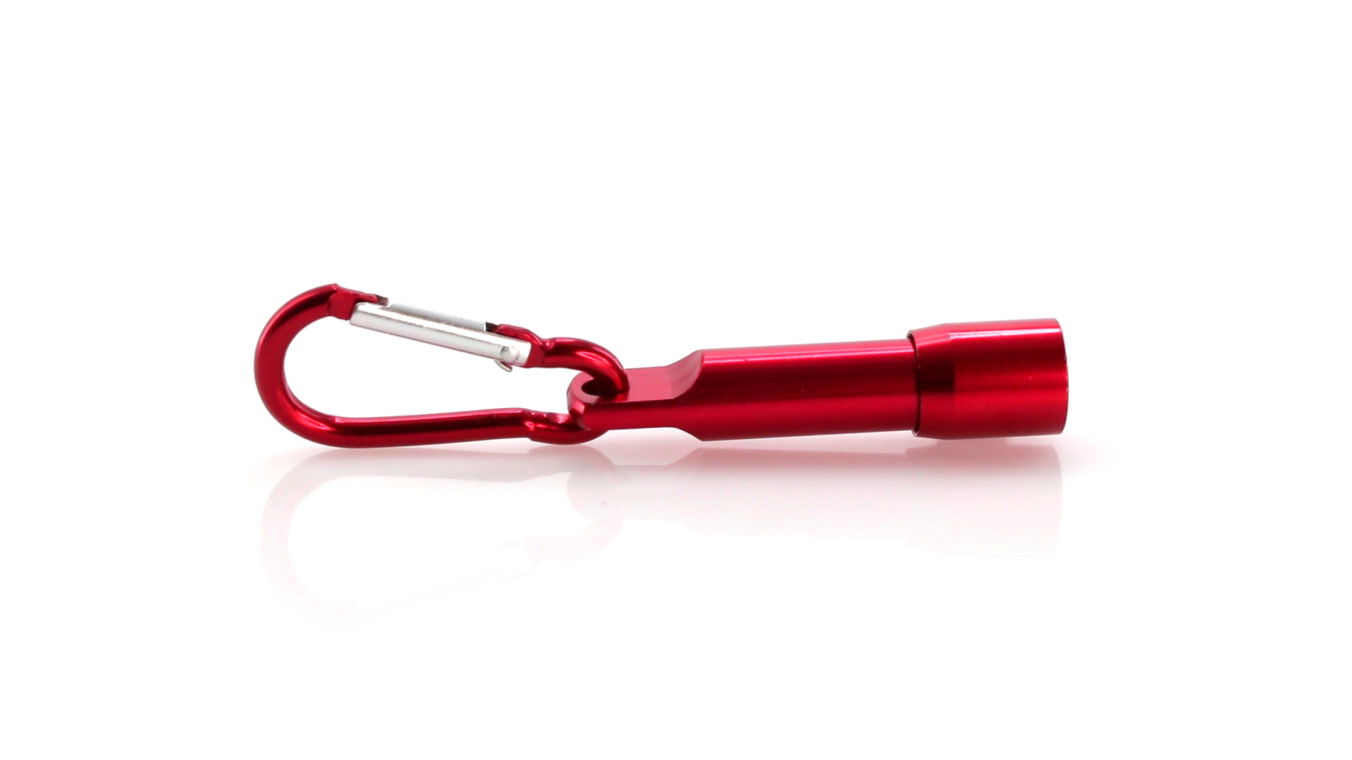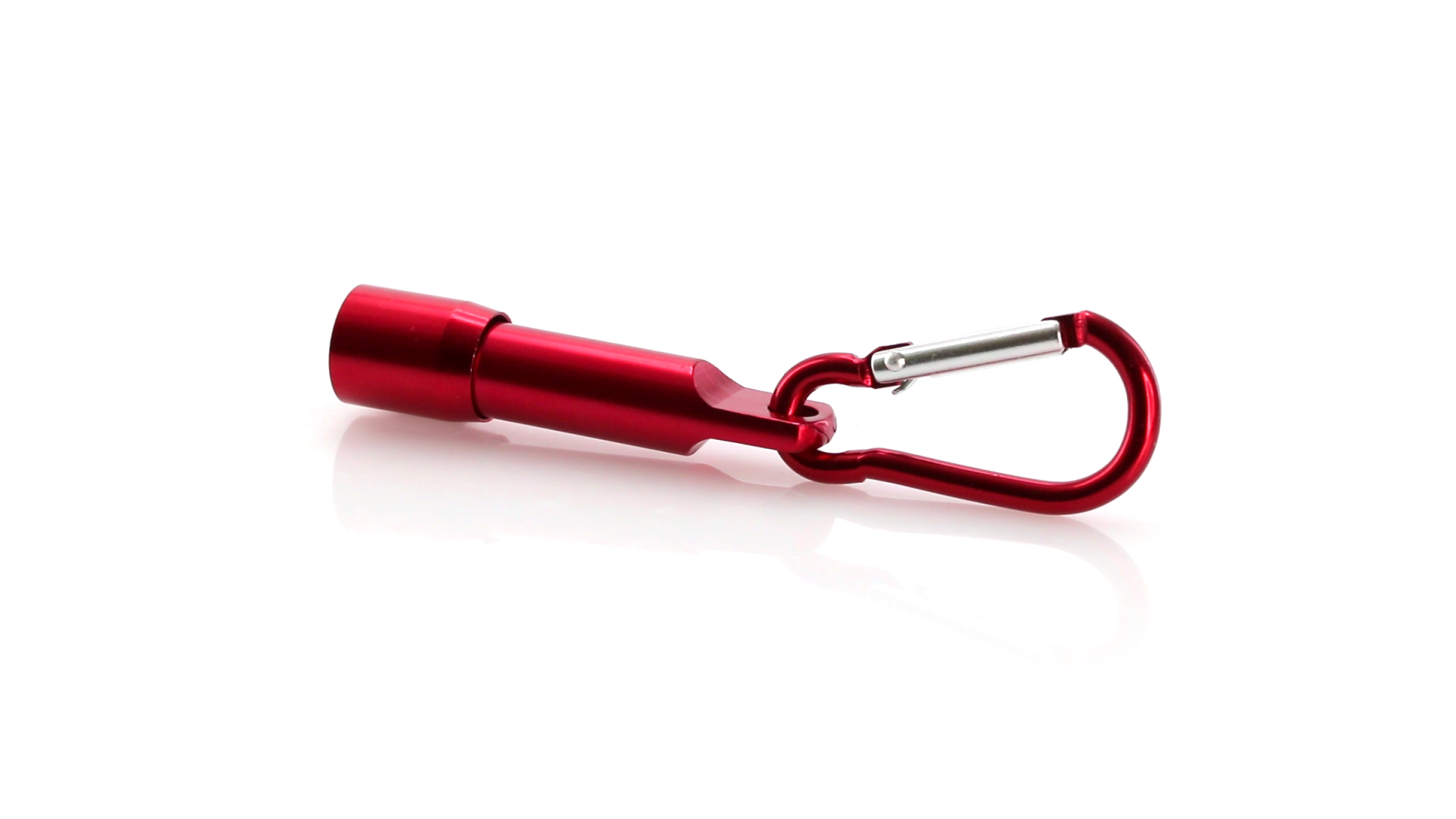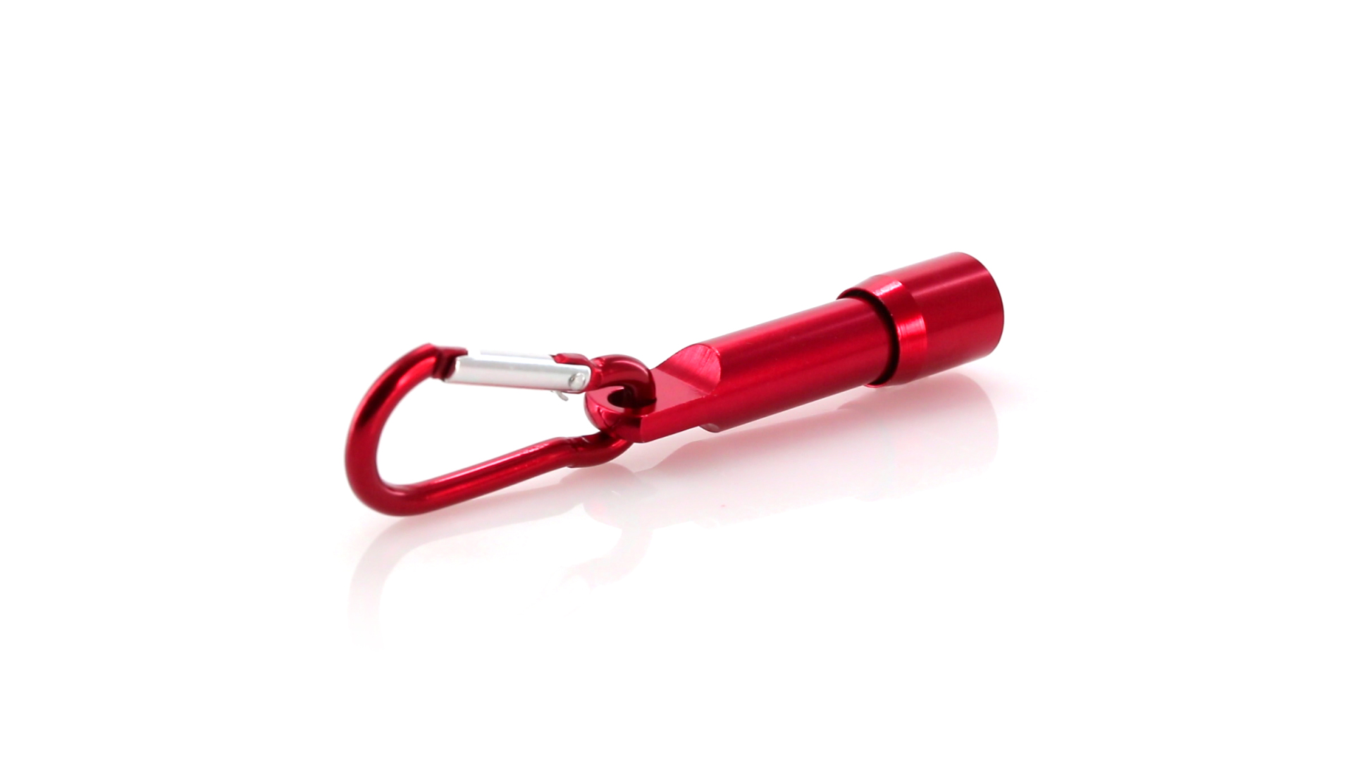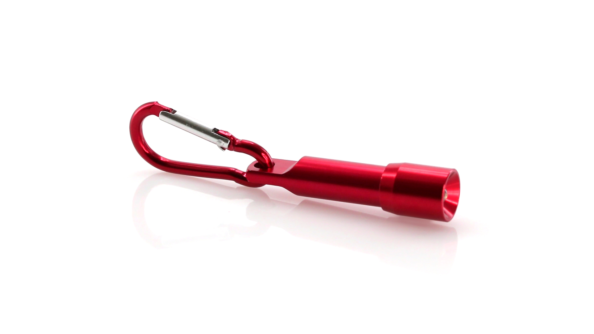 LED-Taschenlampe mit robustem Aluminiumgehäuse in verschiedenen Farben. Mit farblich passendem Karabiner und Knopfzellen mit Schutzfolie inklusive.