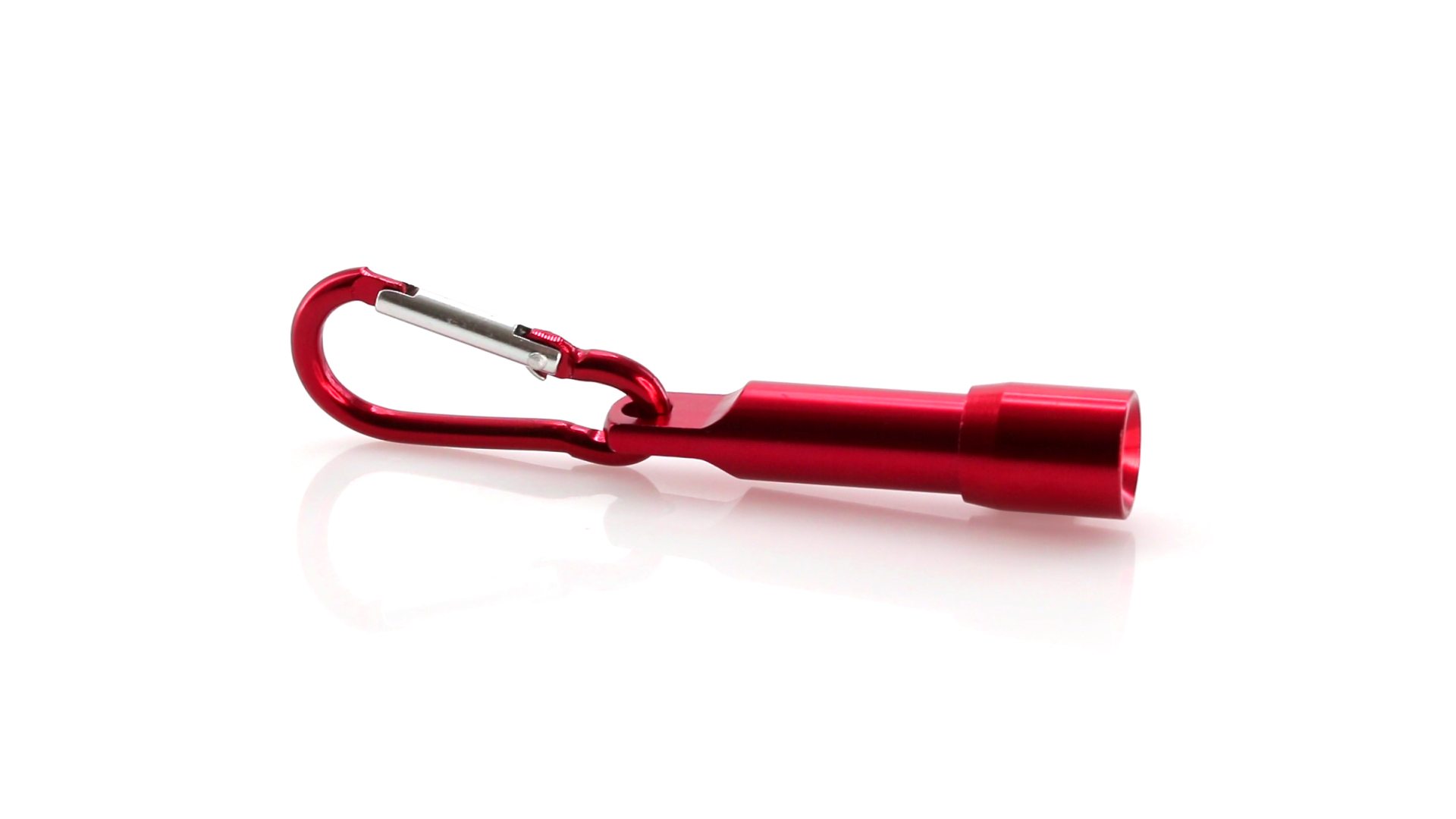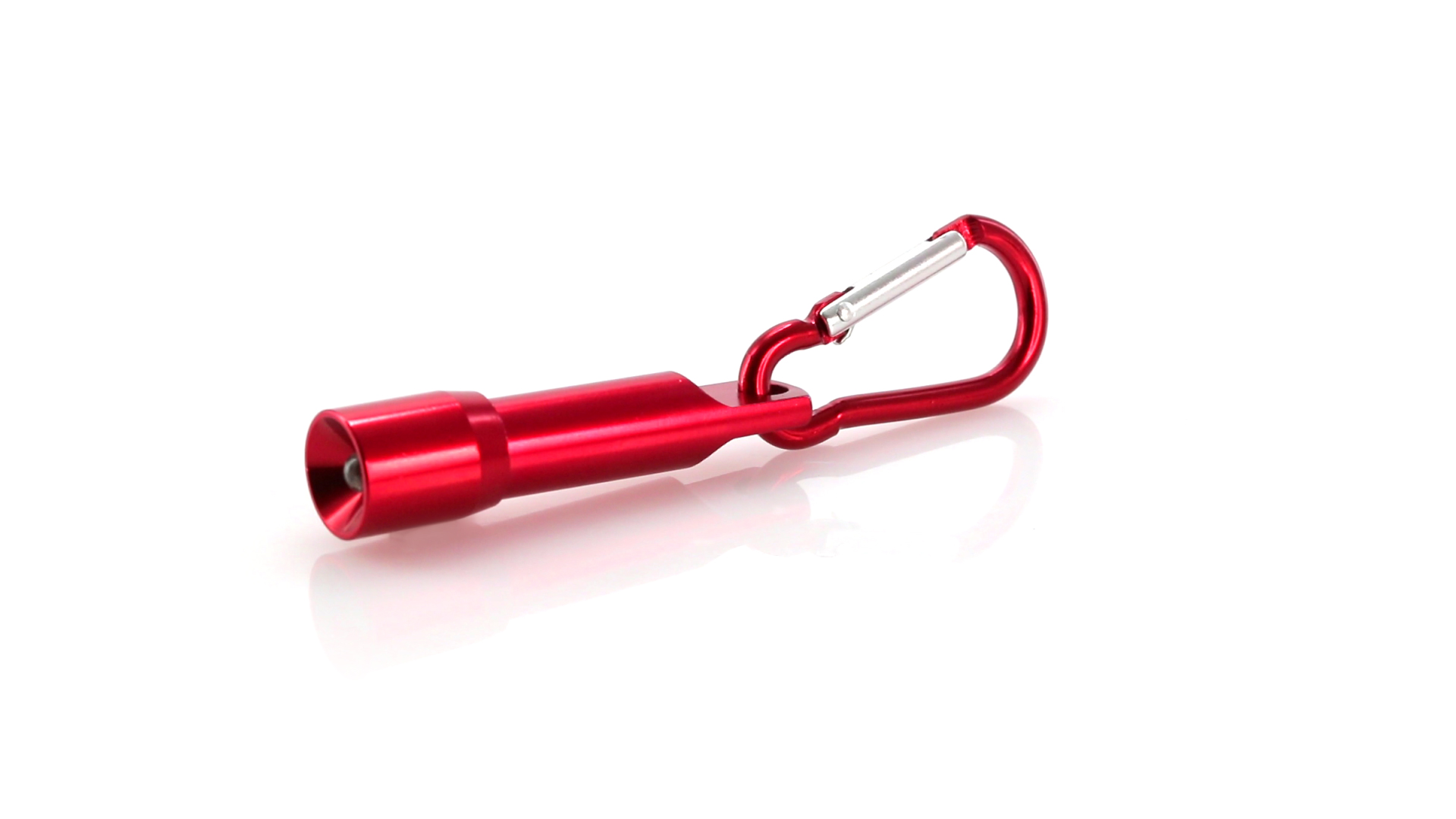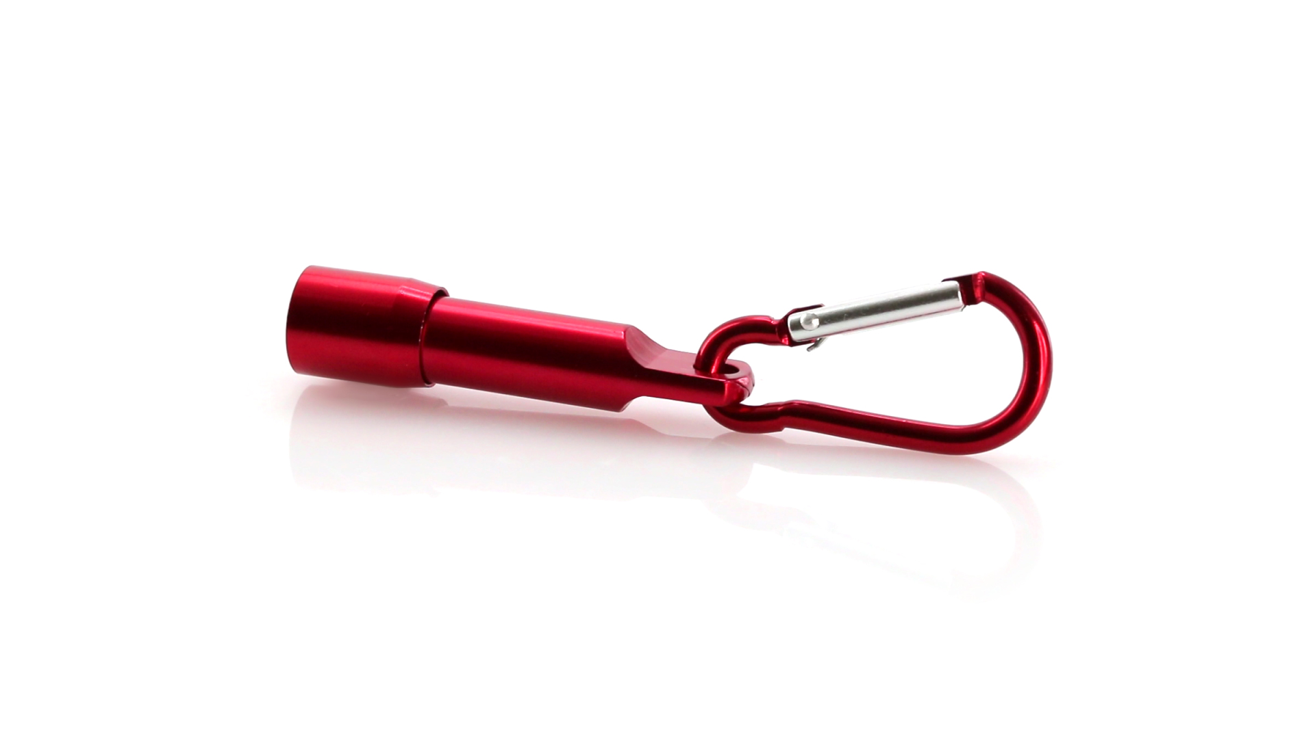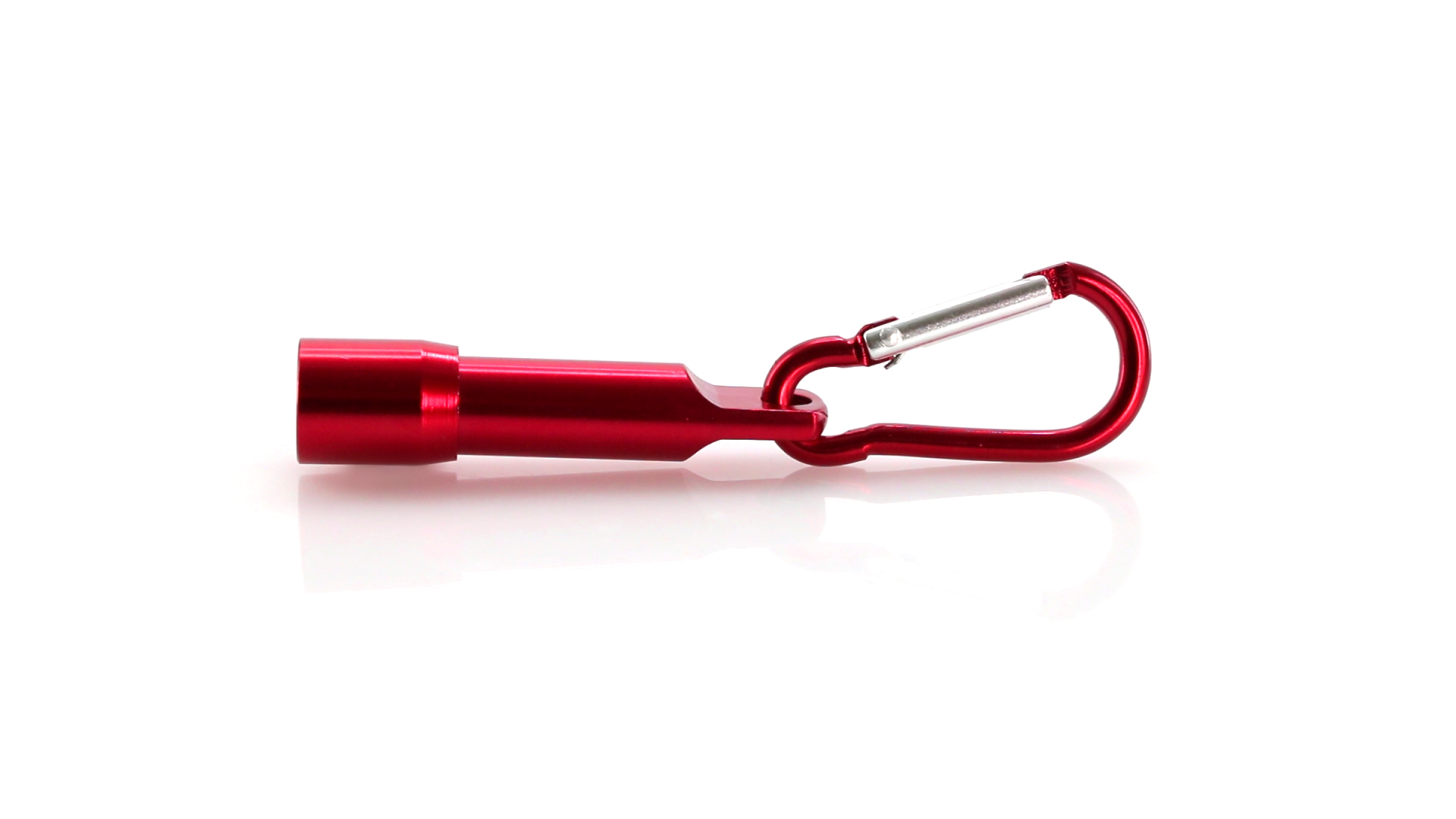 LED-Taschenlampe mit robustem Aluminiumgehäuse in verschiedenen Farben. Mit farblich passendem Karabiner und Knopfzellen mit Schutzfolie inklusive.