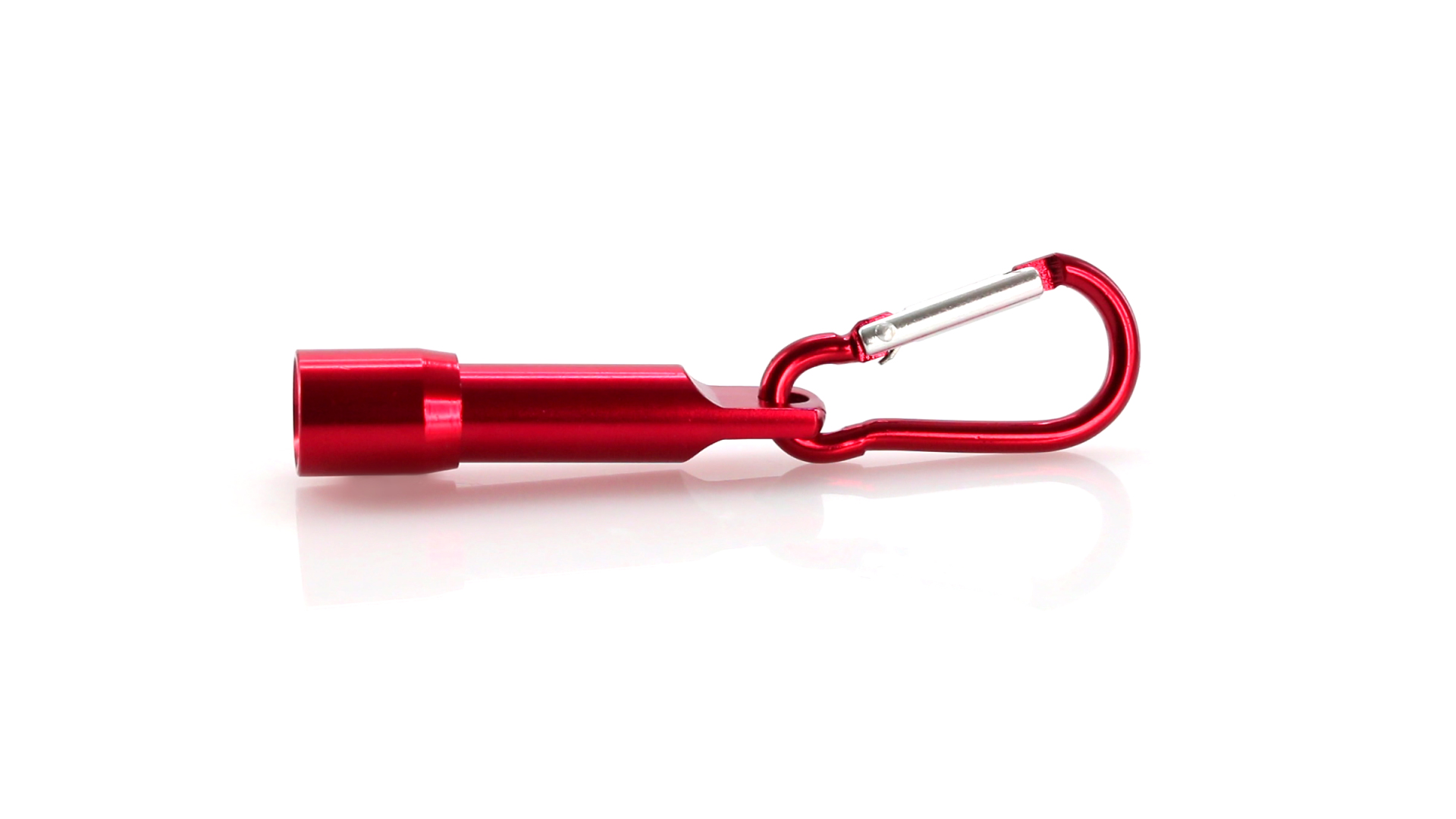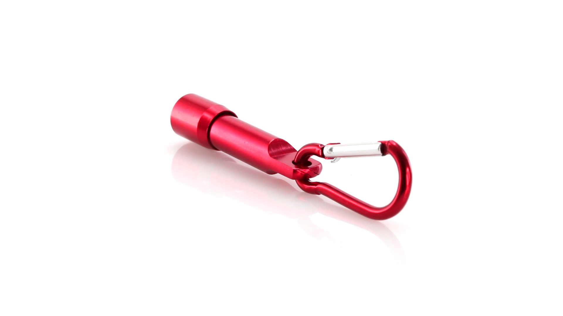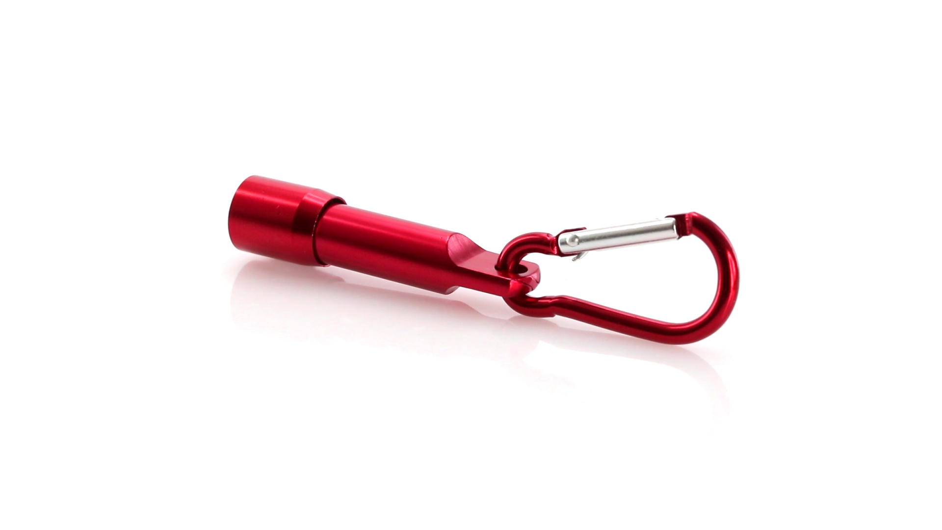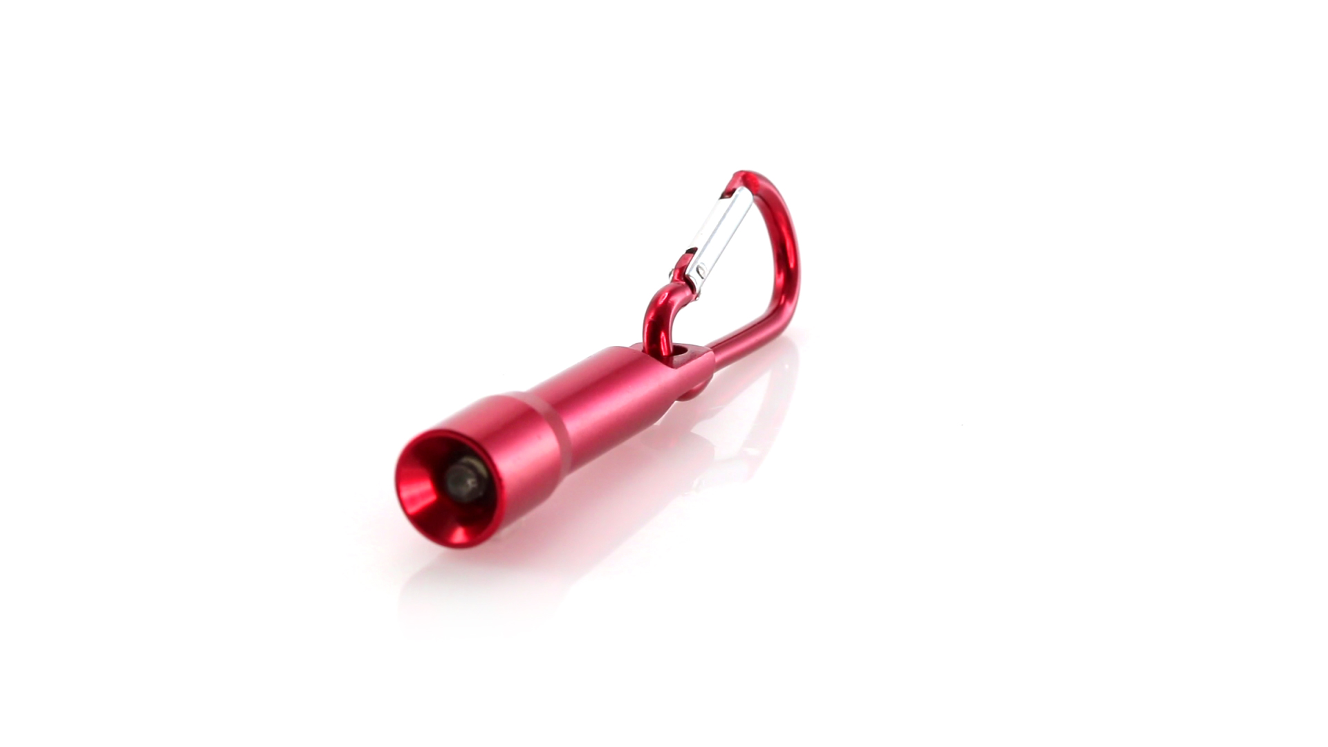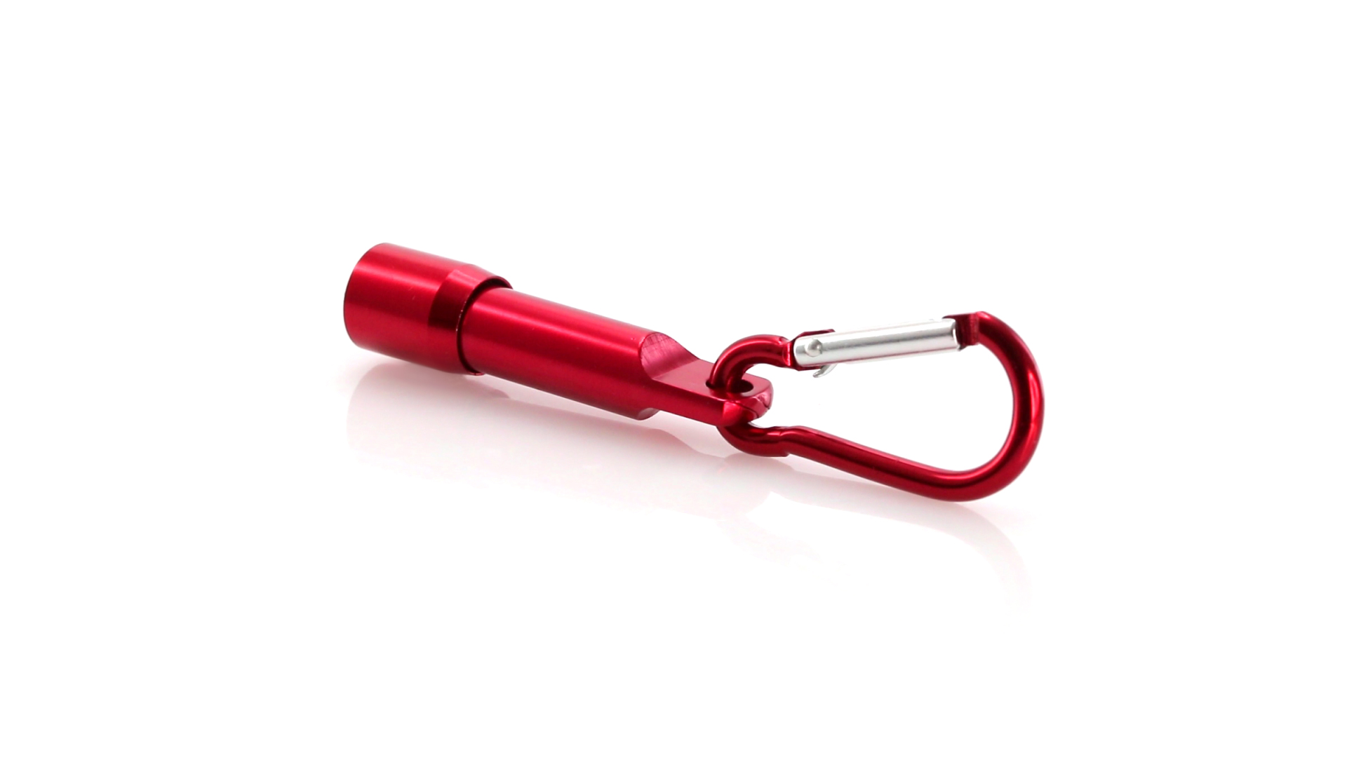 LED-Taschenlampe mit robustem Aluminiumgehäuse in verschiedenen Farben. Mit farblich passendem Karabiner und Knopfzellen mit Schutzfolie inklusive.