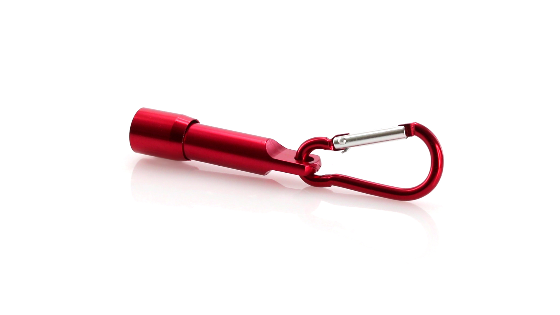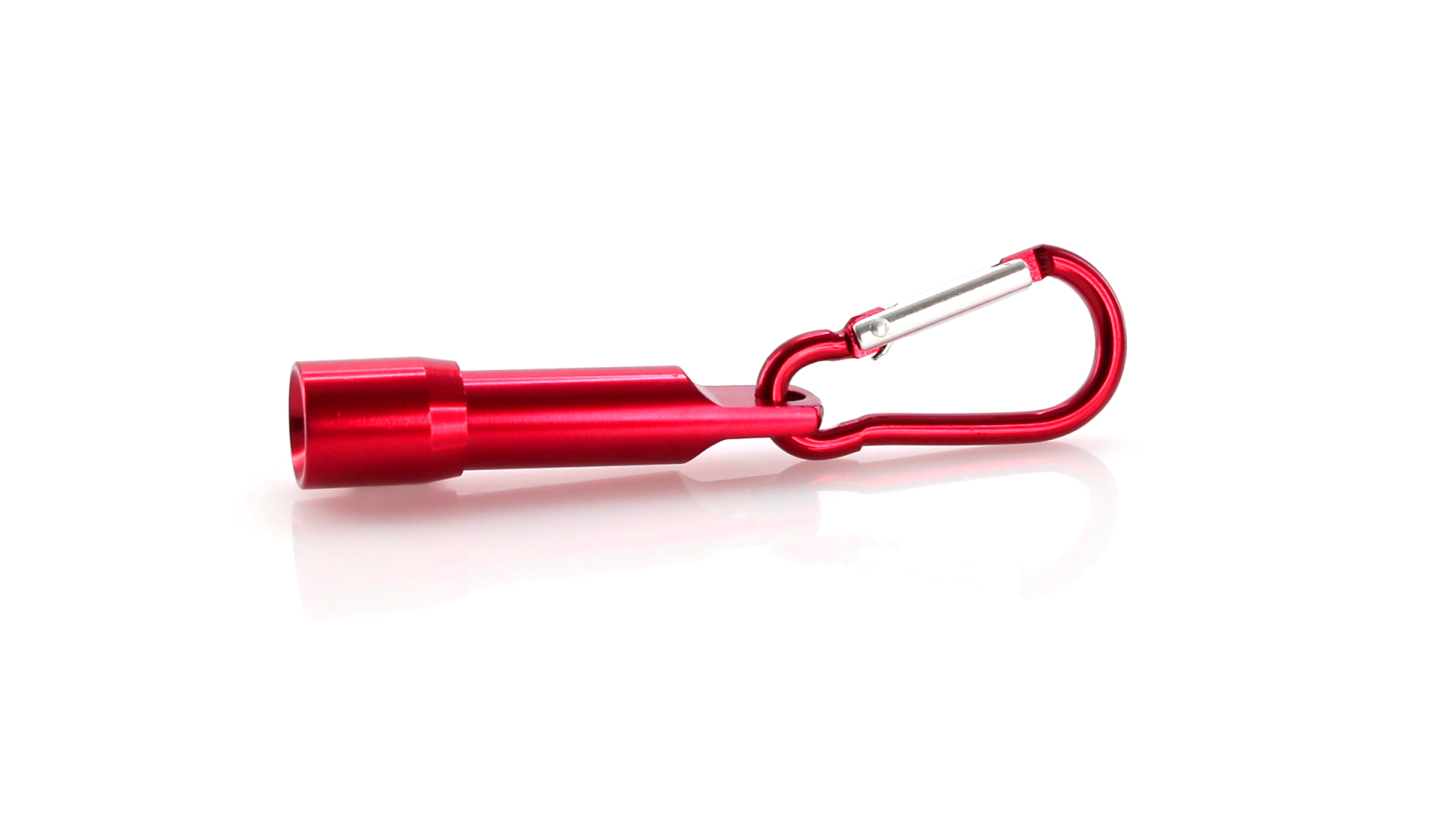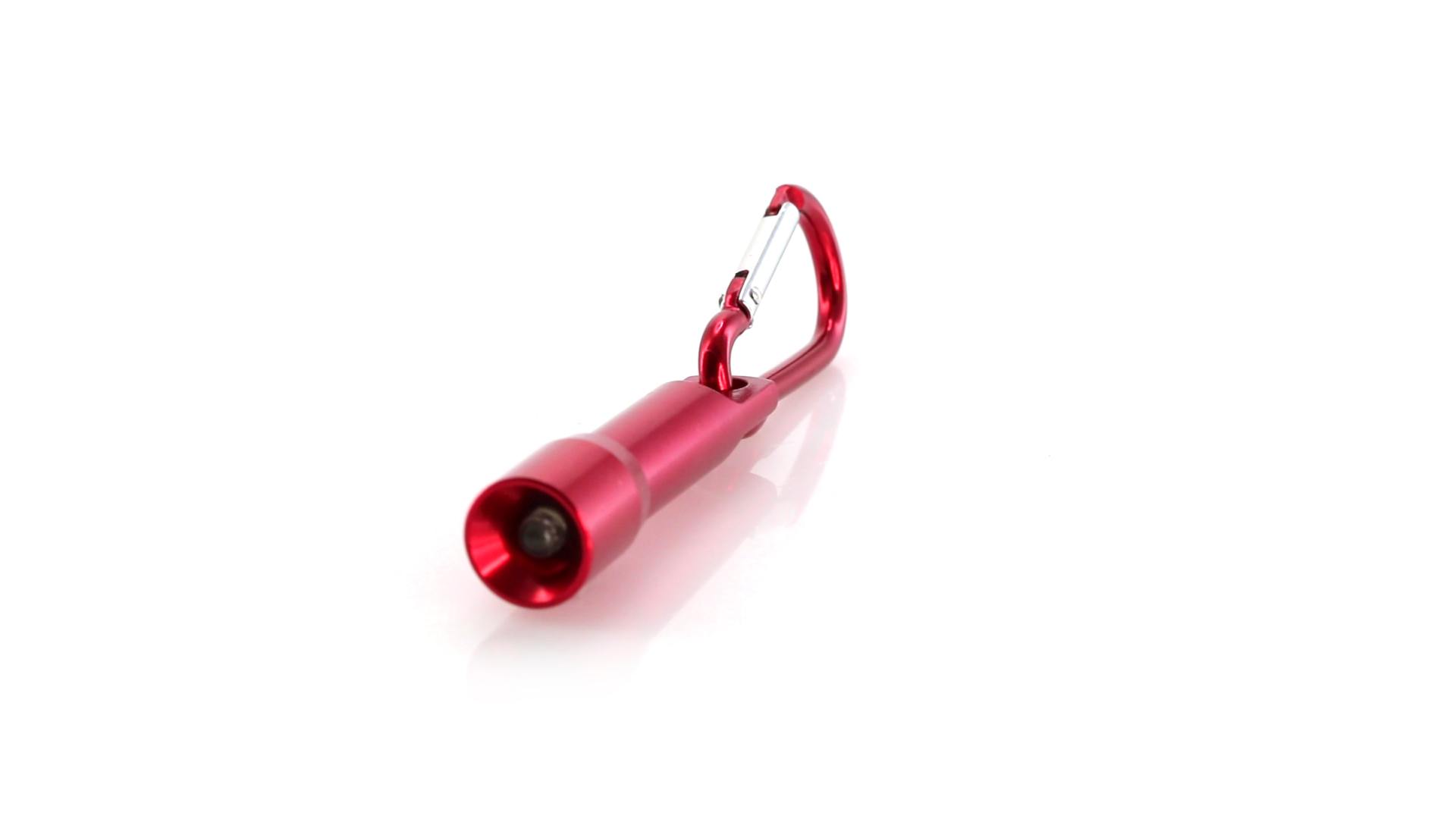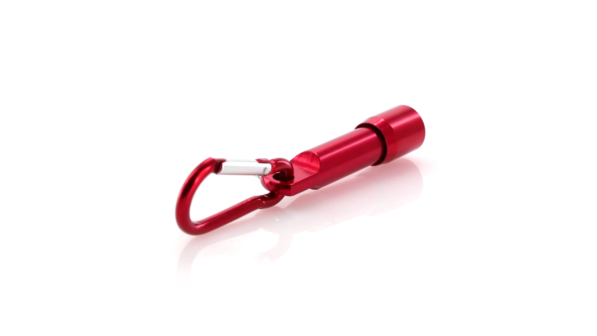LED-Taschenlampe mit robustem Aluminiumgehäuse in verschiedenen Farben. Mit farblich passendem Karabiner und Knopfzellen mit Schutzfolie inklusive.