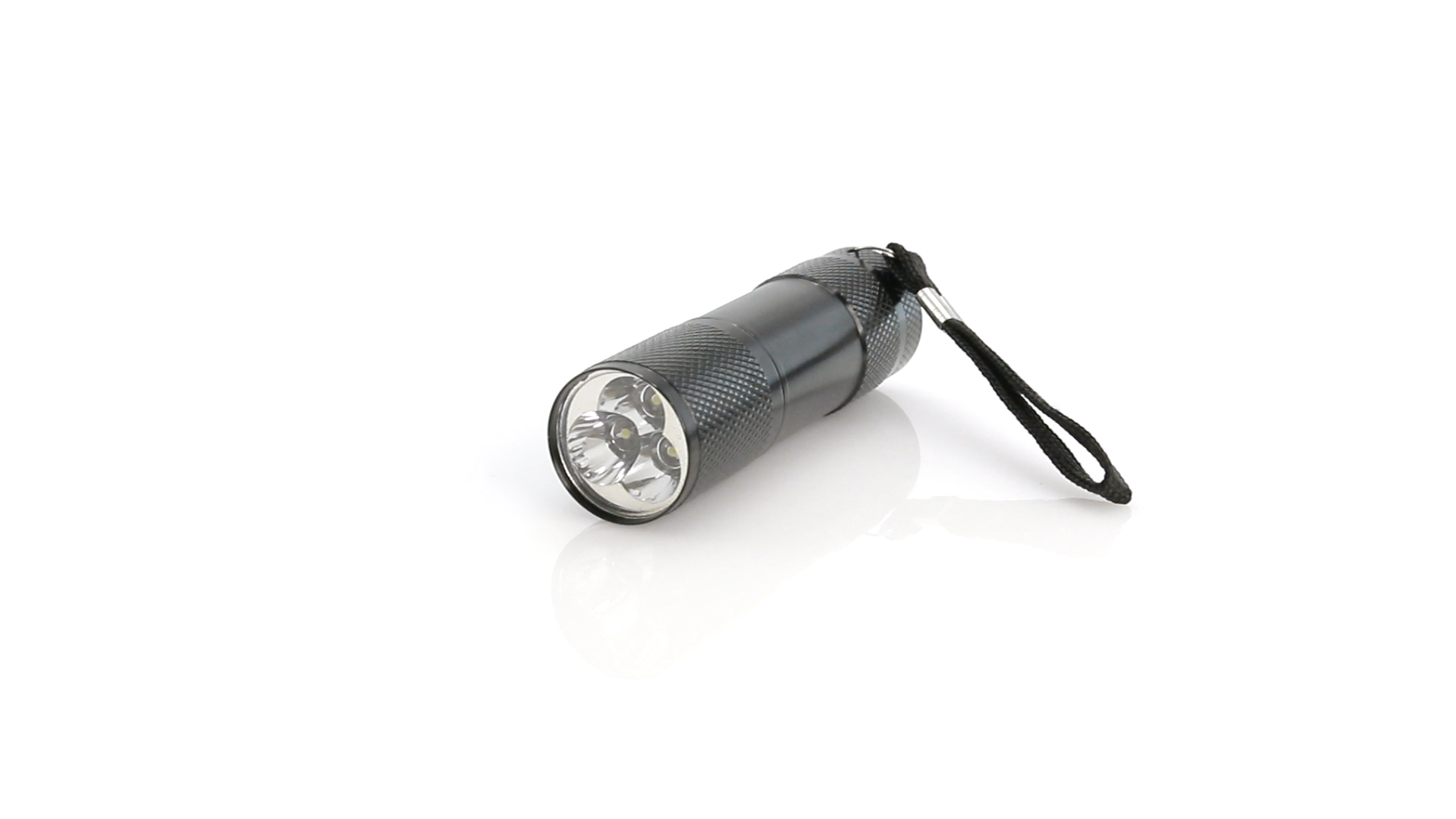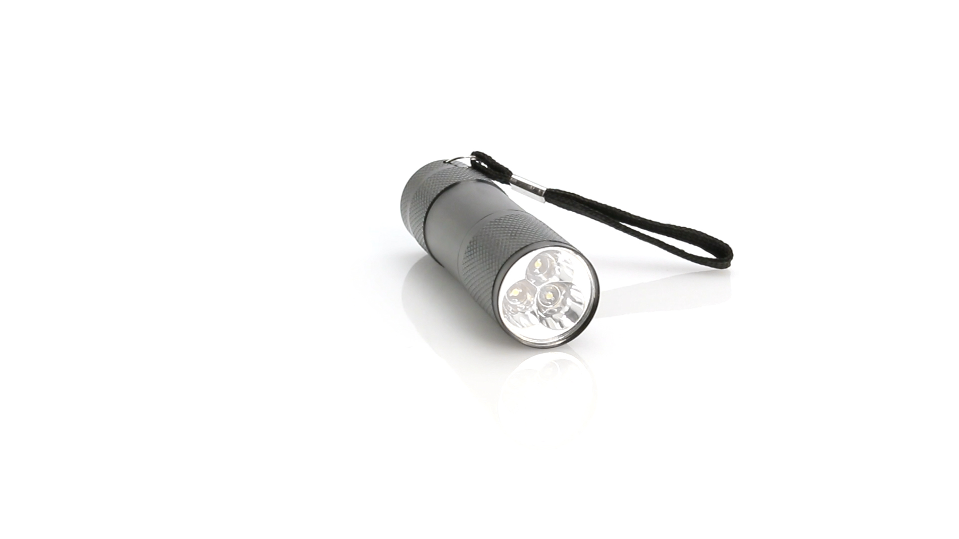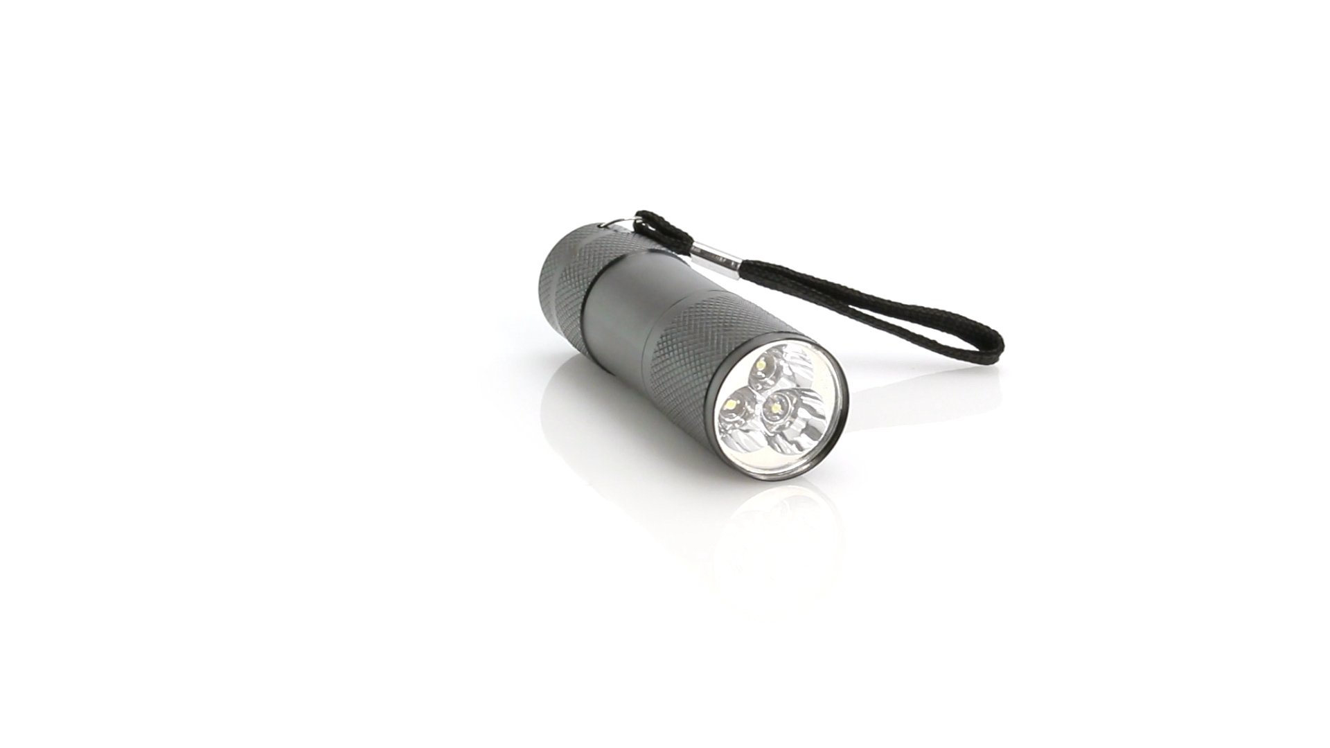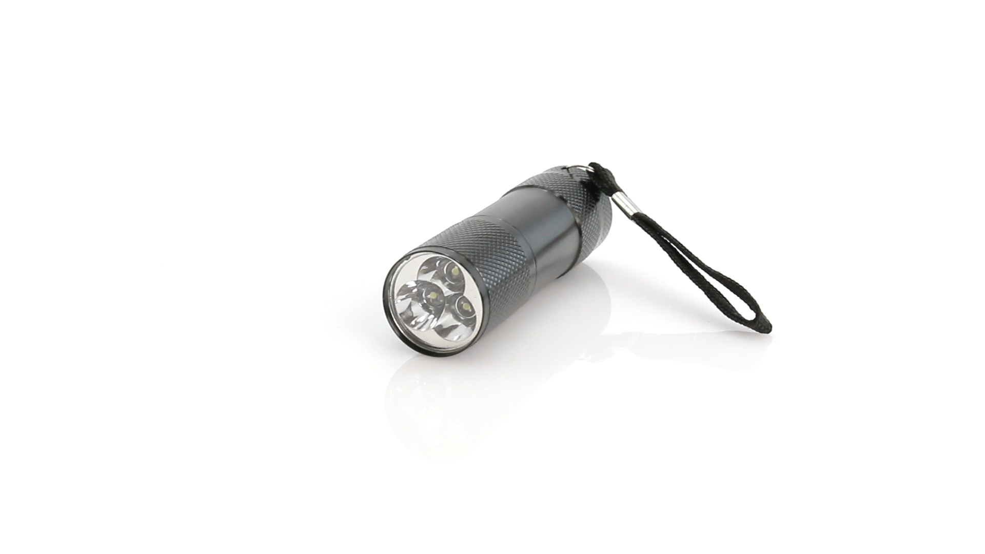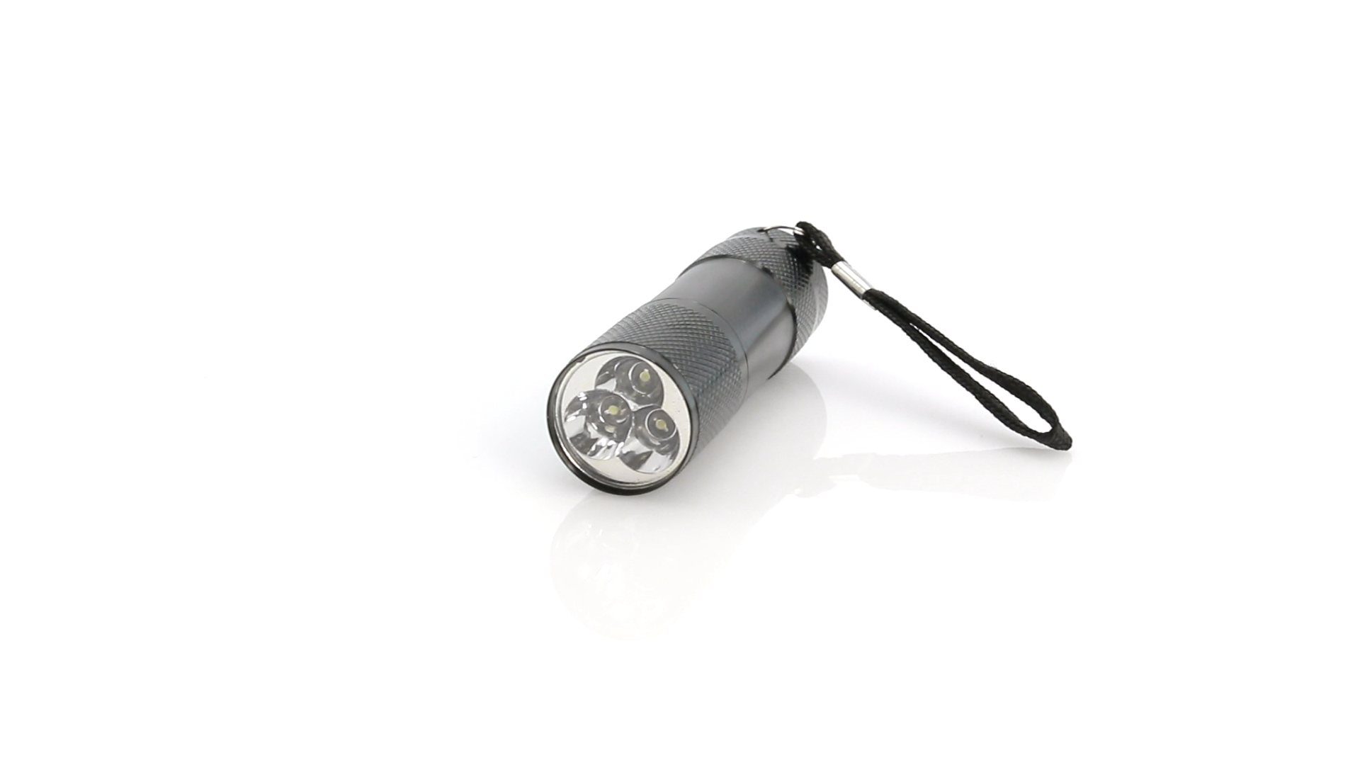 Taschenlampe mit 3 LEDs von hoher Leuchtkraft sowie minimalistischem Design. Mit robustem, rutschfestem Gehäuse aus Aluminium in verschiedenen lebendigen Farben sowie geschütztem Druckknopf mit resistenter Gummierung und Trageschlaufe. Batteriebetrieben - 3 x AAA nicht inklusive. Präsentiert in einer individuellen Box.
