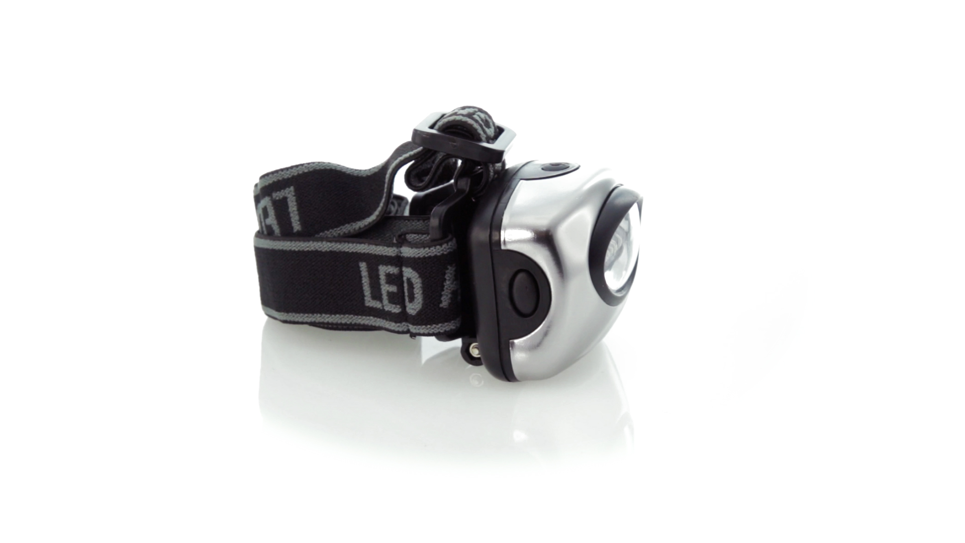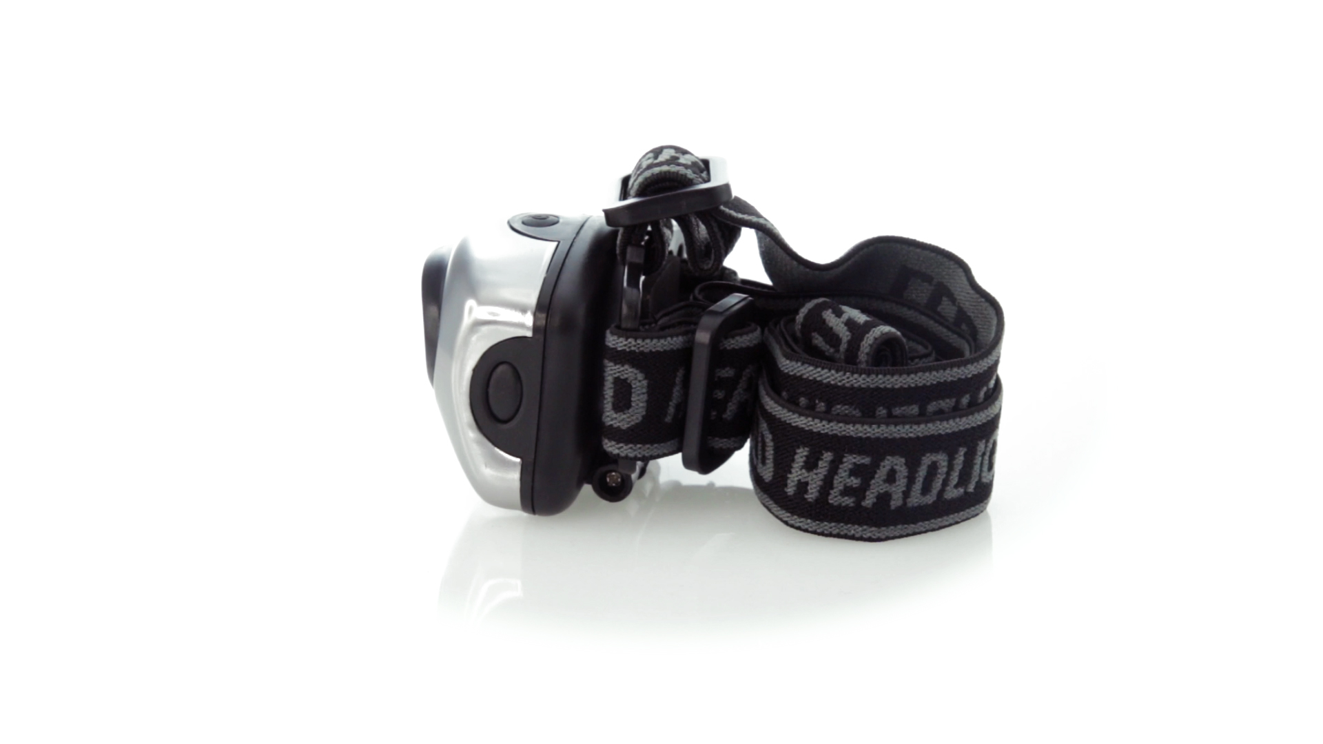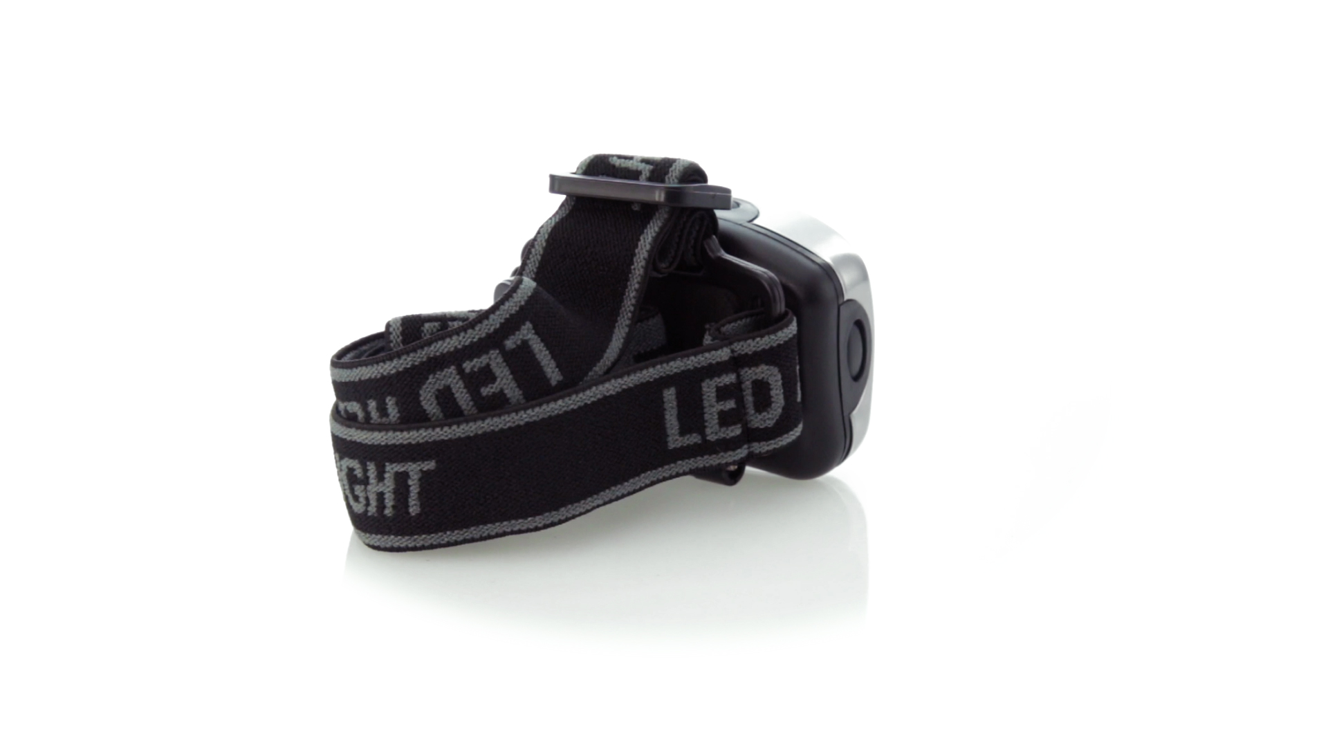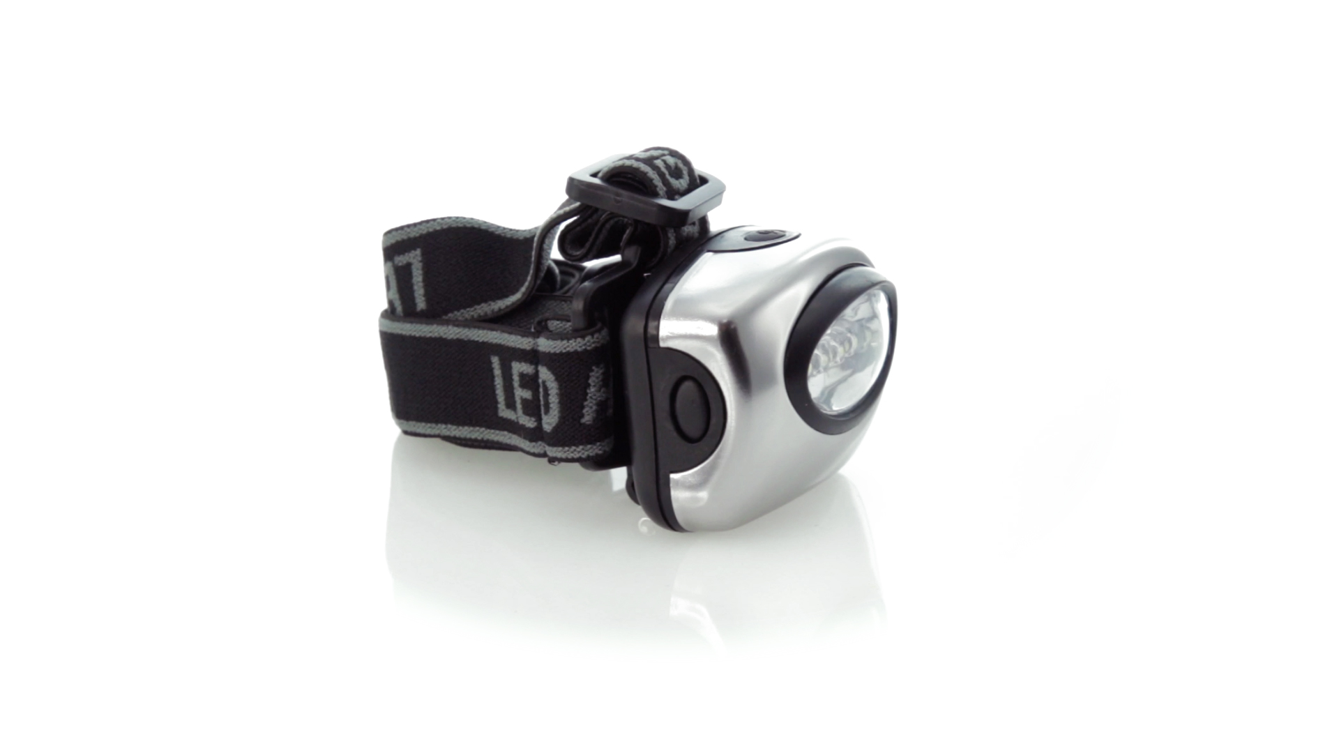 Kopflampe mit 5 LEDs und drei Lichteinstellungen. Mit verstellbarem und angenehm am Kopf sitzendem Gummigurt sowie Gehäuse aus robustem Material in kräftigen Farben. Gurt ist abnehmbar. Batteriebetrieben - 3 x AAA nicht inklusive. Präsentiert in einer individuellen Box in Silber mit Luftpolsterfolie.