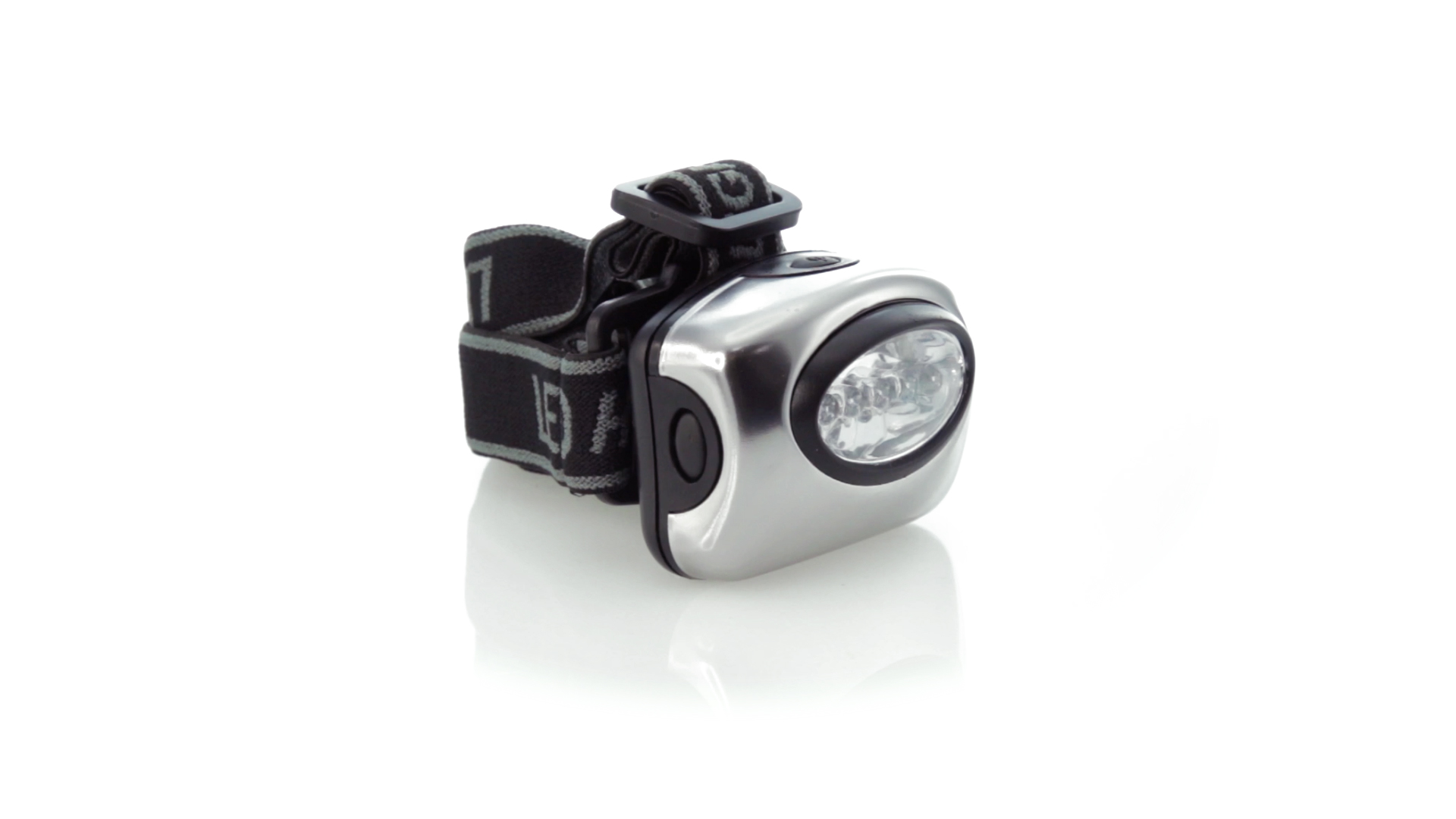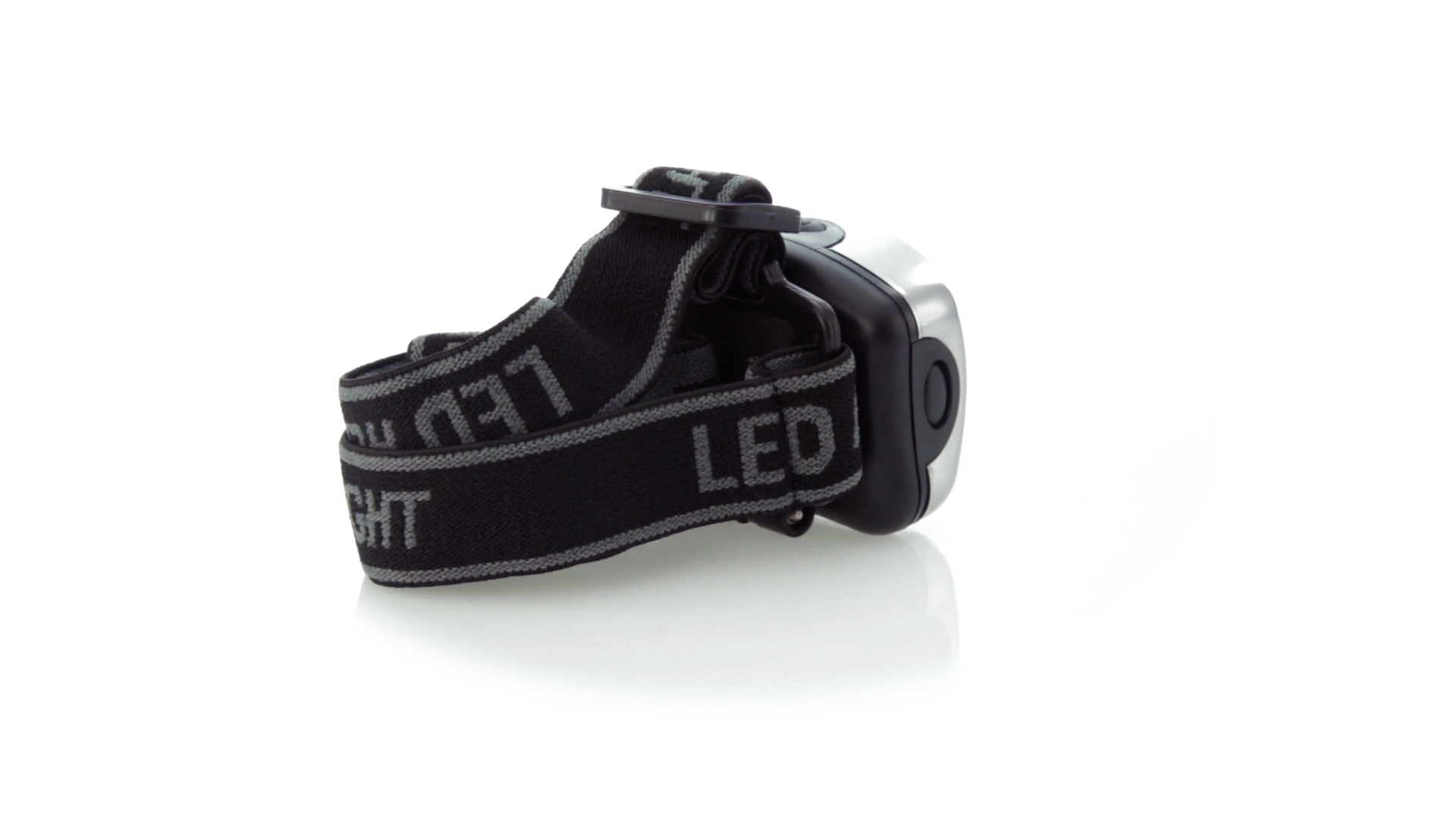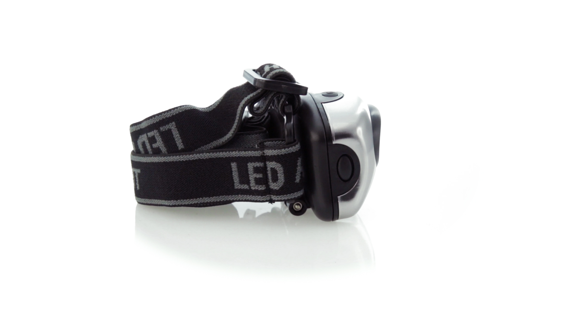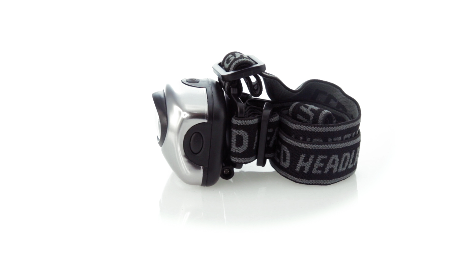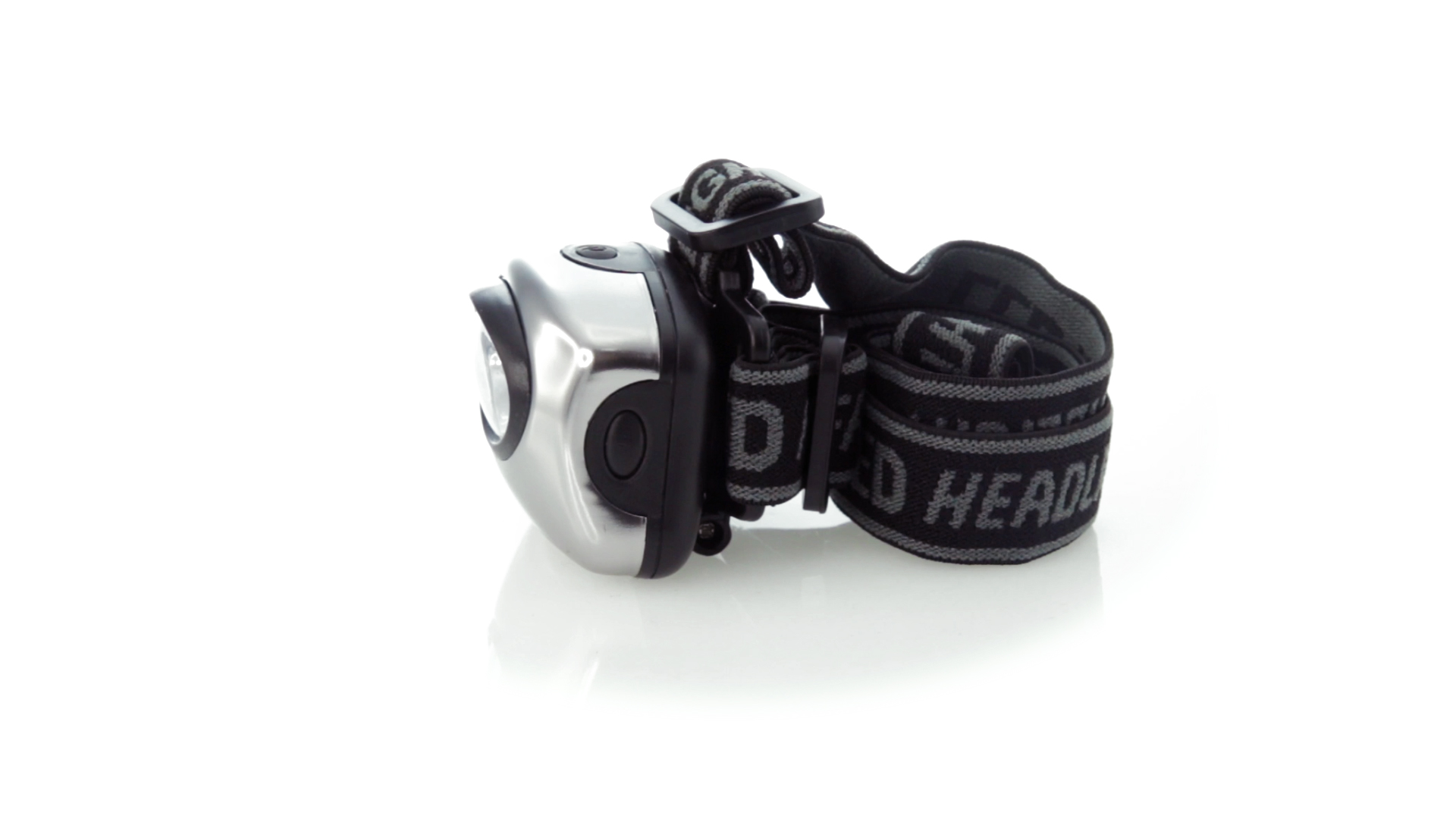 Kopflampe mit 5 LEDs und drei Lichteinstellungen. Mit verstellbarem und angenehm am Kopf sitzendem Gummigurt sowie Gehäuse aus robustem Material in kräftigen Farben. Gurt ist abnehmbar. Batteriebetrieben - 3 x AAA nicht inklusive. Präsentiert in einer individuellen Box in Silber mit Luftpolsterfolie.