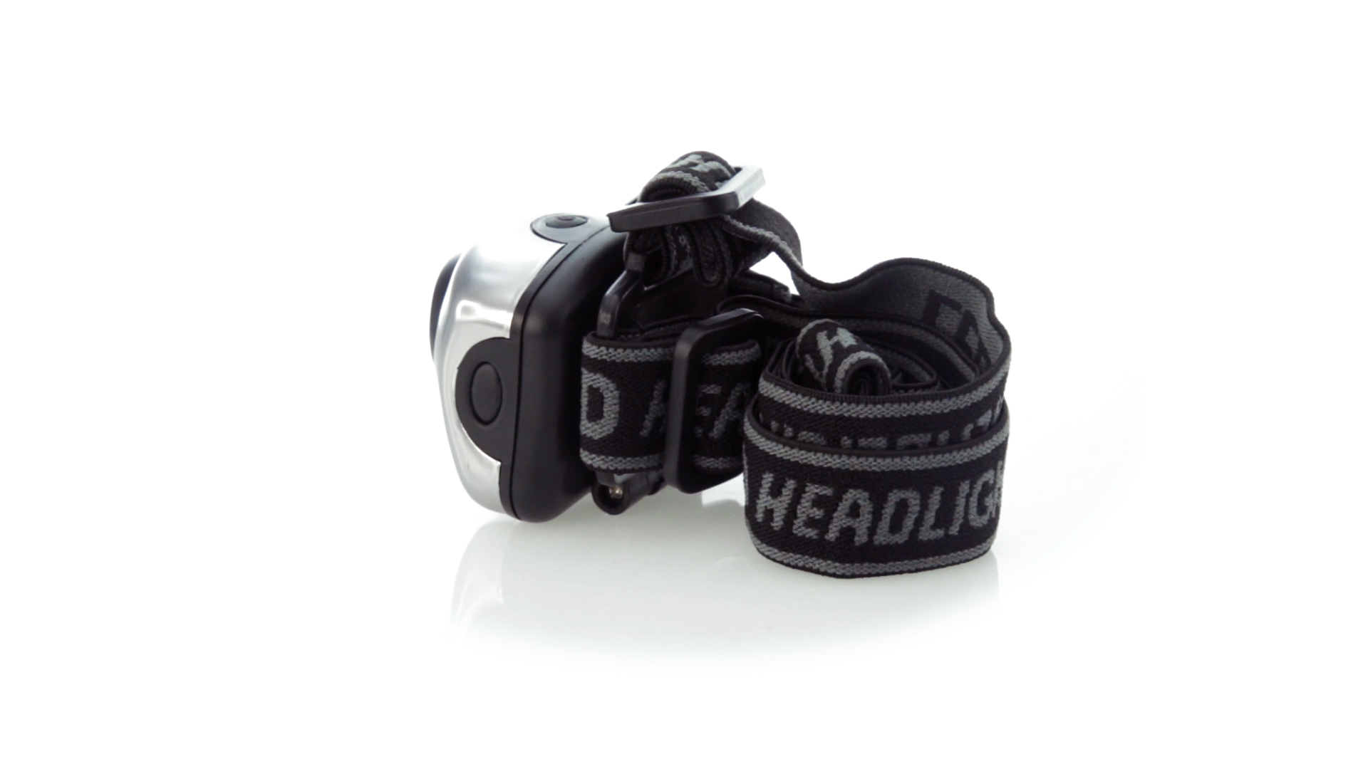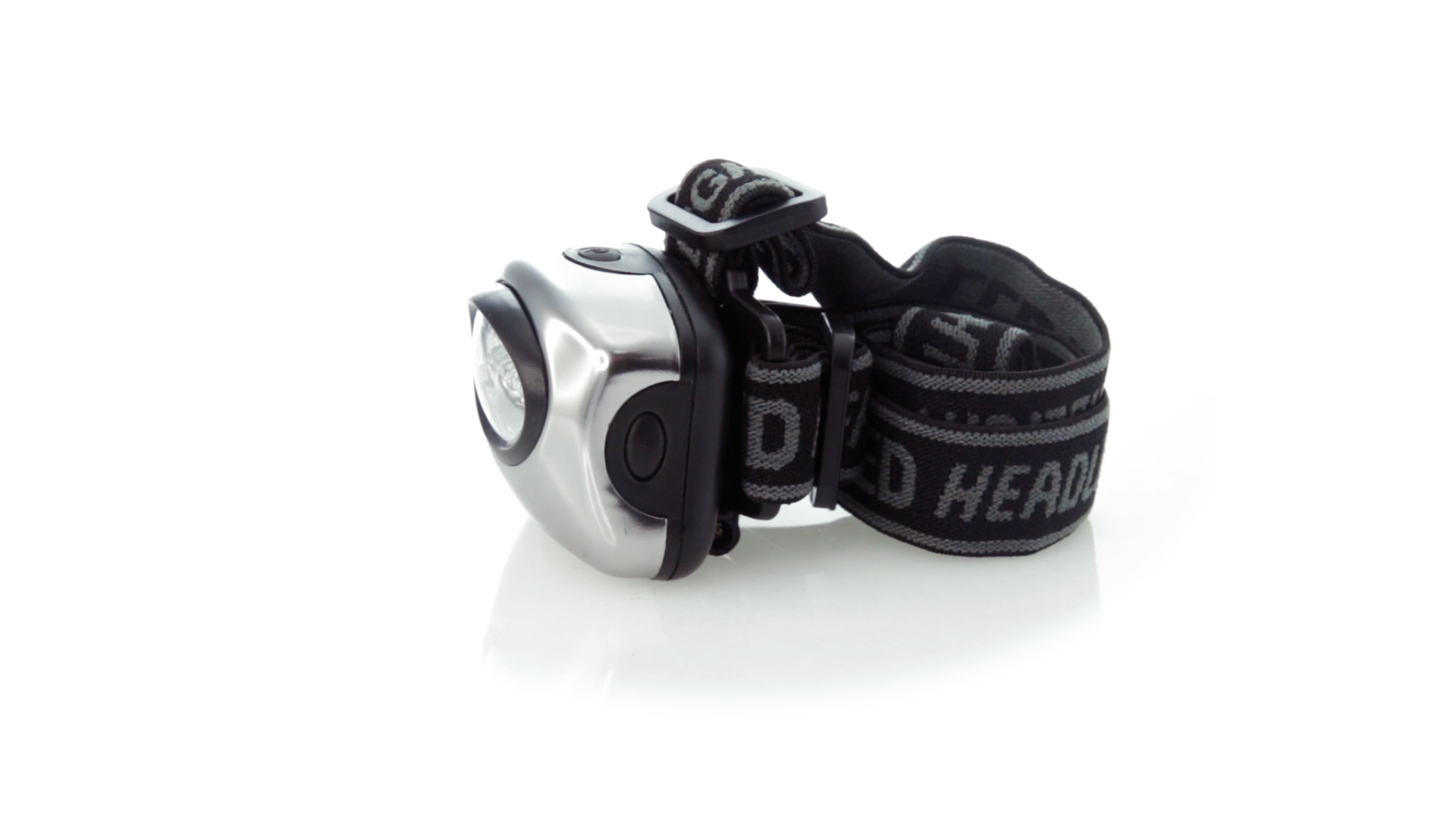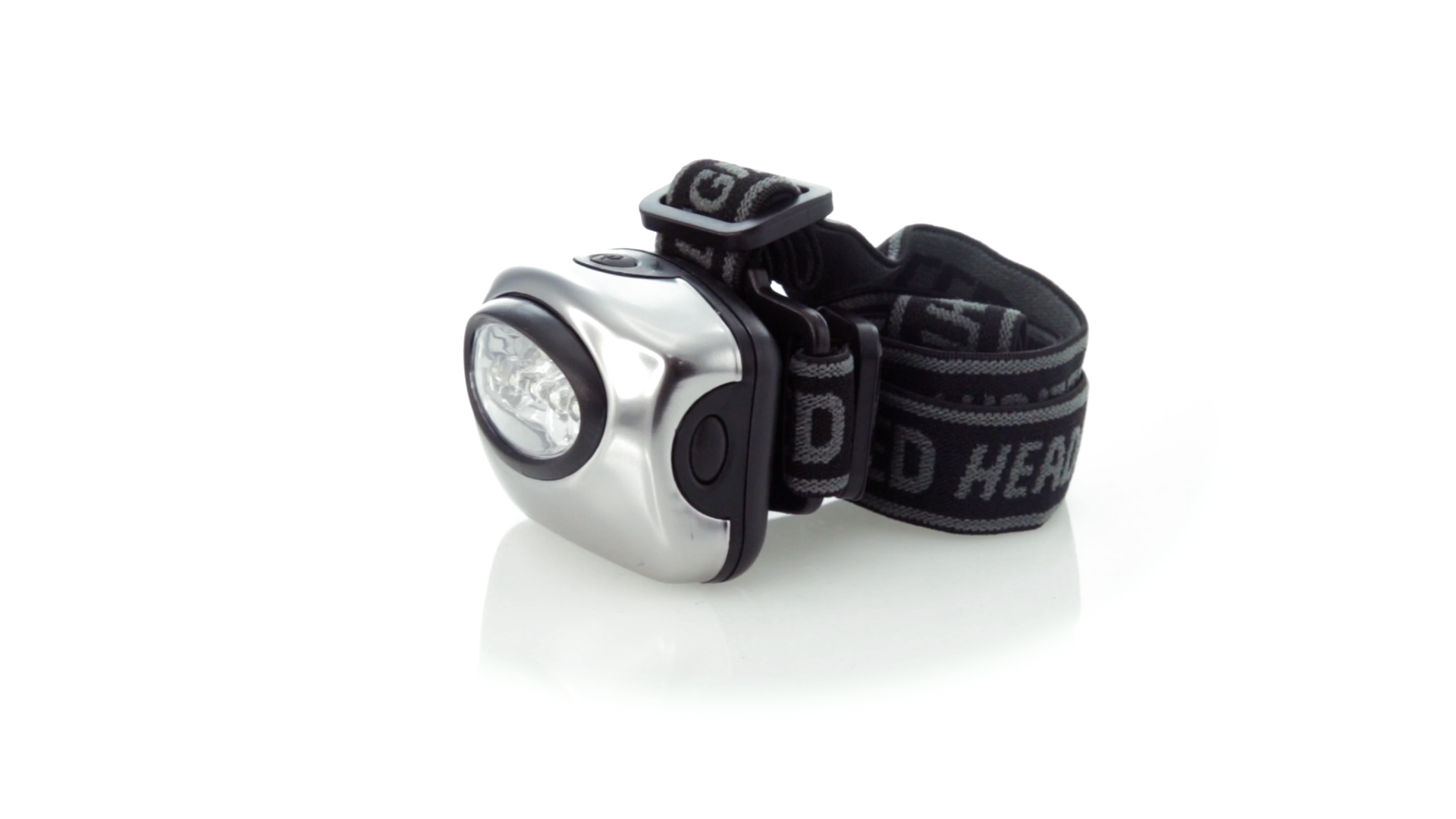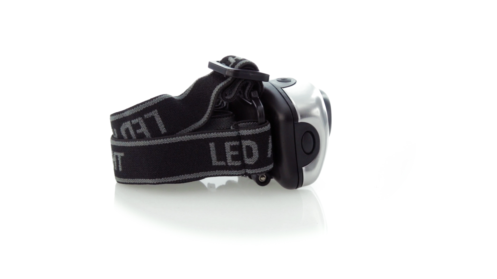 Kopflampe mit 5 LEDs und drei Lichteinstellungen. Mit verstellbarem und angenehm am Kopf sitzendem Gummigurt sowie Gehäuse aus robustem Material in kräftigen Farben. Gurt ist abnehmbar. Batteriebetrieben - 3 x AAA nicht inklusive. Präsentiert in einer individuellen Box in Silber mit Luftpolsterfolie.