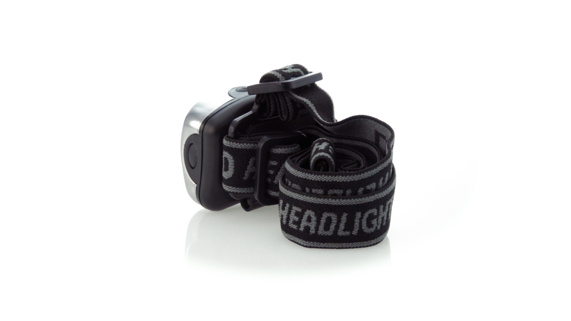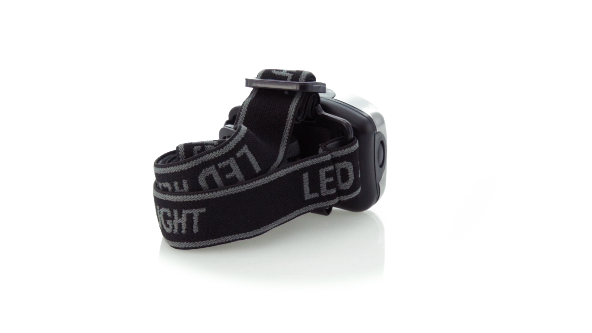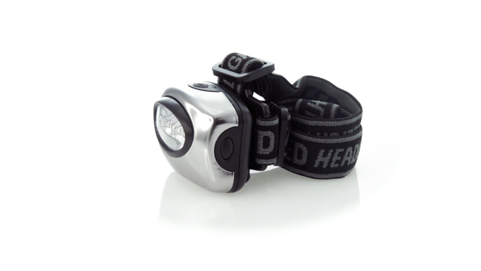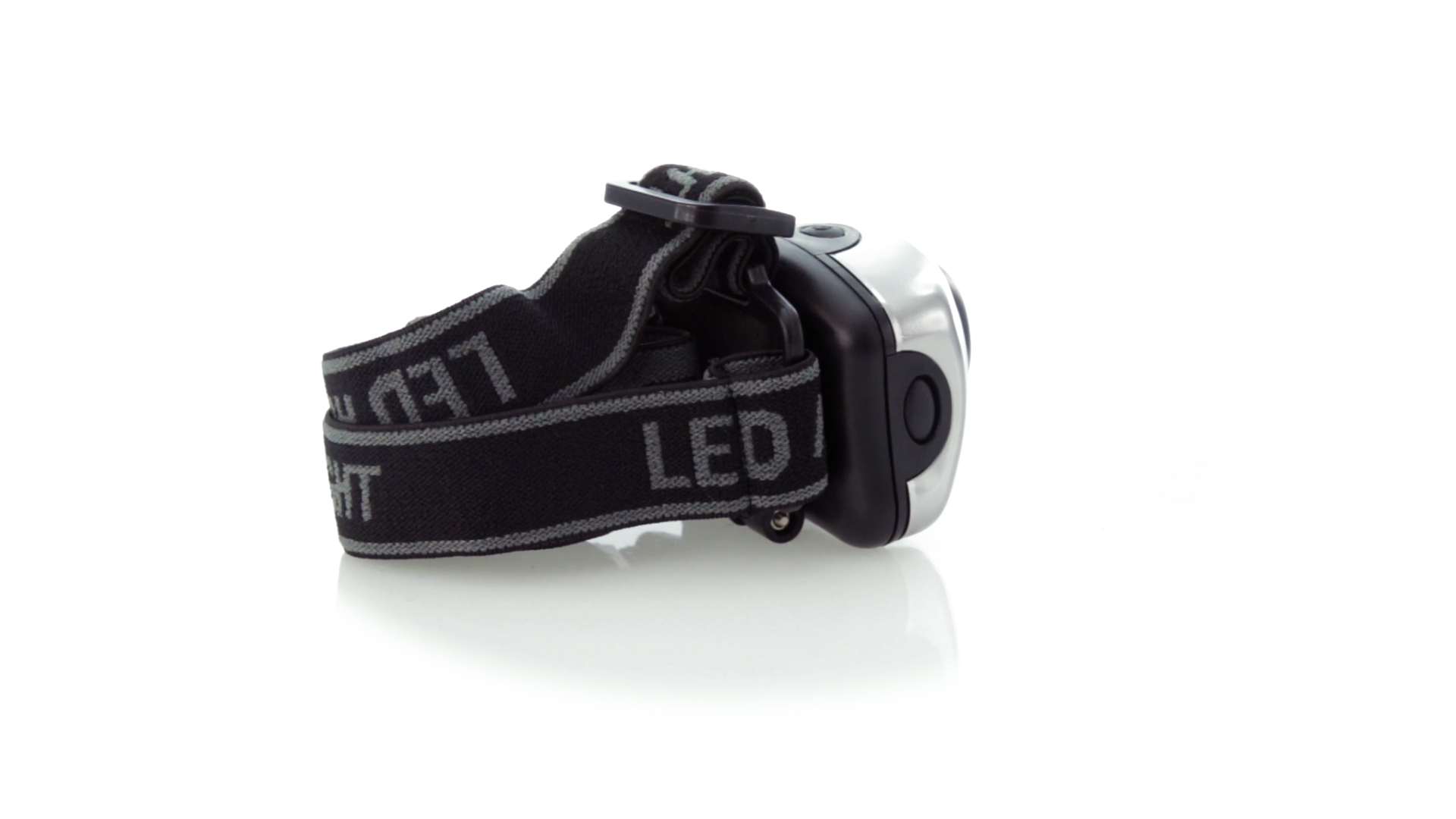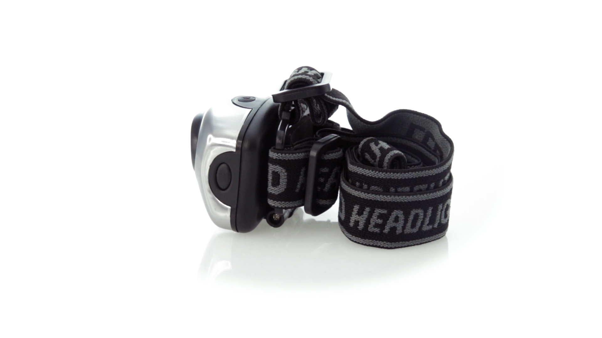 Kopflampe mit 5 LEDs und drei Lichteinstellungen. Mit verstellbarem und angenehm am Kopf sitzendem Gummigurt sowie Gehäuse aus robustem Material in kräftigen Farben. Gurt ist abnehmbar. Batteriebetrieben - 3 x AAA nicht inklusive. Präsentiert in einer individuellen Box in Silber mit Luftpolsterfolie.