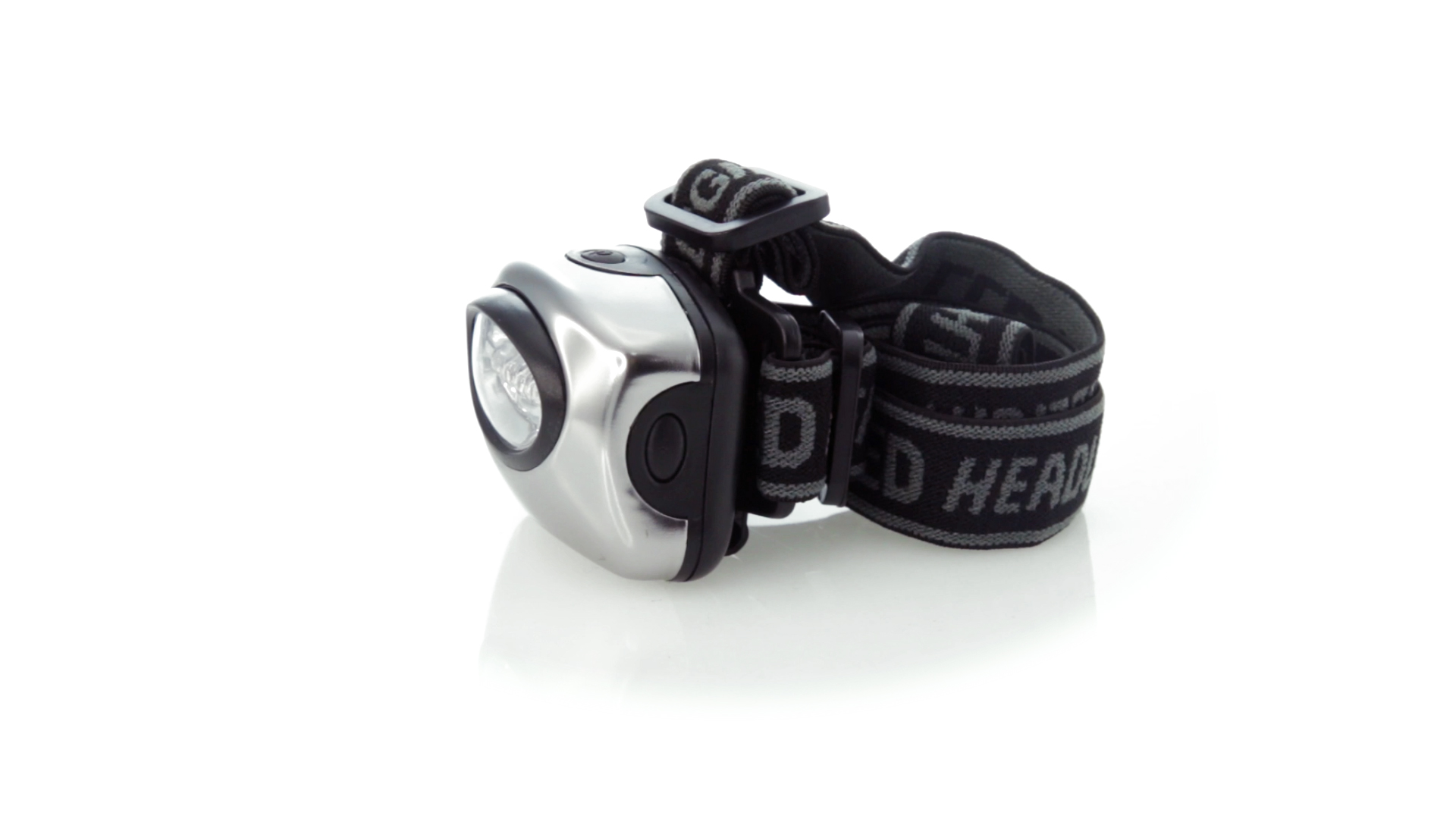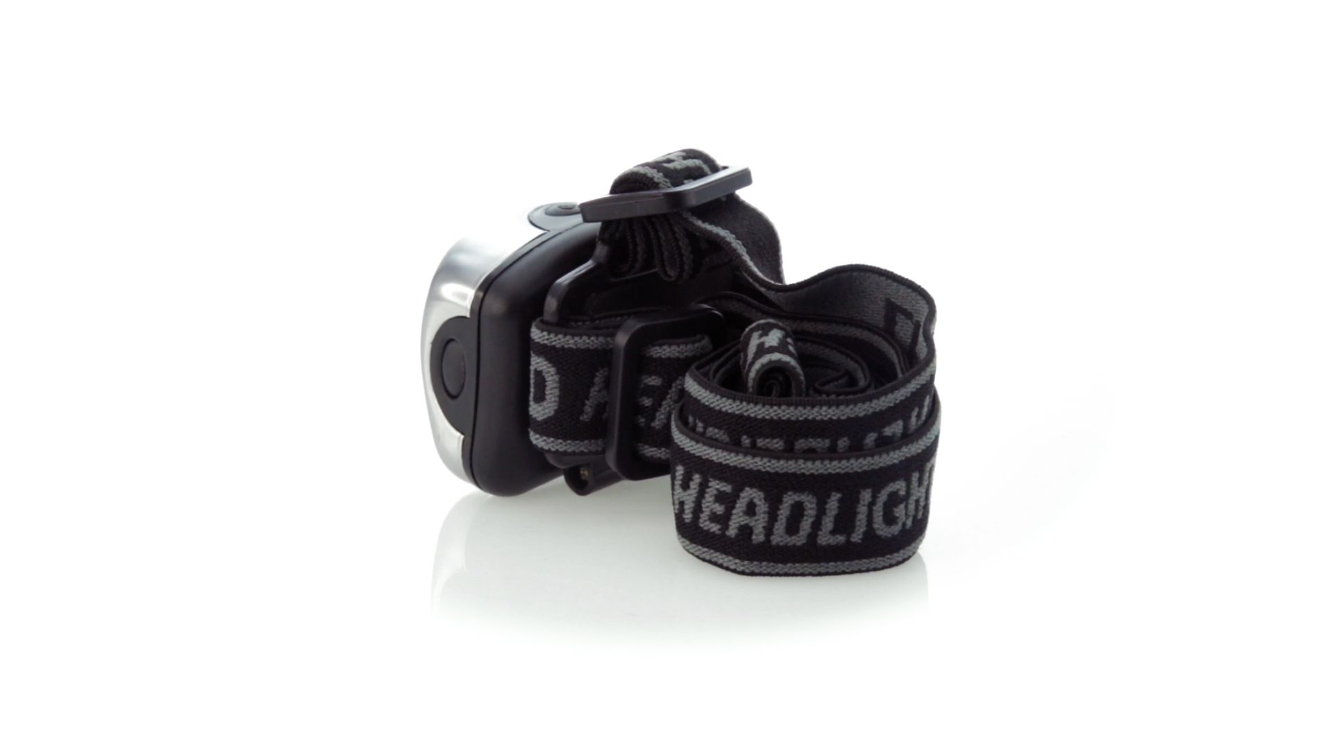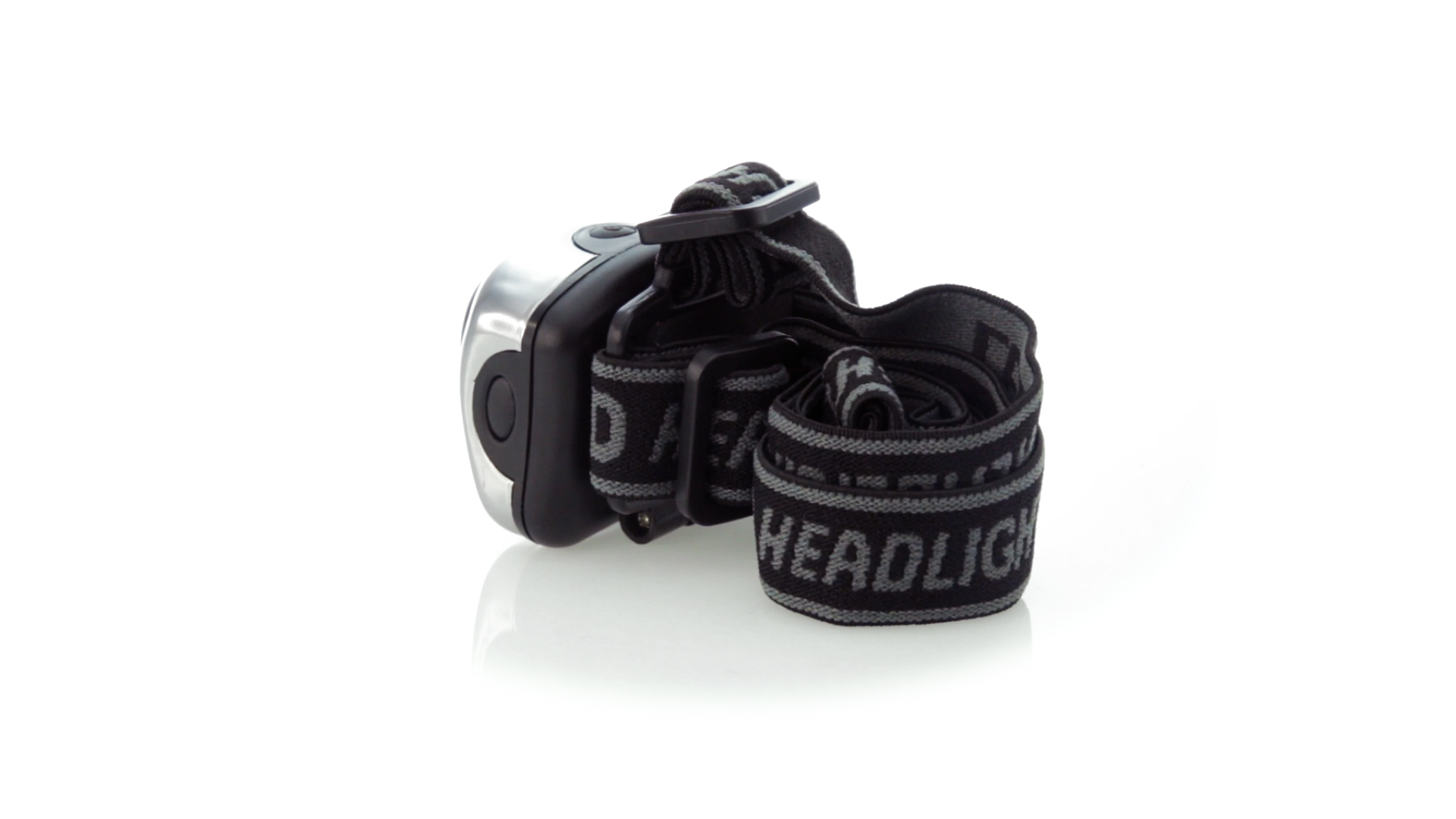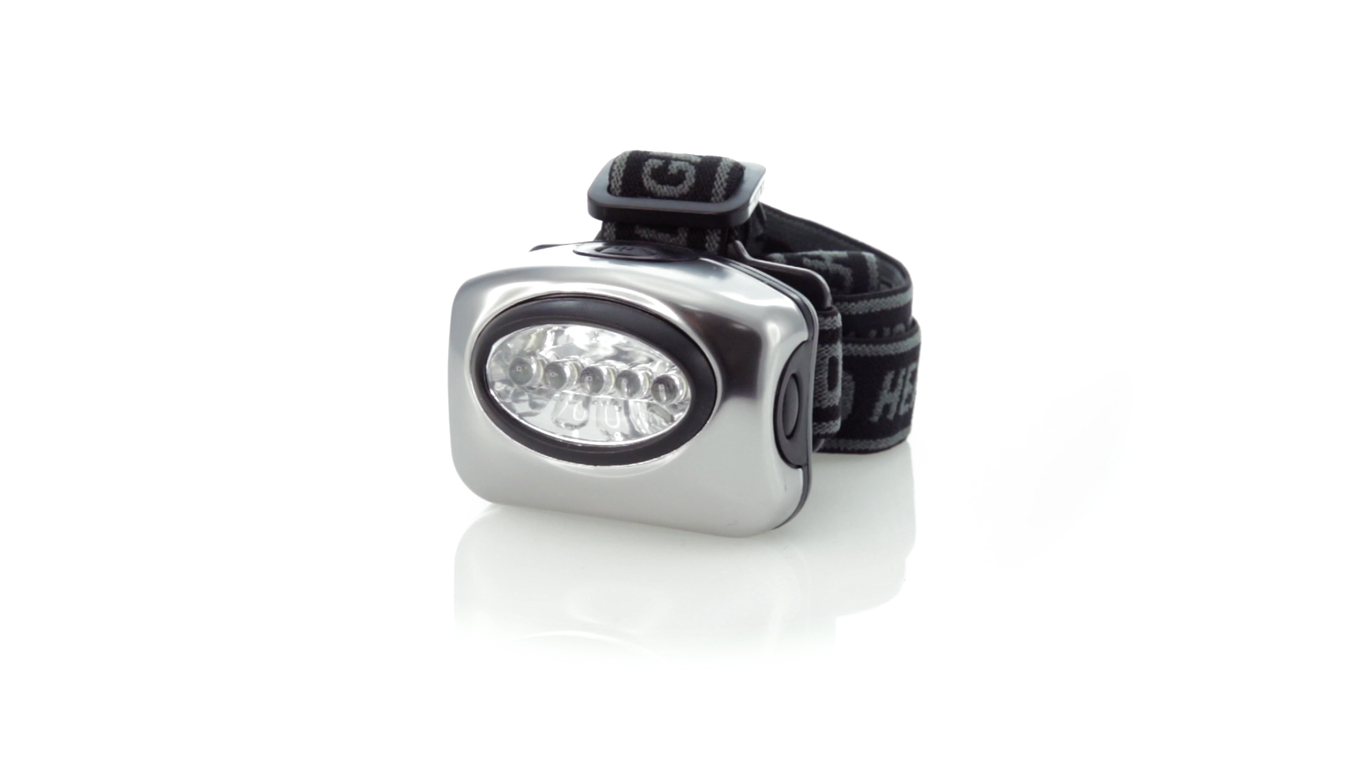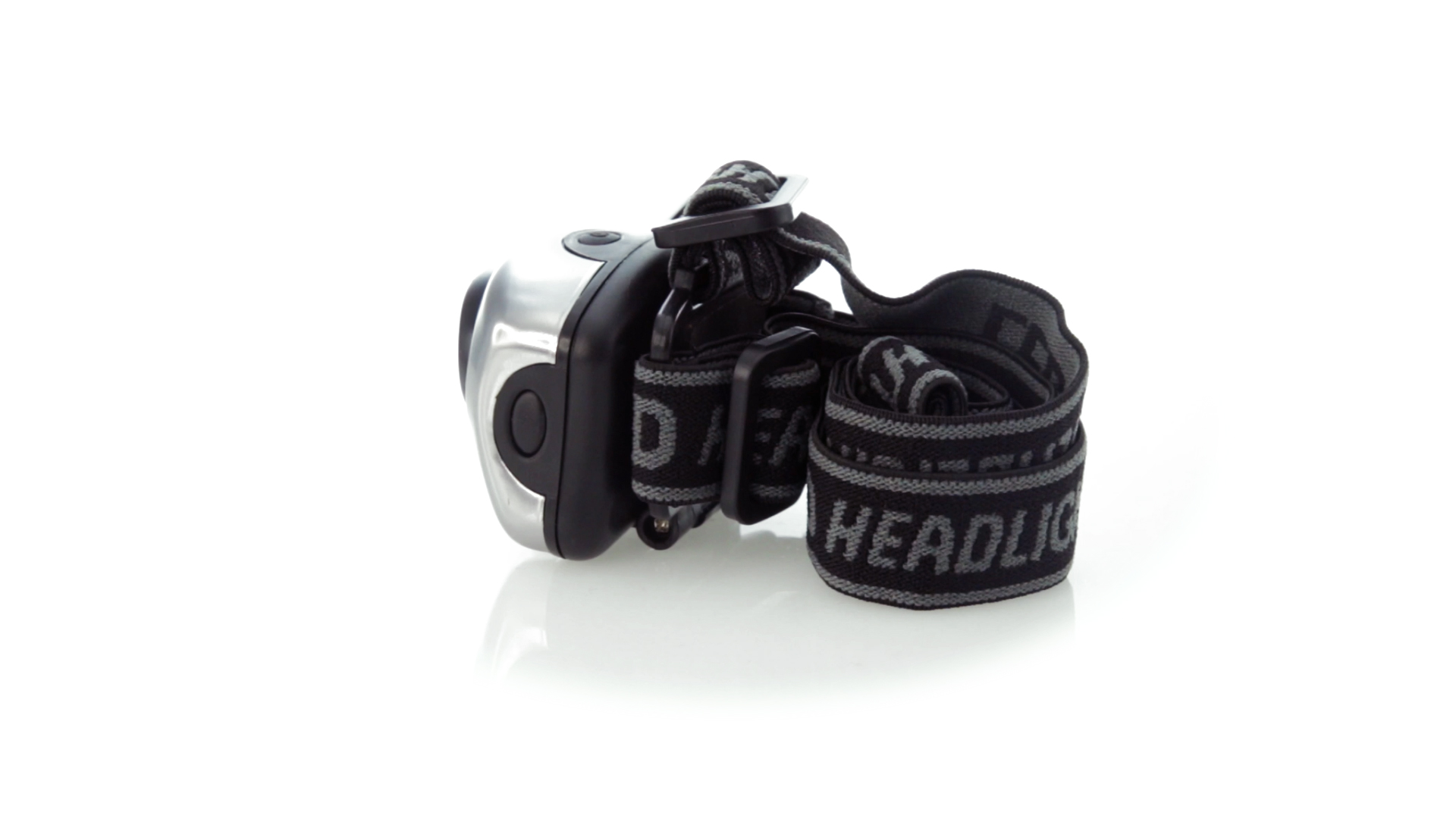 Kopflampe mit 5 LEDs und drei Lichteinstellungen. Mit verstellbarem und angenehm am Kopf sitzendem Gummigurt sowie Gehäuse aus robustem Material in kräftigen Farben. Gurt ist abnehmbar. Batteriebetrieben - 3 x AAA nicht inklusive. Präsentiert in einer individuellen Box in Silber mit Luftpolsterfolie.