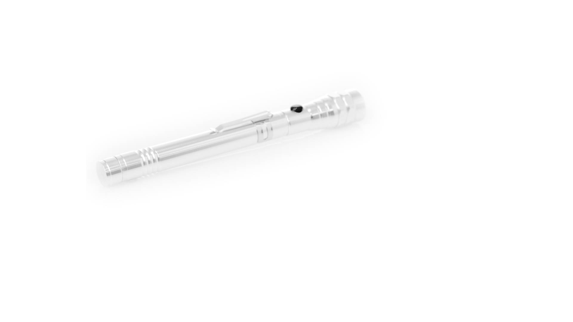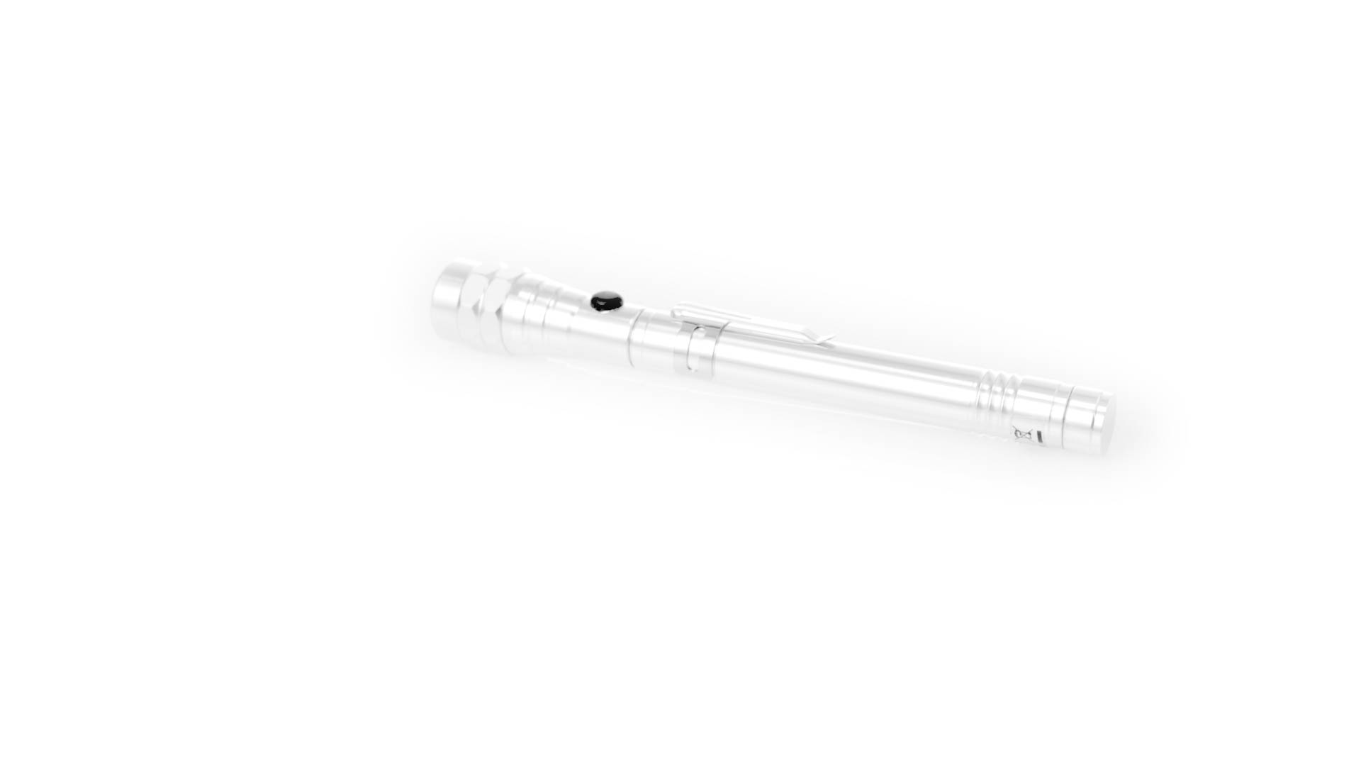 Praktische und vielseitige Taschenlampe aus Aluminium, mit ausziehbarem Kopf (verdreifachte Länge) und flexibel, um überall hin zu gelangen. Es ist mit Magneten ausgestattet, um sich an unterschiedliche Bedürfnisse anzupassen, und verfügt über 3 leistungsstarke LEDs für eine effiziente Beleuchtung. Betrieb mit Knopfbatterien (im Lieferumfang enthalten) und Metallclip. Einzeln verpackt in einer Kraft-Design-Box.