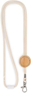 Lanyard aus Baumwolle mit runden Bambus-Anhänger. Metallkarabiner und Panikverschluss. Länge: 50 cm. Bambus ist ein natürliches Produkt, es kann daher zu leichten Abweichungen in Farbe, Dekor und Massen kommen.