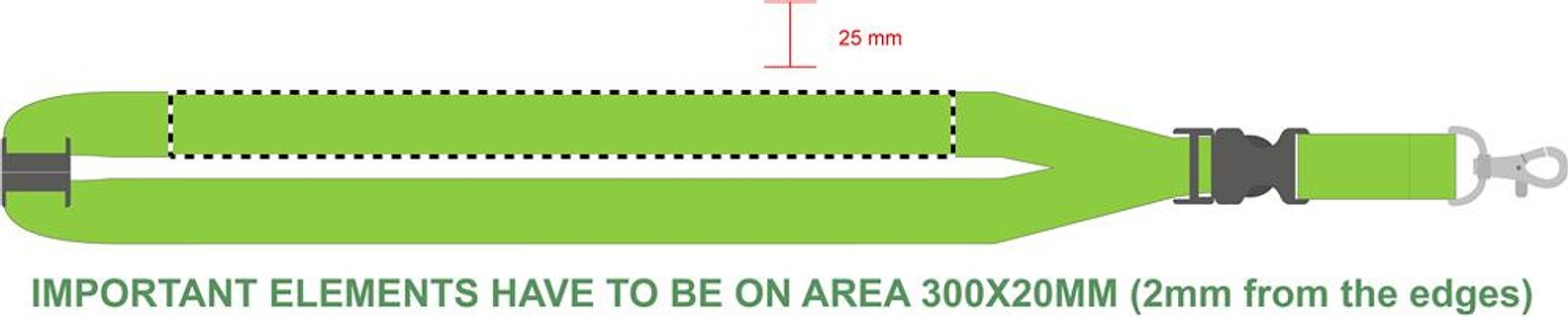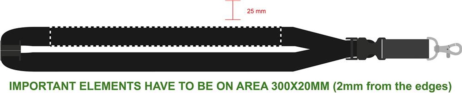 Lanyard mit Metallkarabiner, abnehmbarem Steckverschluss und Panikverschluss. 25mm Breite. Der Sublimationsdruck ist nur auf weissen Artikeln möglich.